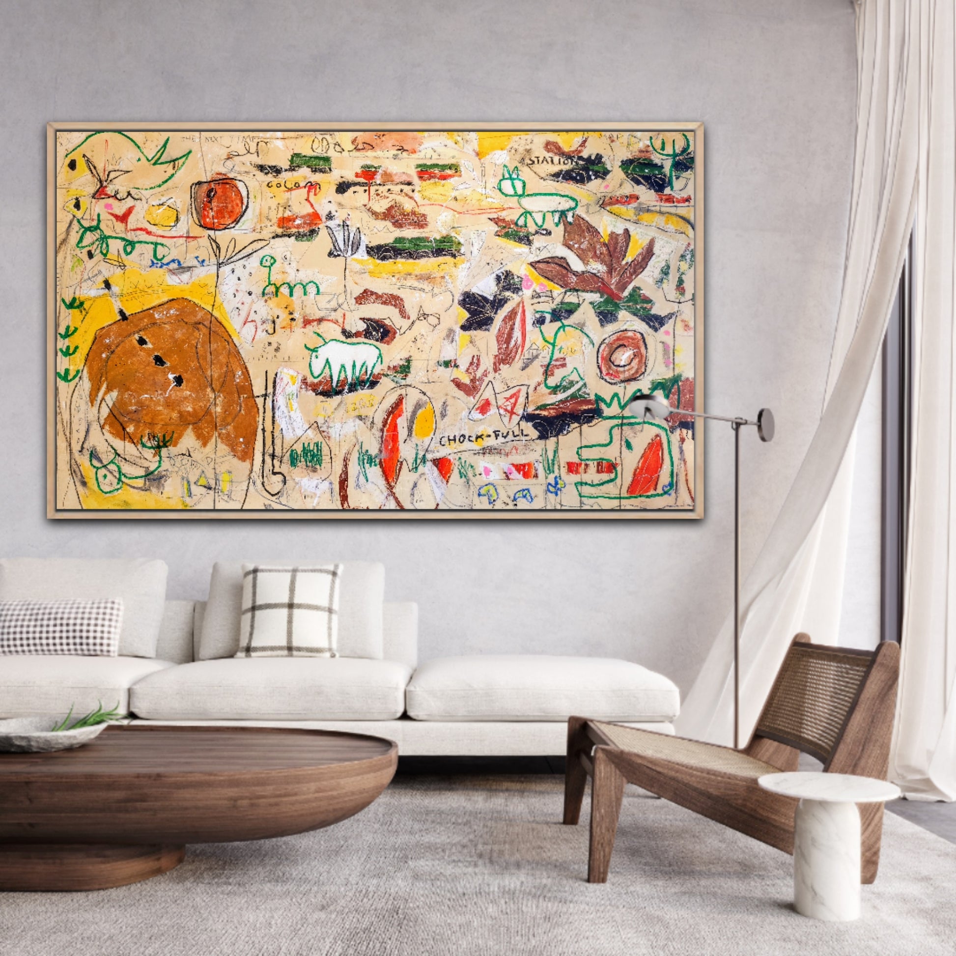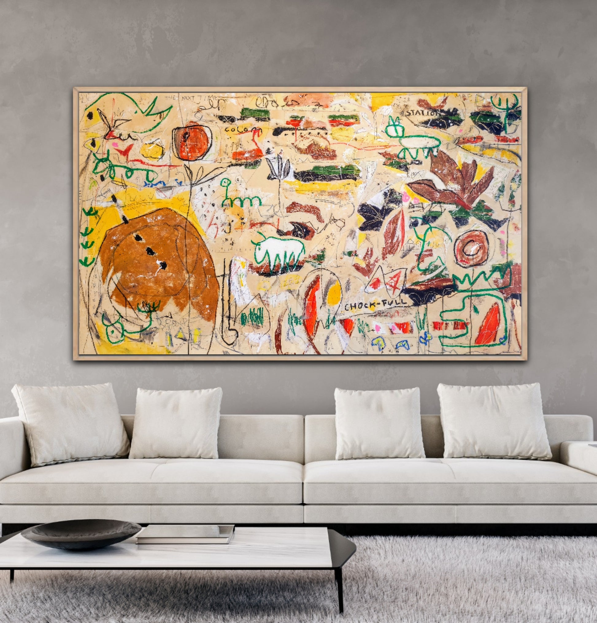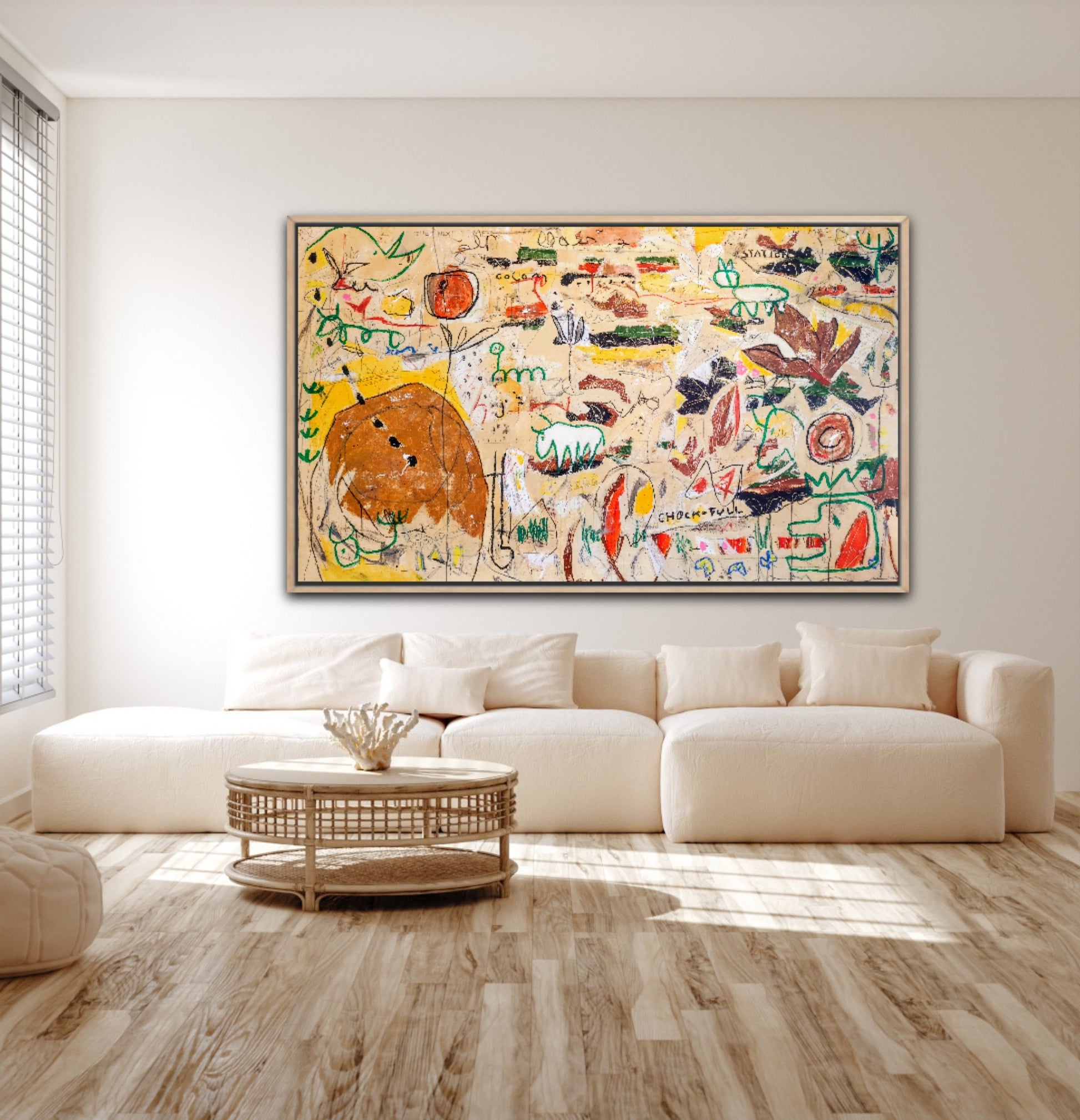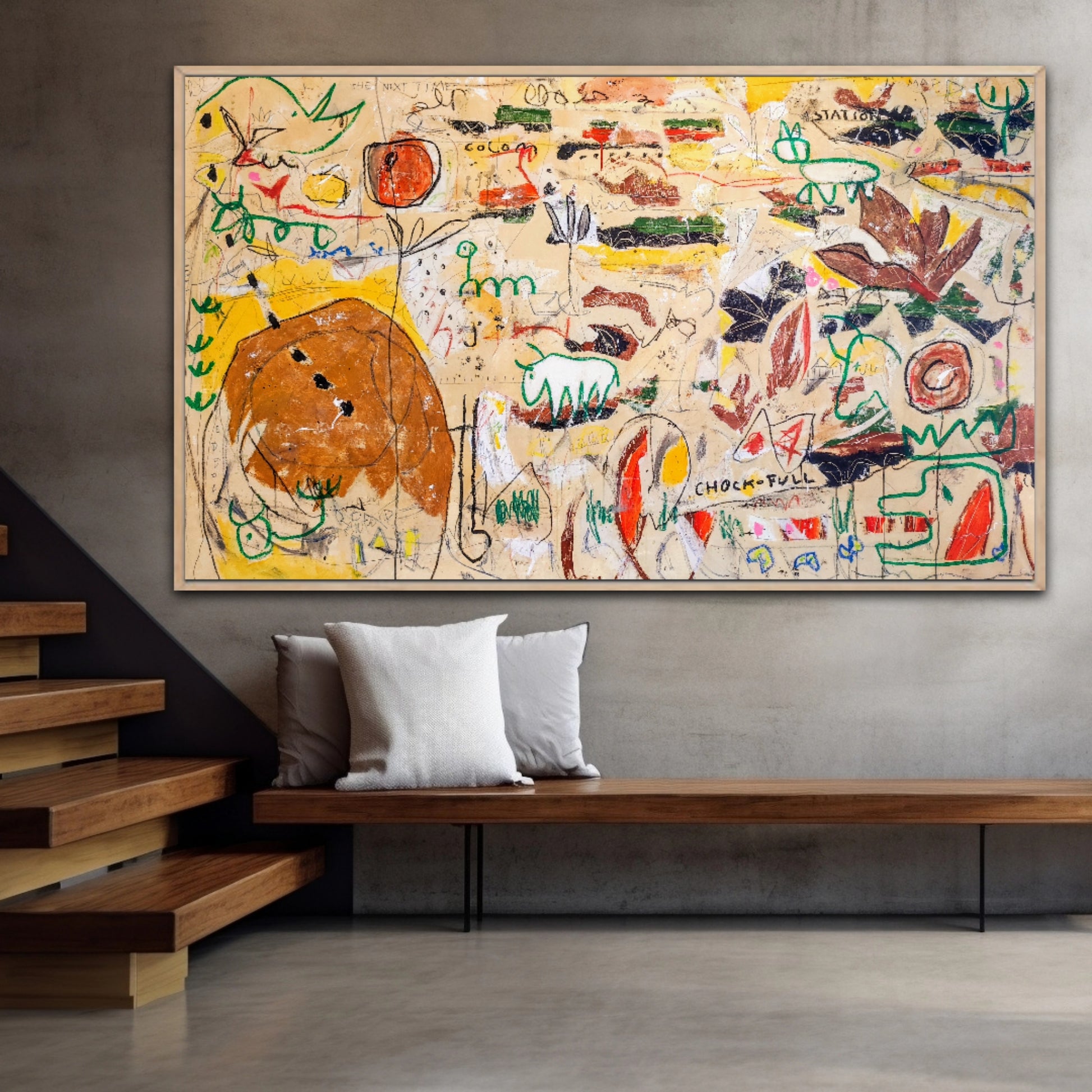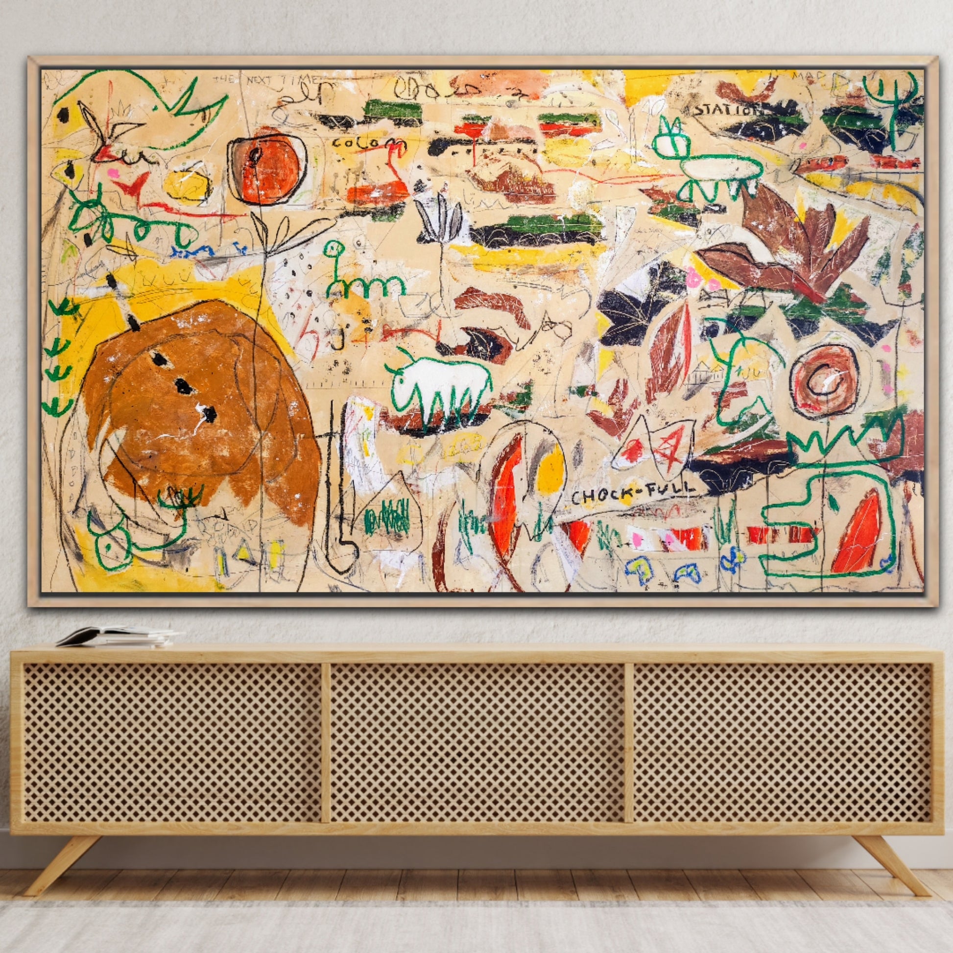 La obra está inspirada en pinturas rupestres, apareciendo también elementos de Naturaleza y algunas figuras inspiradas en cine de ciencia ficción. Todo ello expresado sobre un lienzo que parece una pared publicitaria de cualquier ciudad contemporánea, con manchas, suciedad y grafiti aleatorio.