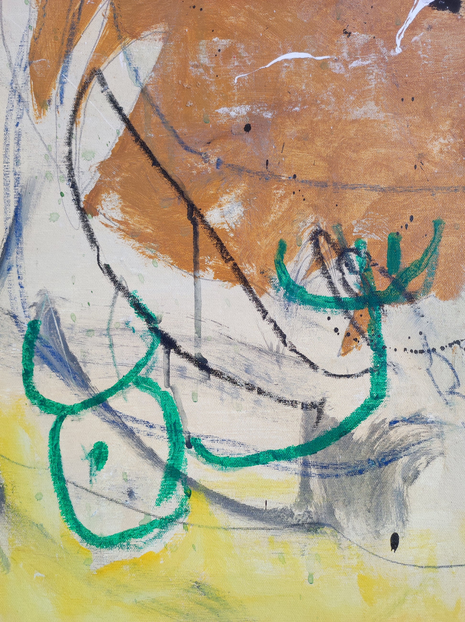 Cuadro trabajado desde la improvisación libre. Action painting con música de Rolling Stones, The Smiths, Pink Floyd...