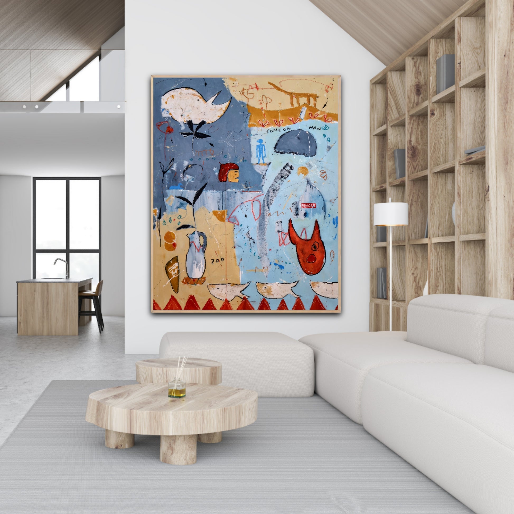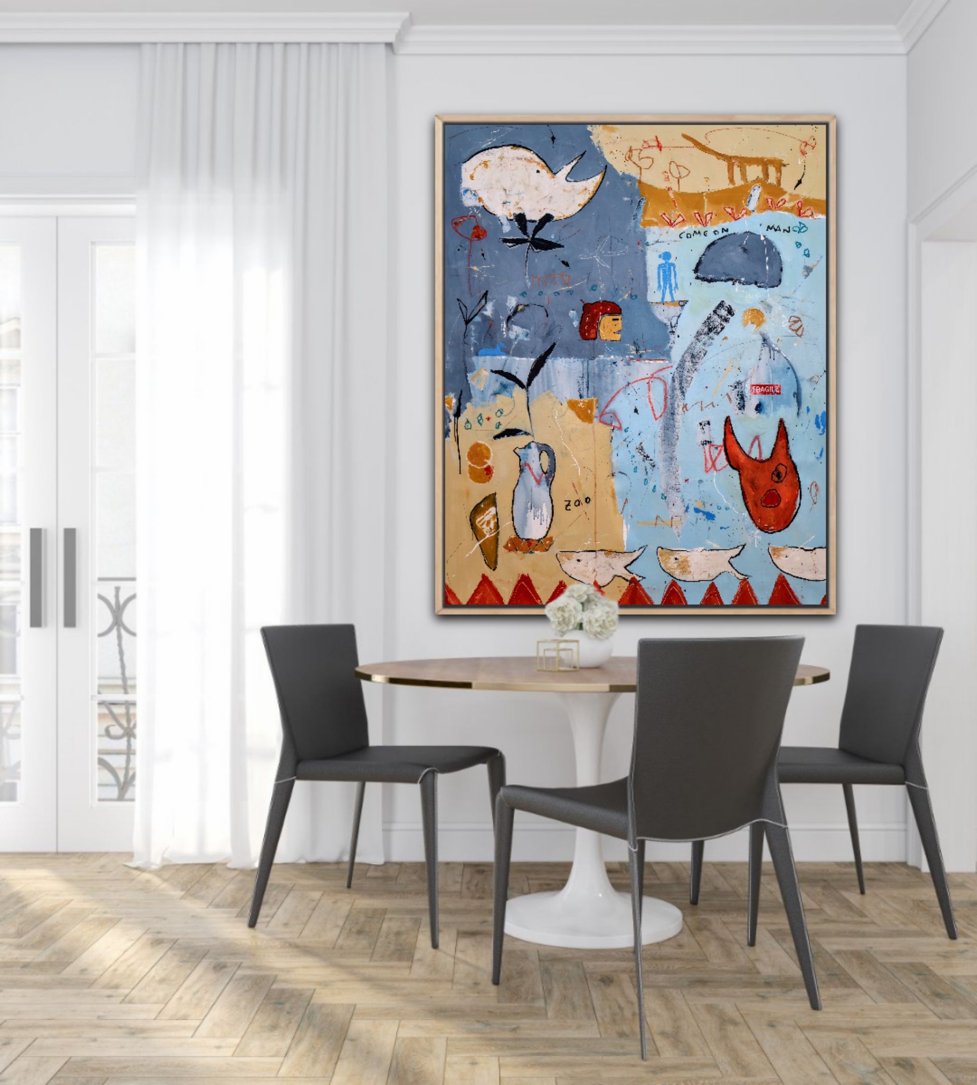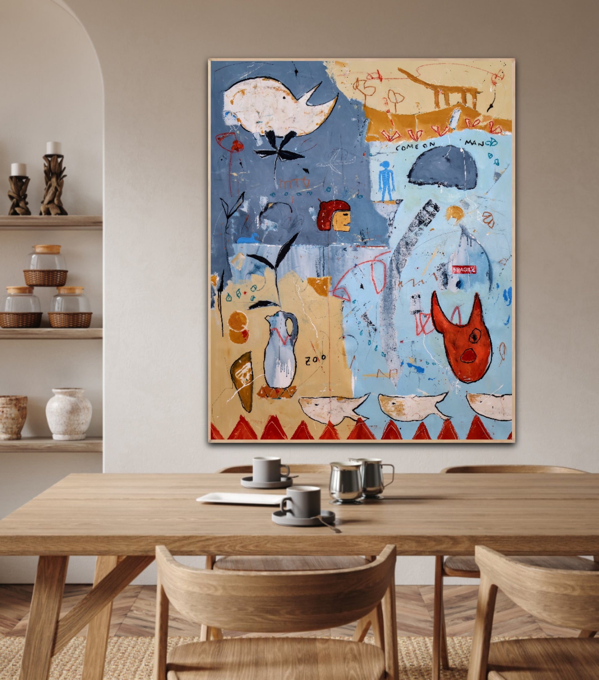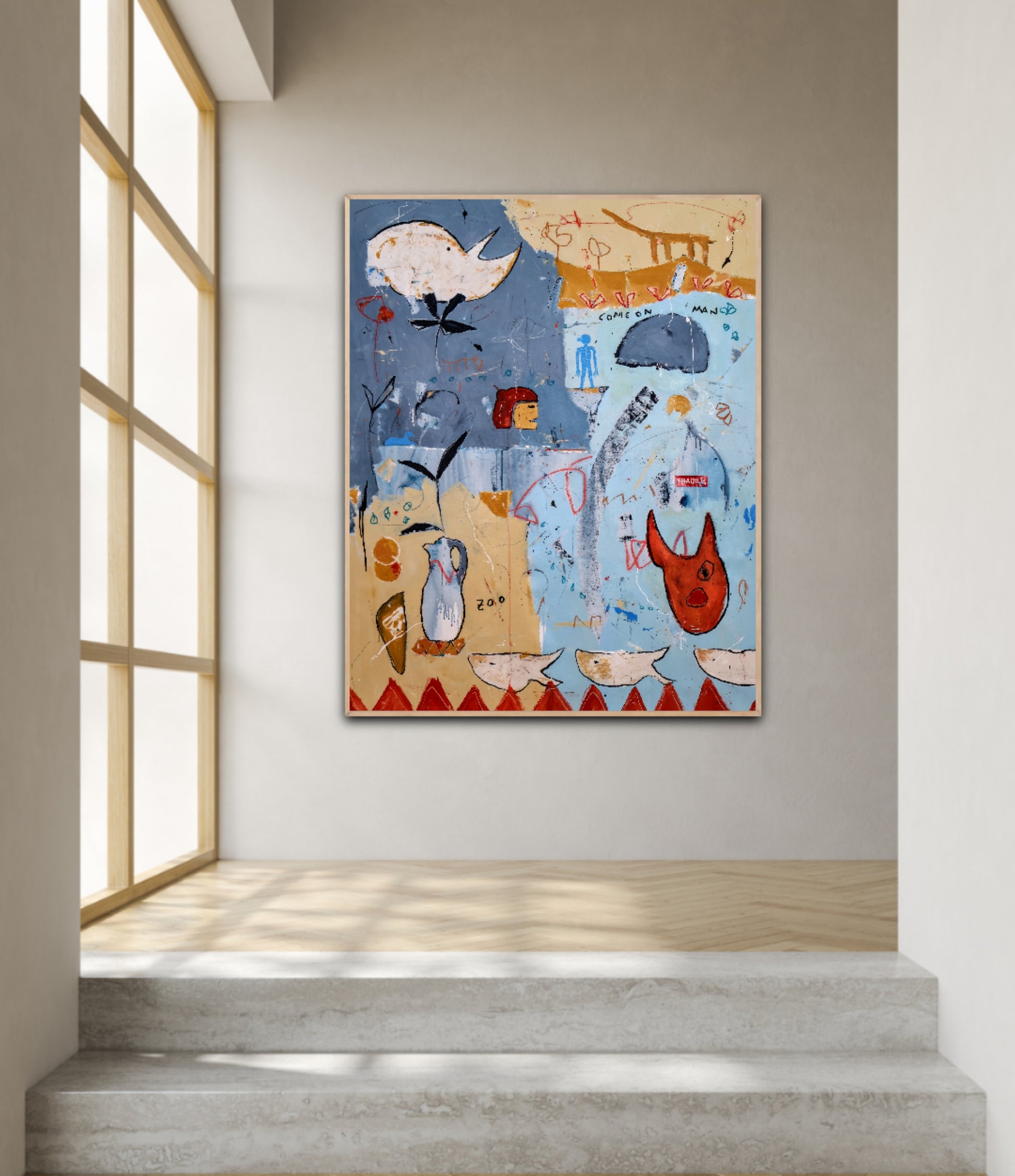 Técnica: acrílico, pigmentos, ceras, tempera, lápiz, carboncillo y tinta china.