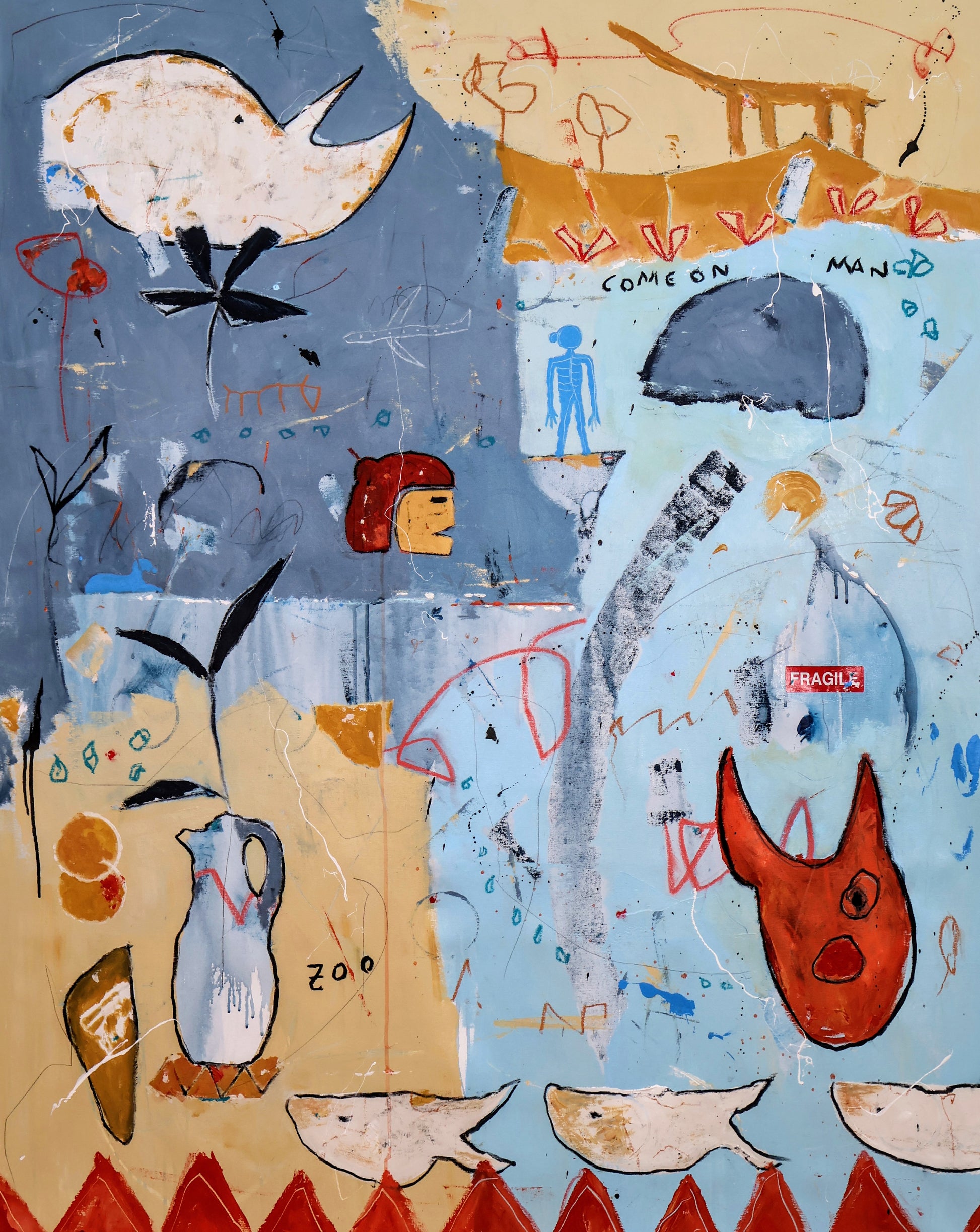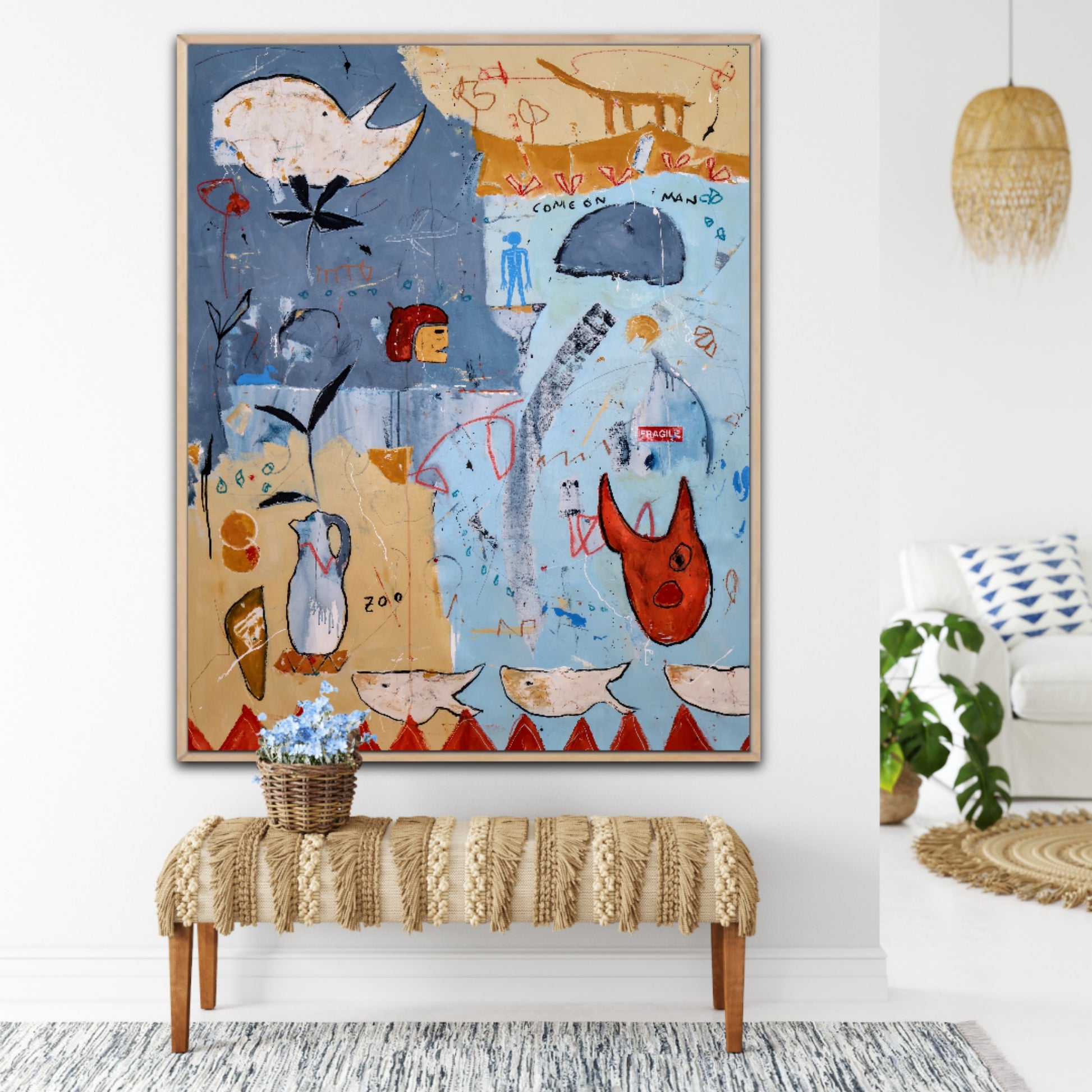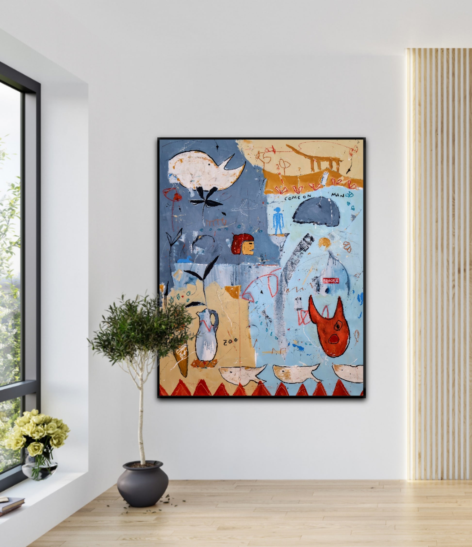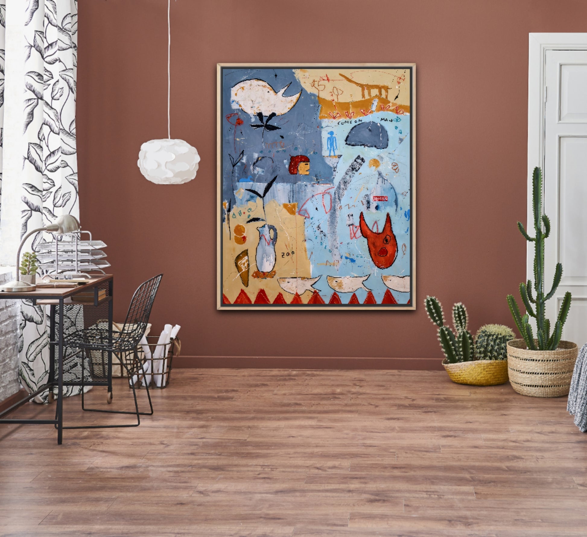 Técnica: acrílico, pigmentos, ceras, tempera, lápiz, carboncillo y tinta china.