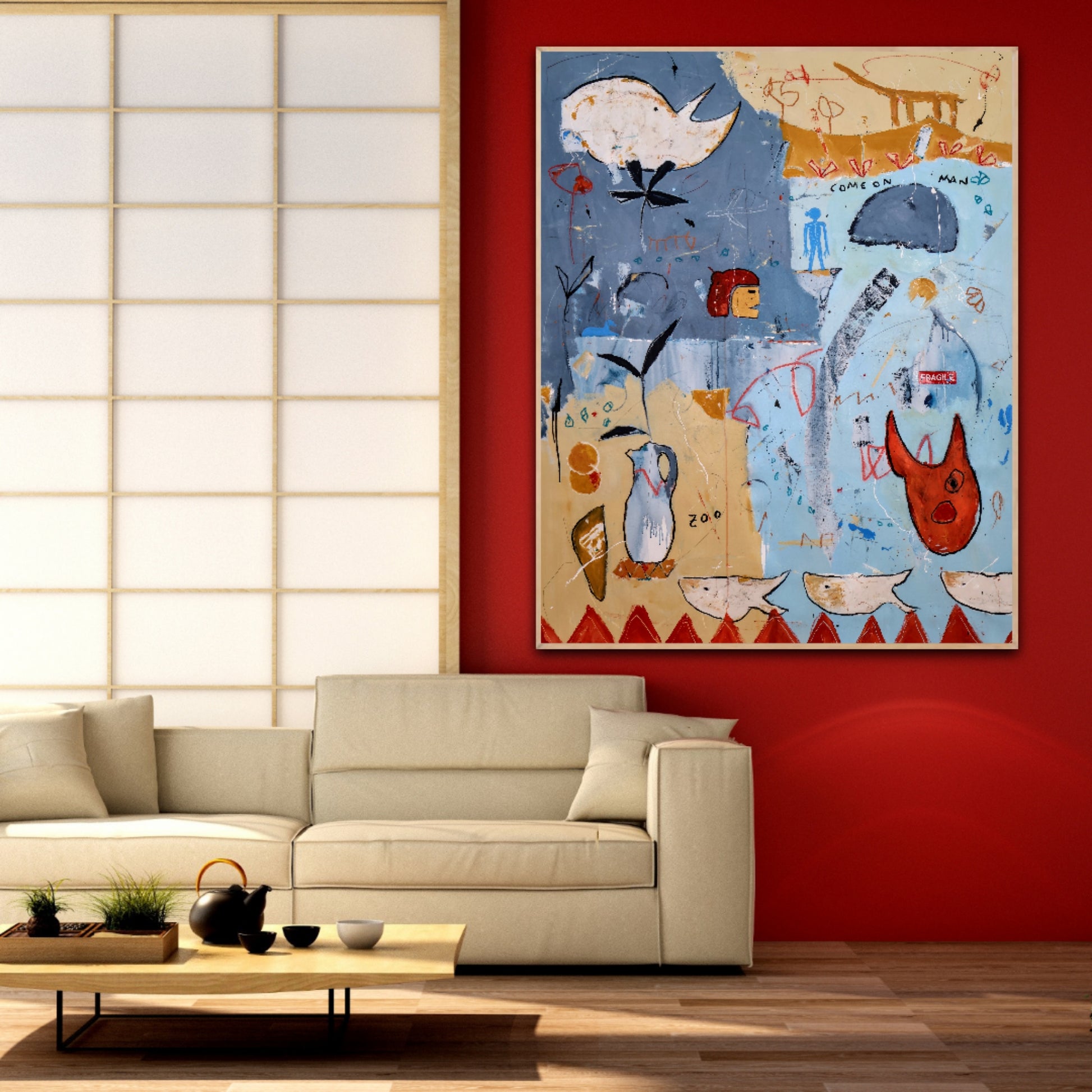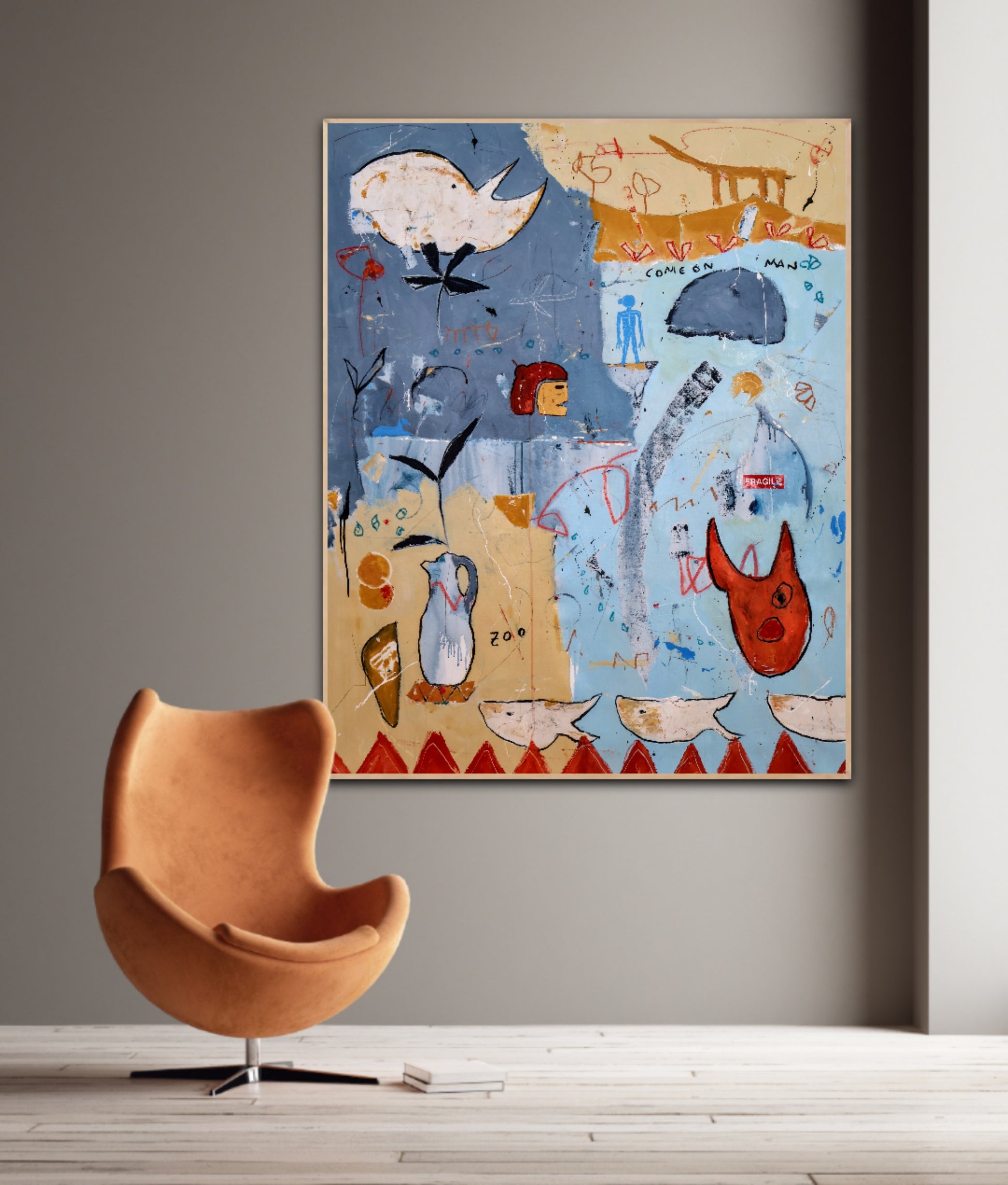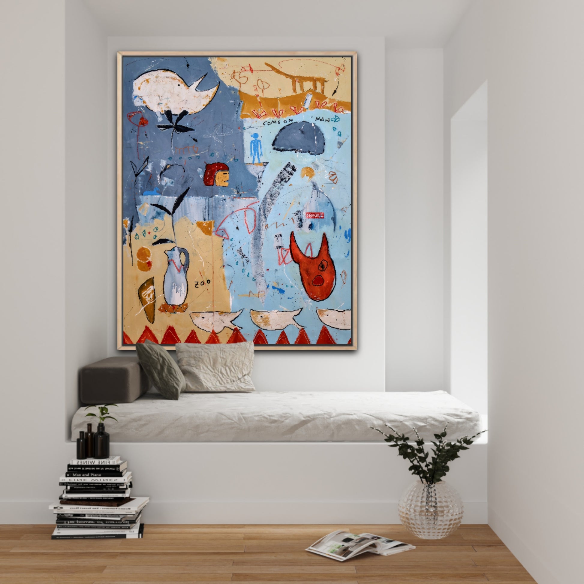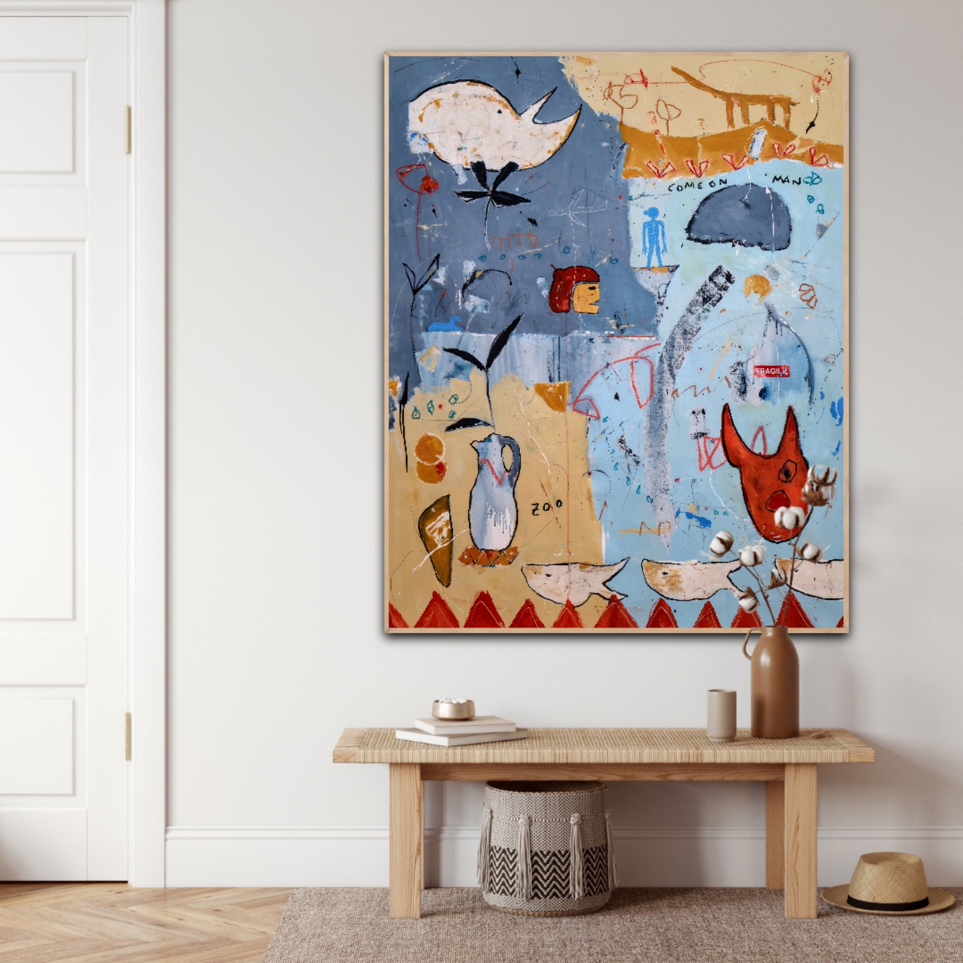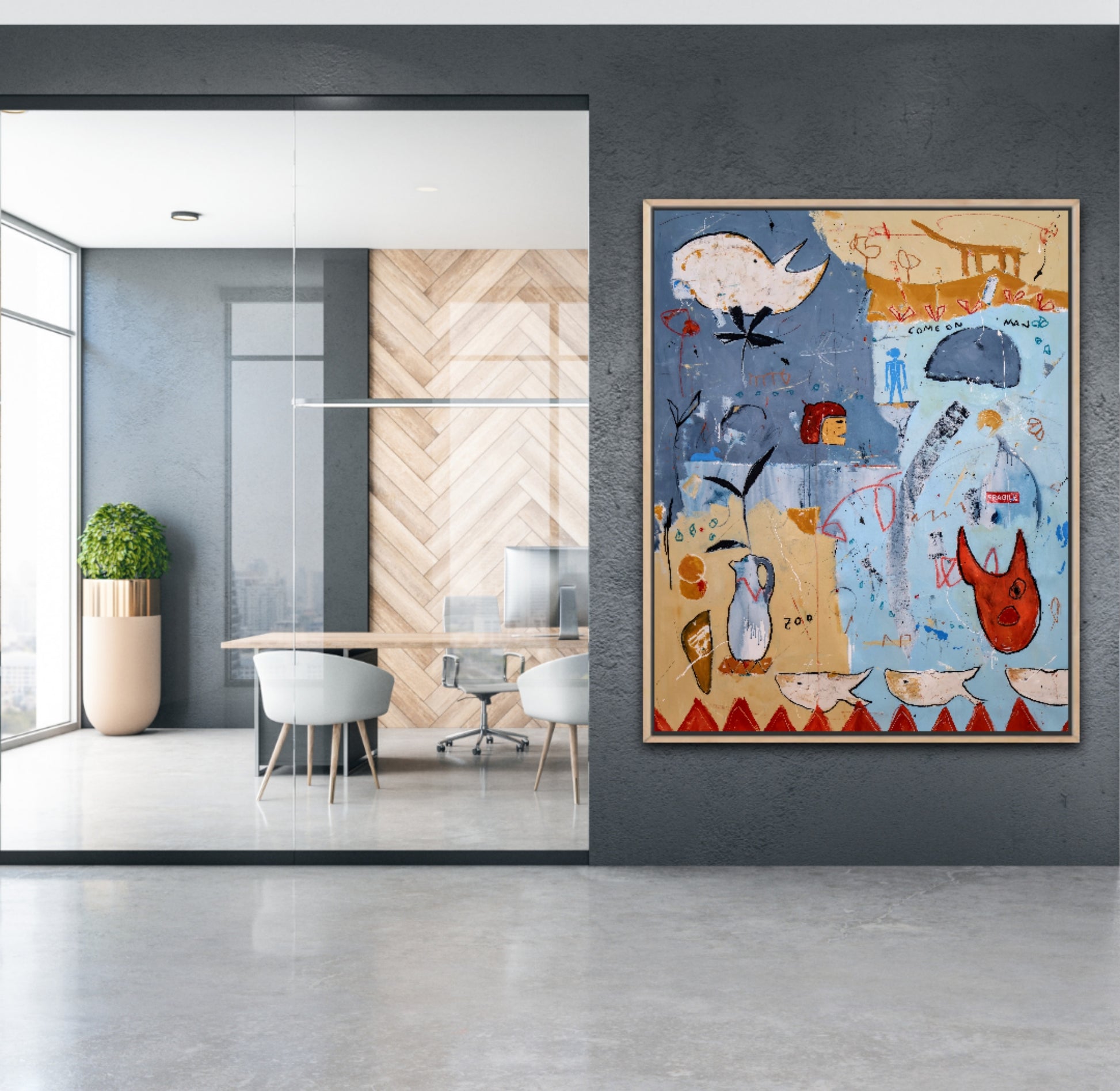 Técnica: acrílico, pigmentos, ceras, tempera, lápiz, carboncillo y tinta china.