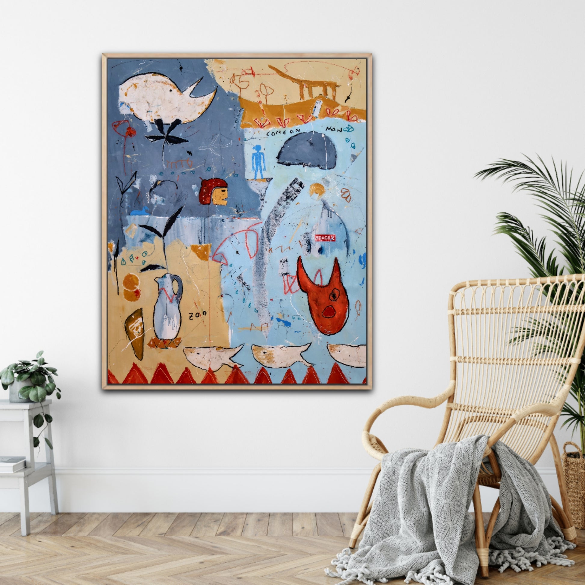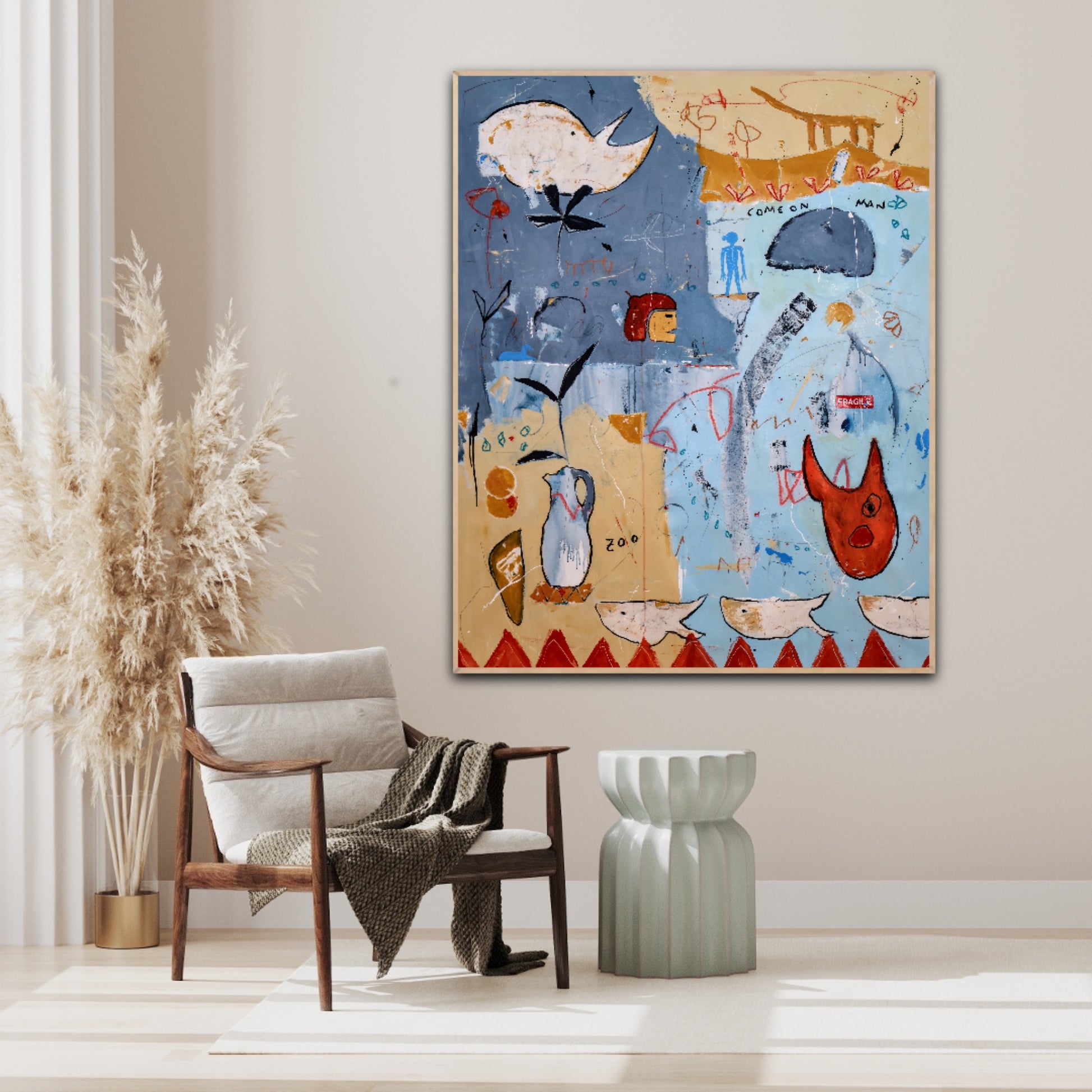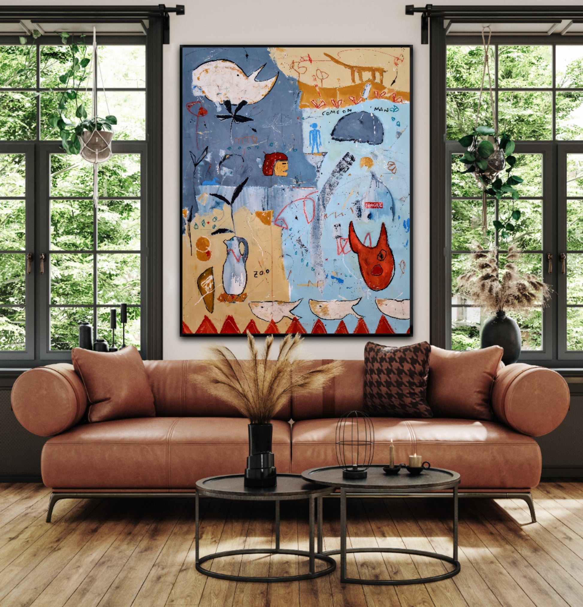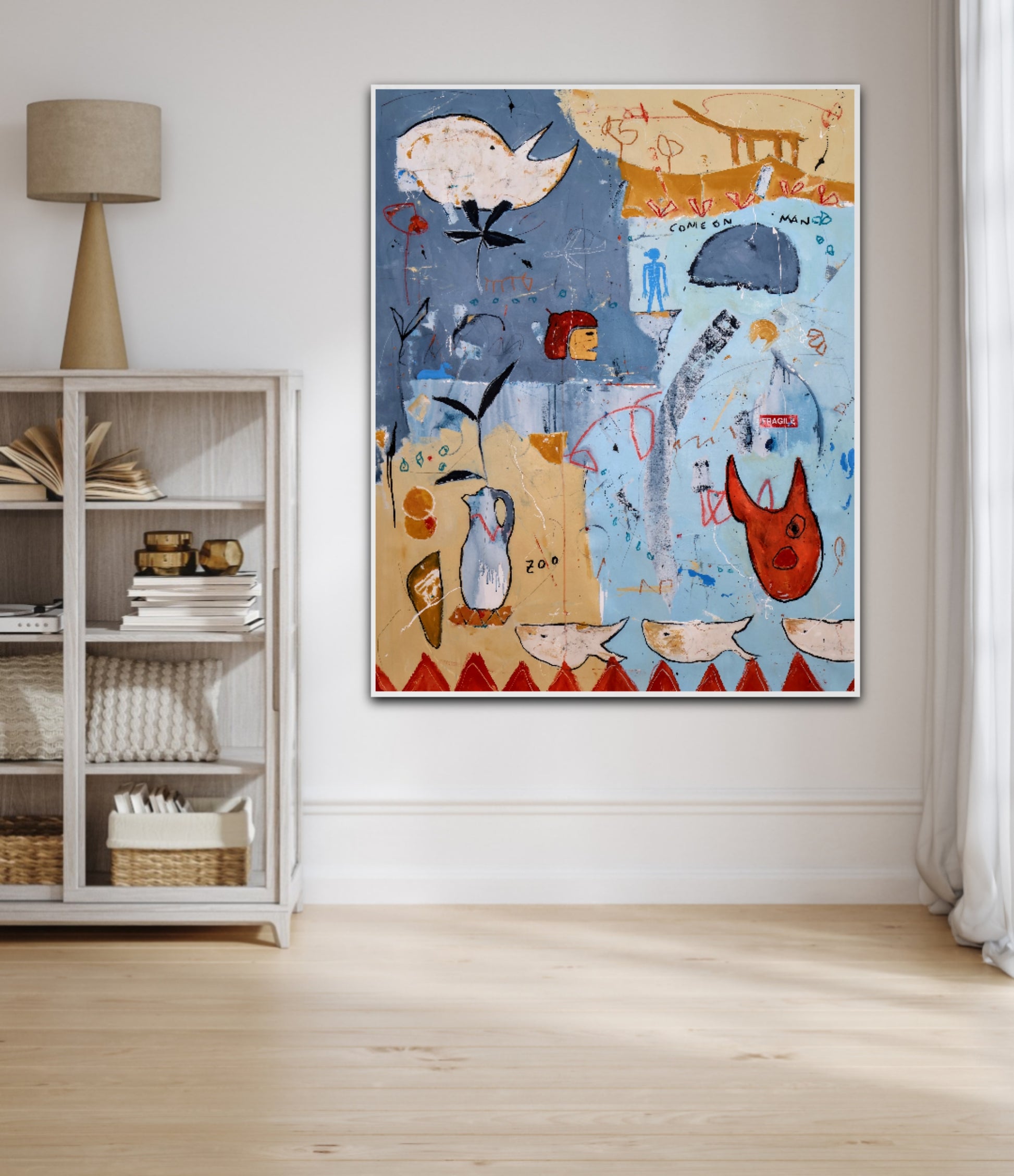 Técnica: acrílico, pigmentos, ceras, tempera, lápiz, carboncillo y tinta china.