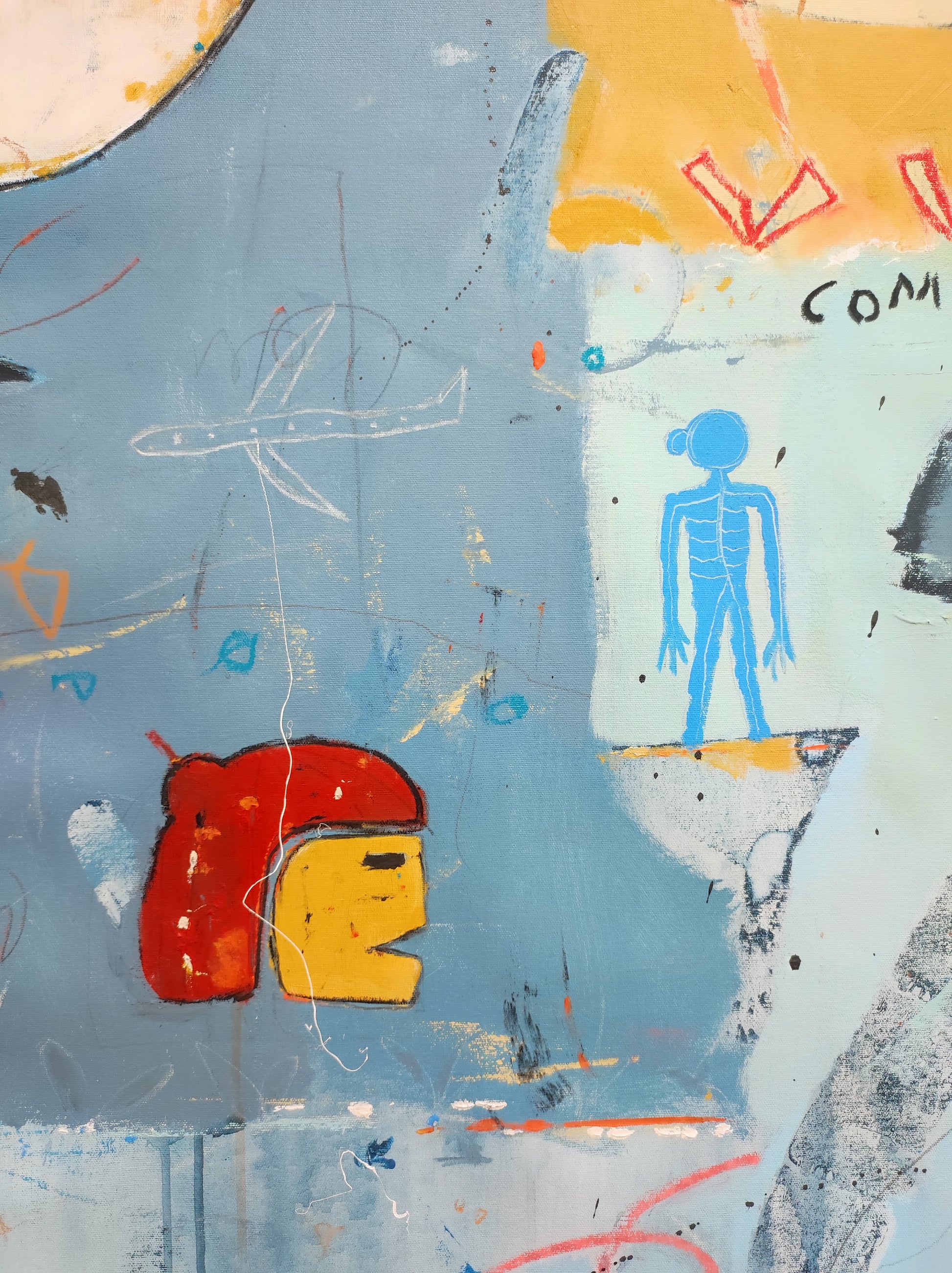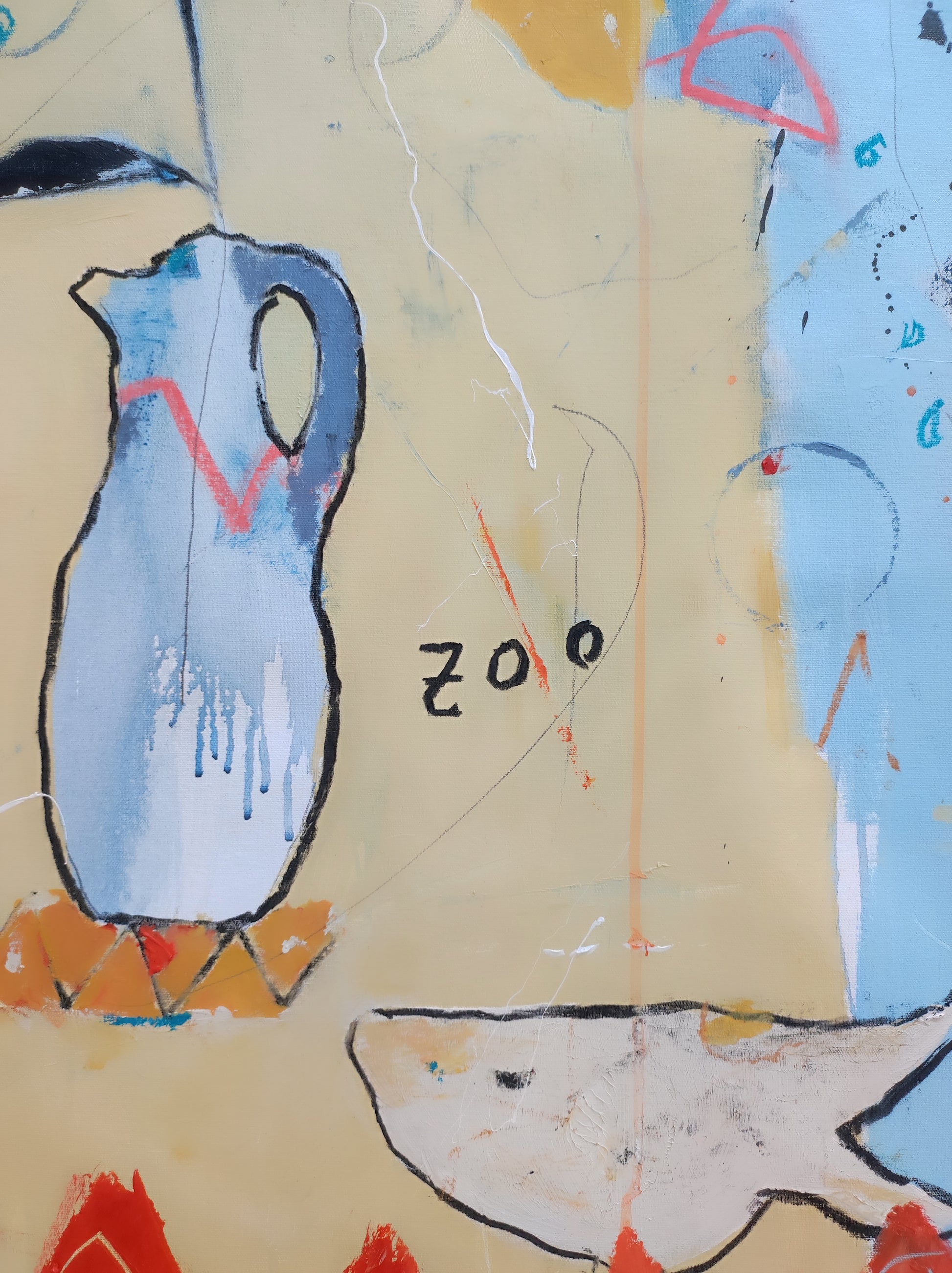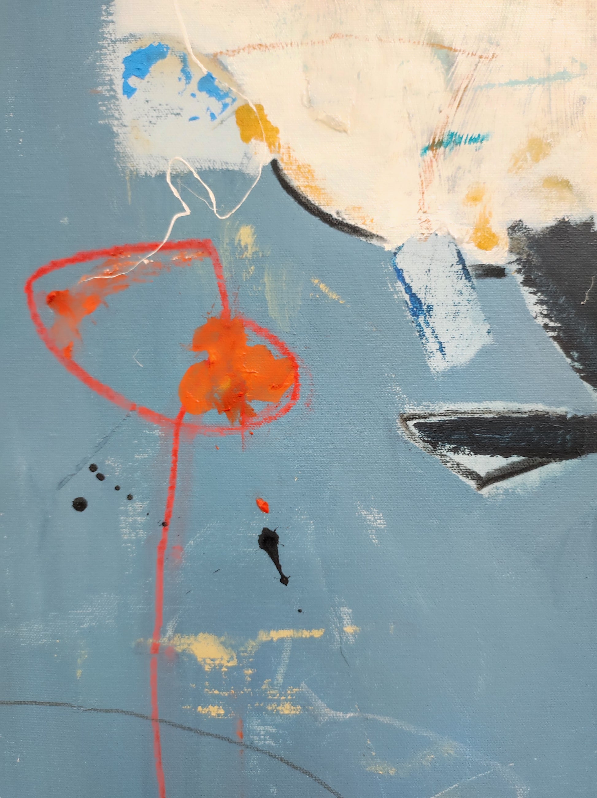 Pintura gestual, intuitiva, que deja que las cosas pasen y se apoya sobre lo que aparece. Aprovechando el accidente y aceptando las consecuencias.