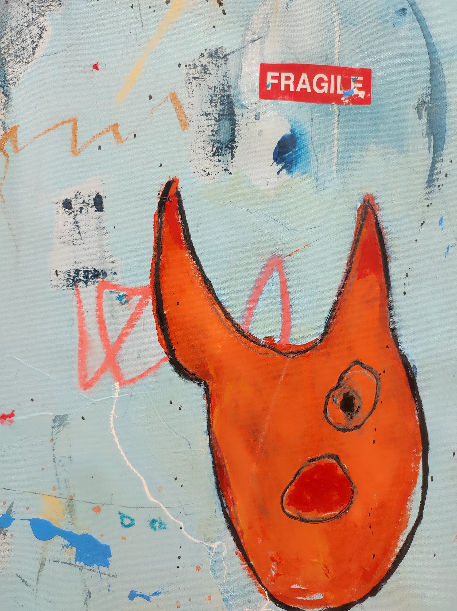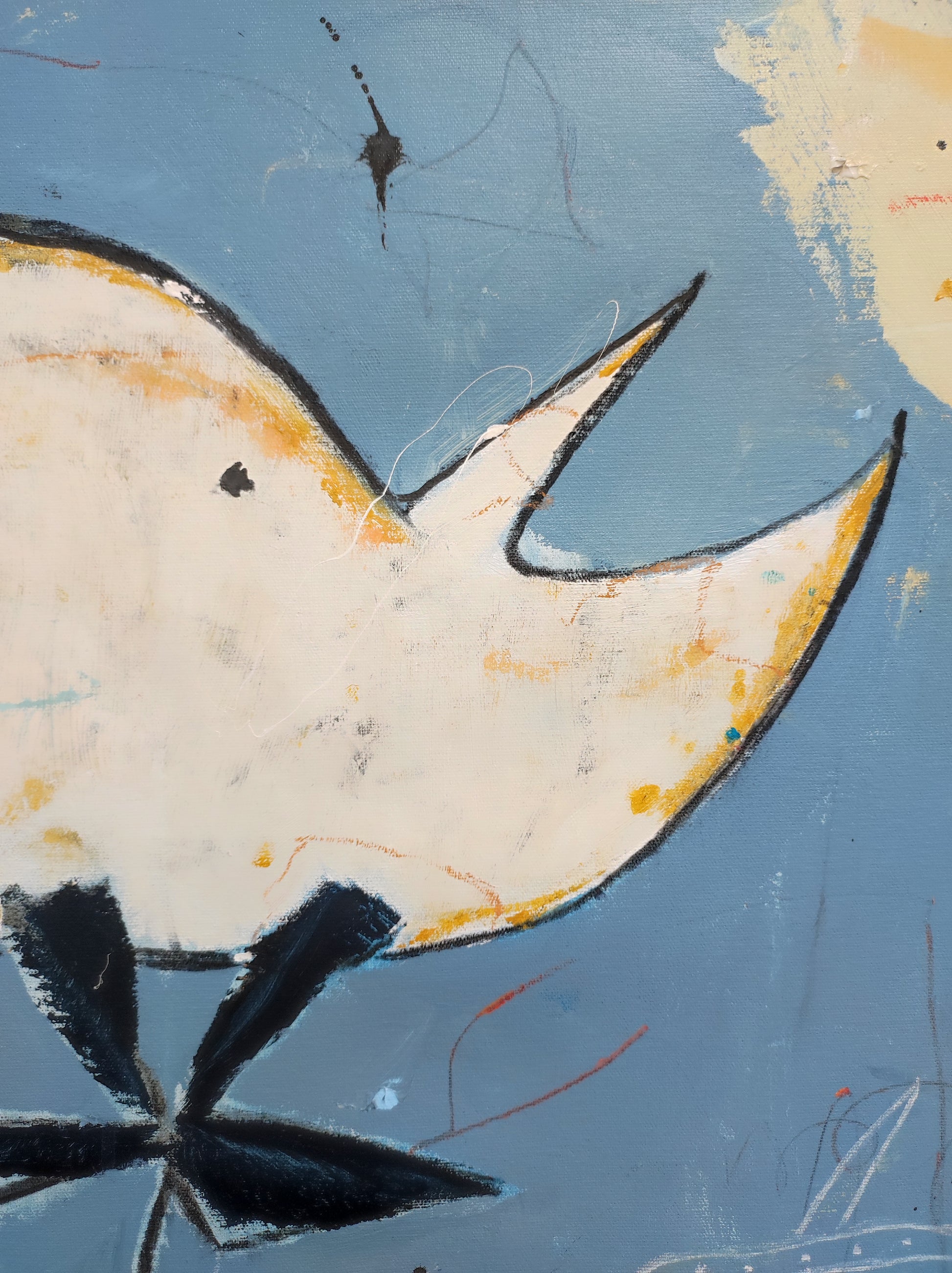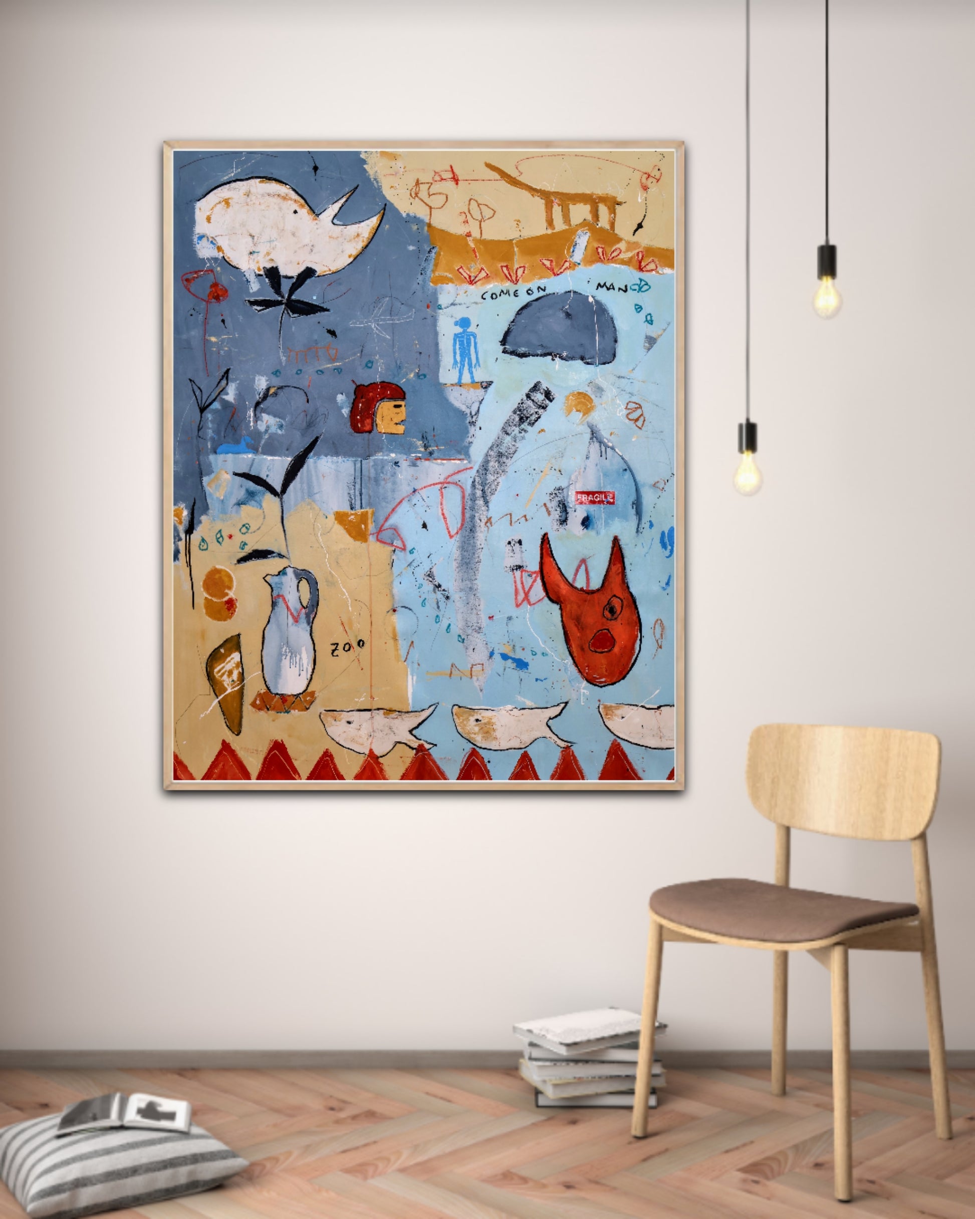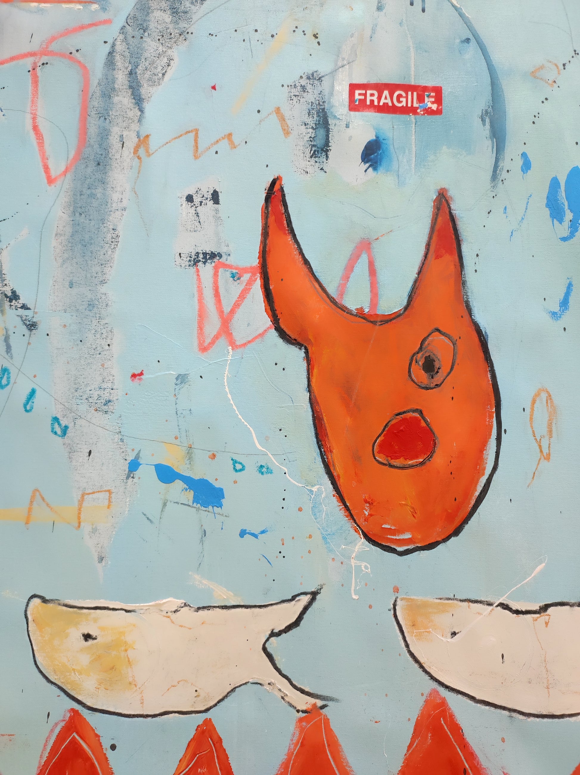 Pintura gestual, intuitiva, que deja que las cosas pasen y se apoya sobre lo que aparece. Aprovechando el accidente y aceptando las consecuencias.