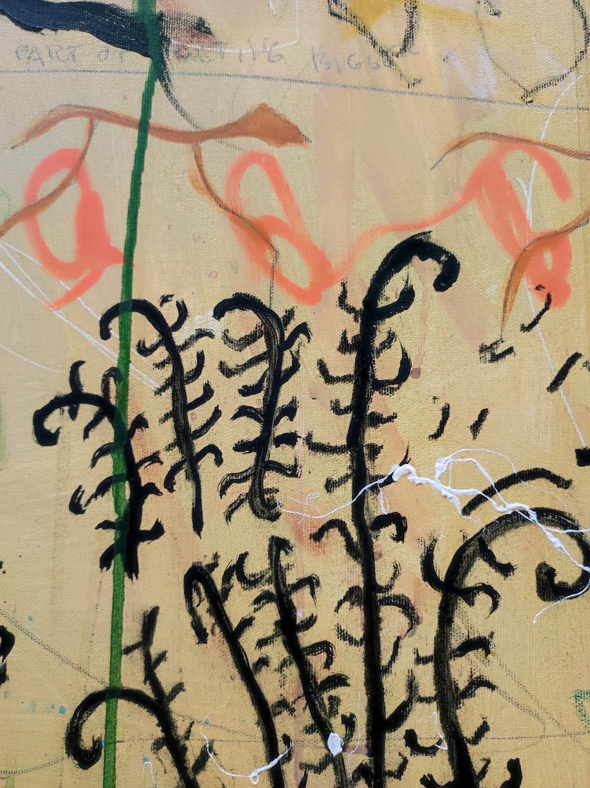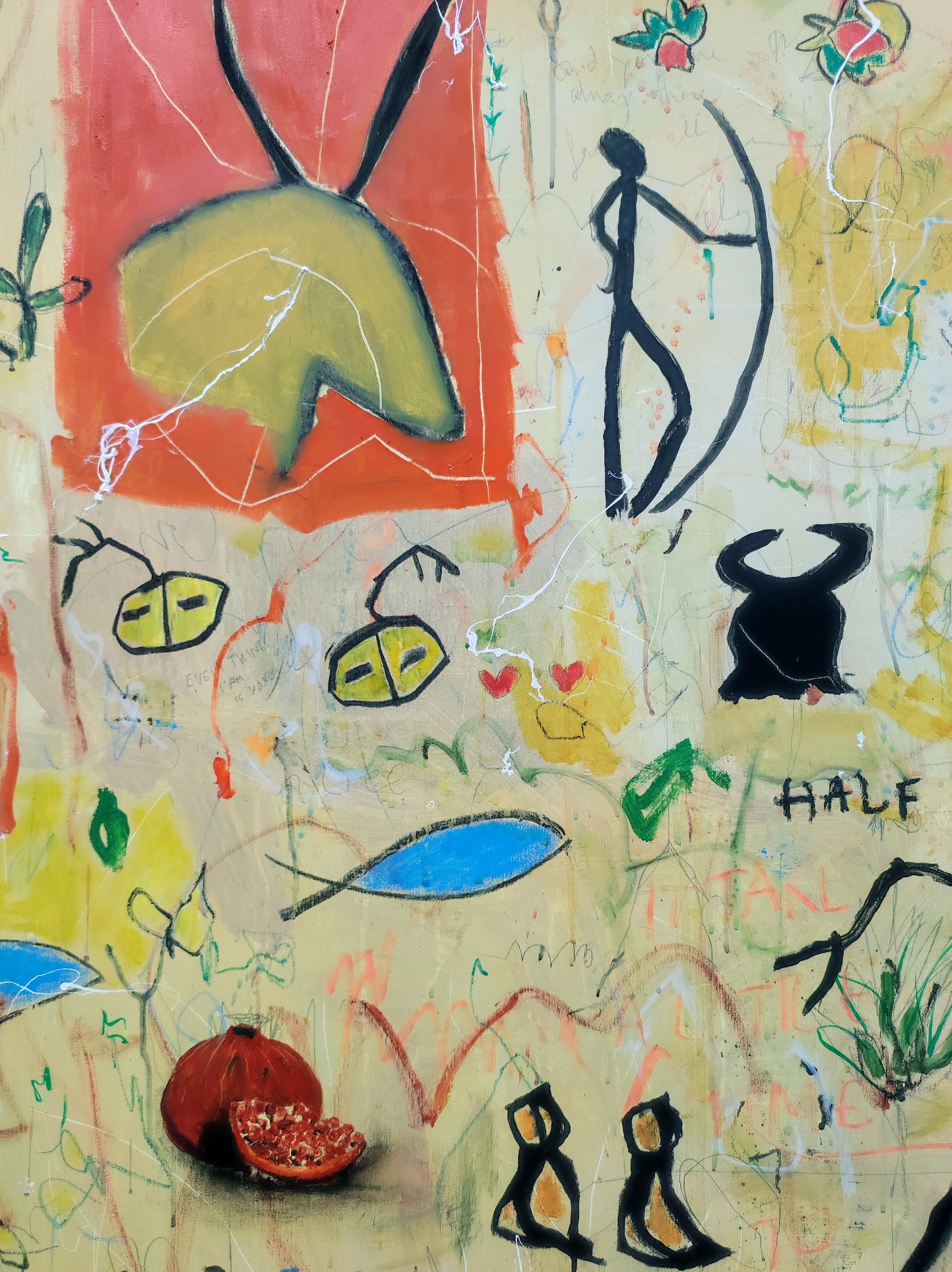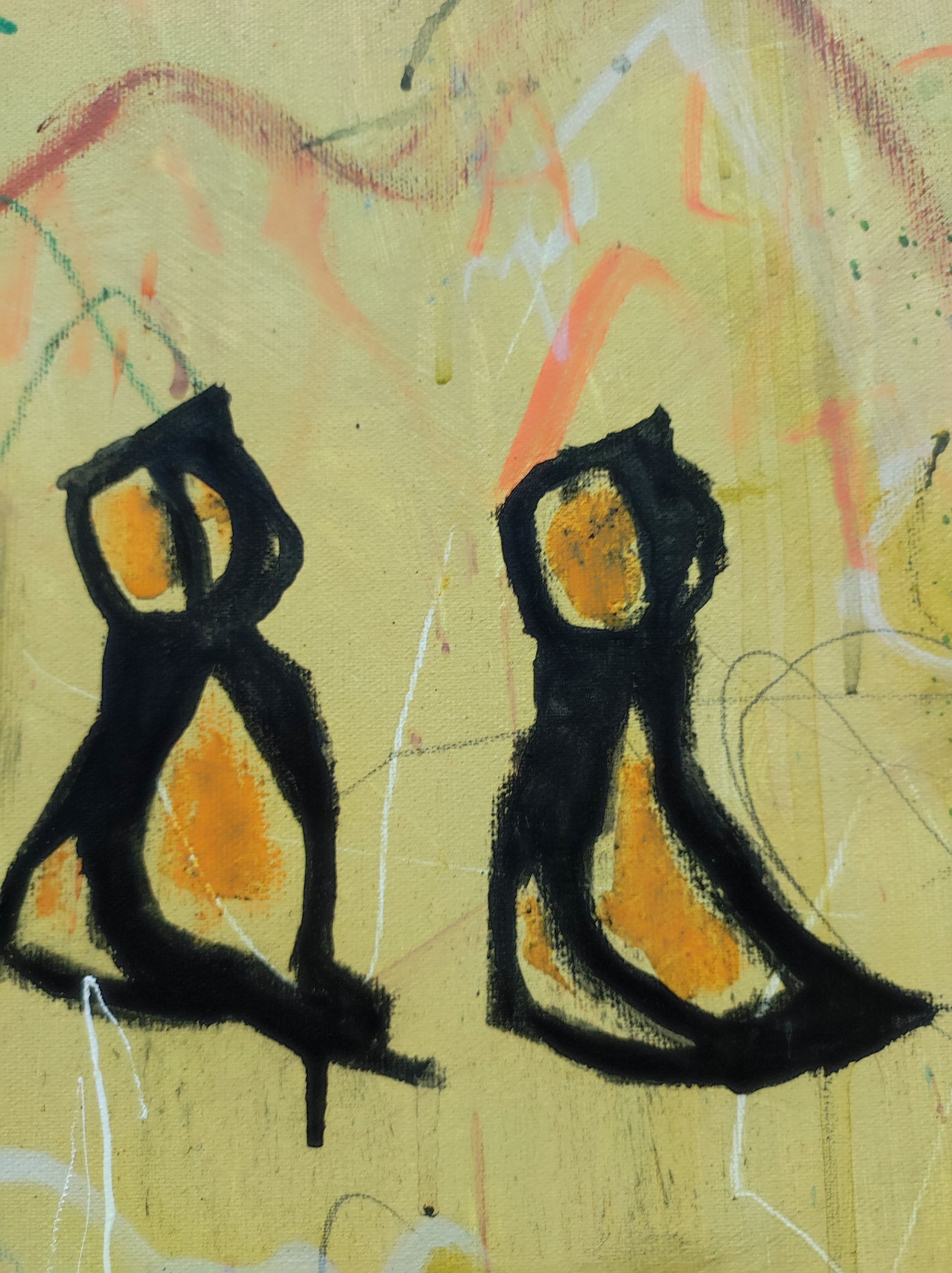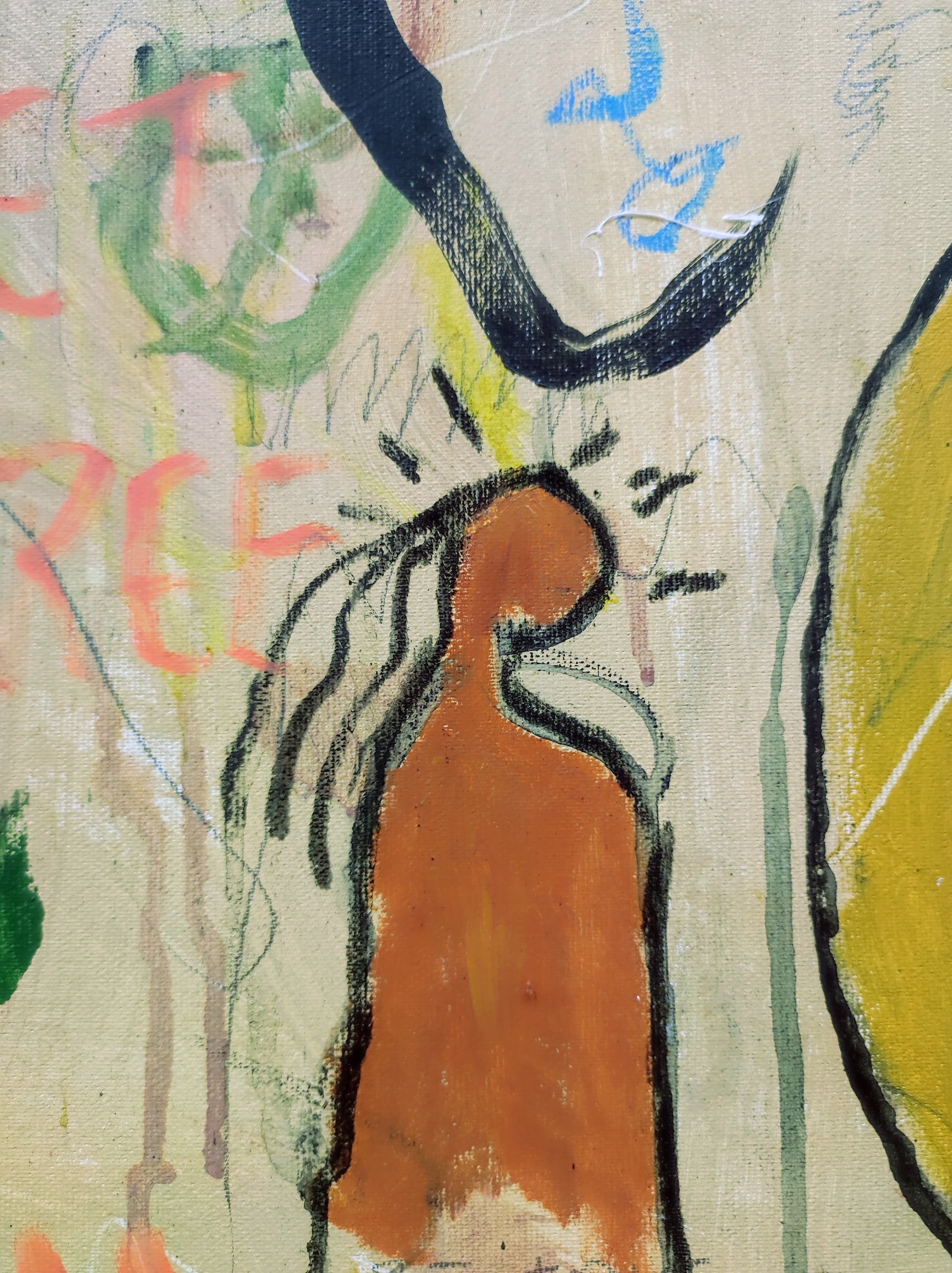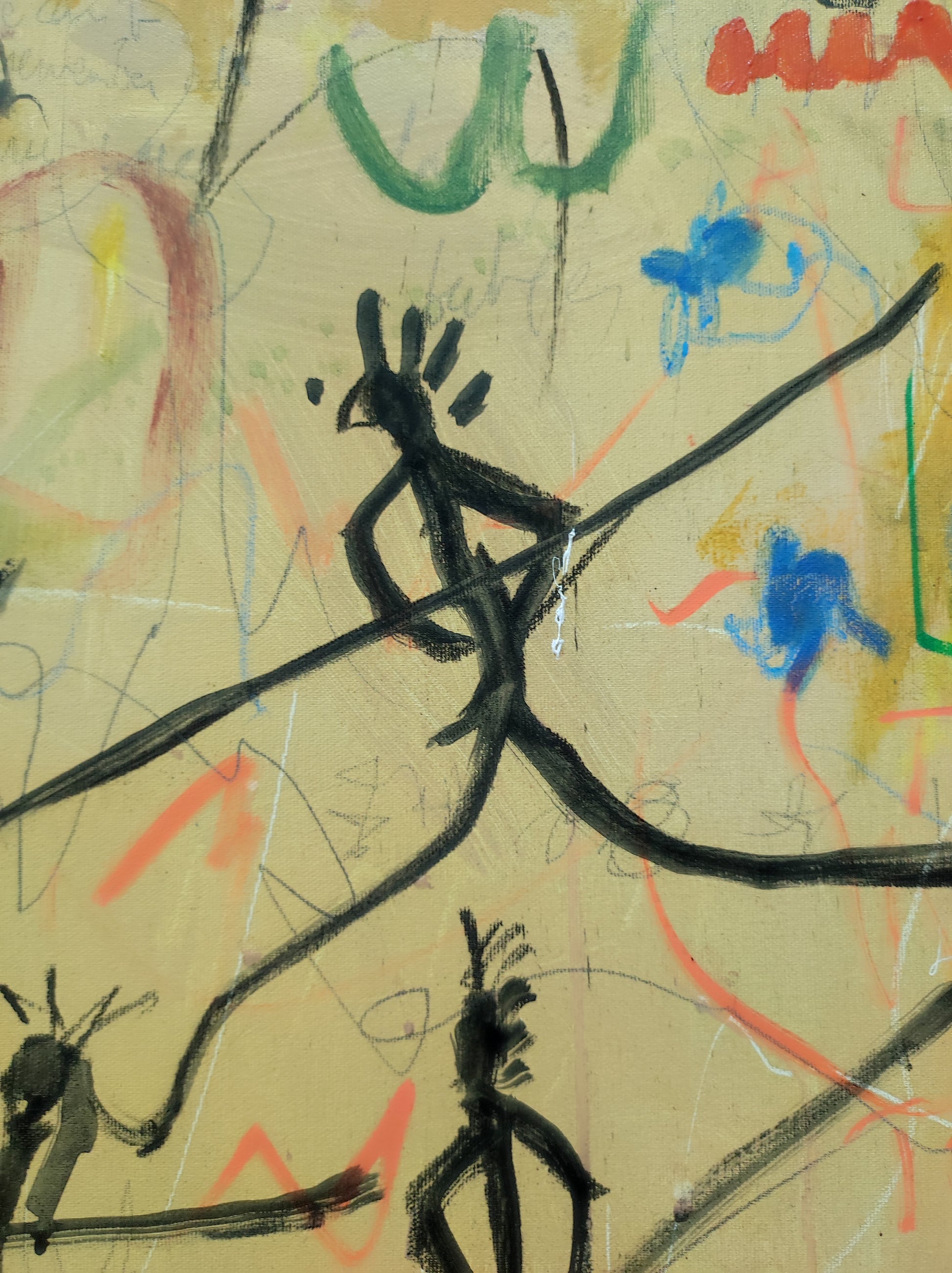 Técnica: acrílico, pigmentos, lápiz y carboncillo.