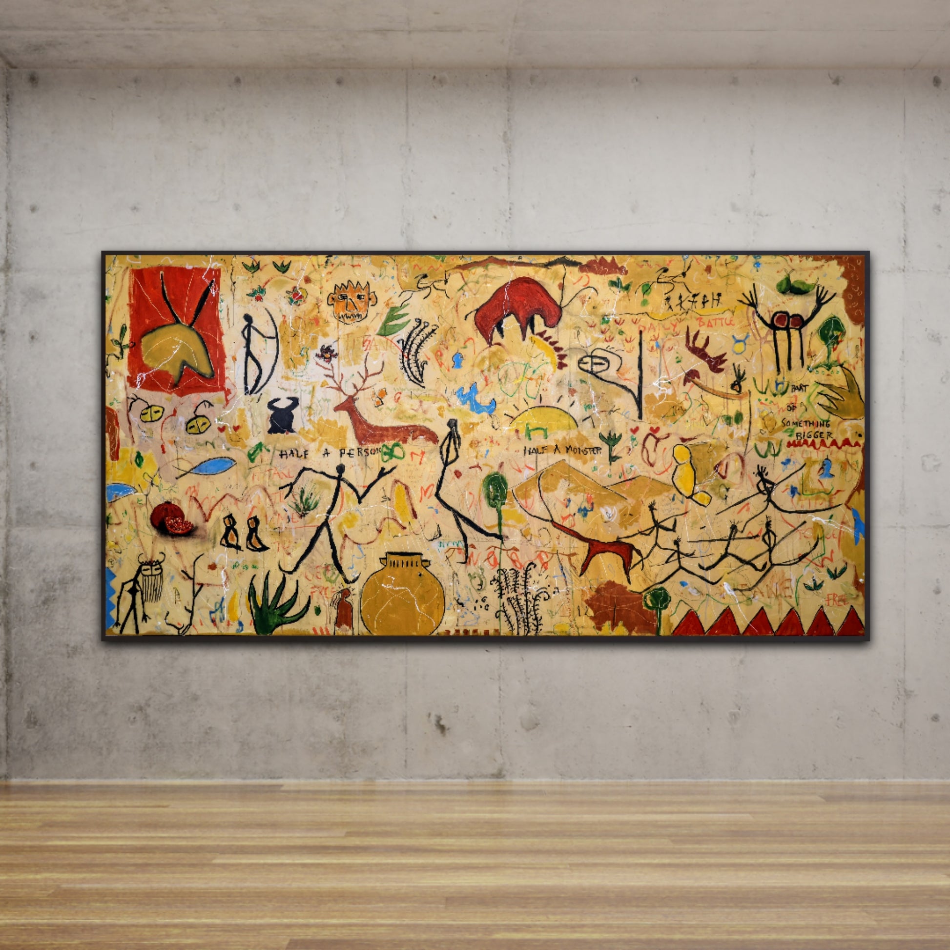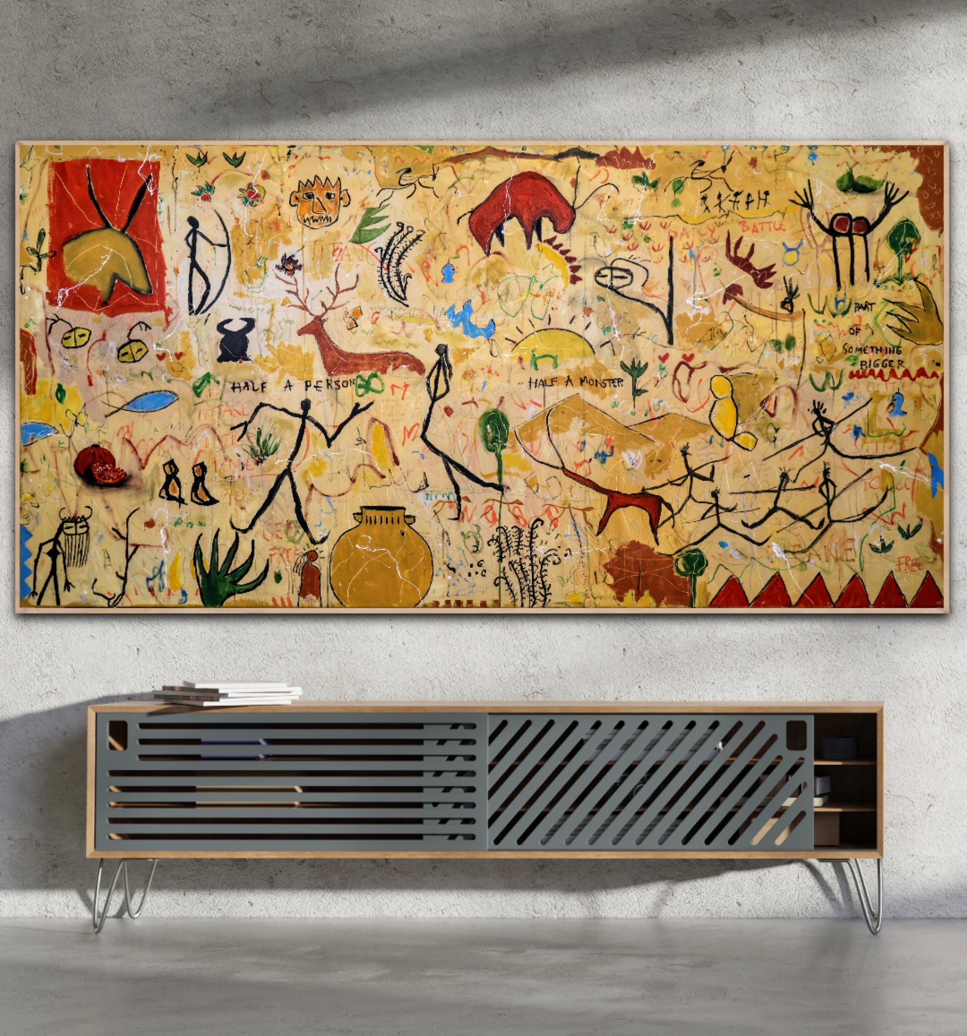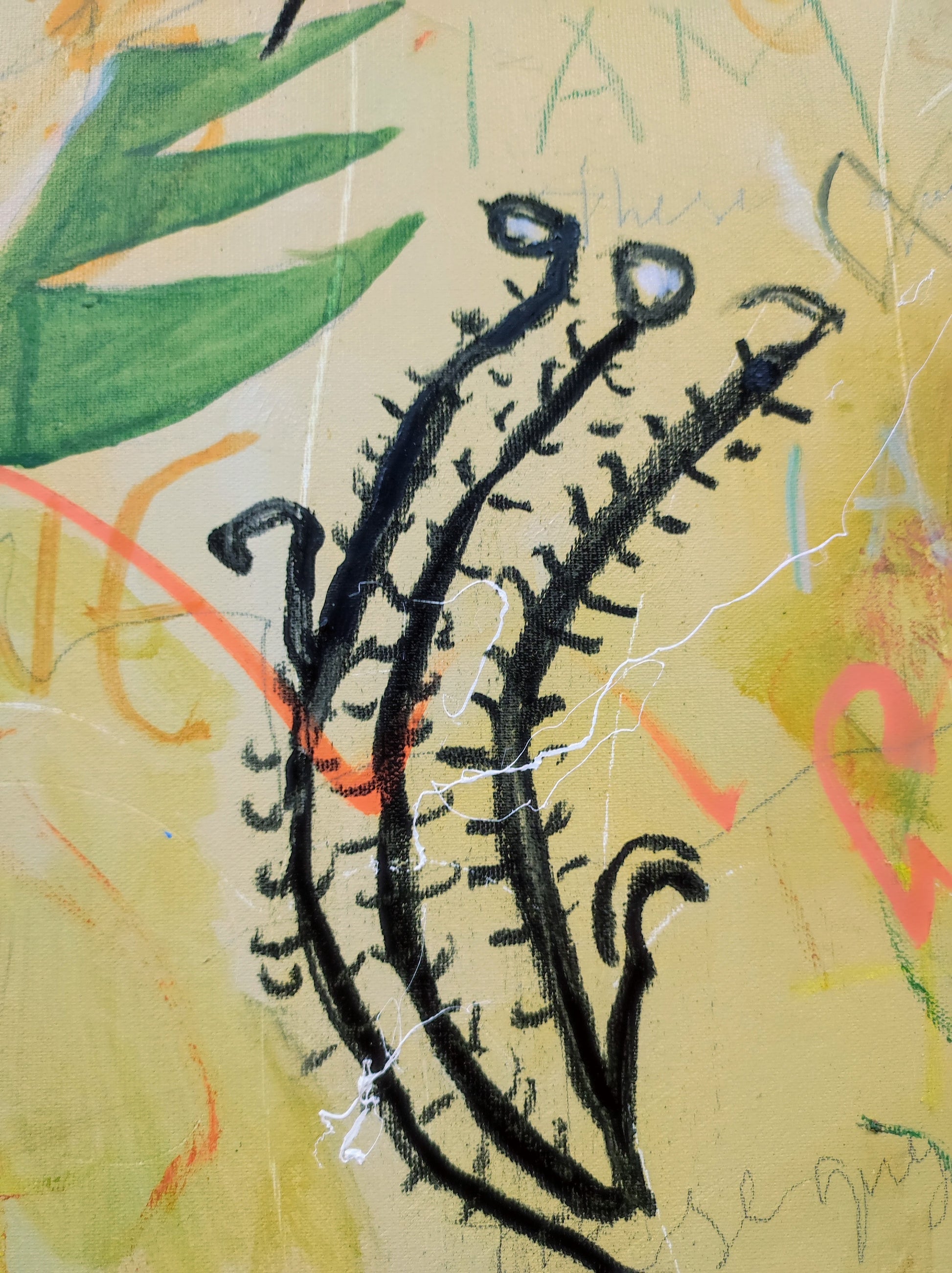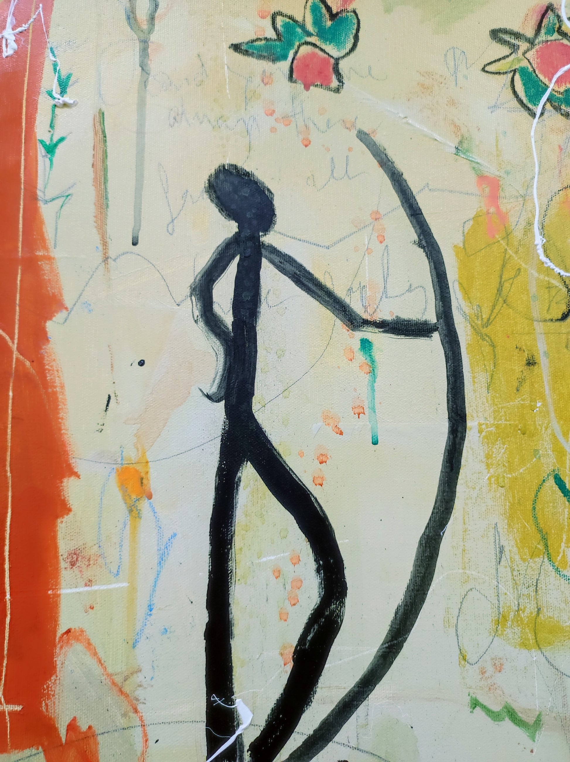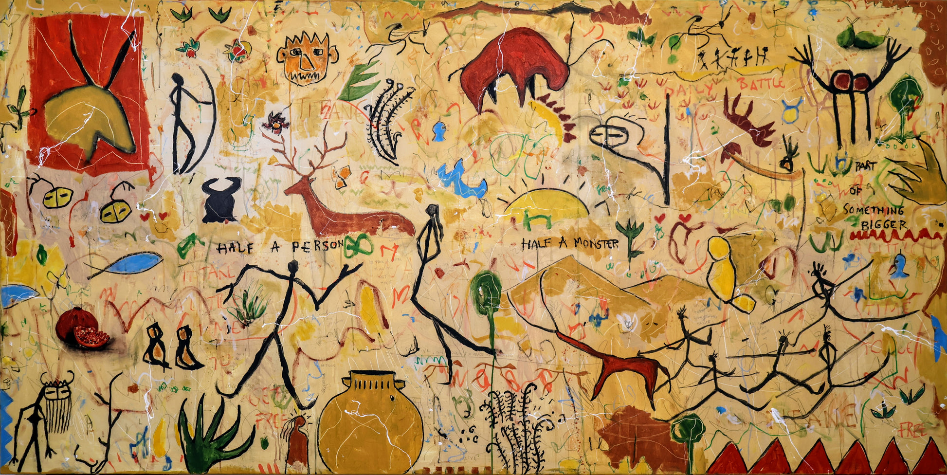 Técnica: acrílico, pigmentos, lápiz y carboncillo.