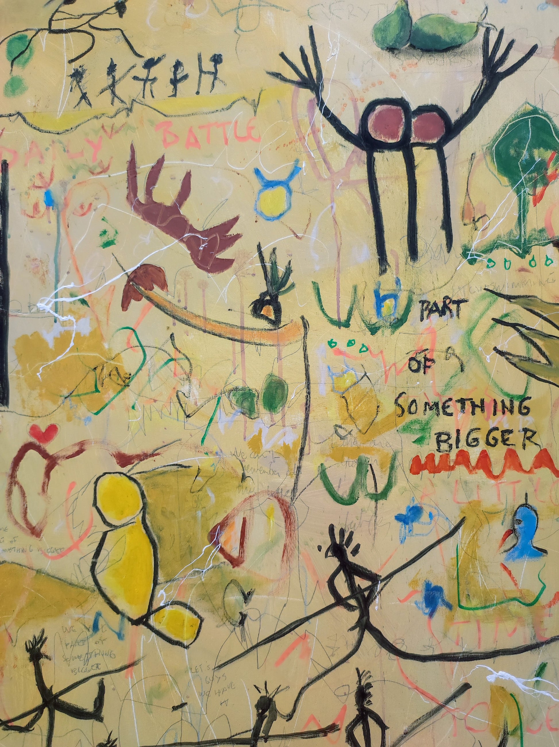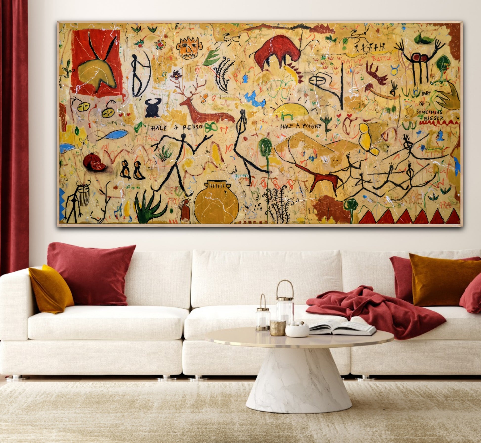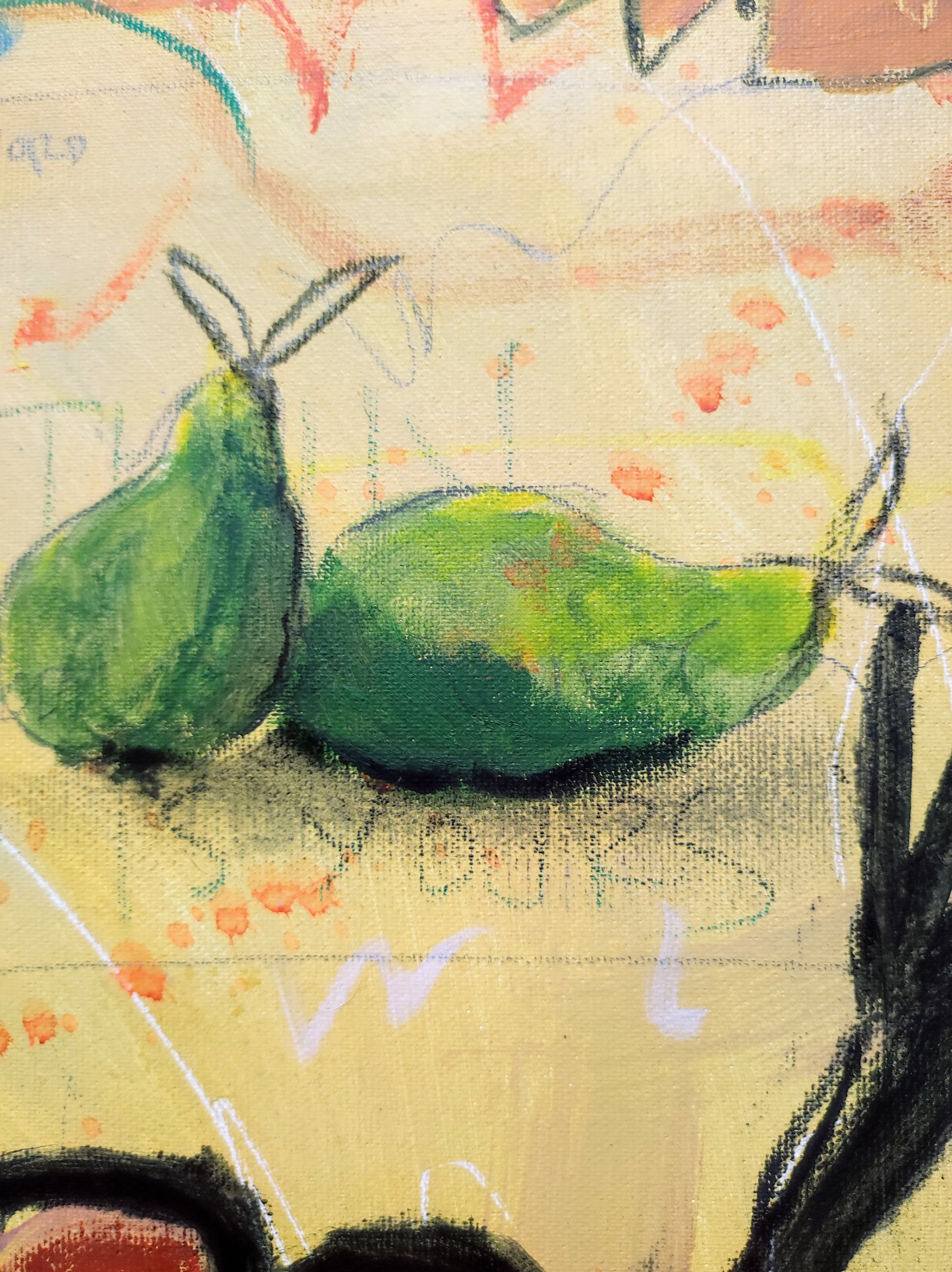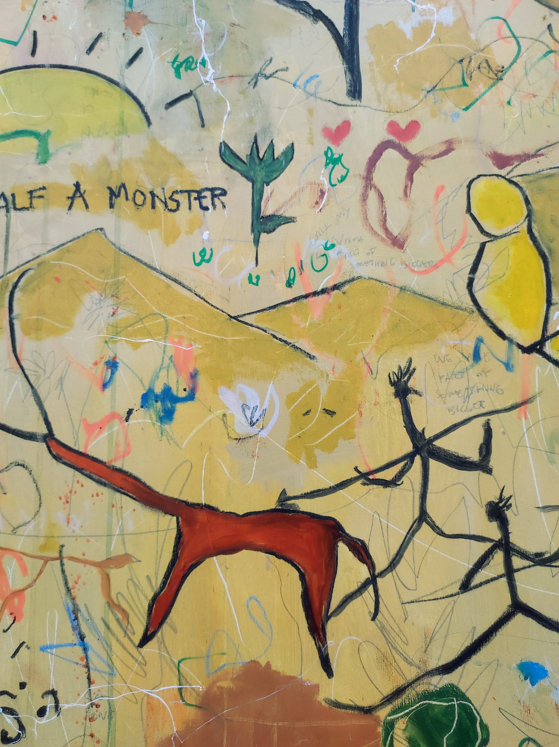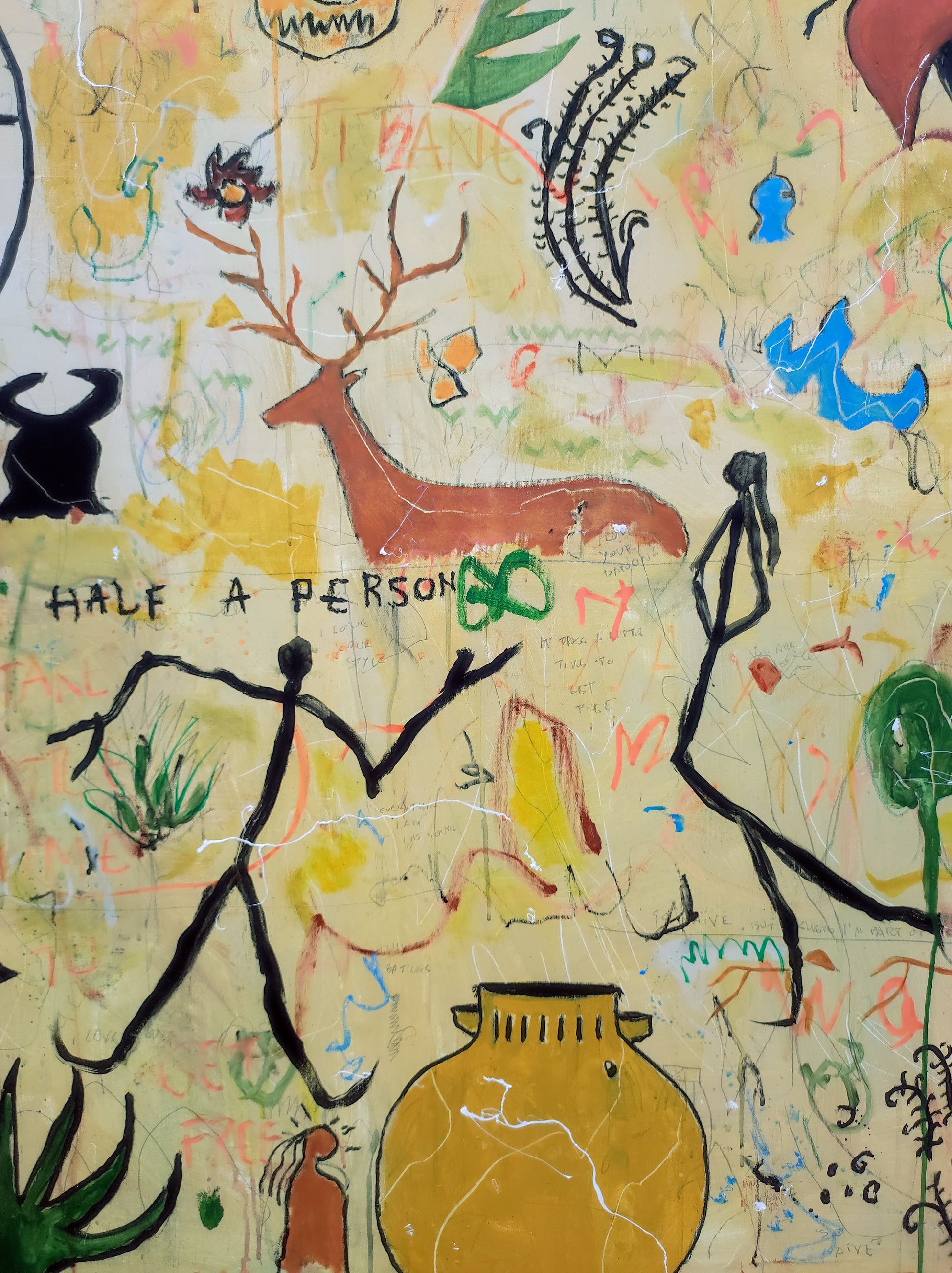 Técnica: acrílico, pigmentos, lápiz y carboncillo.