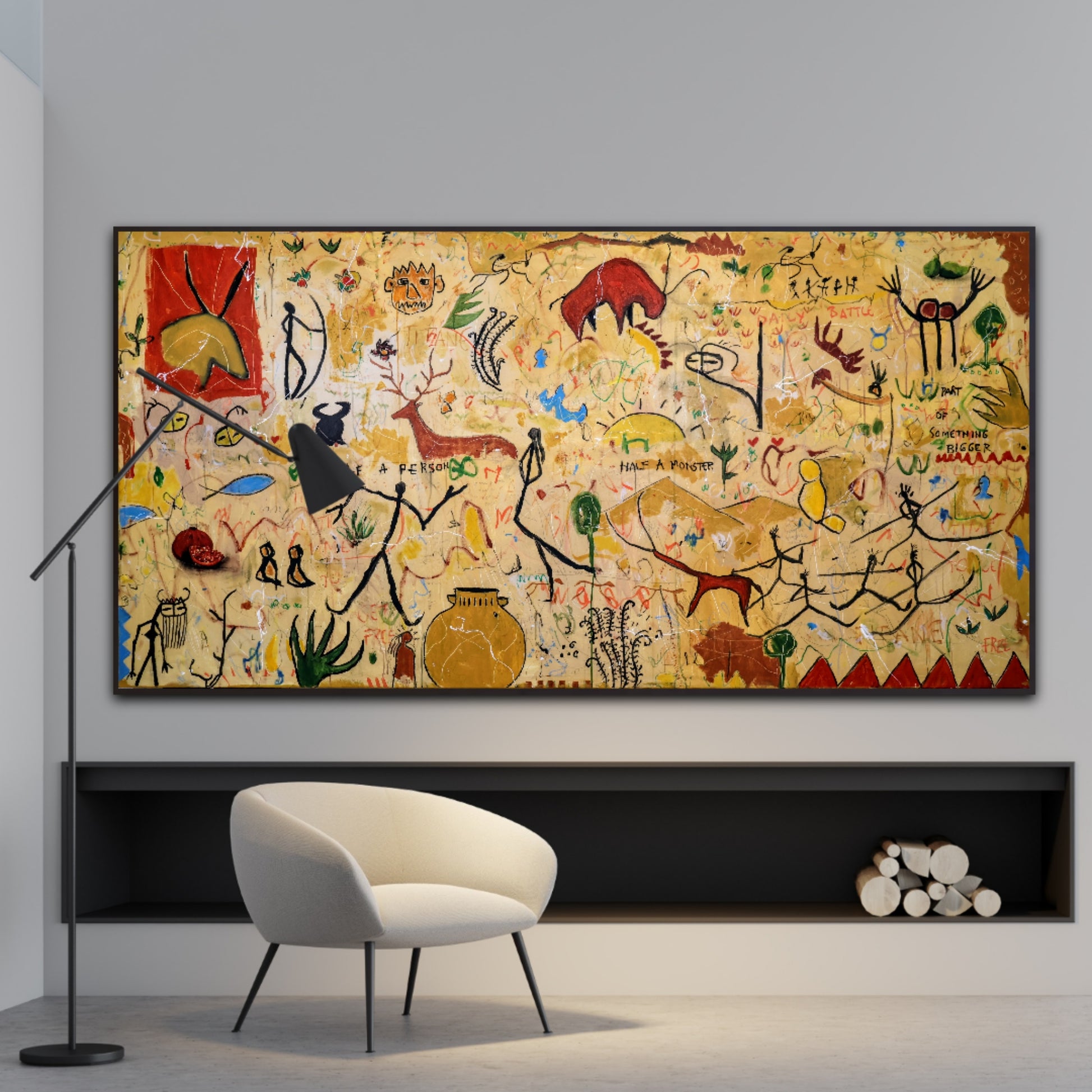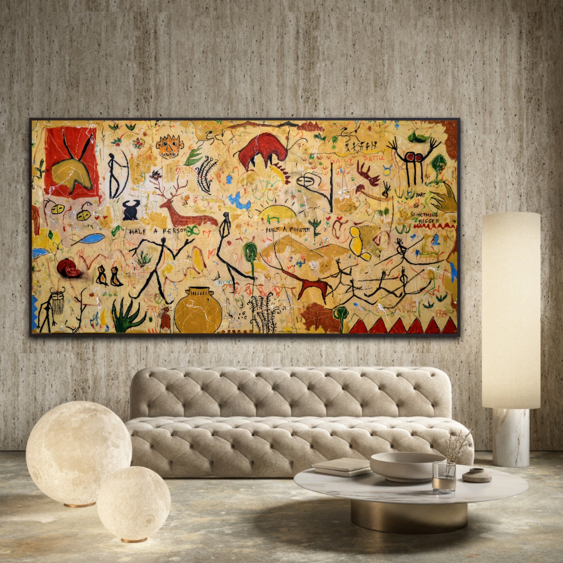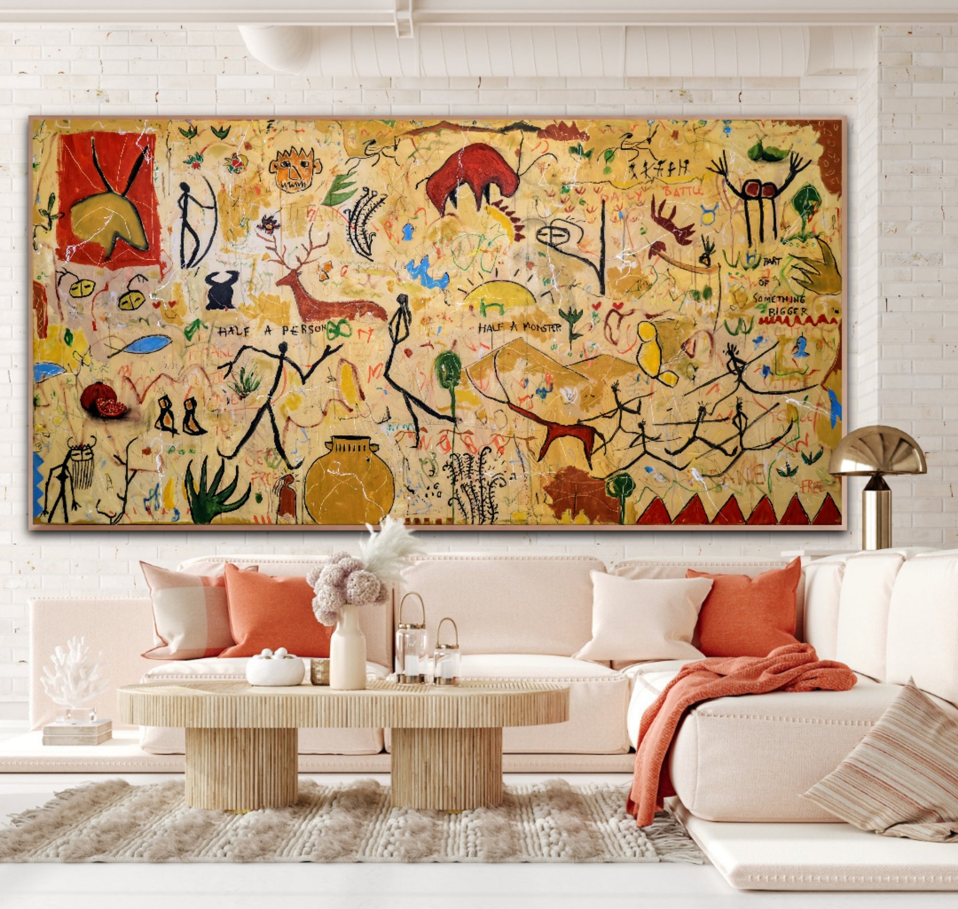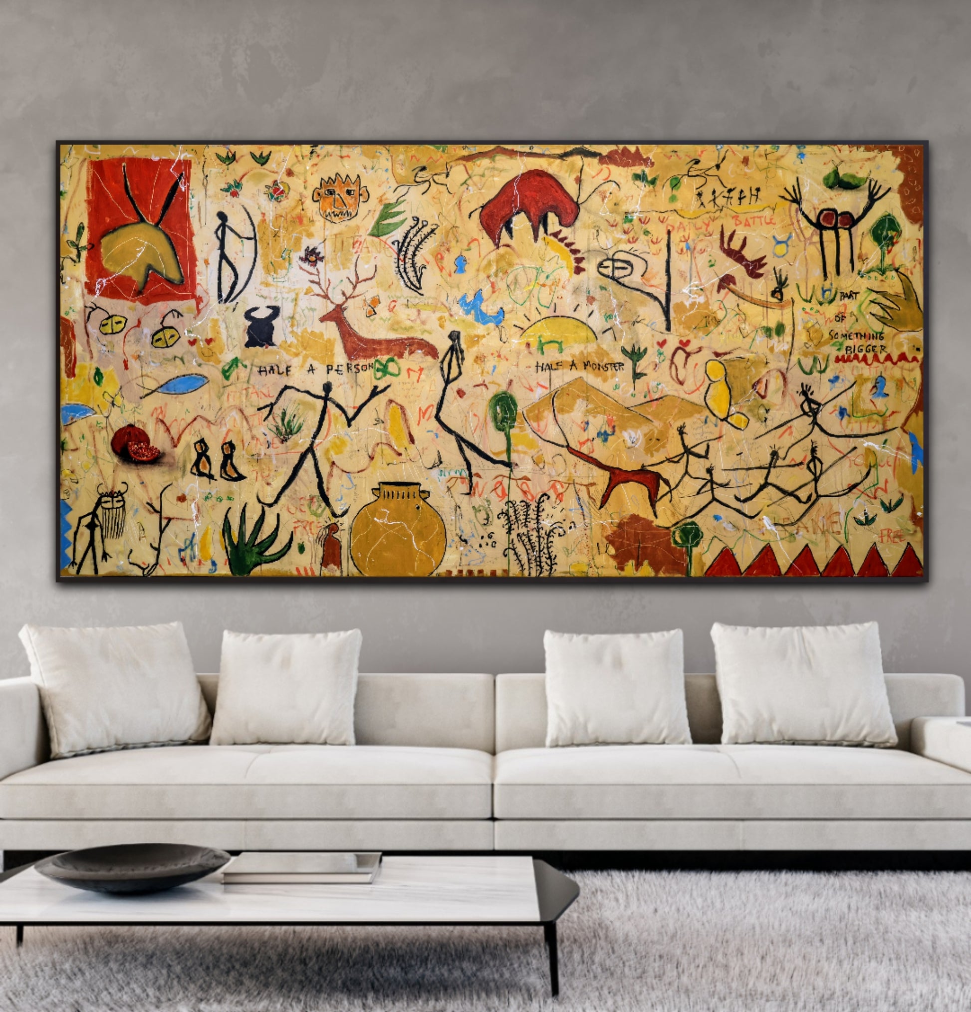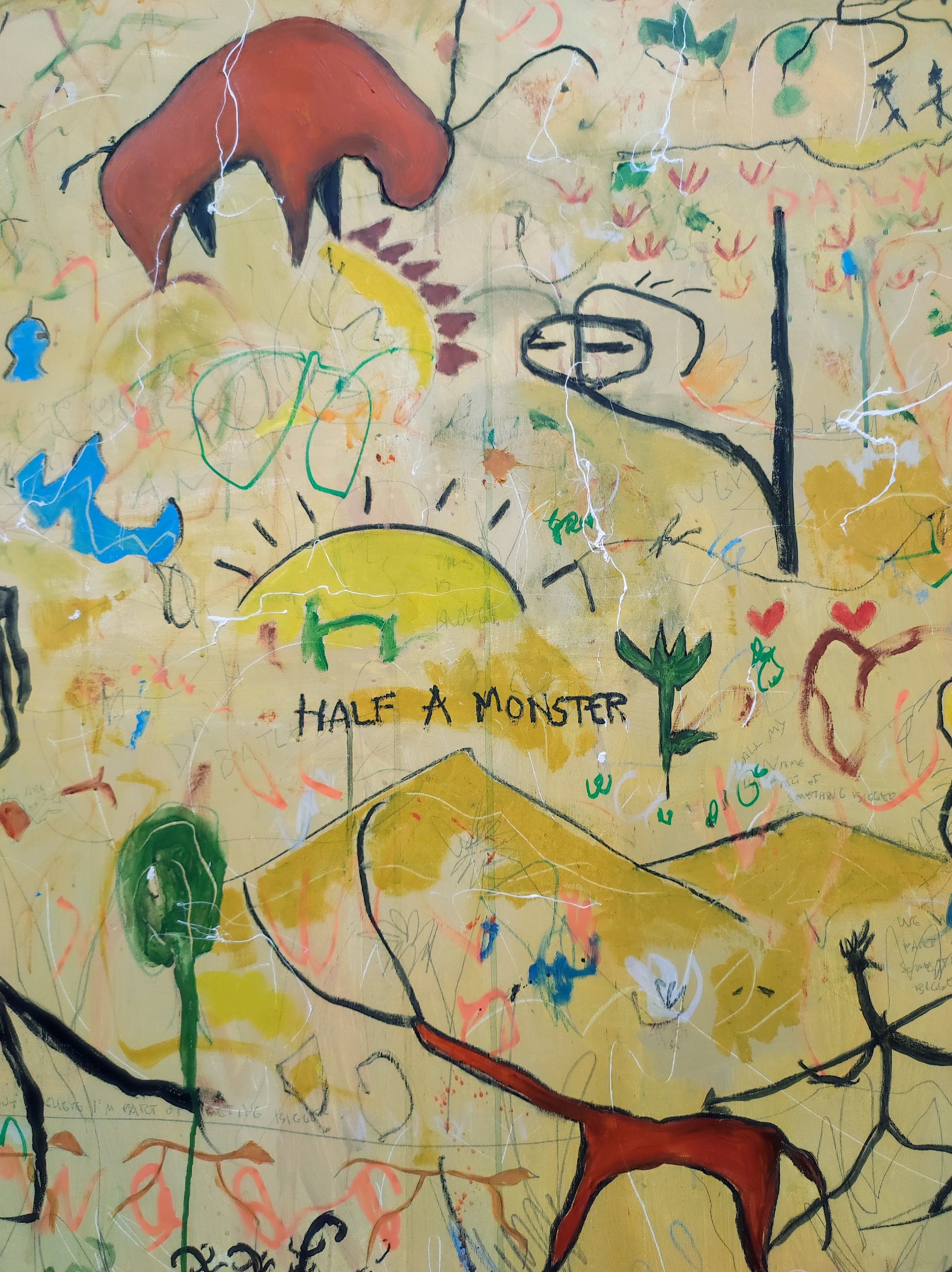 Técnica: acrílico, pigmentos, lápiz y carboncillo.