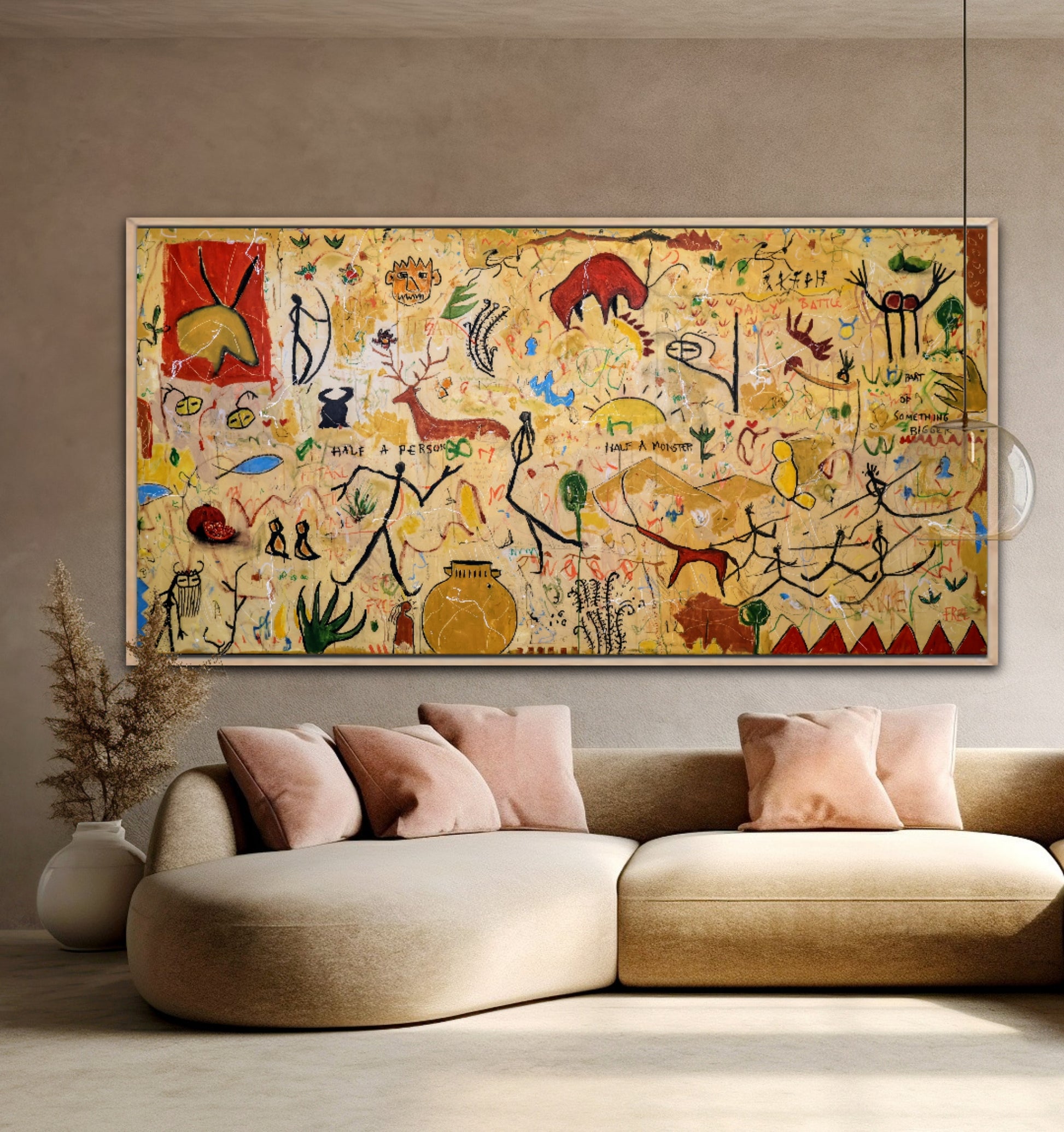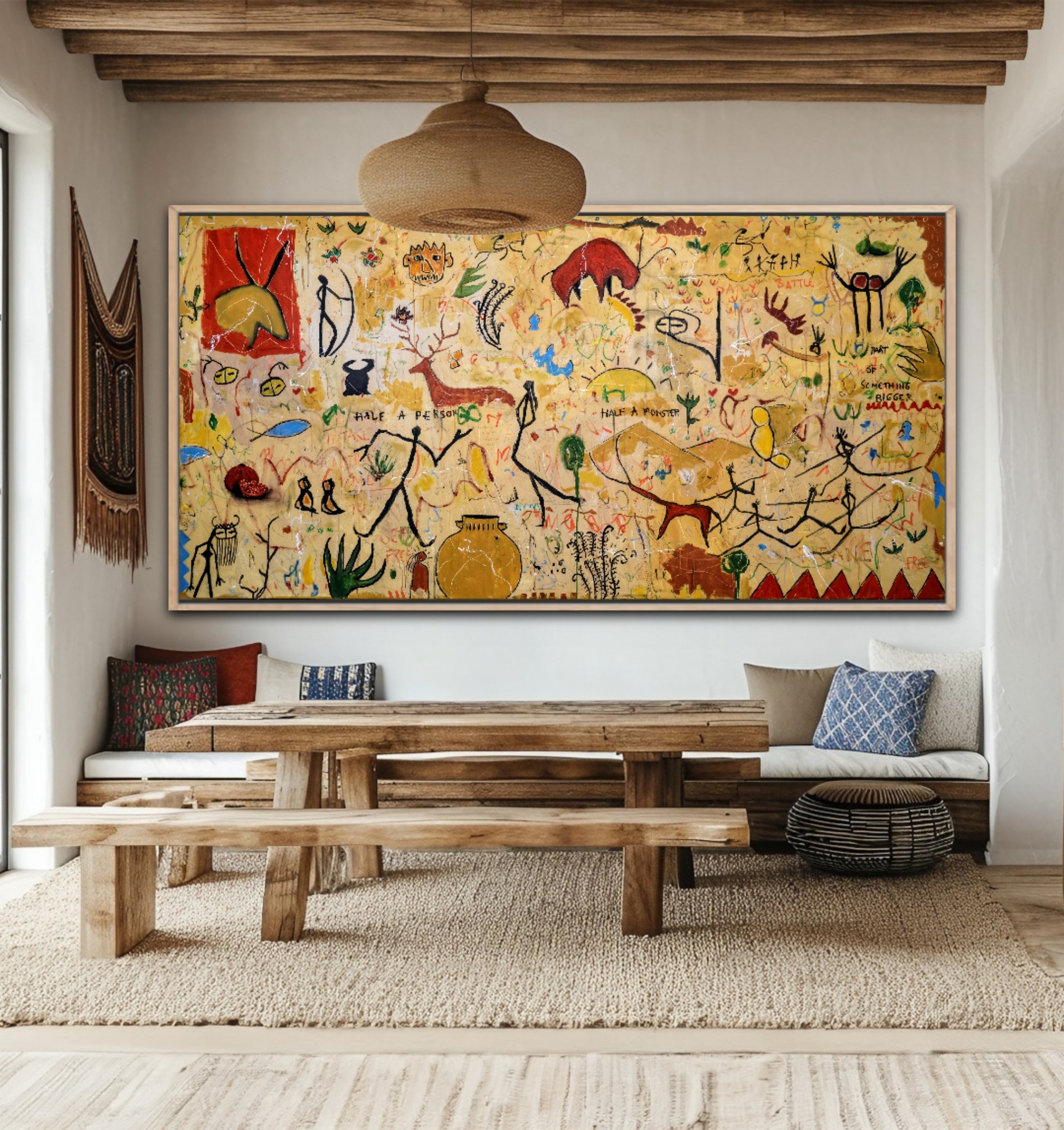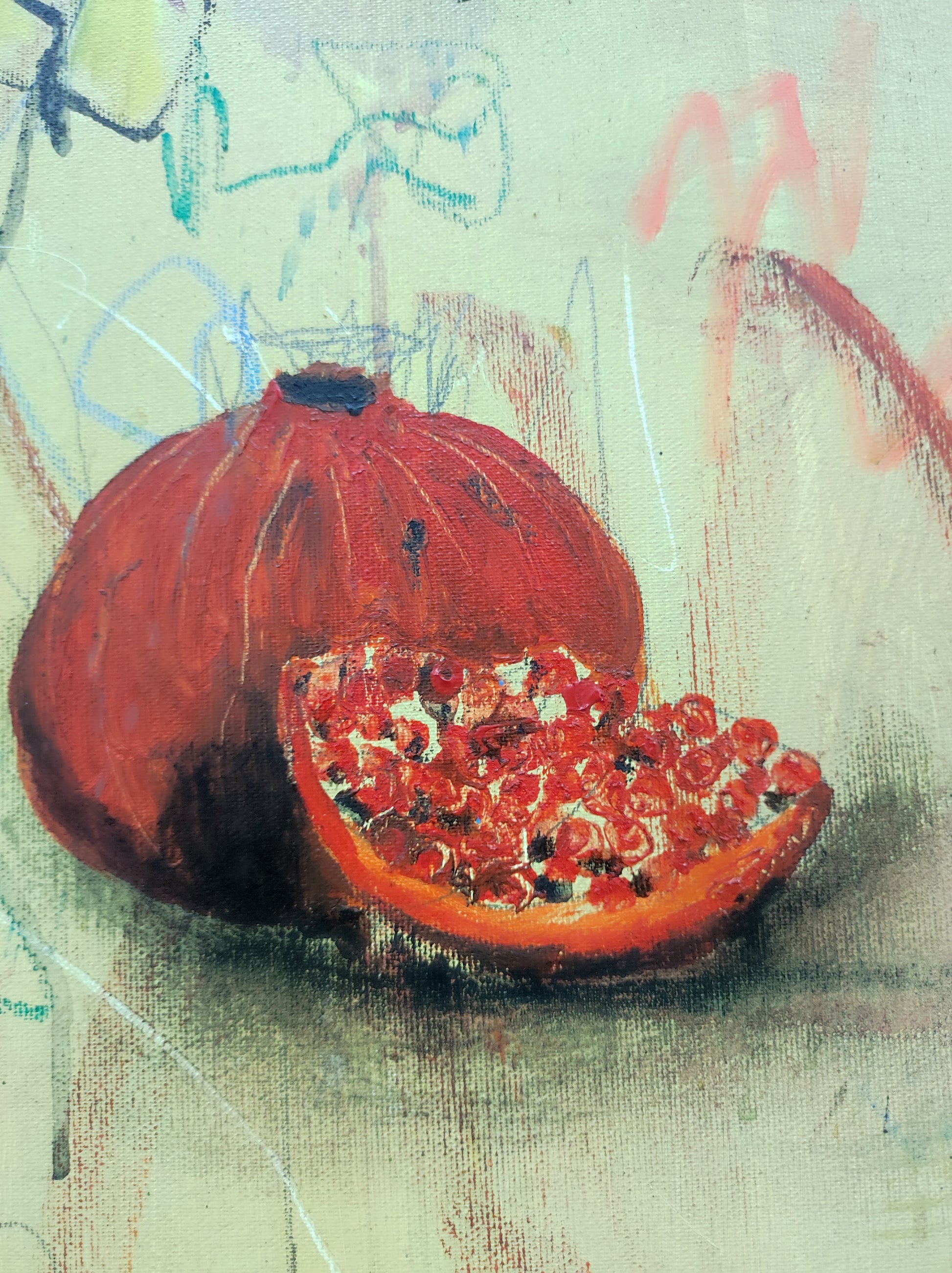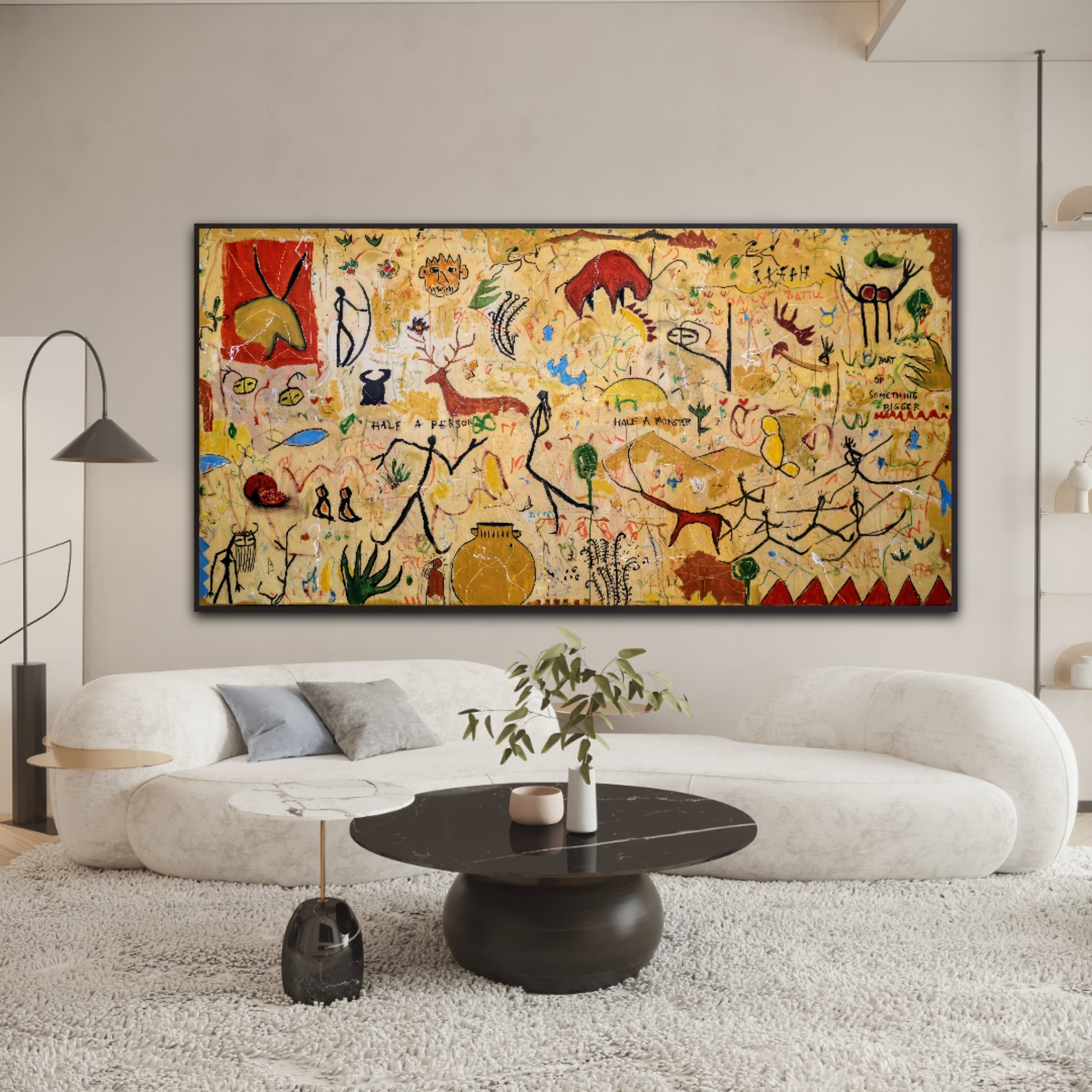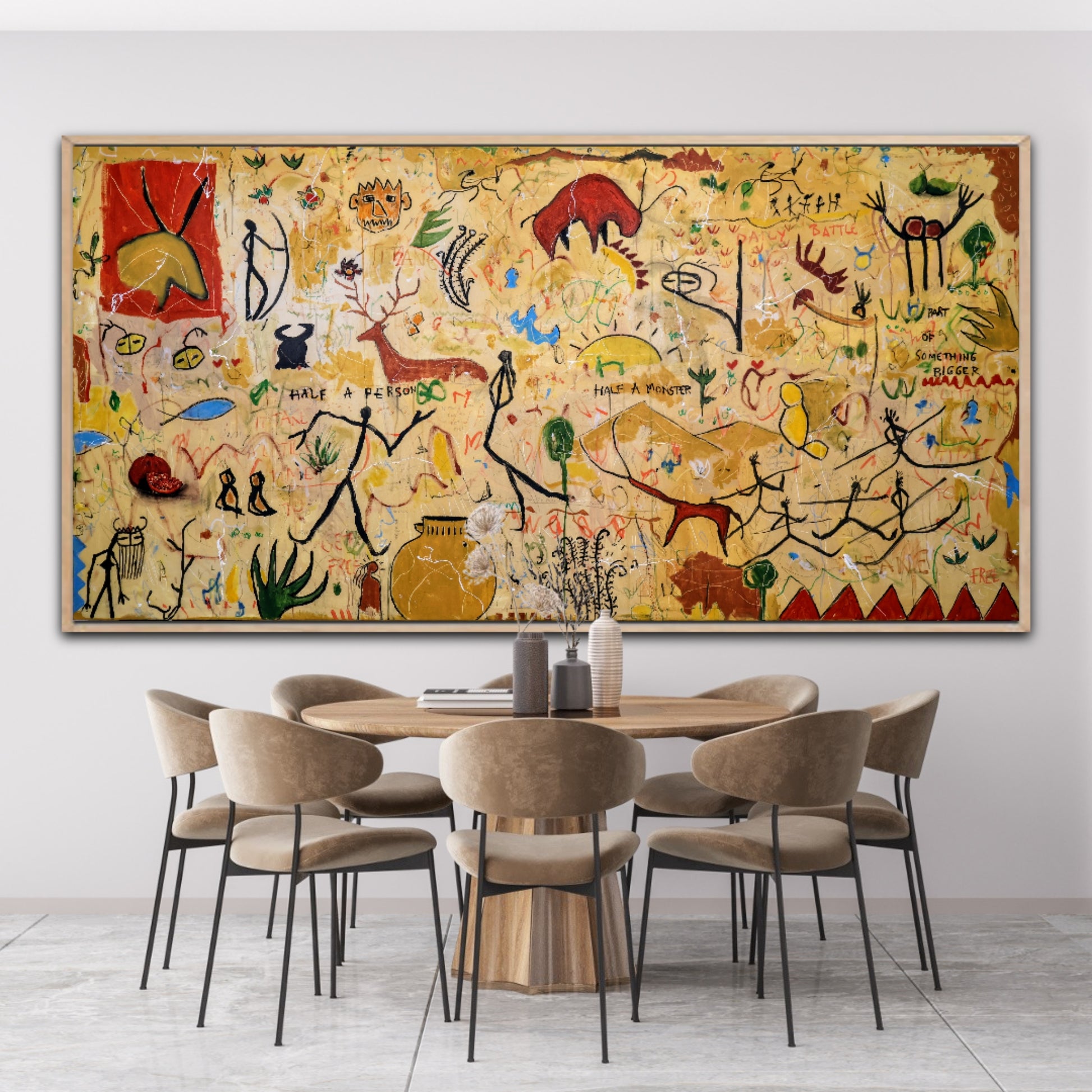 Técnica: acrílico, pigmentos, lápiz y carboncillo.