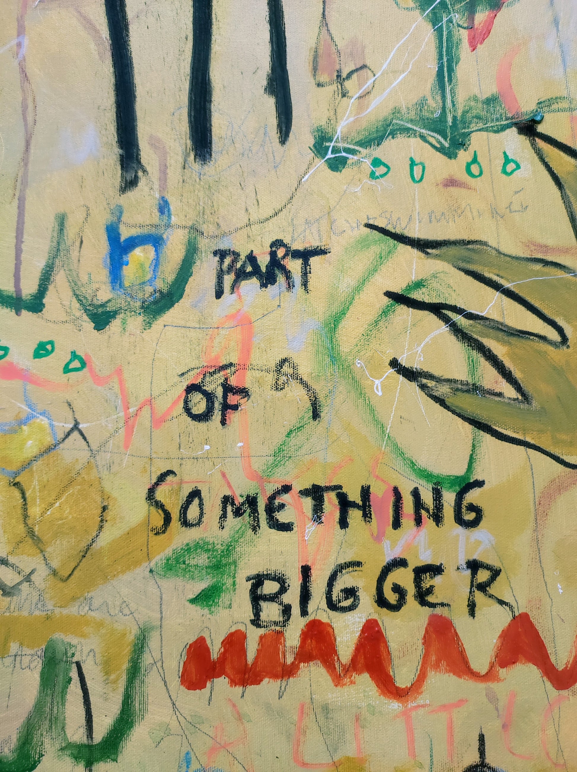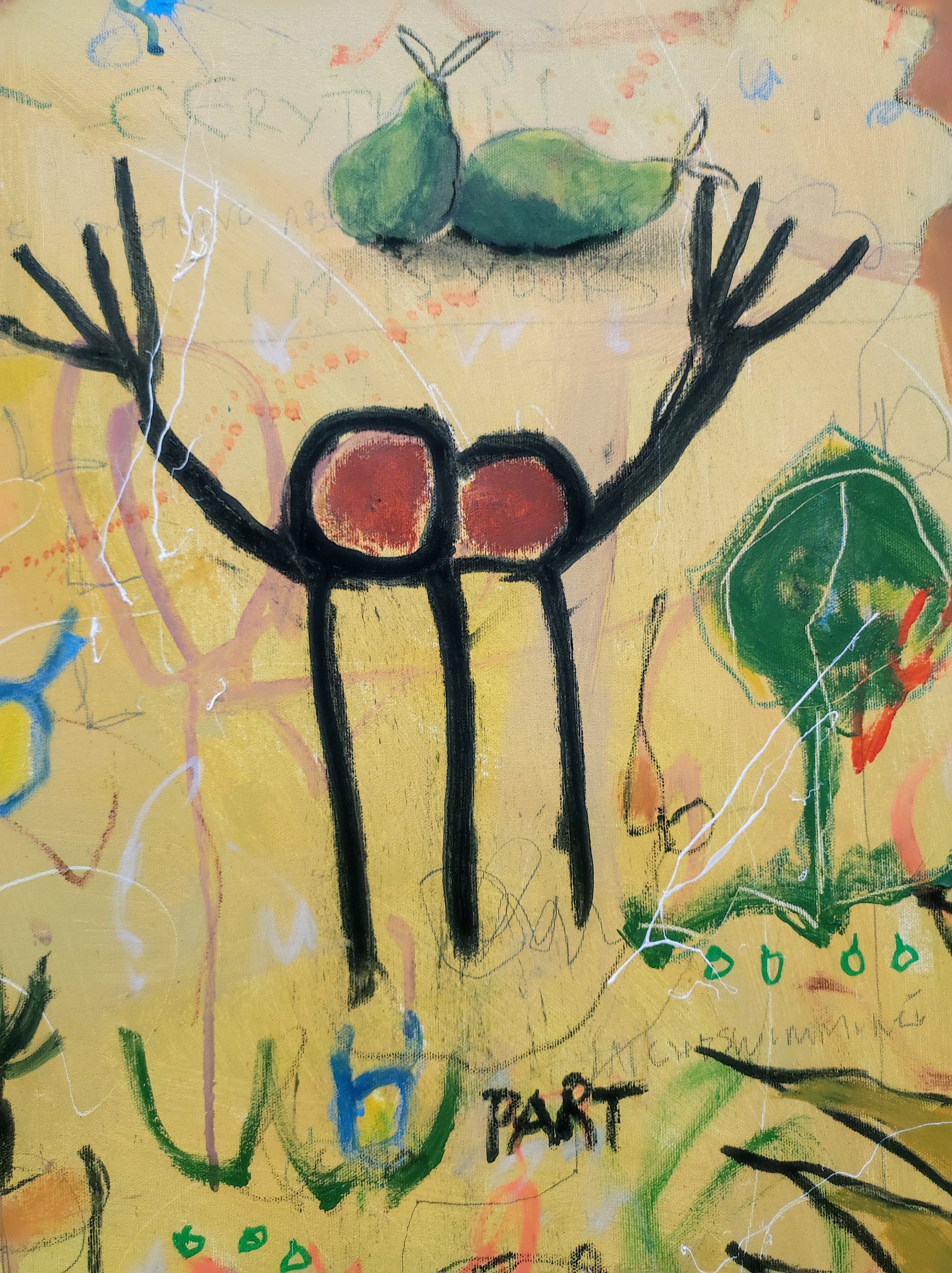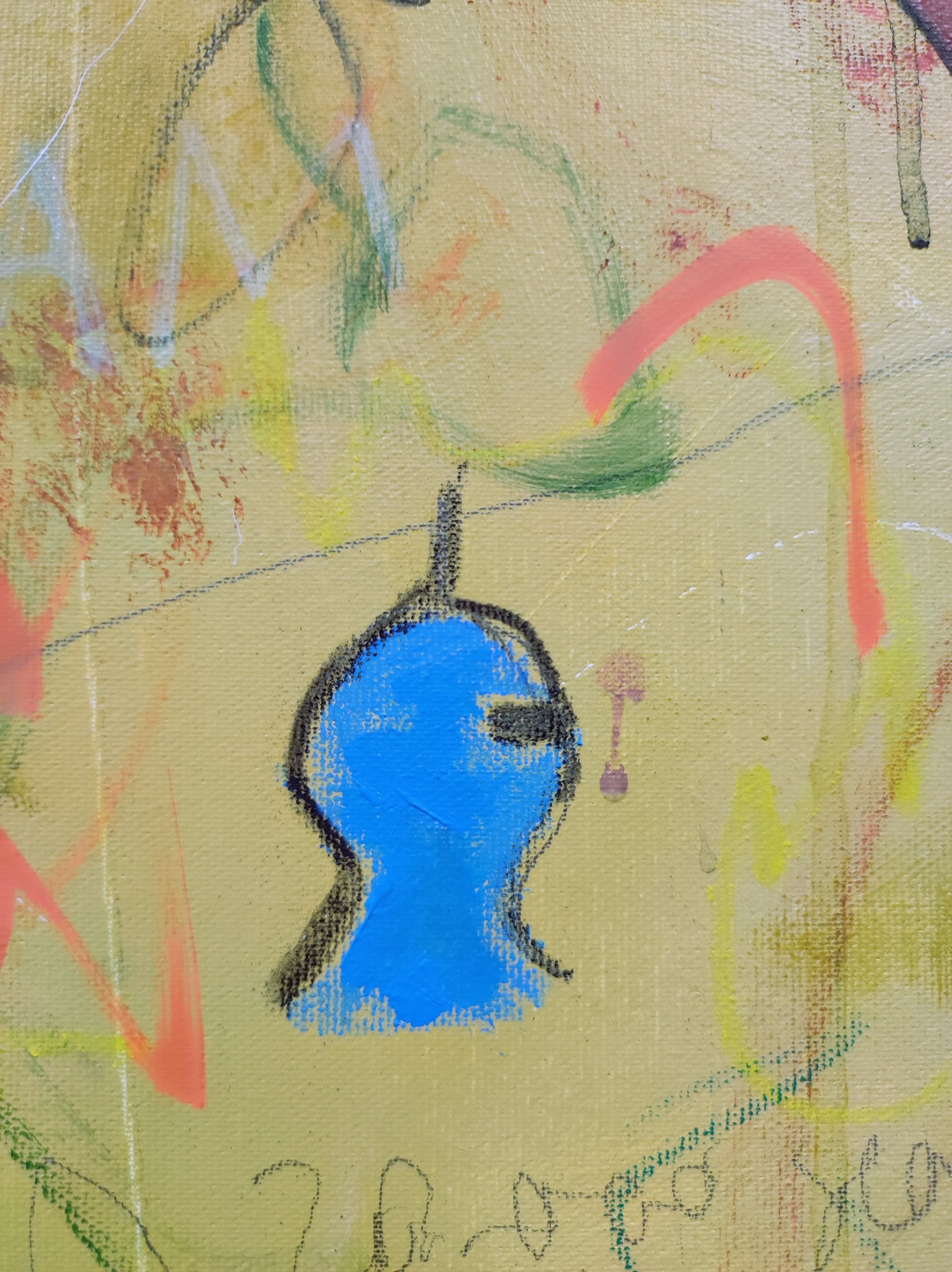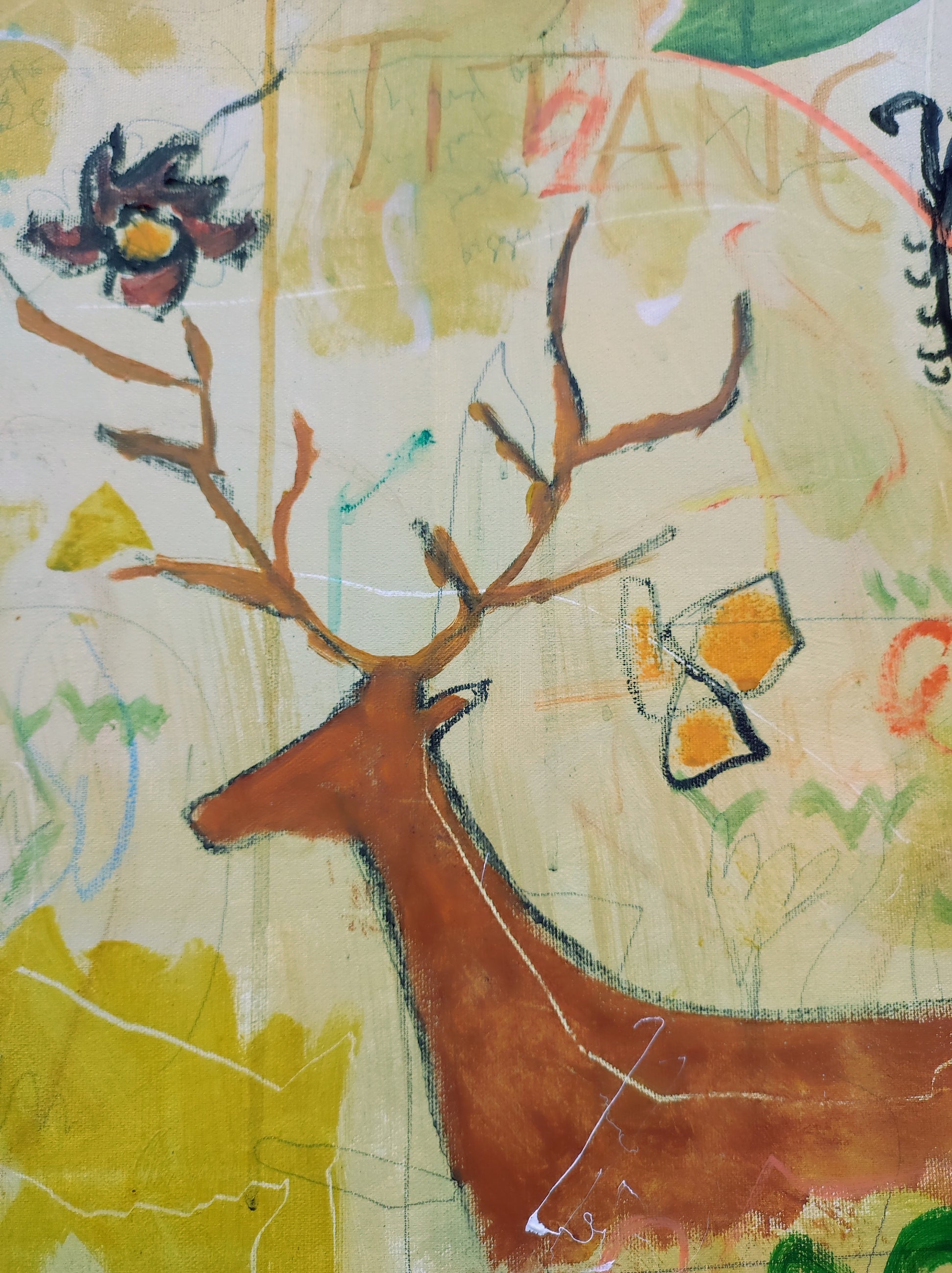 Pintura gestual, intuitiva, que deja que las cosas pasen y se apoya sobre lo que aparece. Aprovechando el accidente y aceptando las consecuencias.