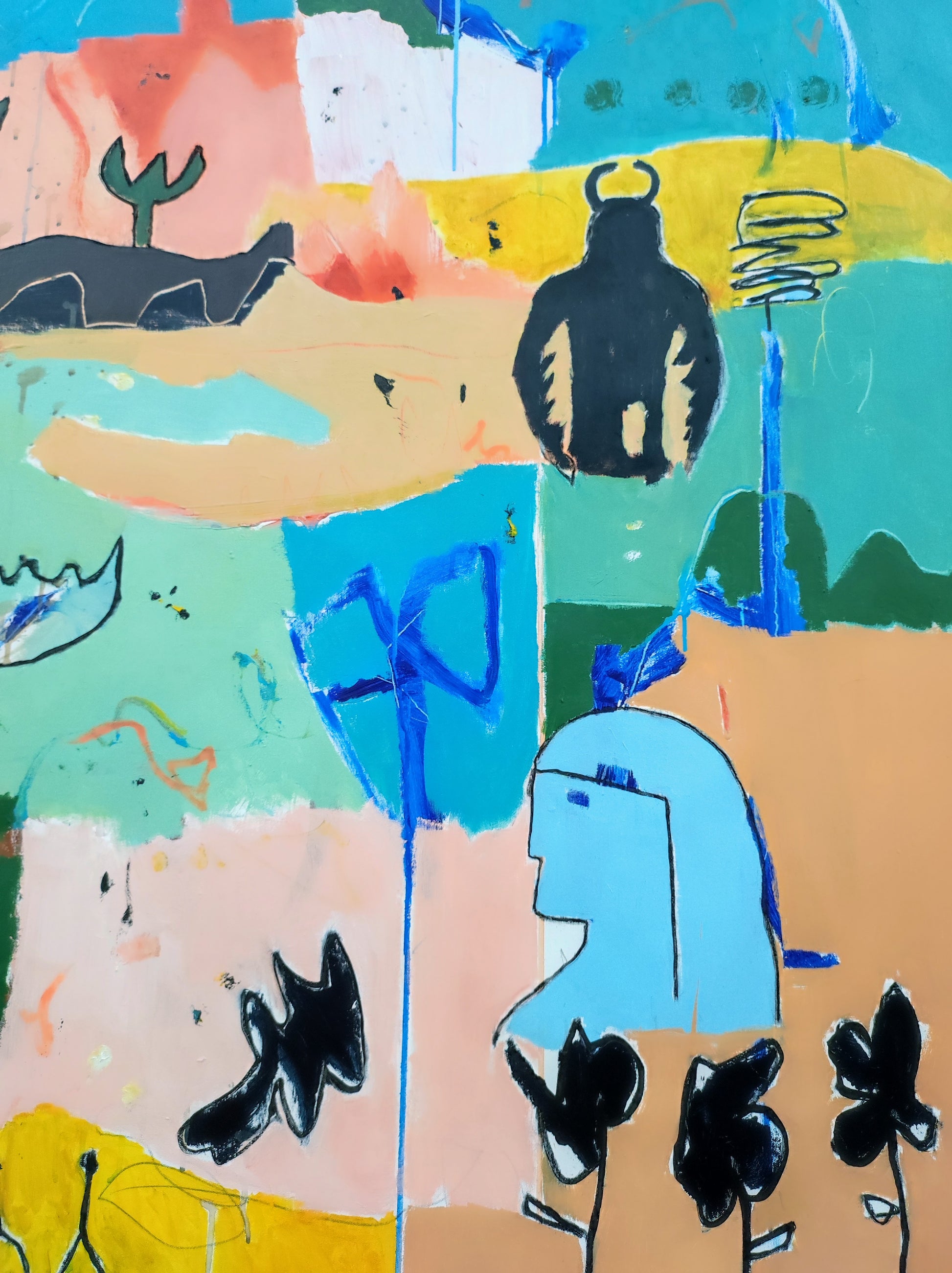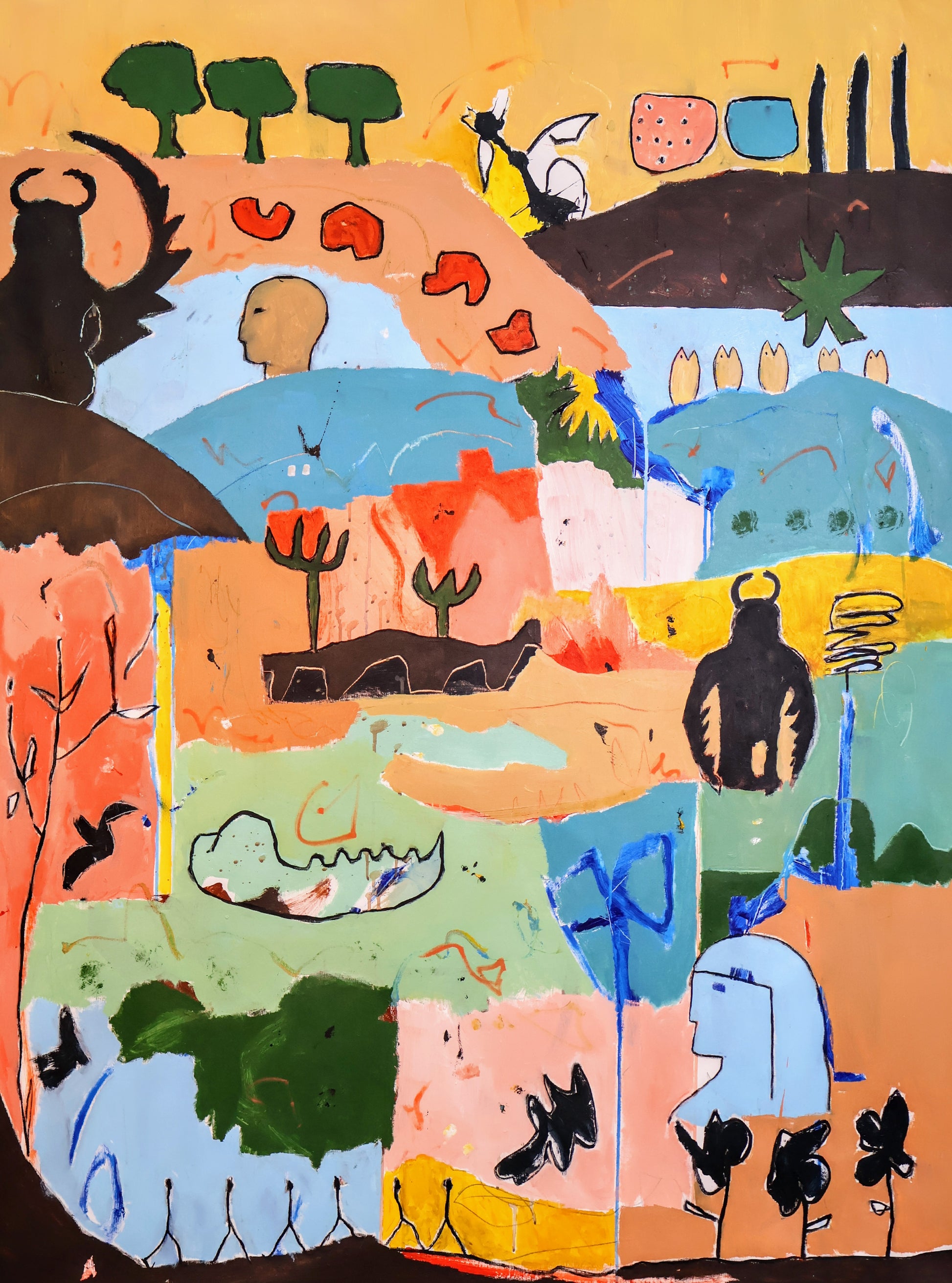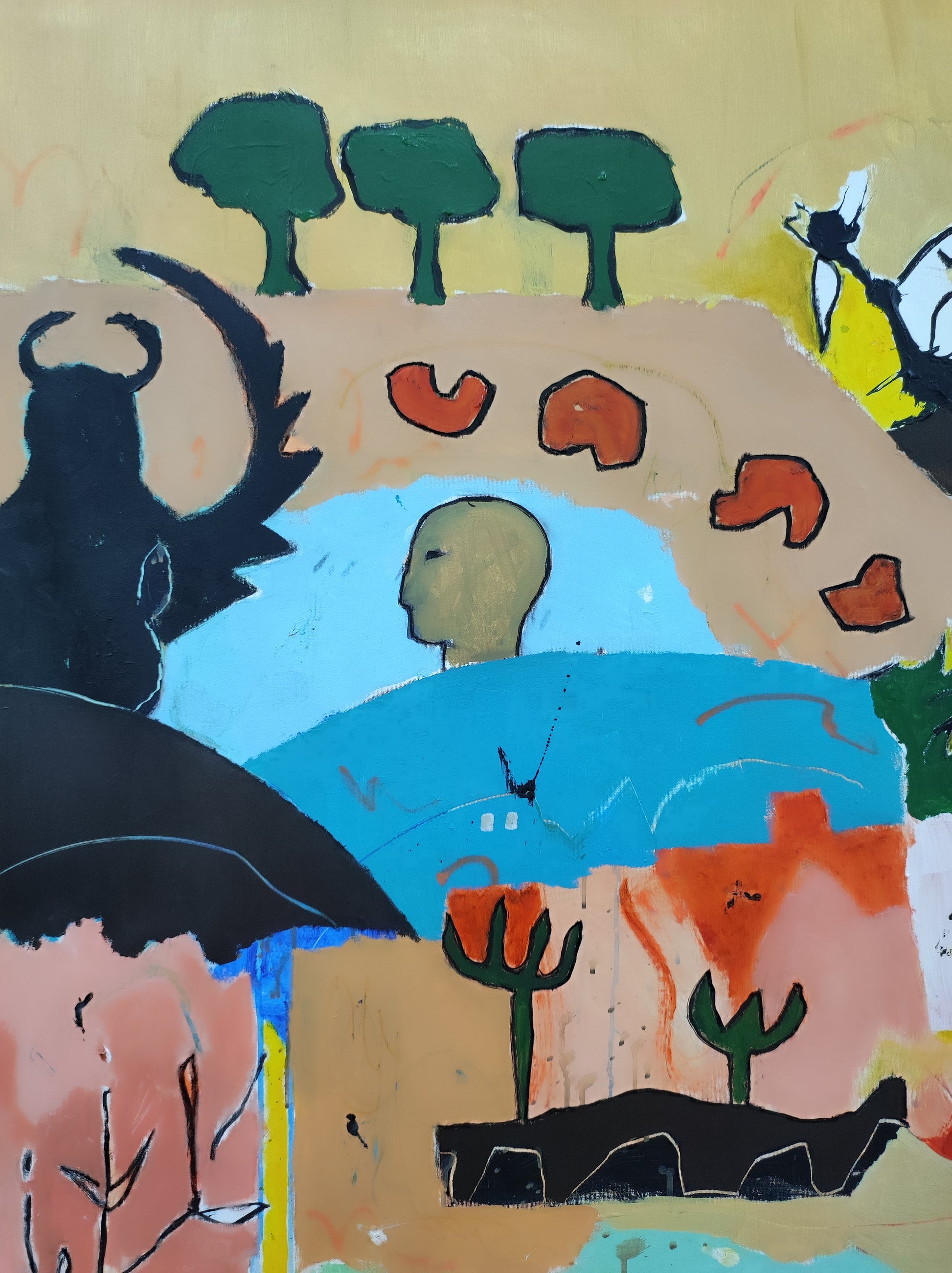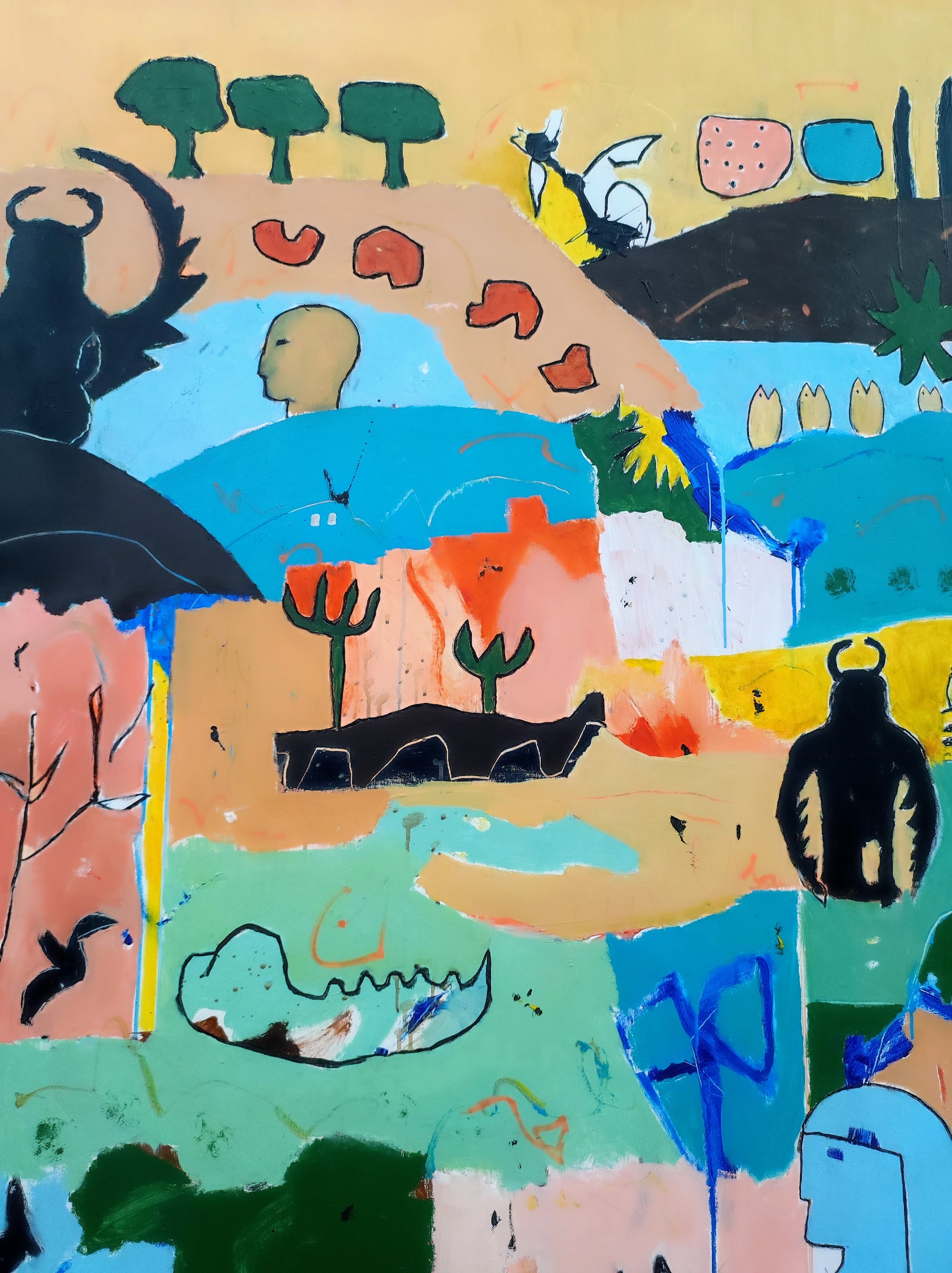 Técnica: acrílico, pigmentos, lápiz, carboncillo y tinta china.