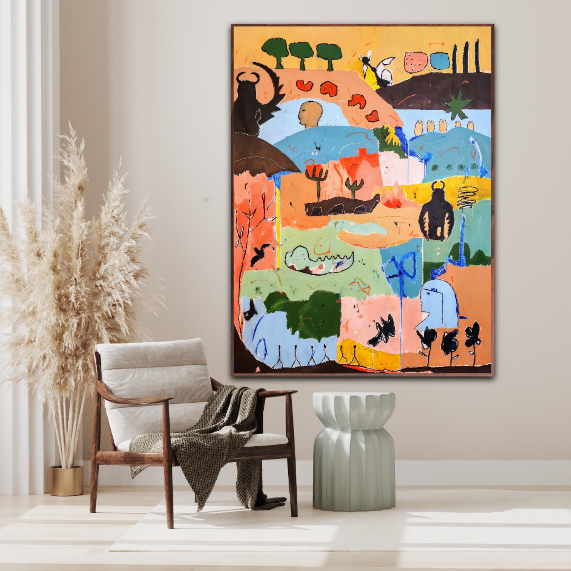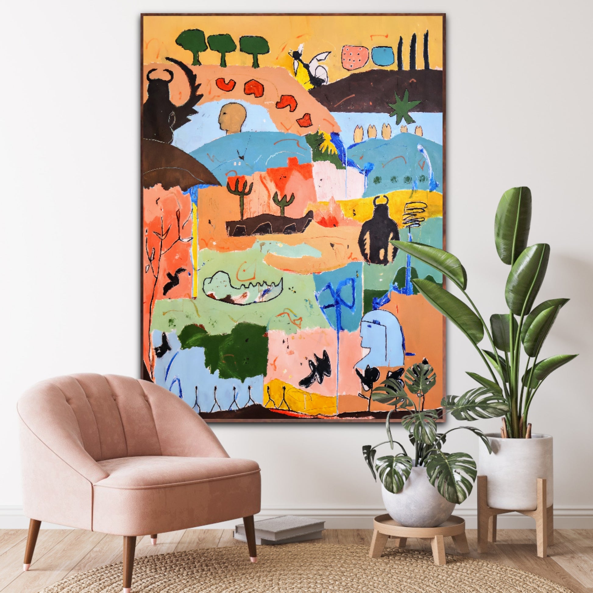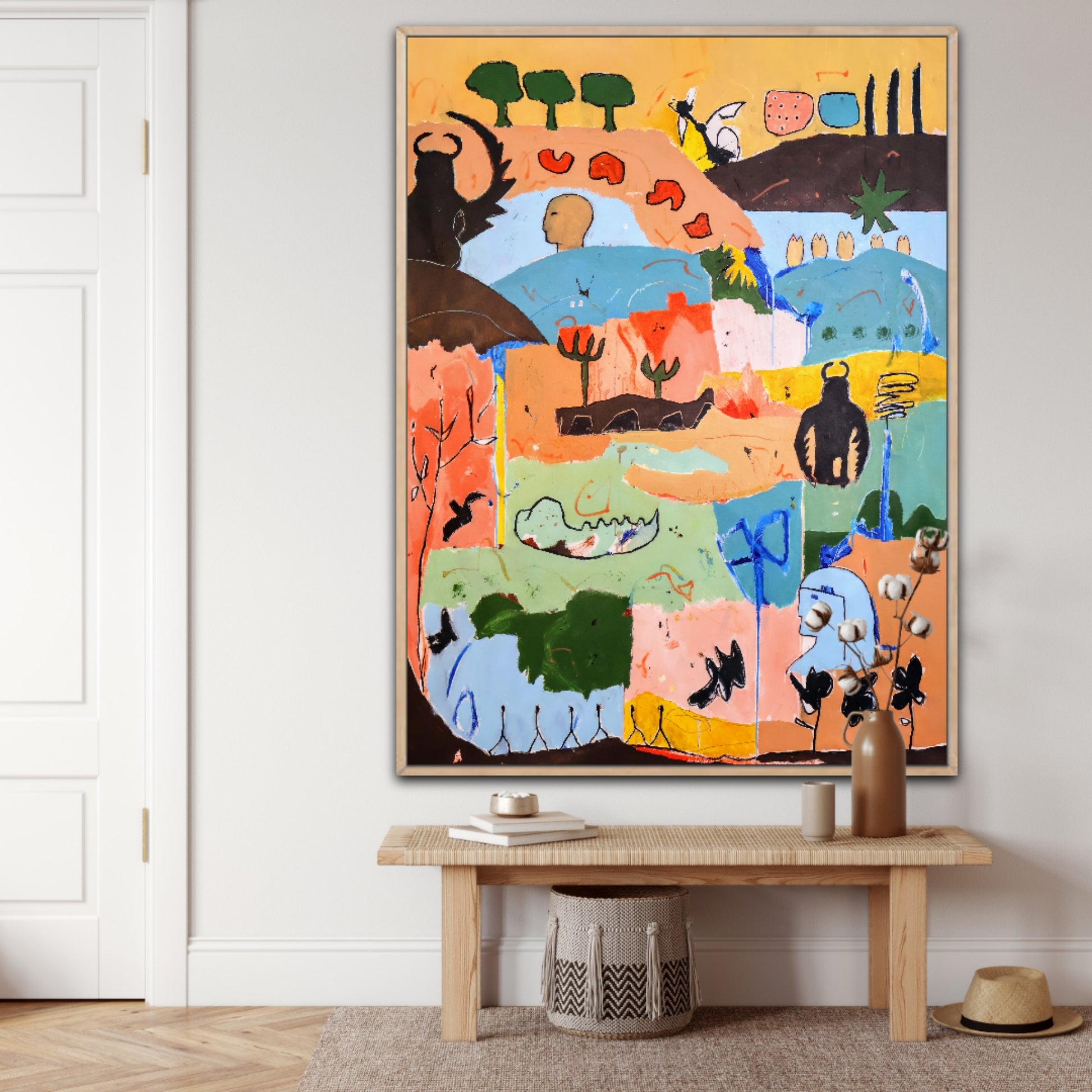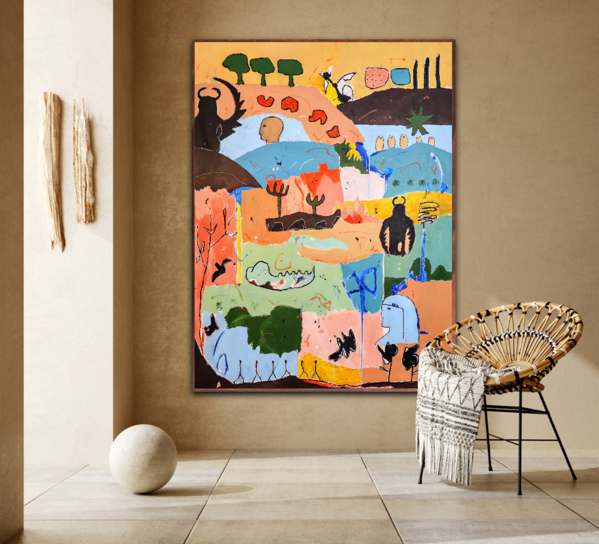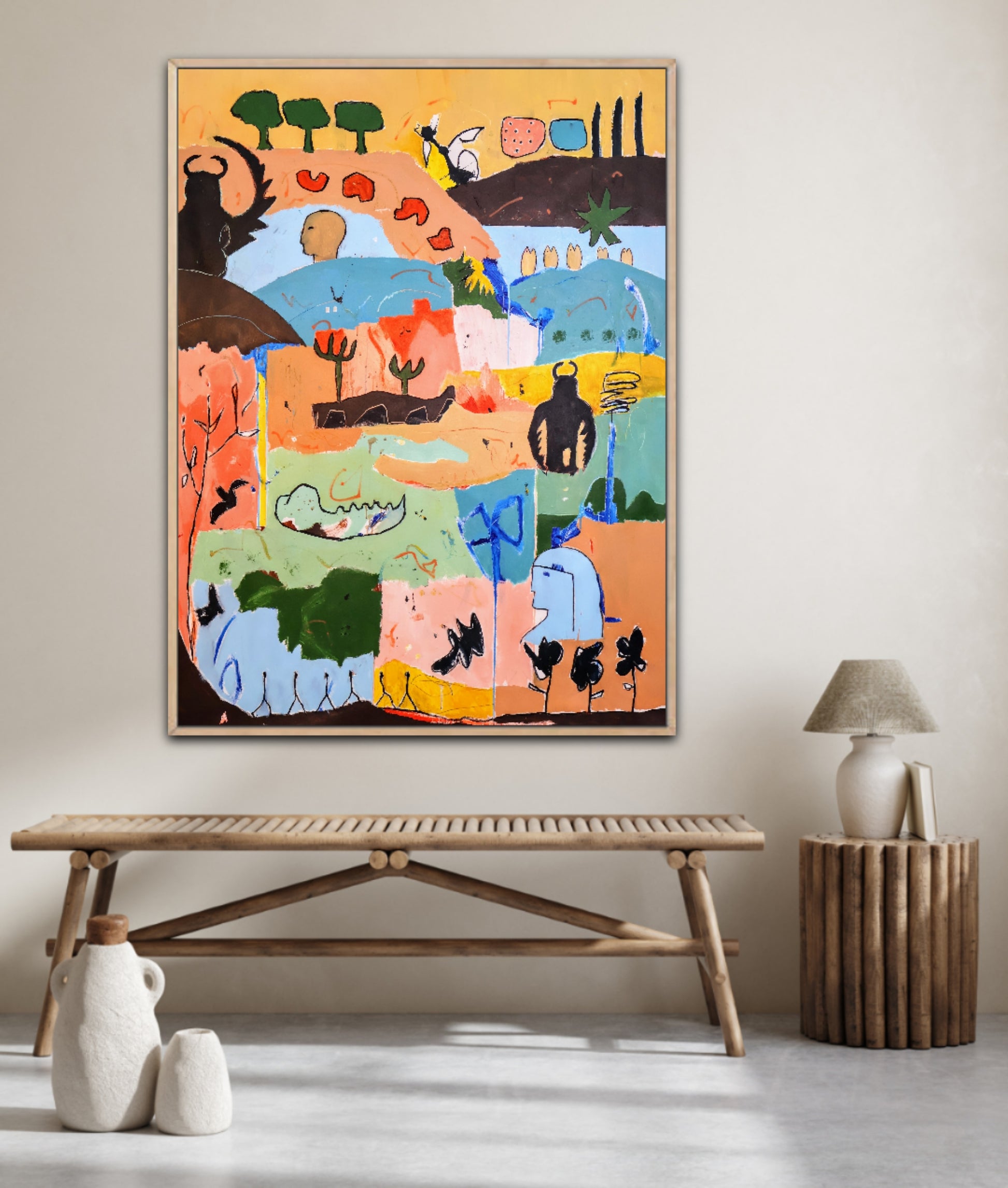 Técnica: acrílico, pigmentos, lápiz, carboncillo y tinta china.