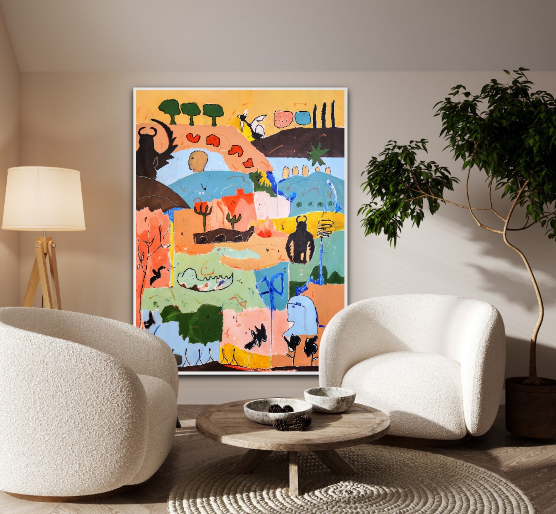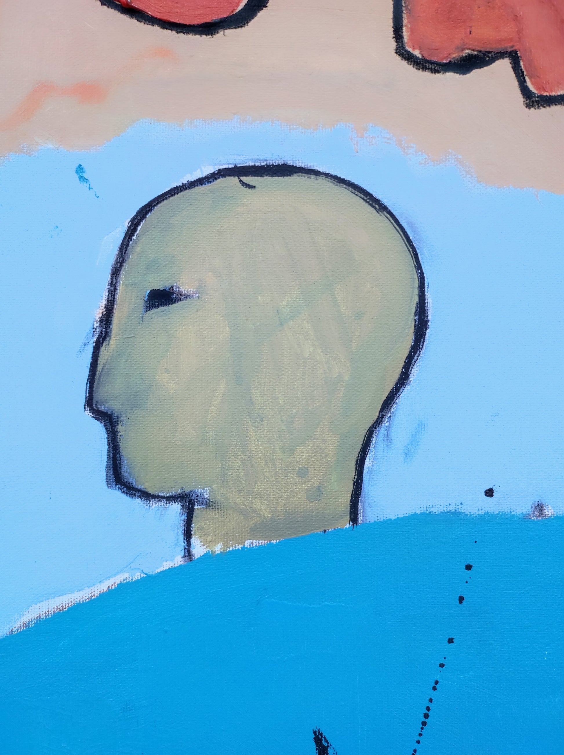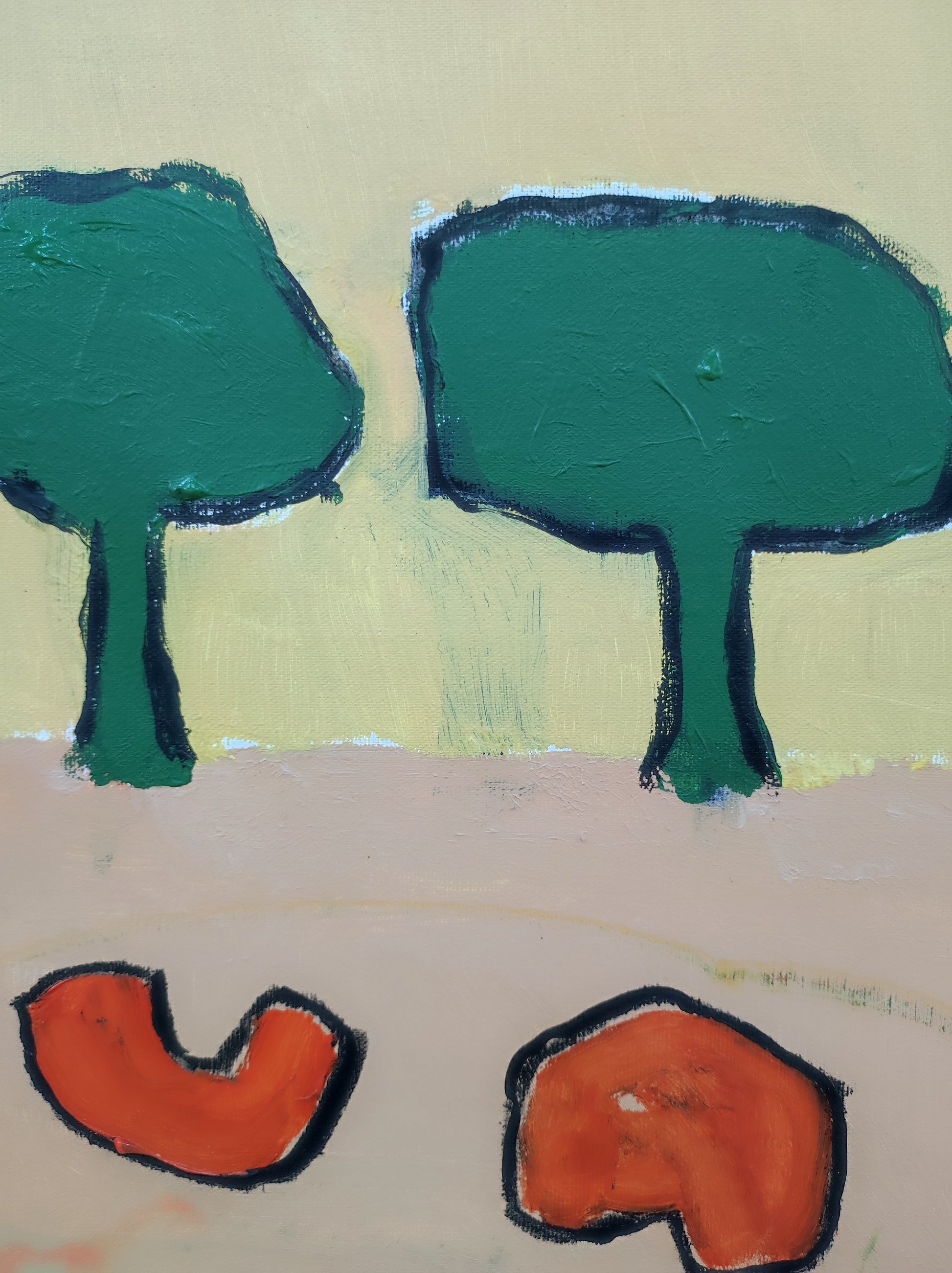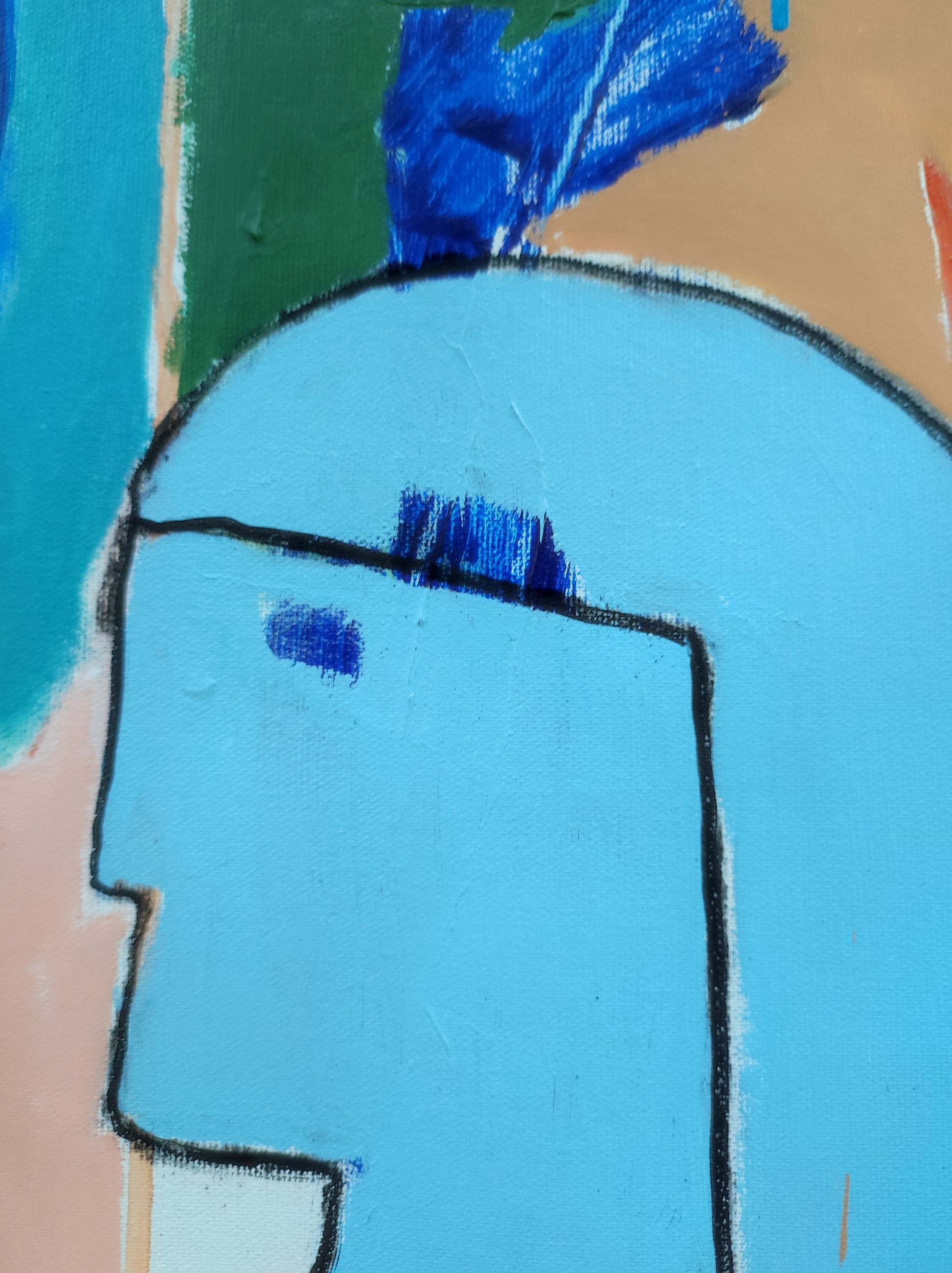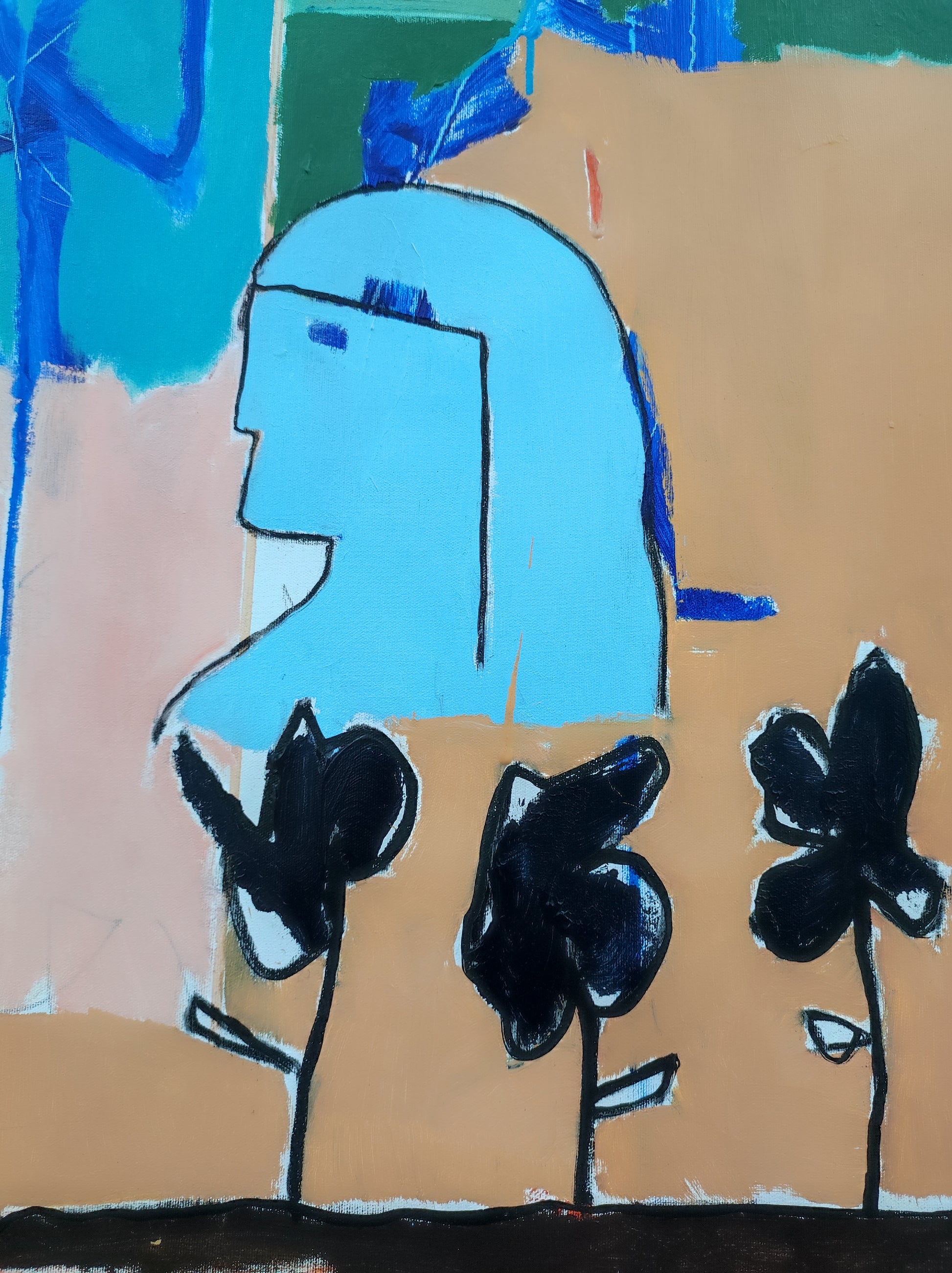 Pintura gestual, intuitiva, que deja que las cosas pasen y se apoya sobre lo que aparece. Aprovechando el accidente y aceptando las consecuencias.
