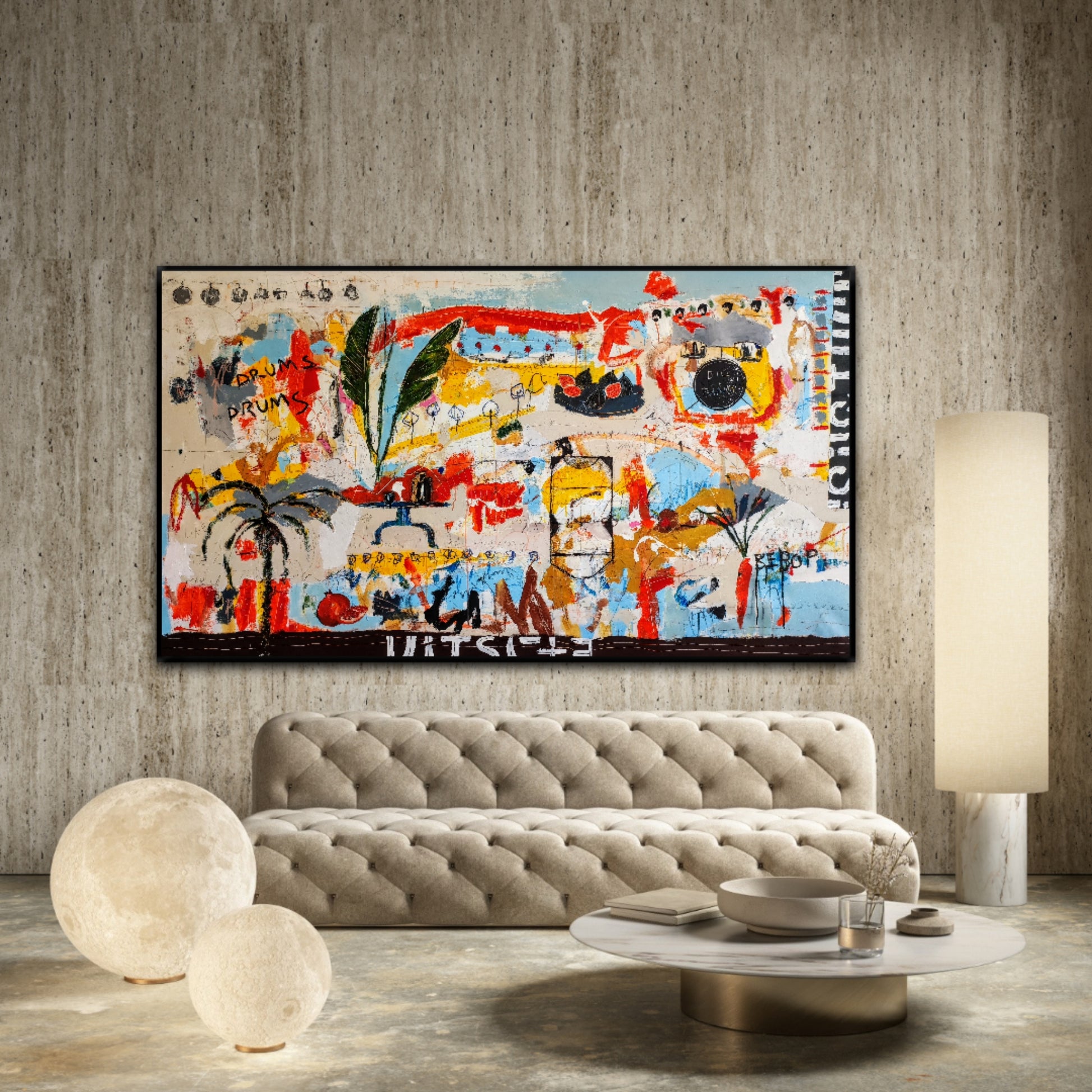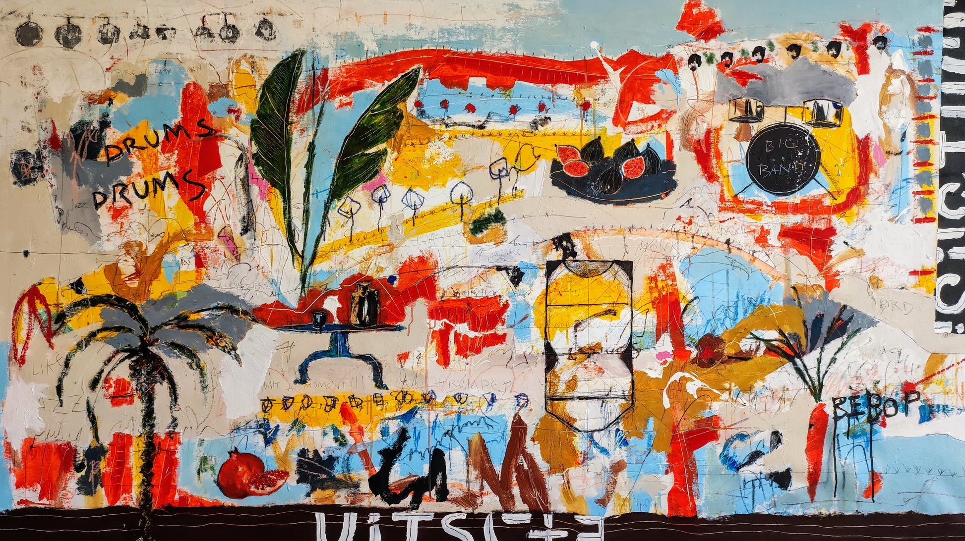 Cuadro trabajado desde la improvisación libre. Action painting con música de John Coltrane