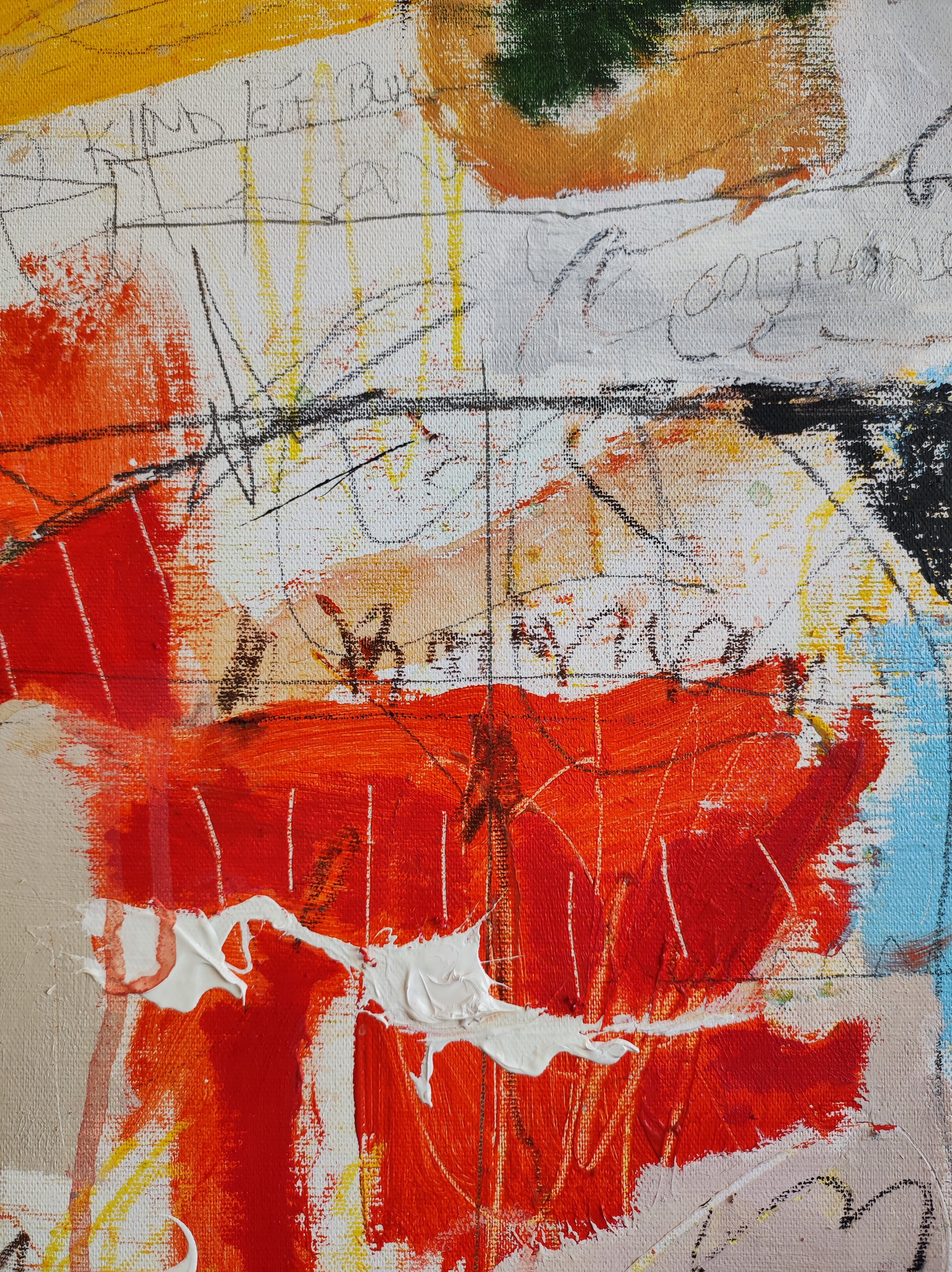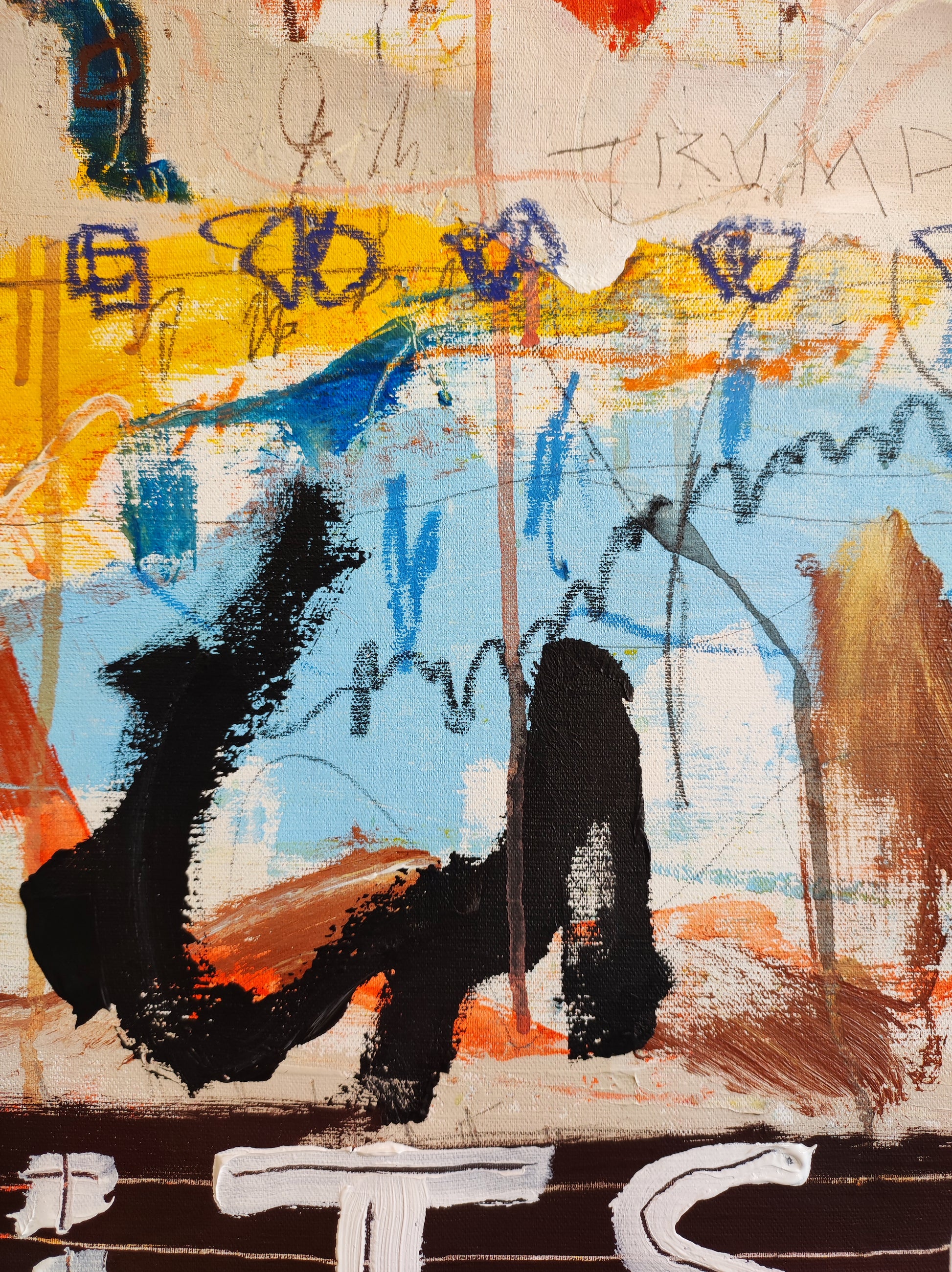Técnica: acrílico, pigmentos, ceras, tinta china y lápiz.