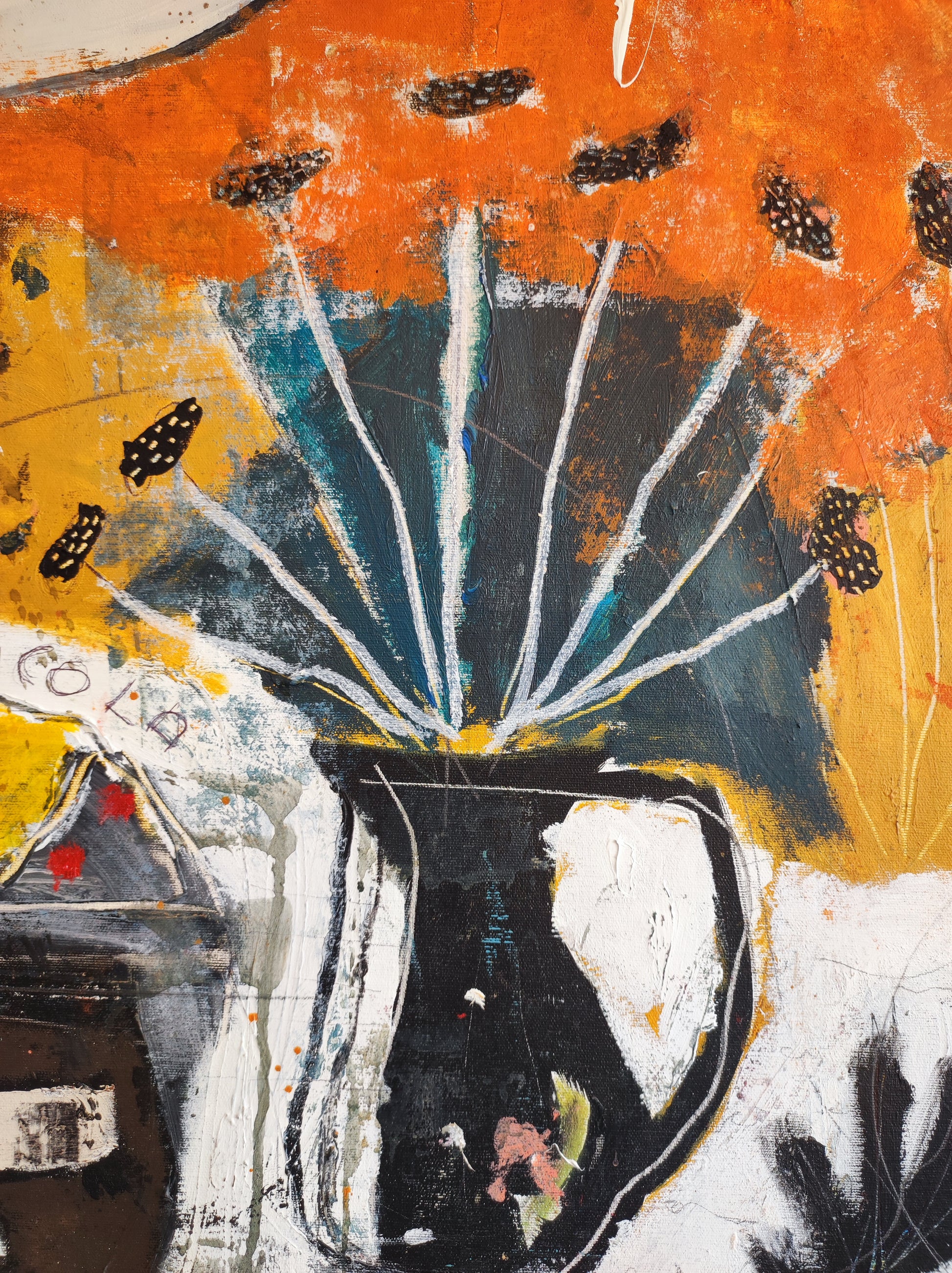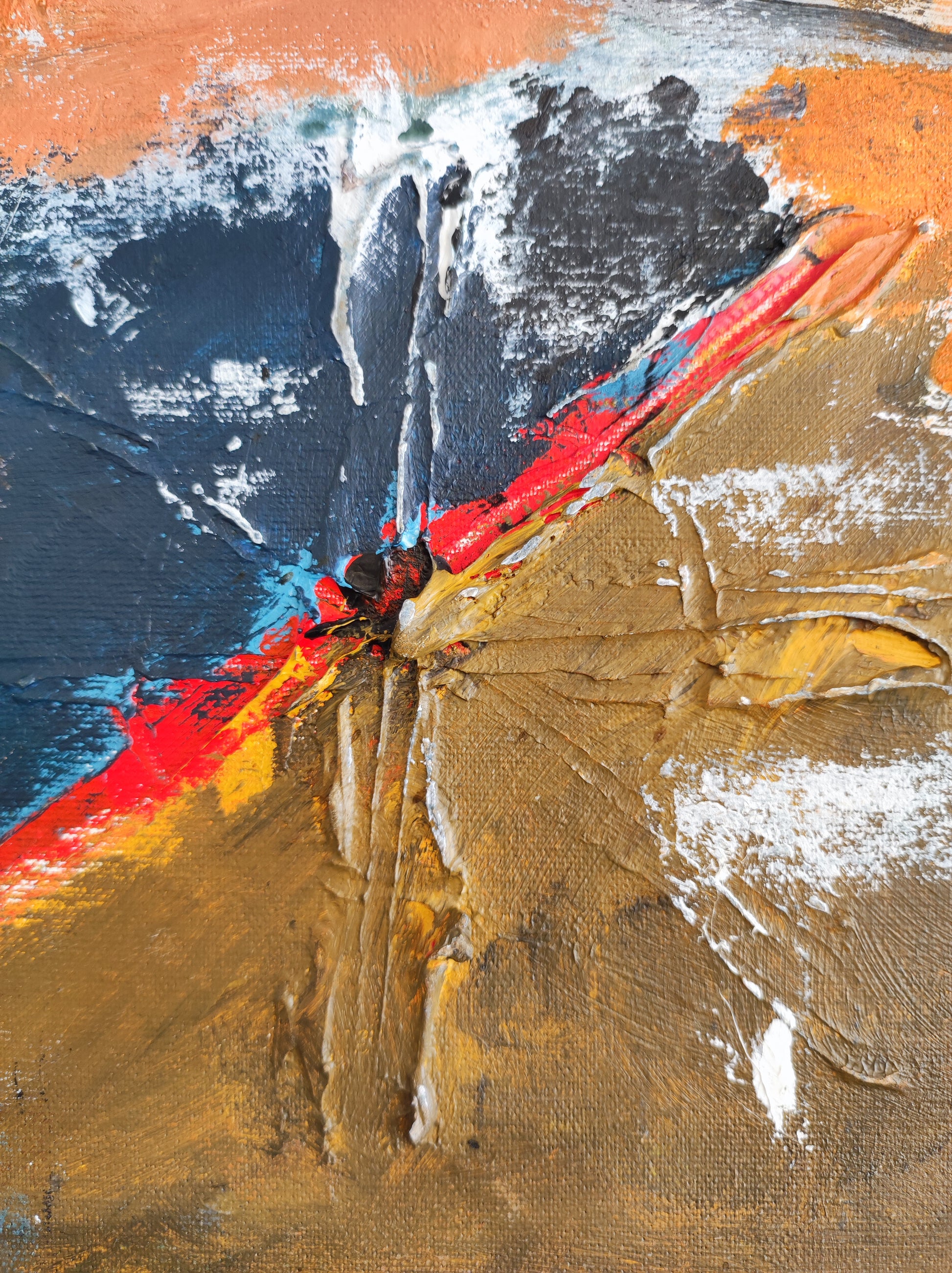 Pintura gestual, intuitiva, que deja que las cosas pasen y se apoya sobre lo que aparece. Aprovechando el accidente y aceptando las consecuencias.
