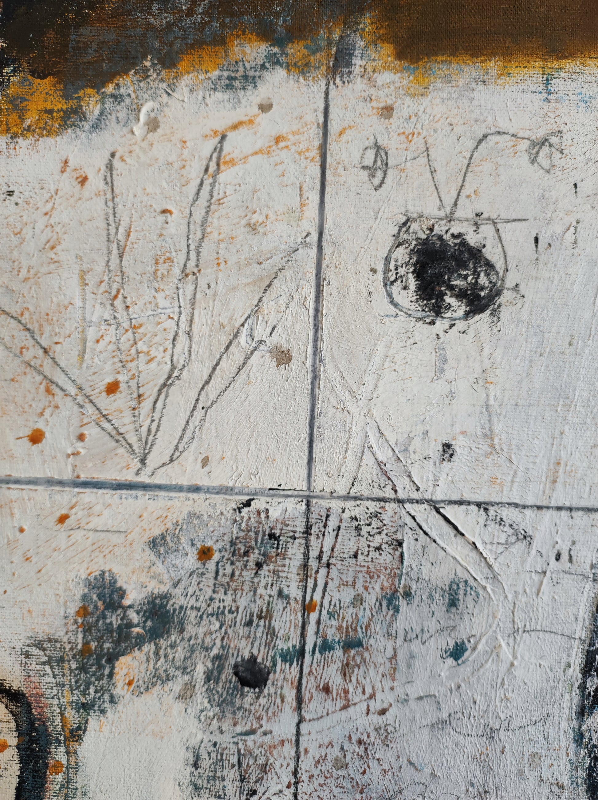 Técnica: acrílico, pigmentos, témpera y lápiz.
