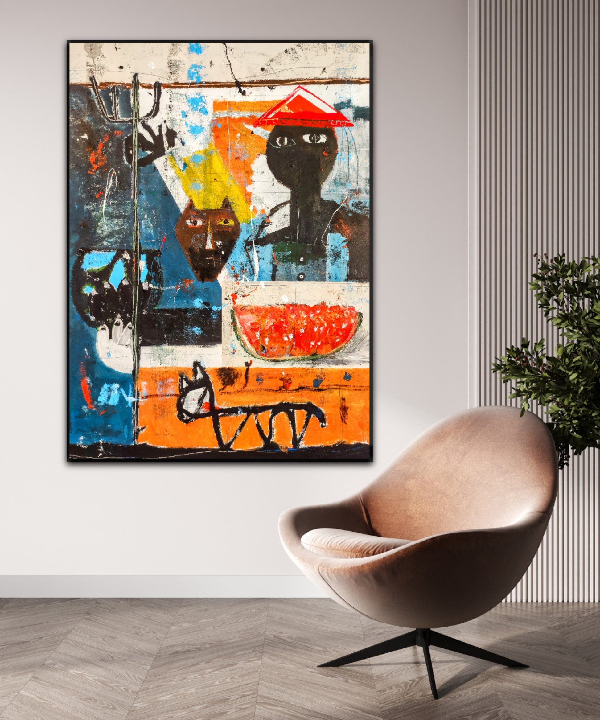 Técnica: acrílico, pigmentos, témpera y lápiz.