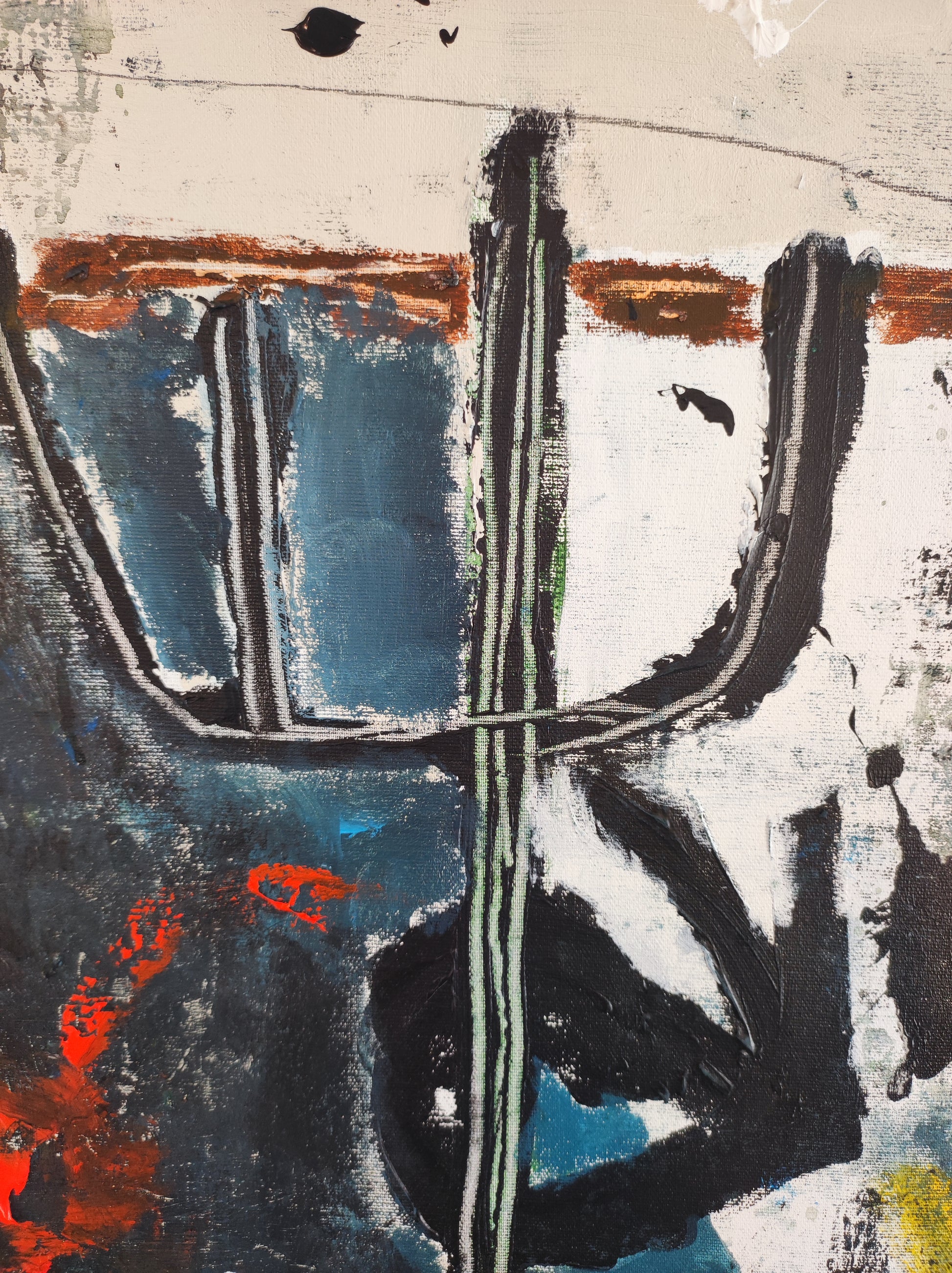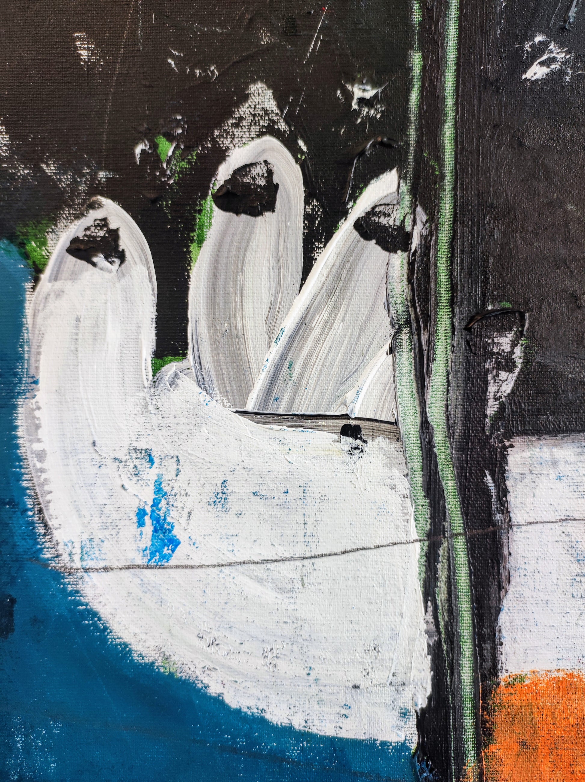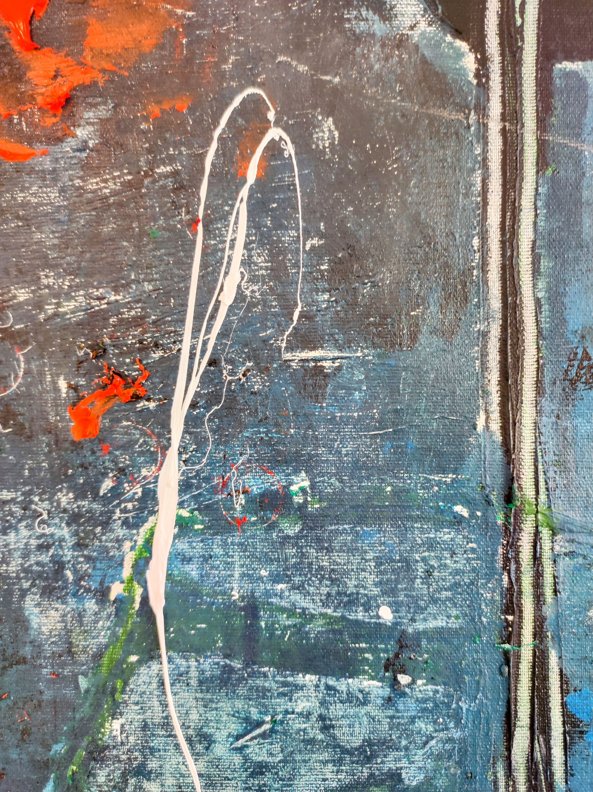 Cuadro trabajado desde la improvisación libre. Action painting con música de Belle & Sebastian, Elliot Smith y Centro-matic.
