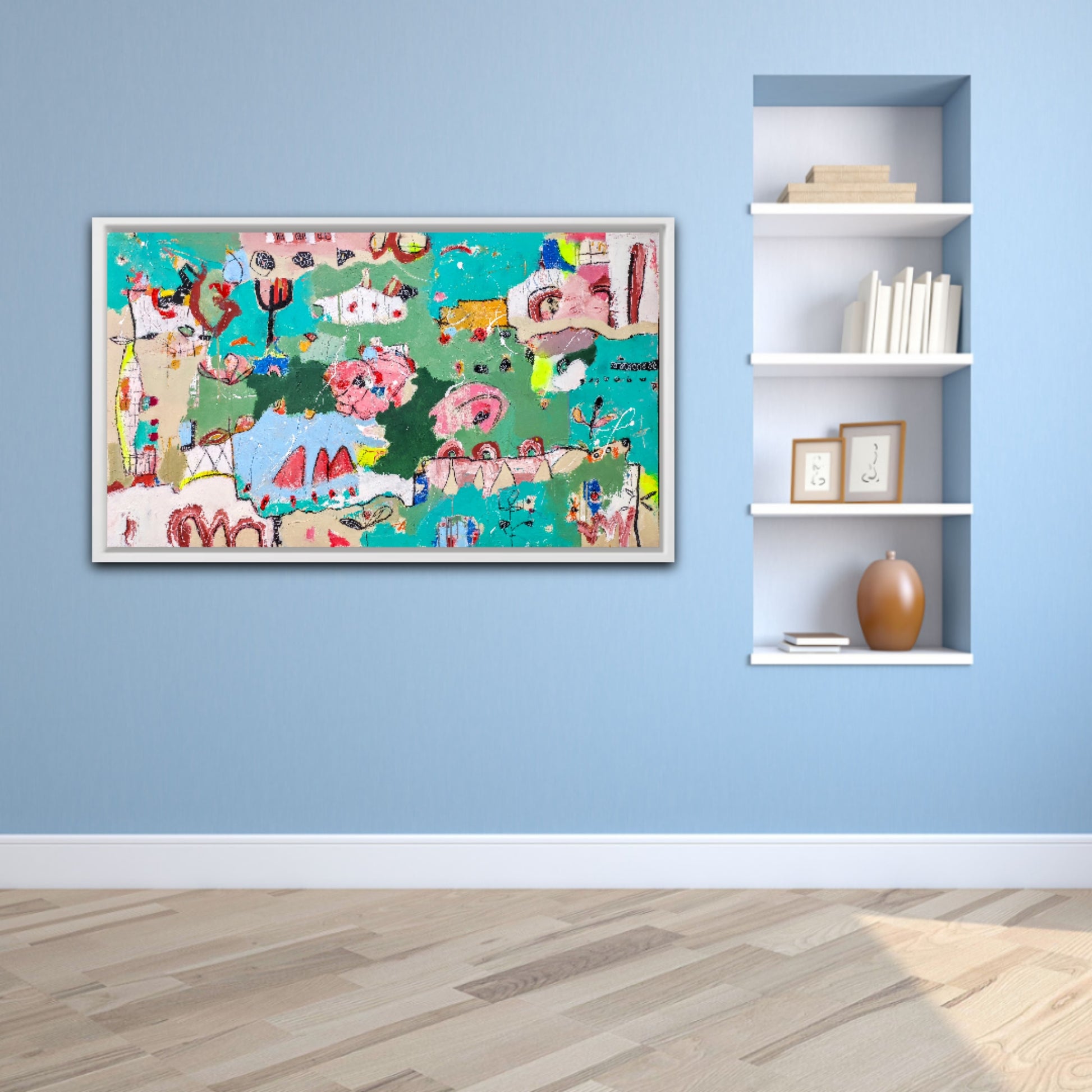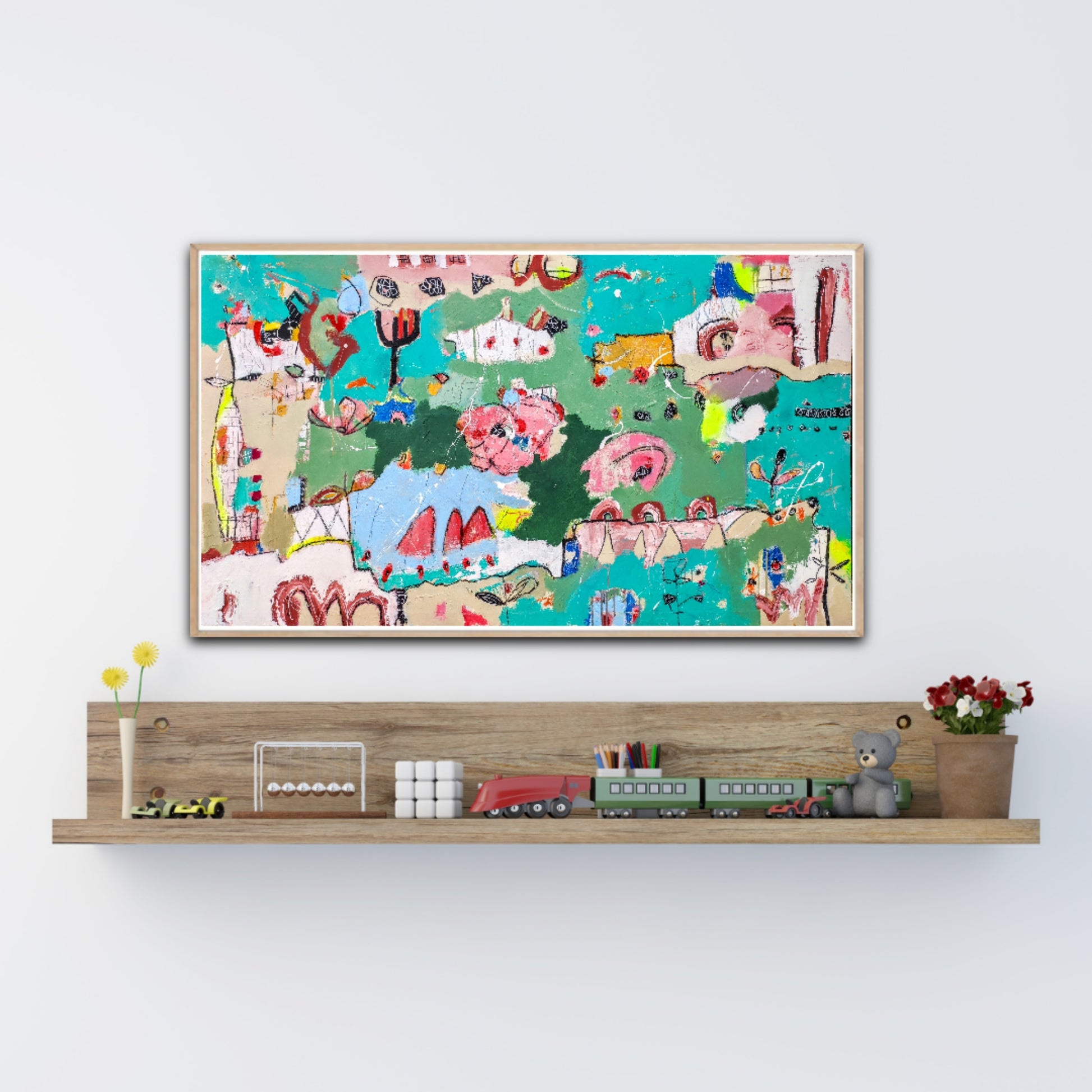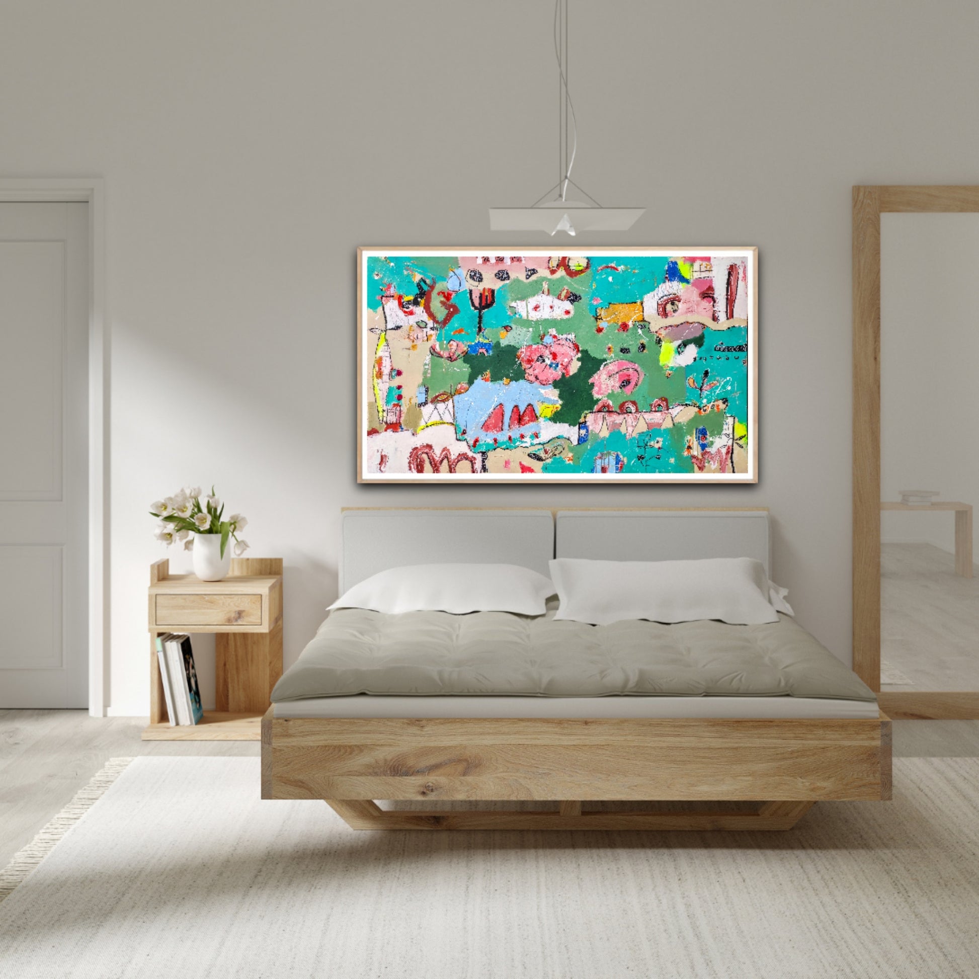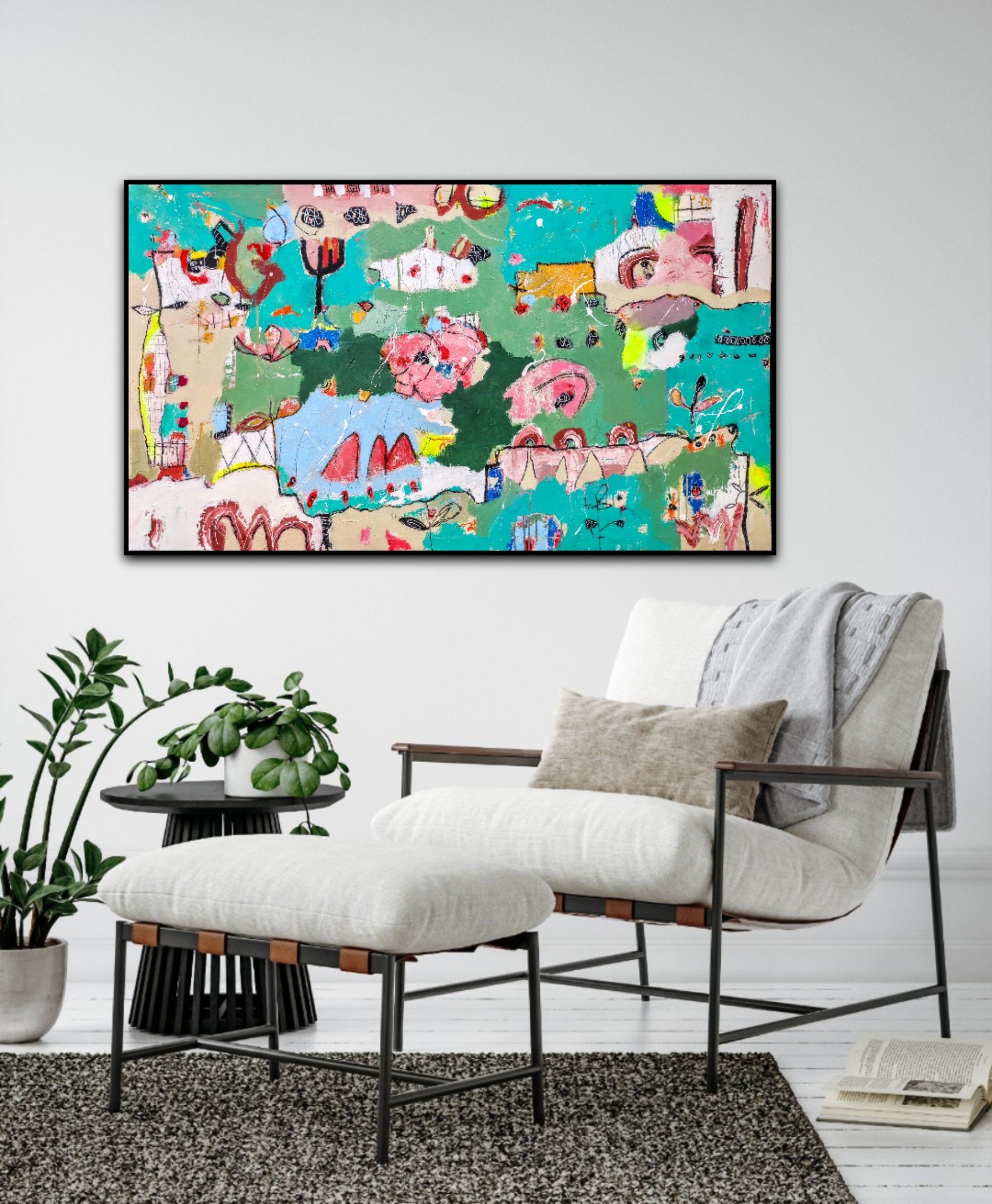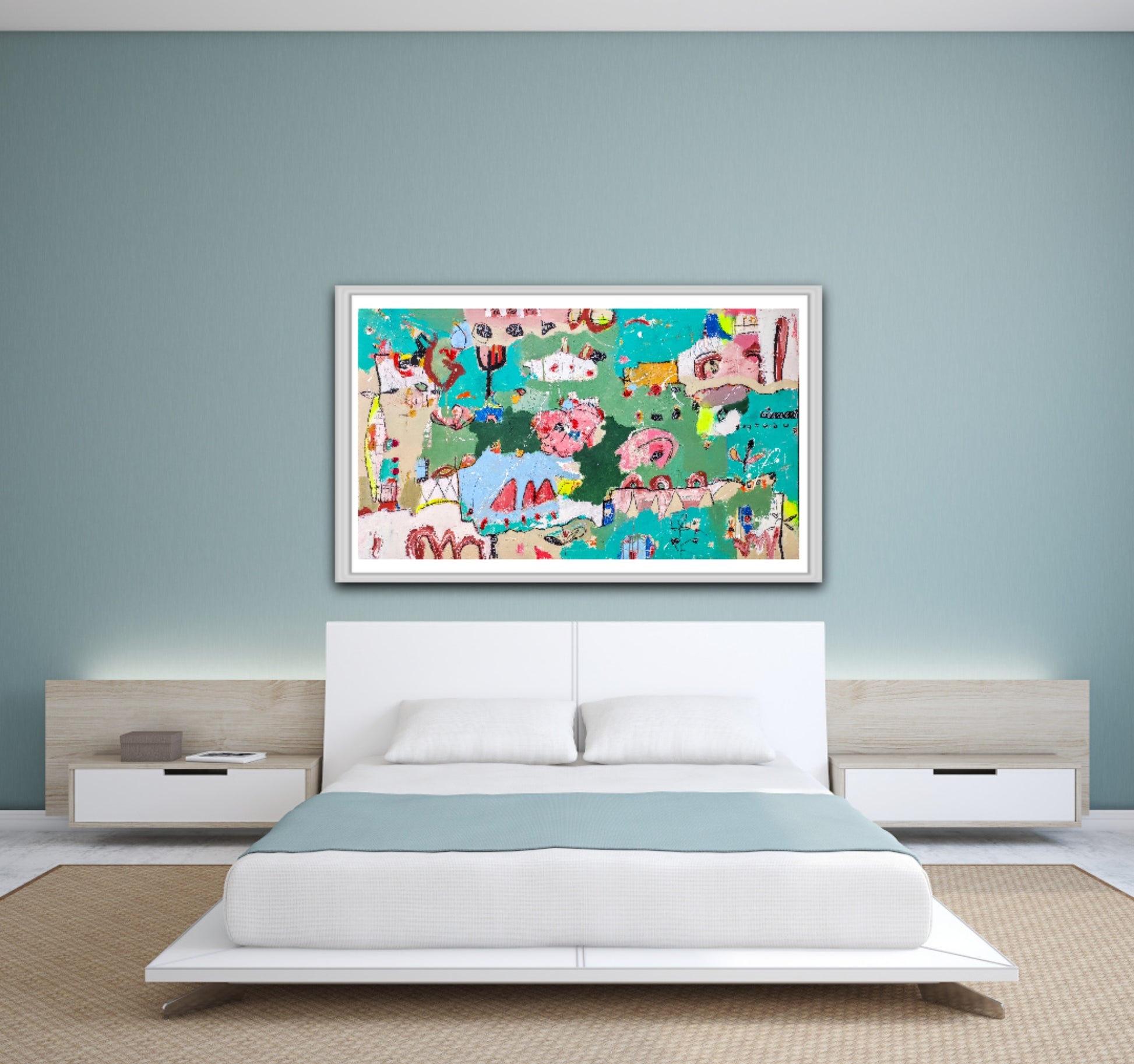 Técnica: acrílico, pigmentos, lápiz, bolígrafo, gesso, pintura en spray, carboncillo, ceras.