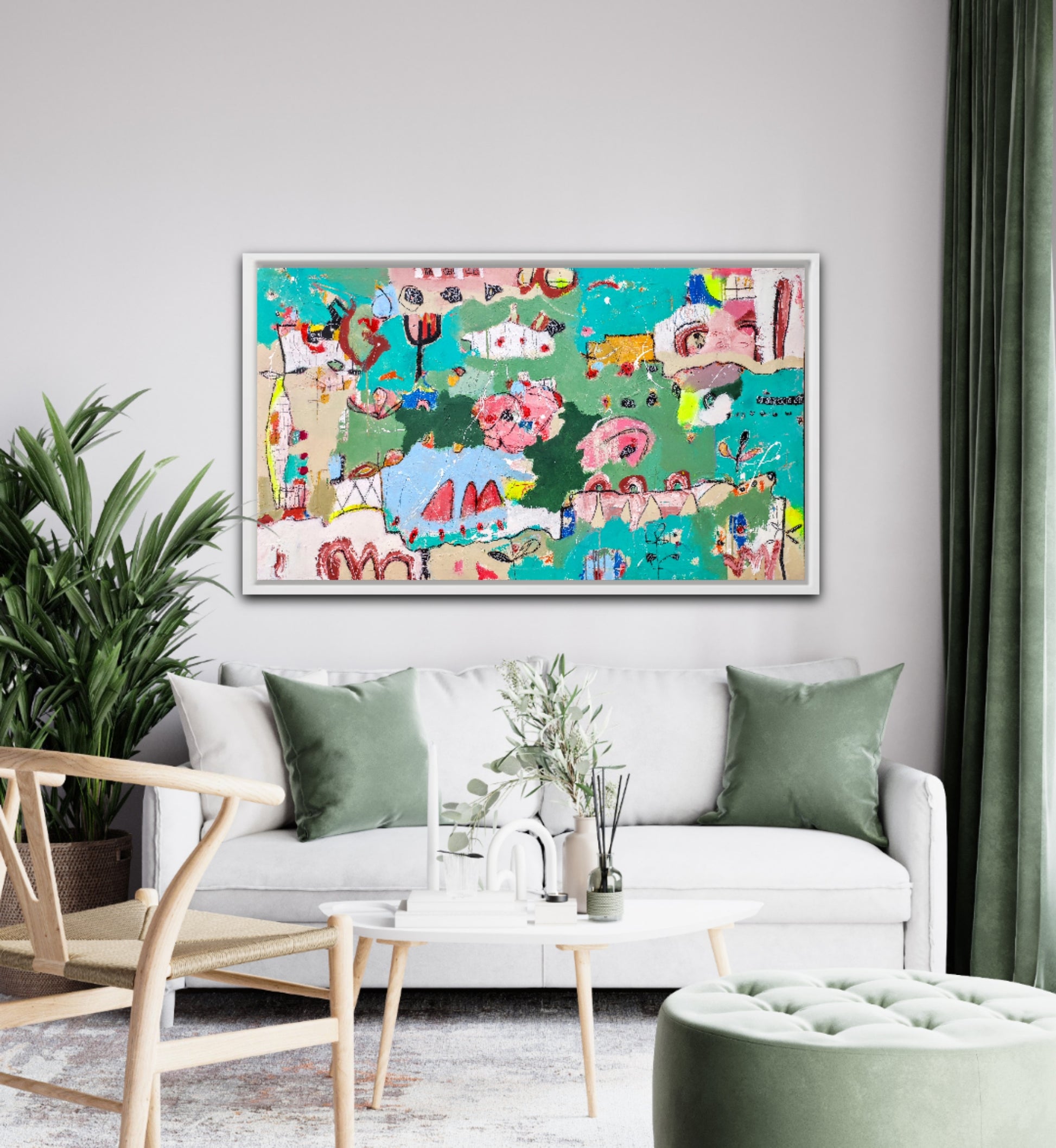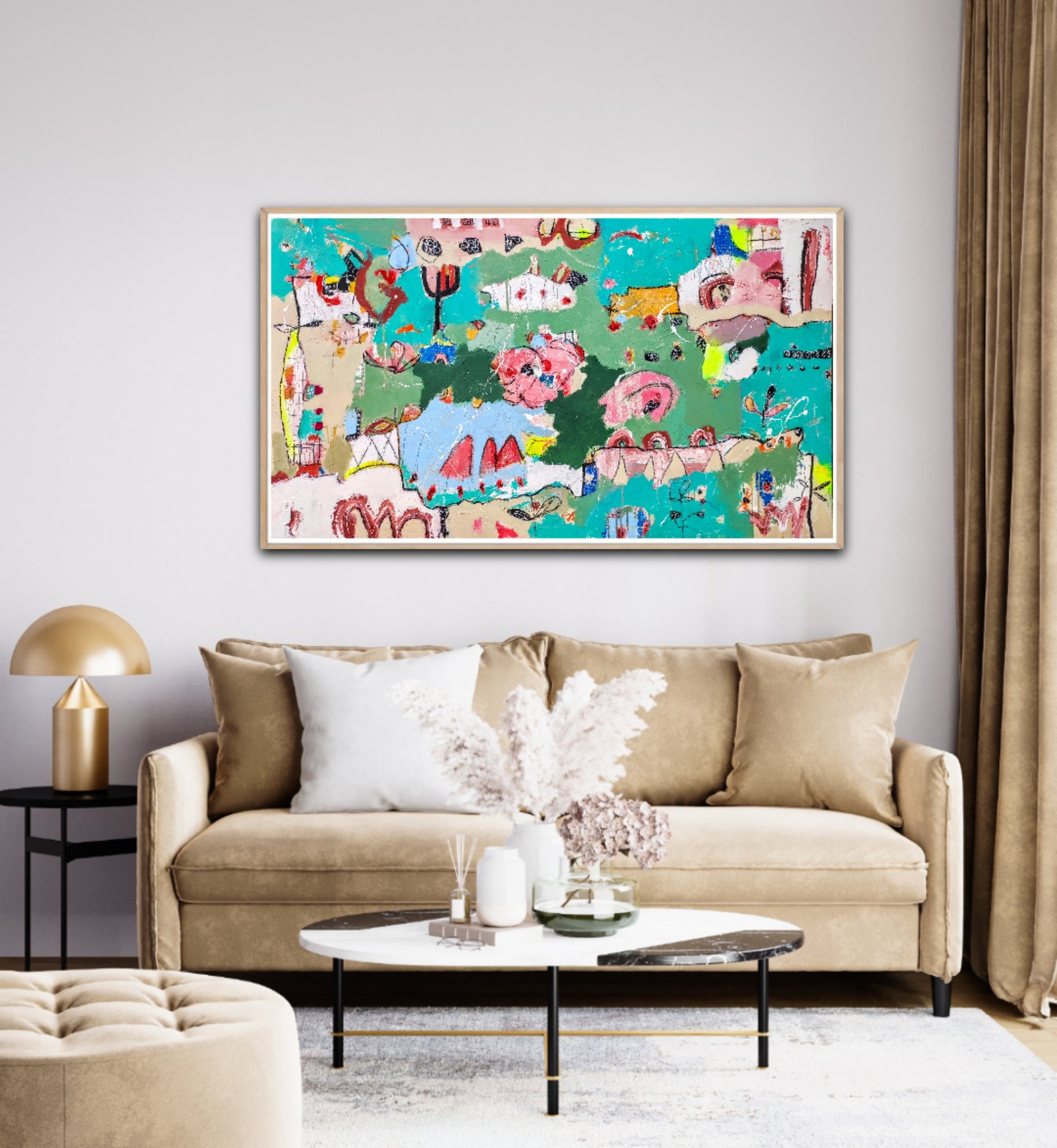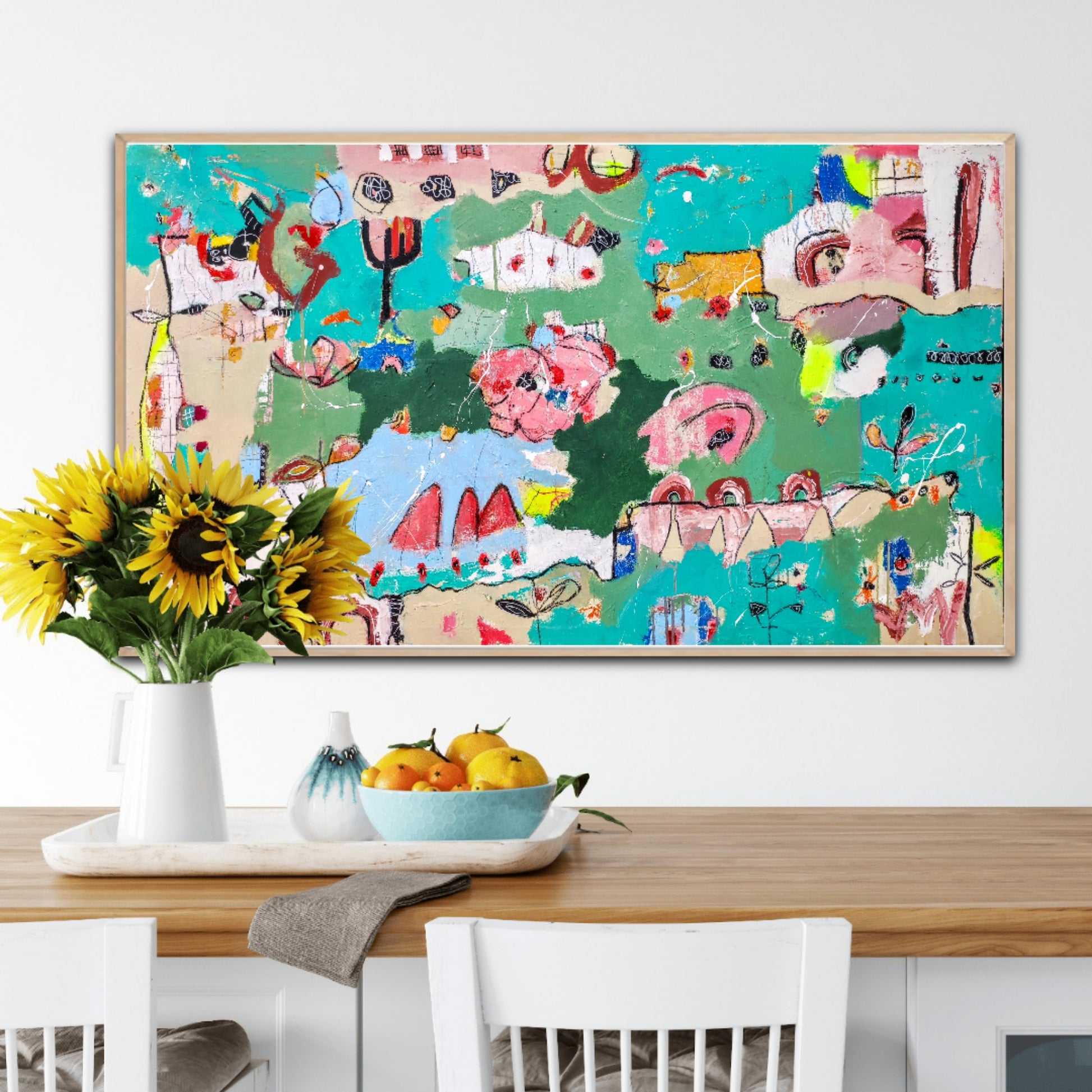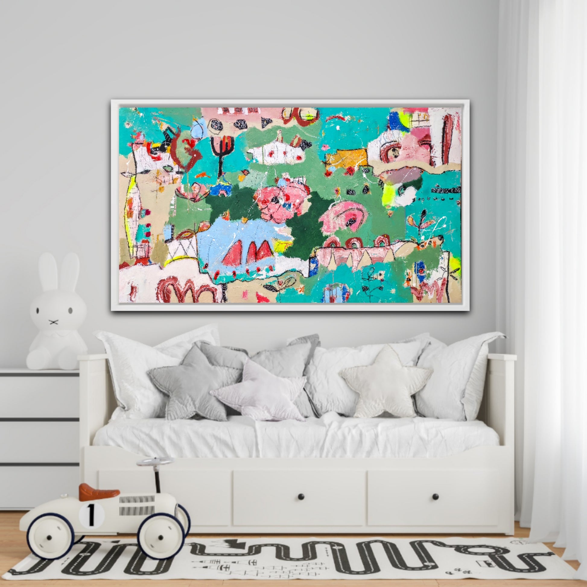 Técnica: acrílico, pigmentos, lápiz, bolígrafo, gesso, pintura en spray, carboncillo, ceras.
