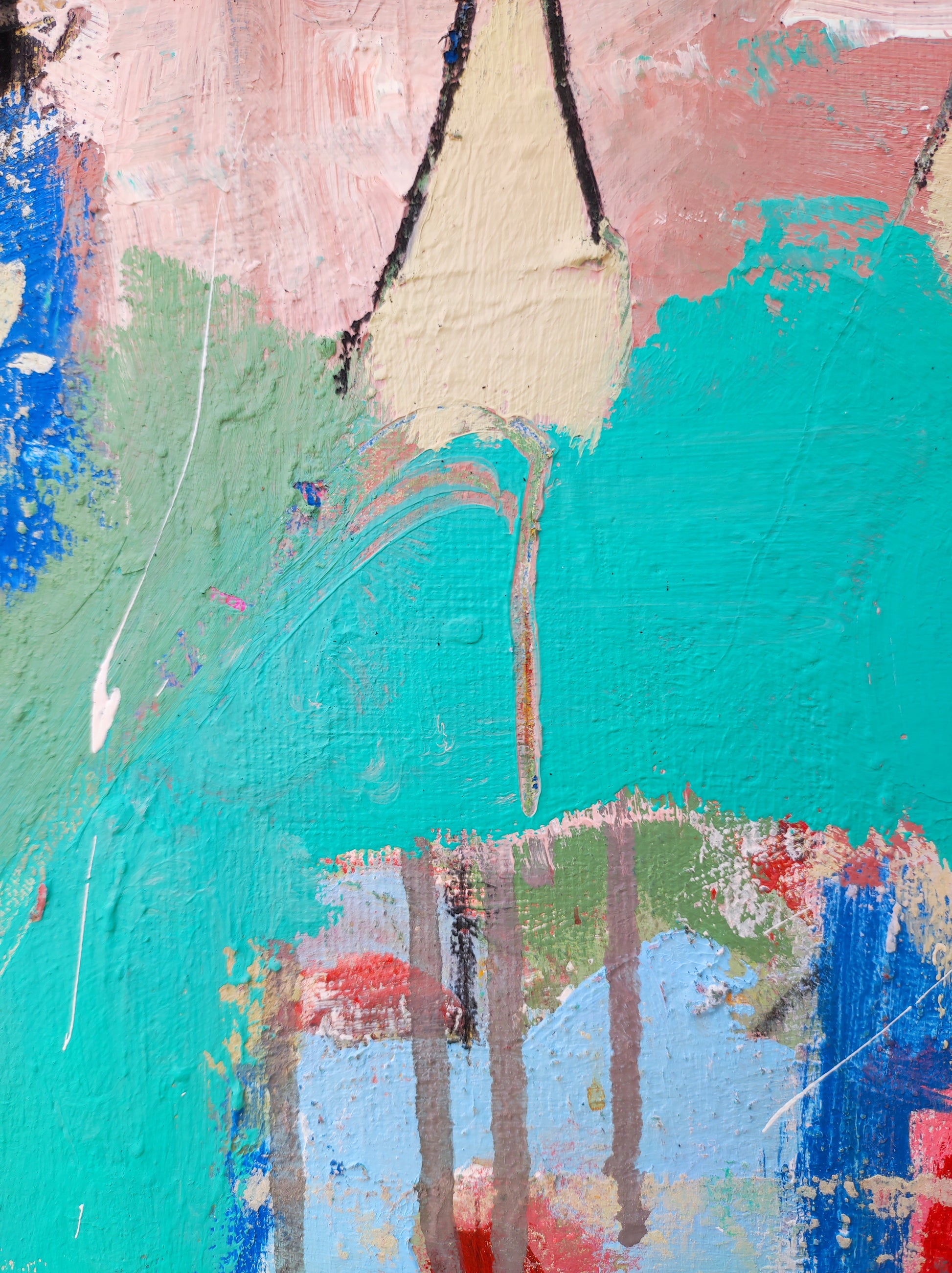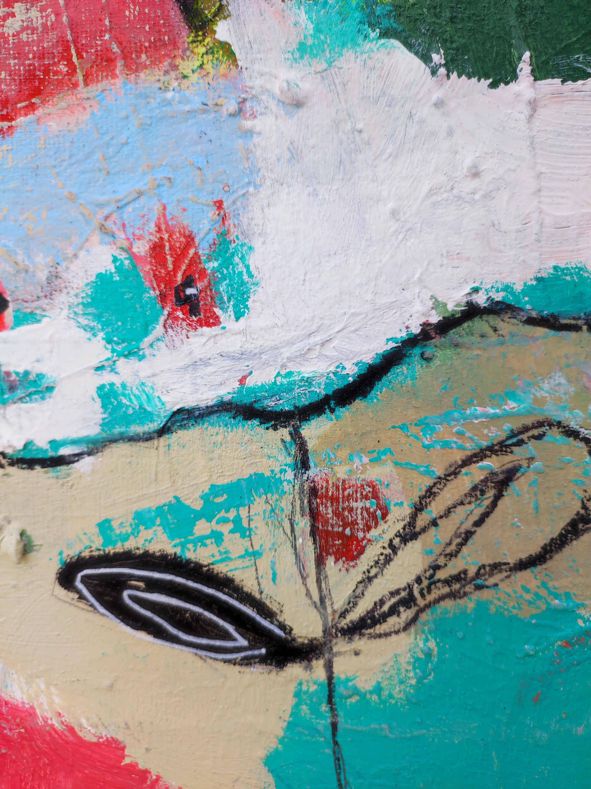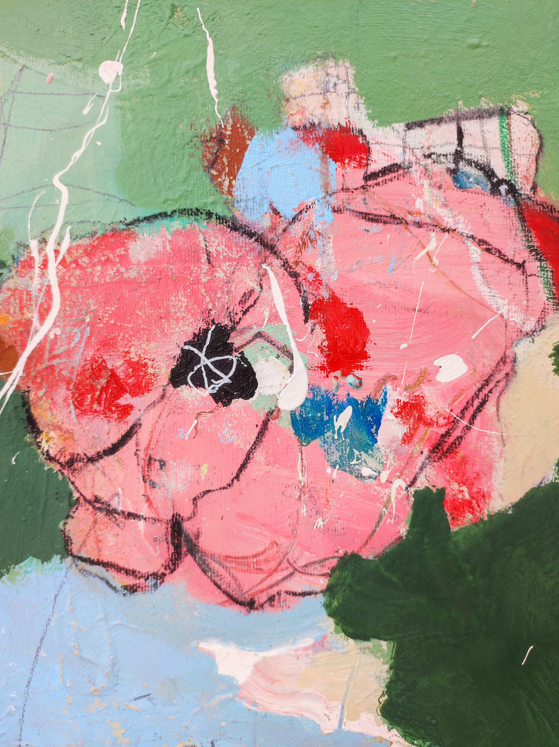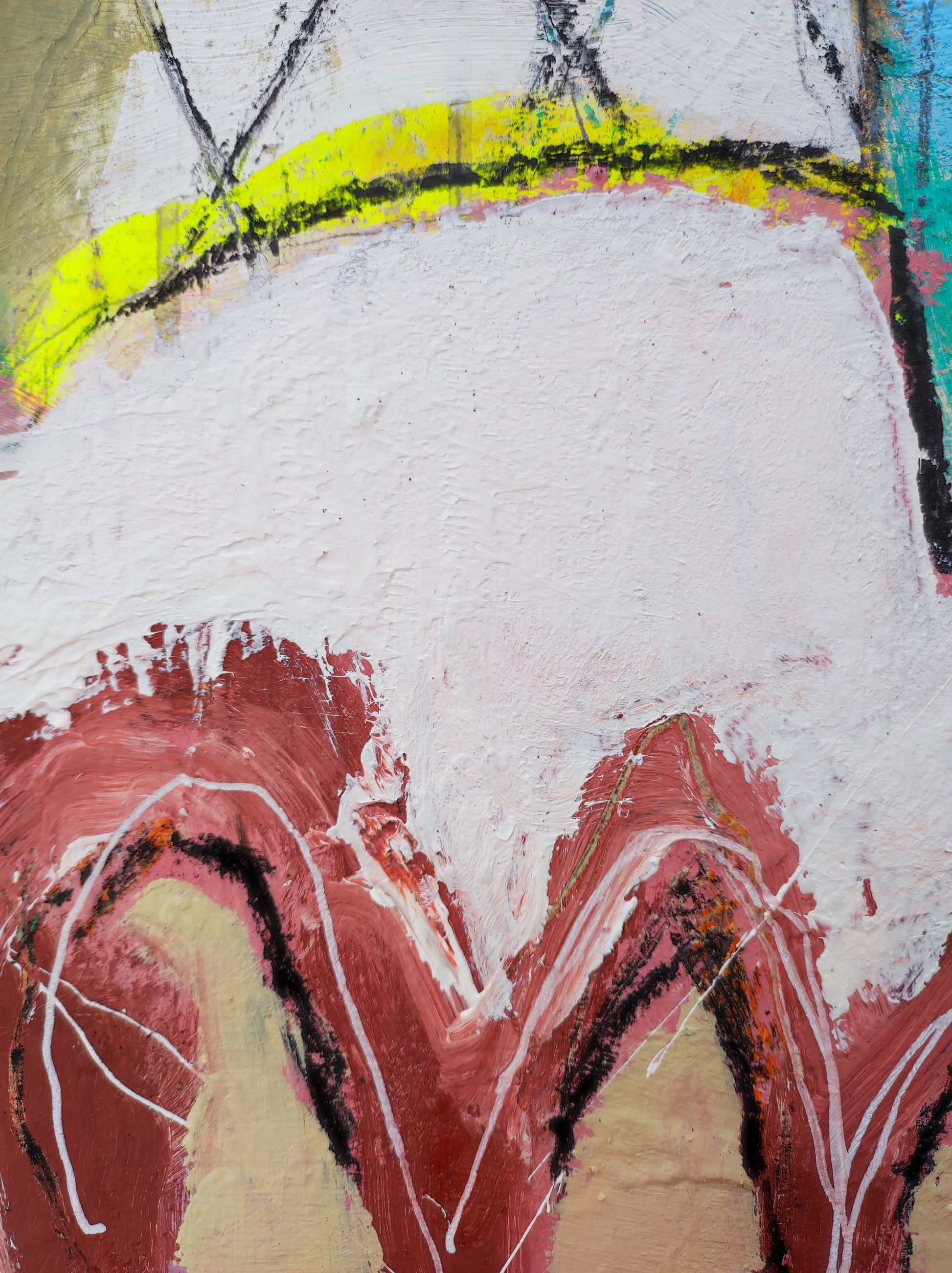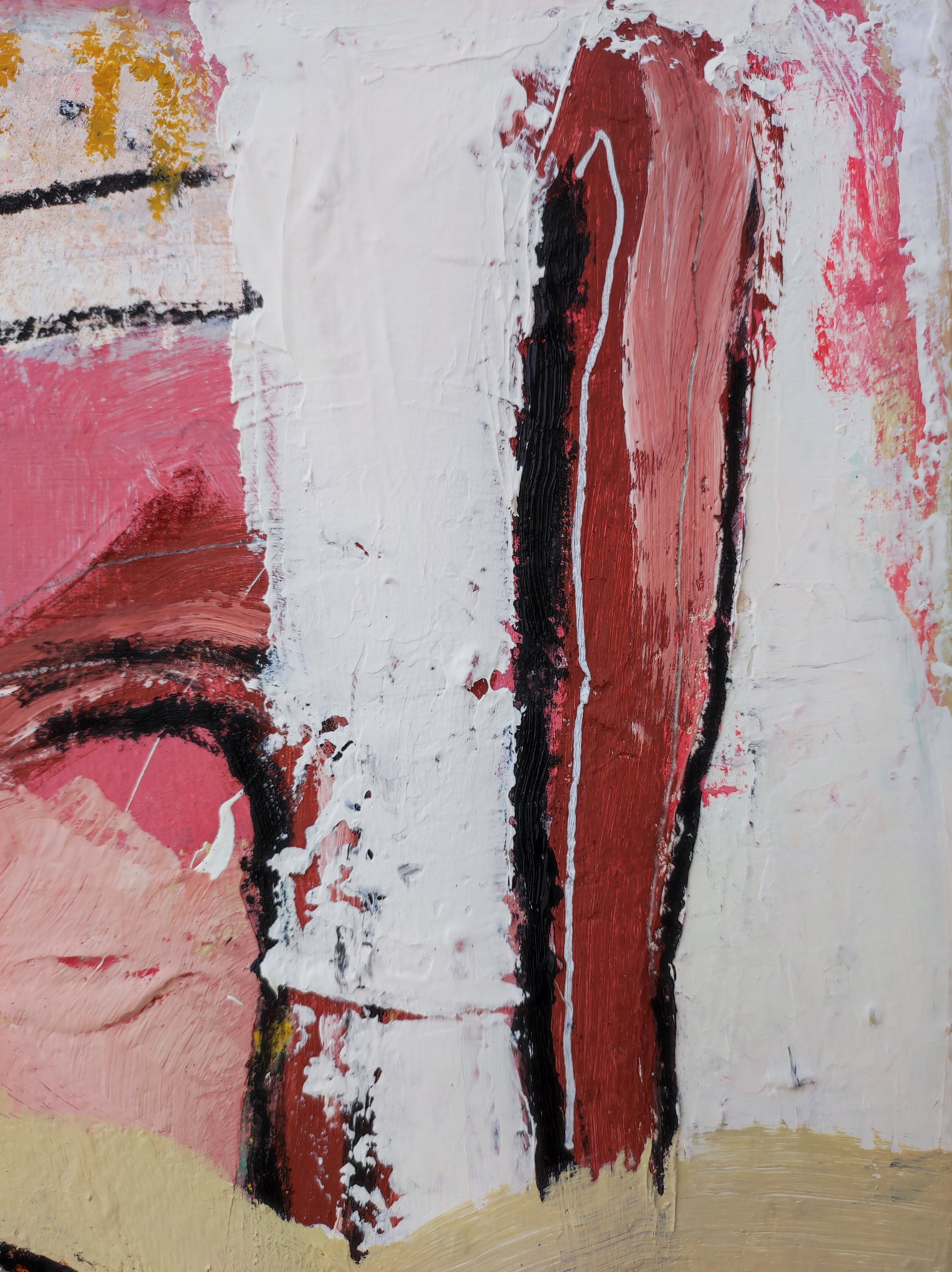 Trabajo realizado a partir de una obra antigua que no se terminó. 1 año después se retoma cambiando la orientación del lienzo y salvando solo algunas marcas.