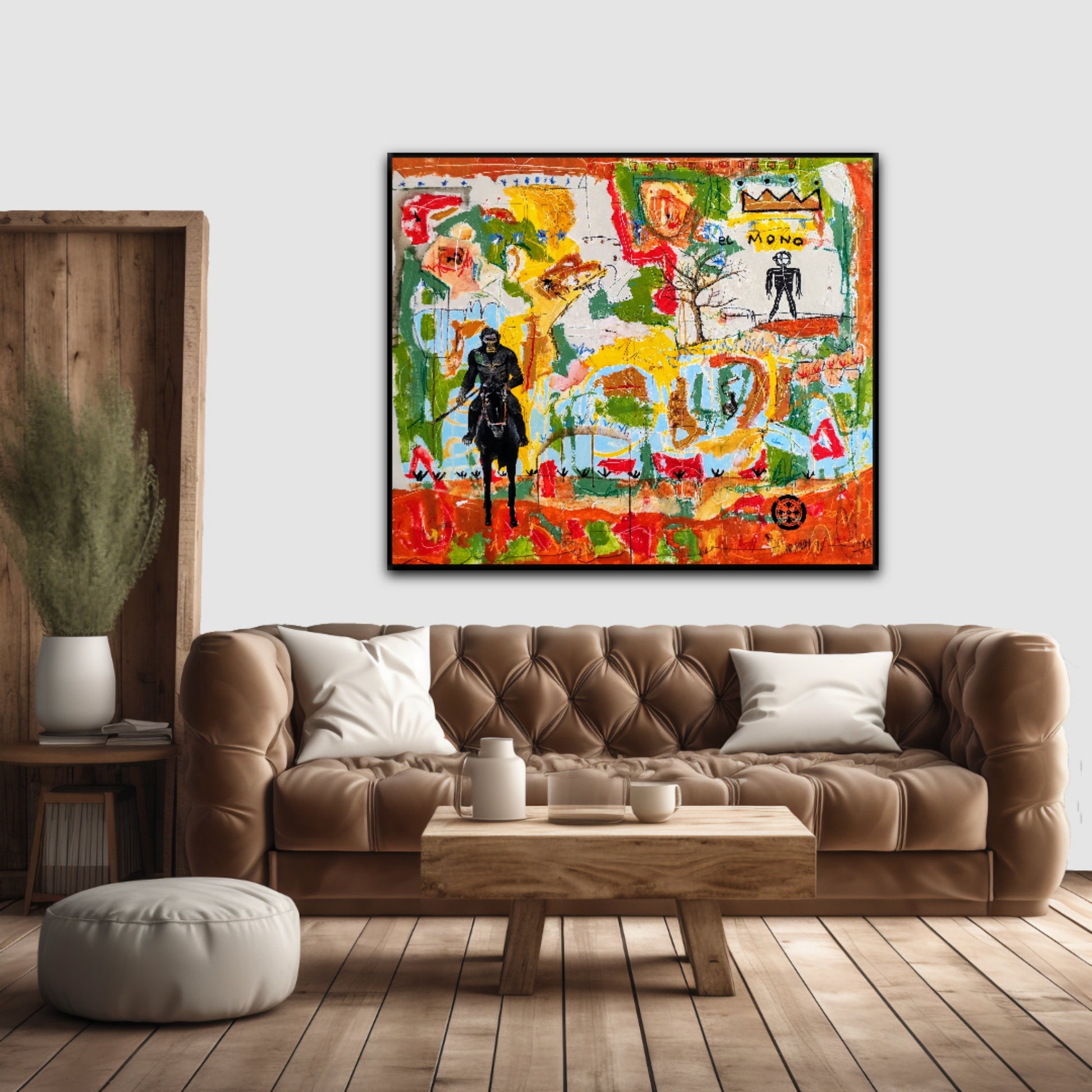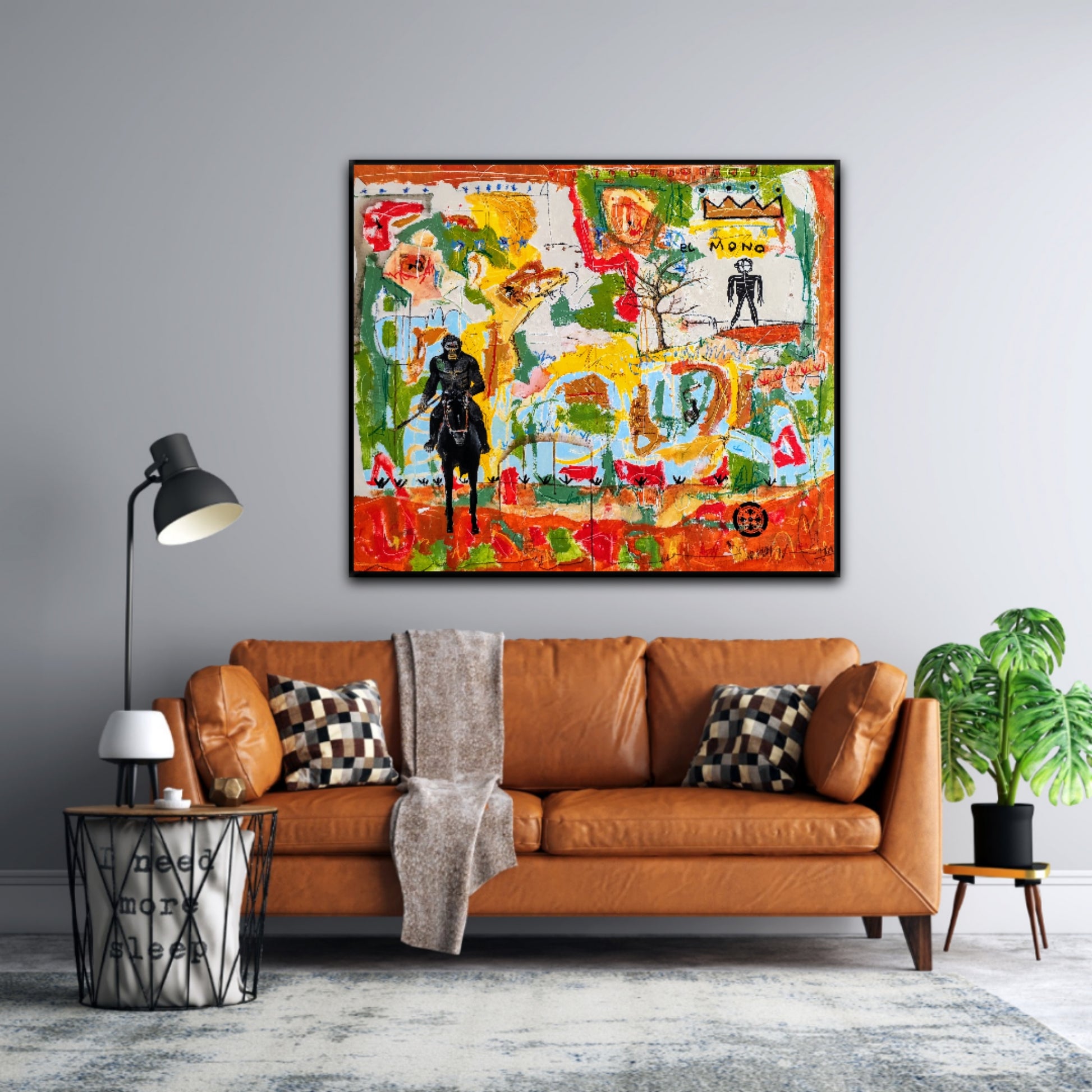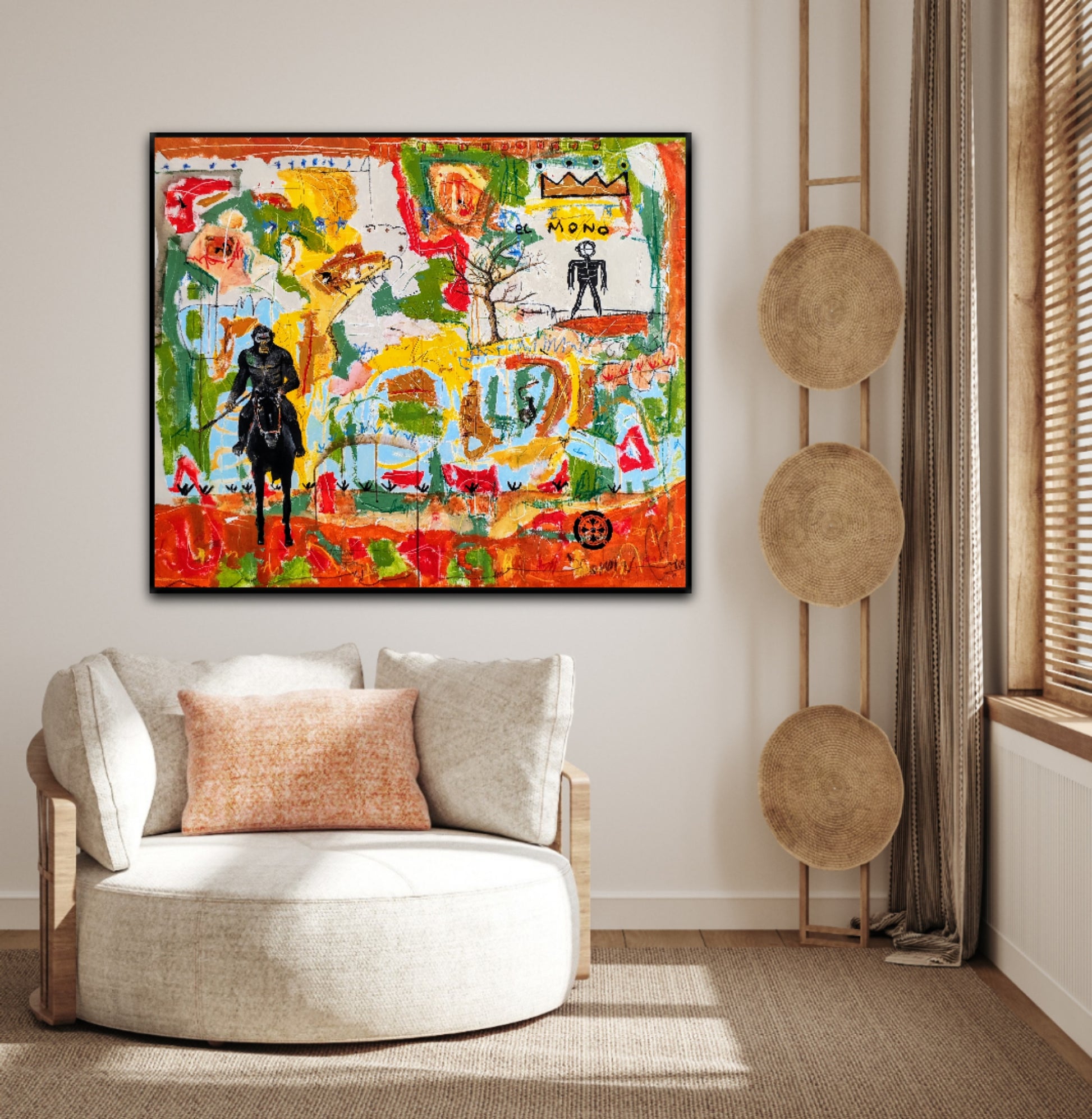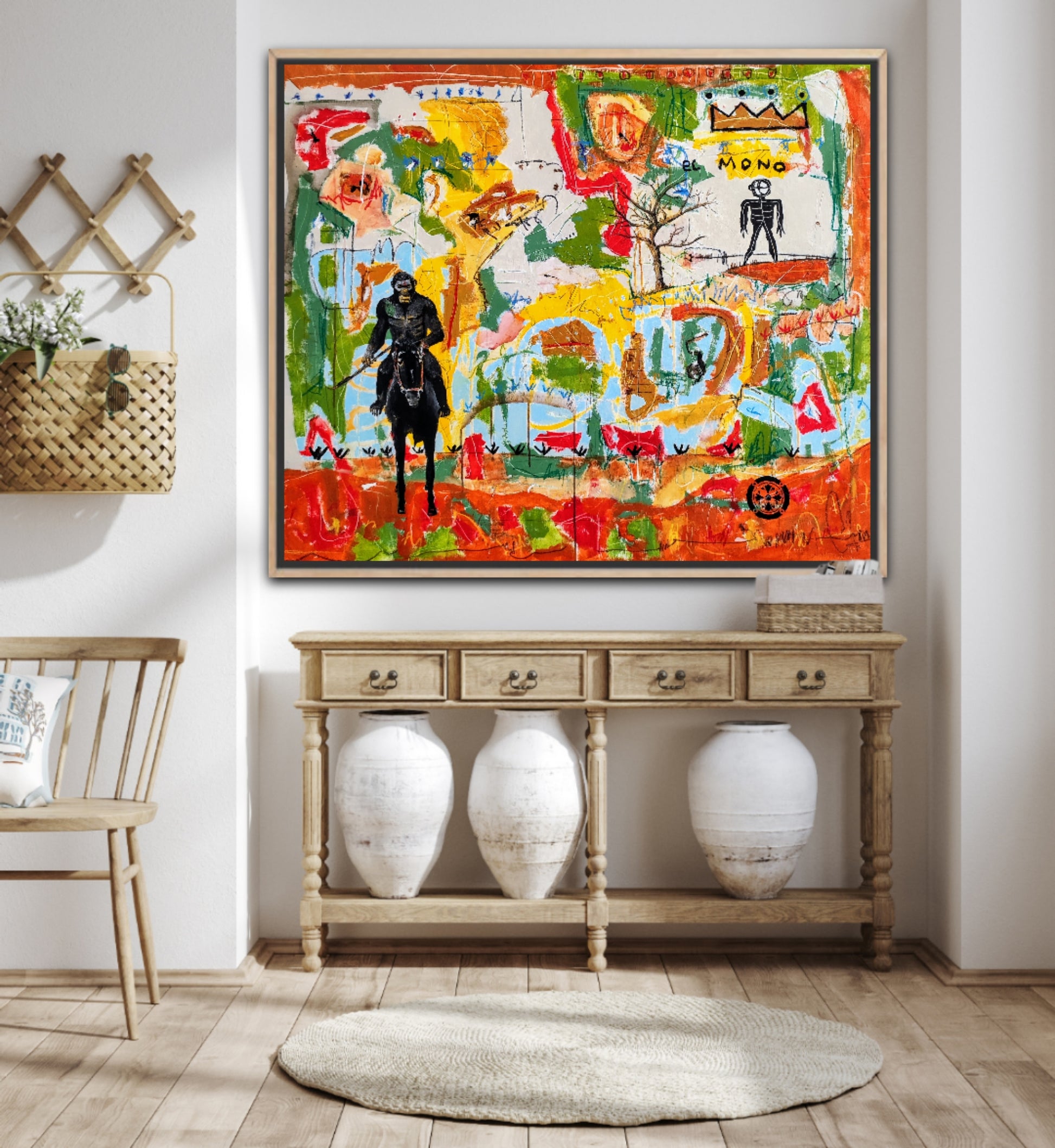 Cuadro trabajado desde la improvisación libre. Action painting con música de Dominique Fils-Aimé.