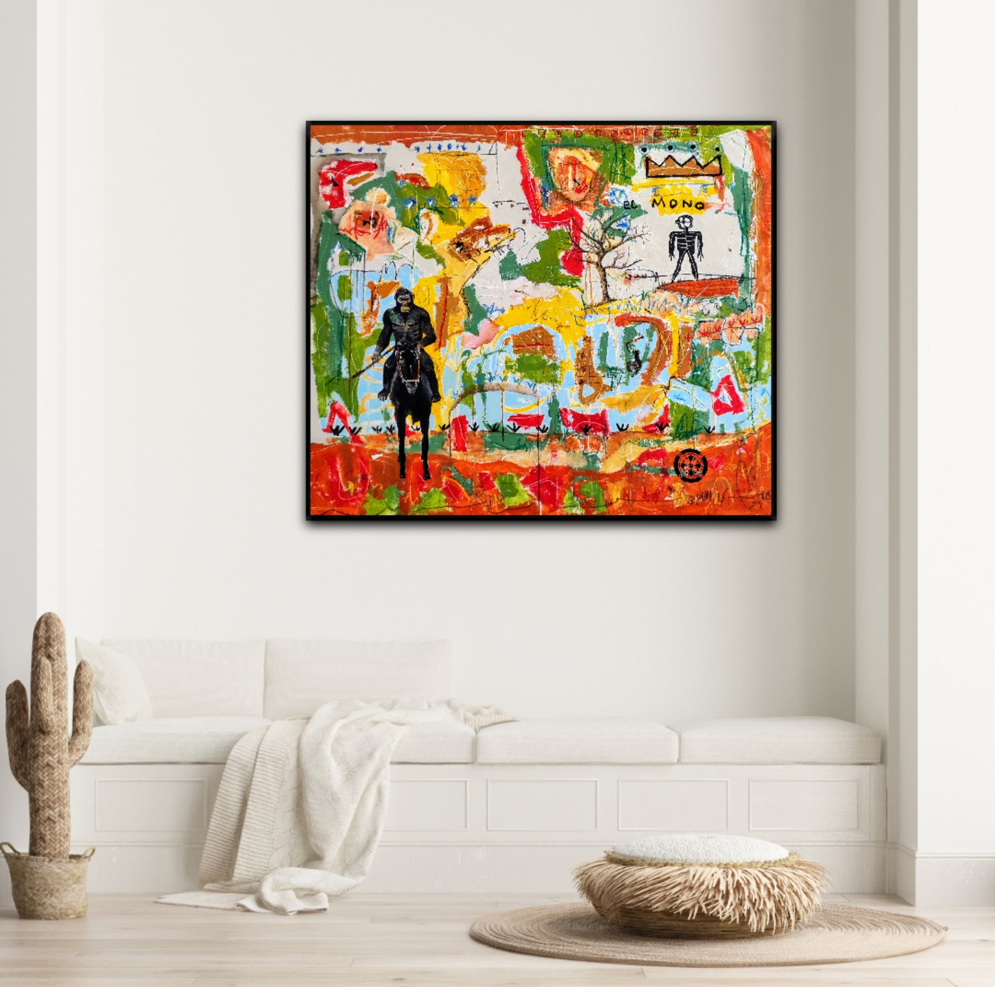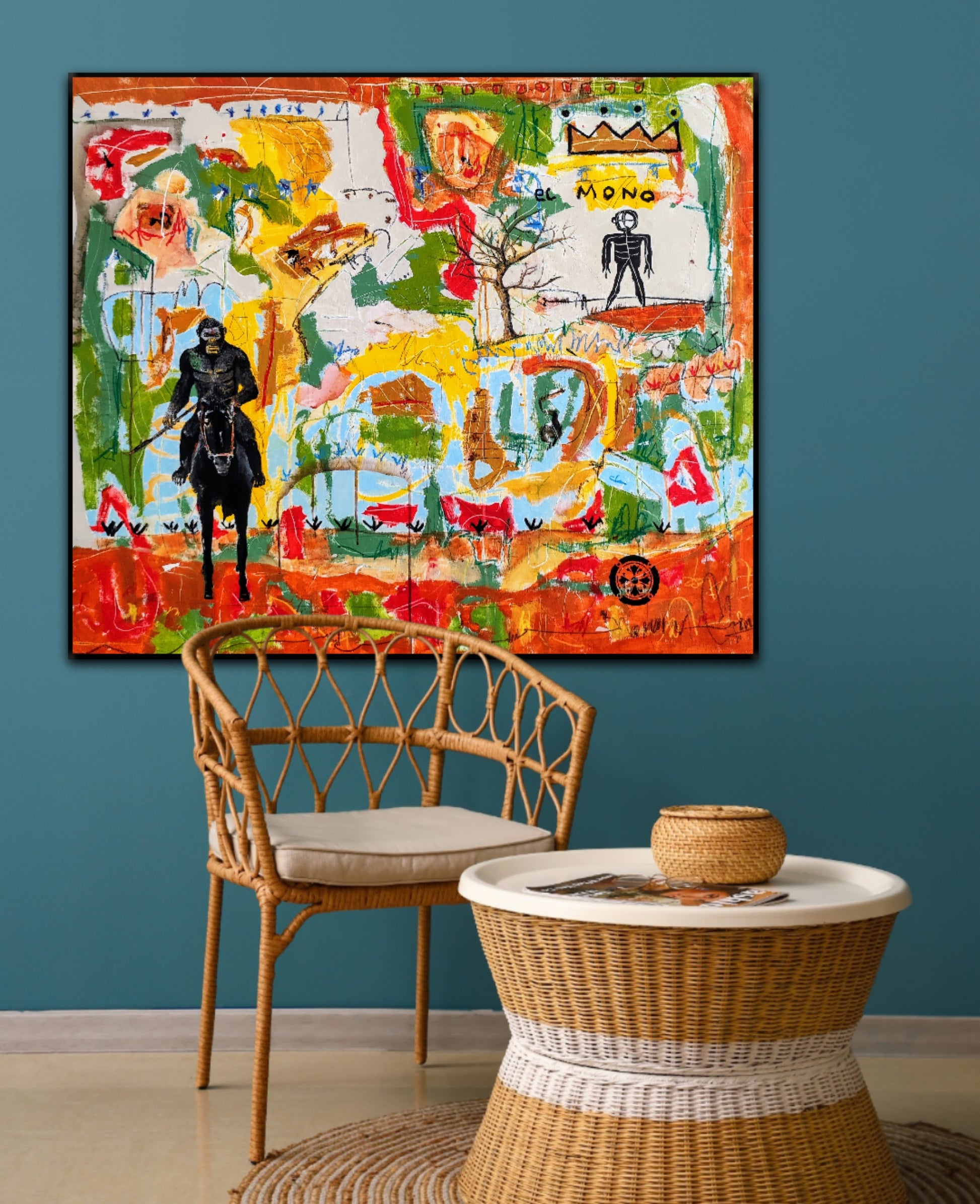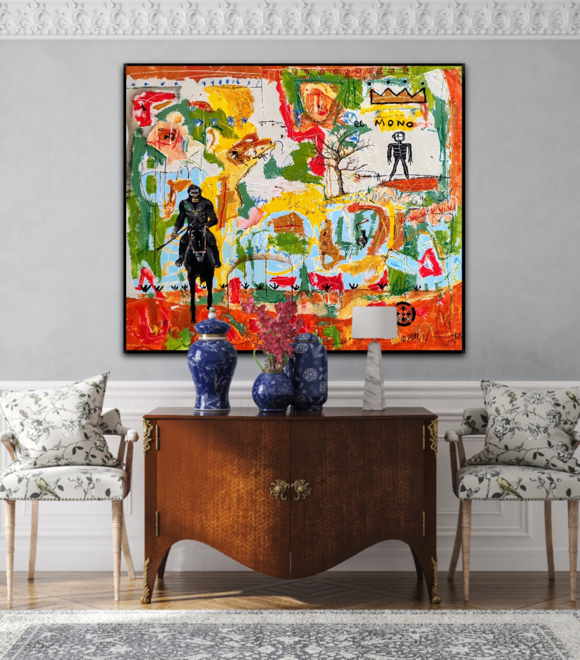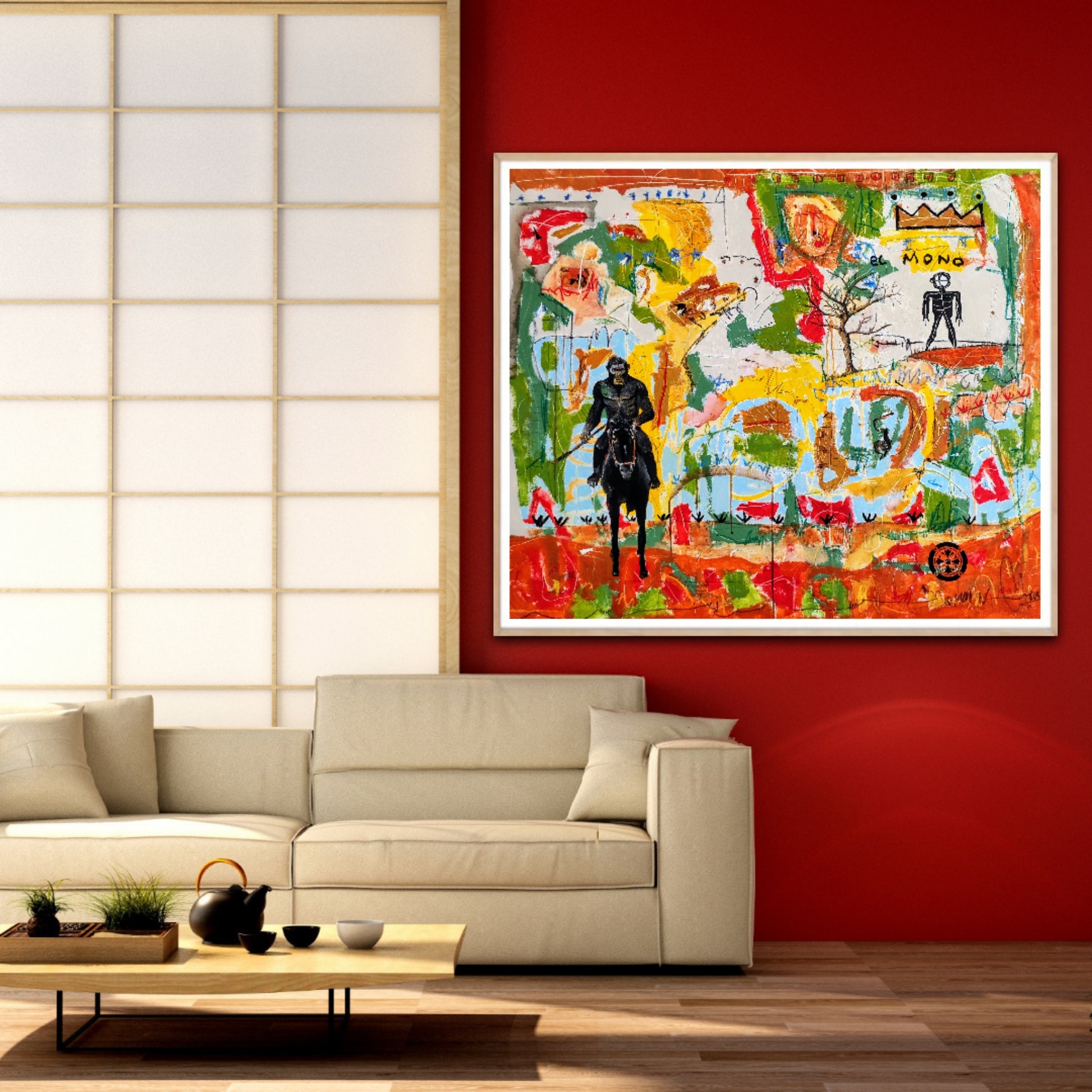 Cuadro trabajado desde la improvisación libre. Action painting con música de Dominique Fils-Aimé.