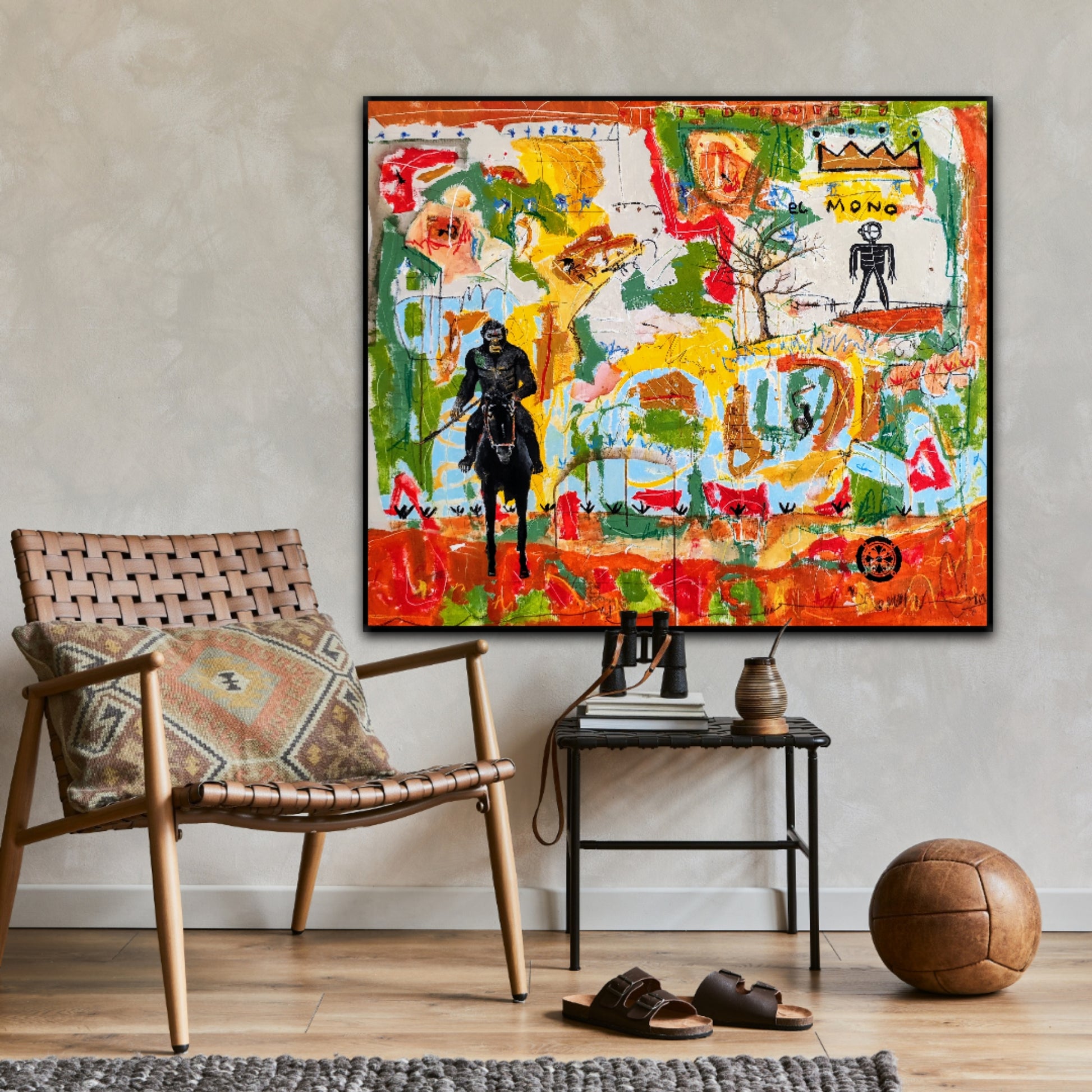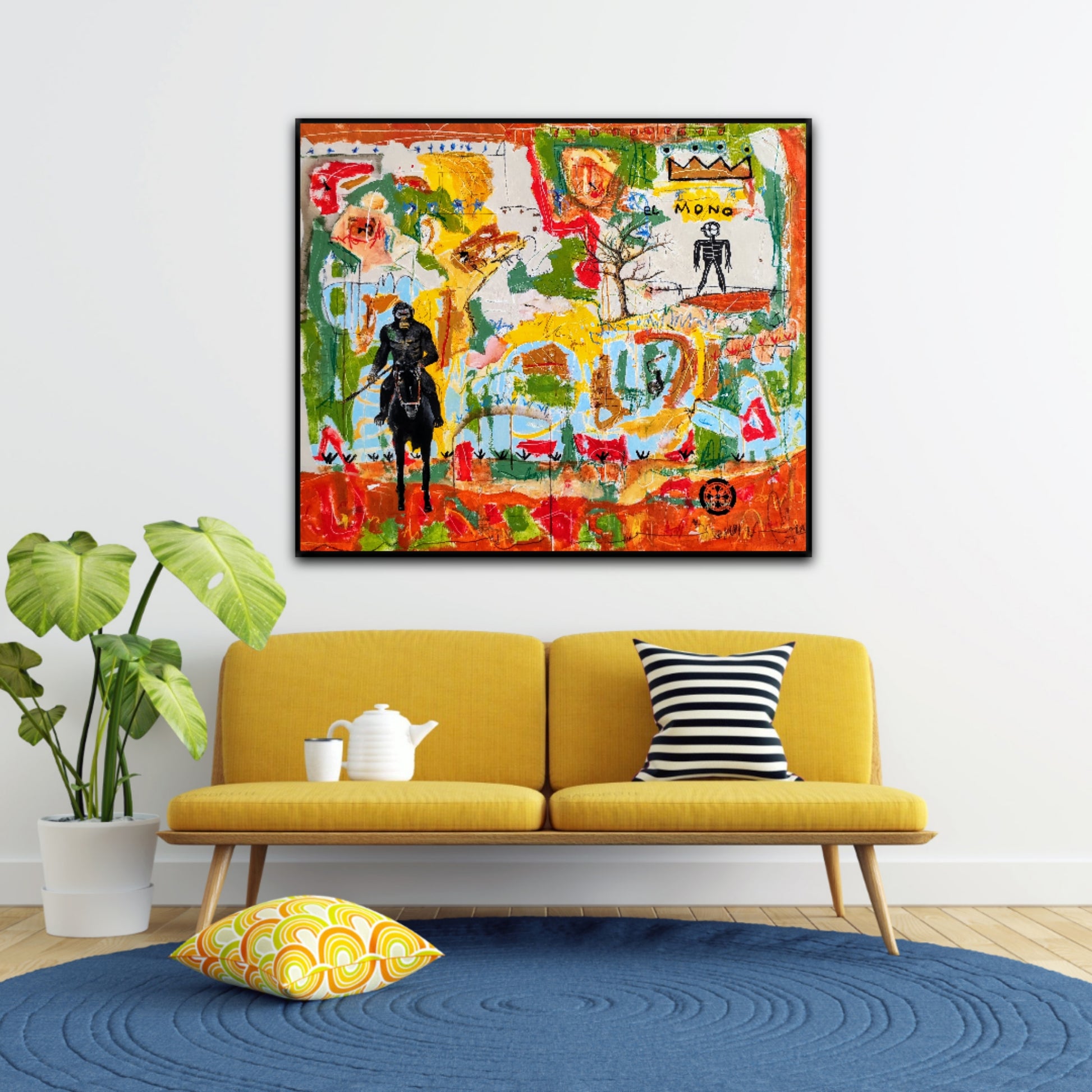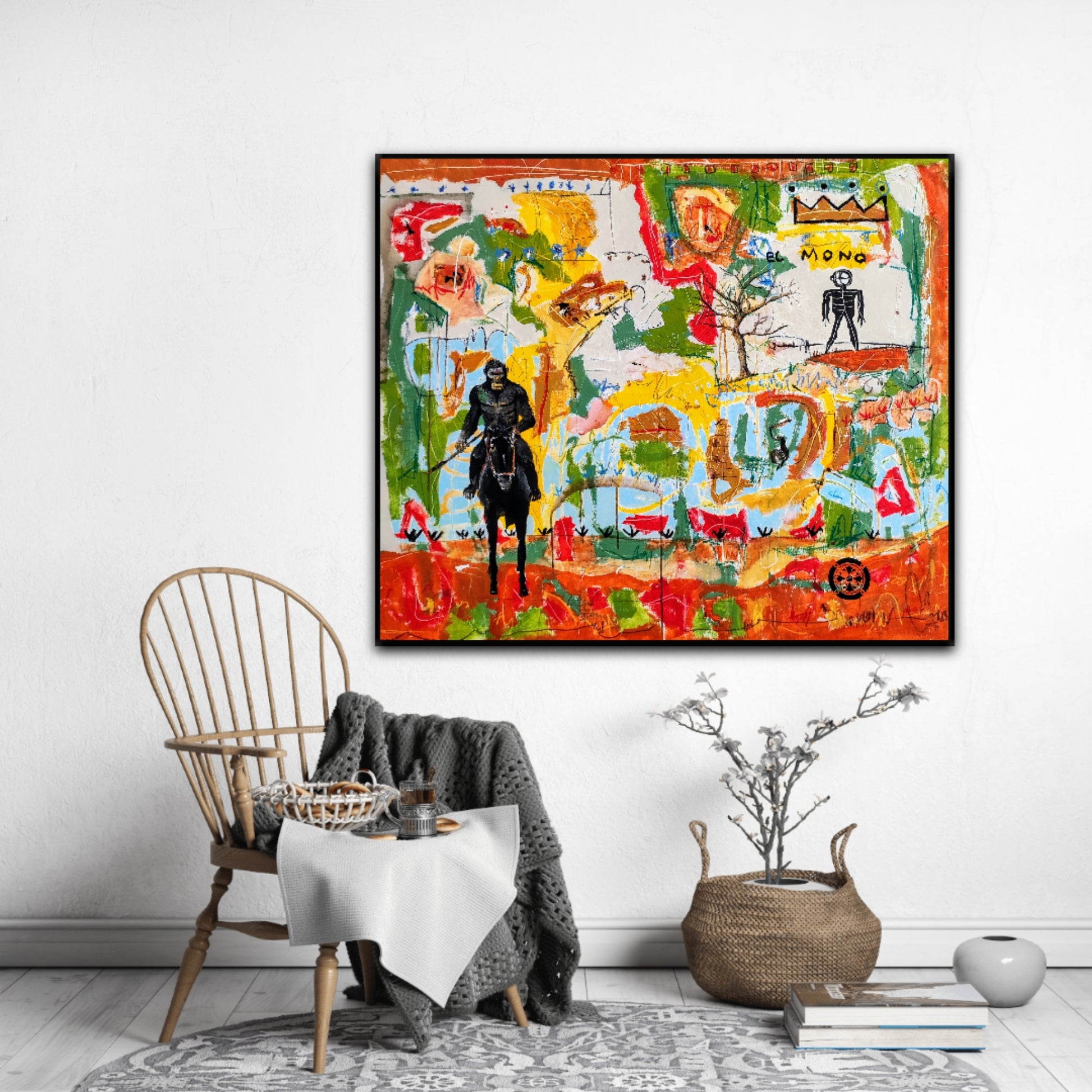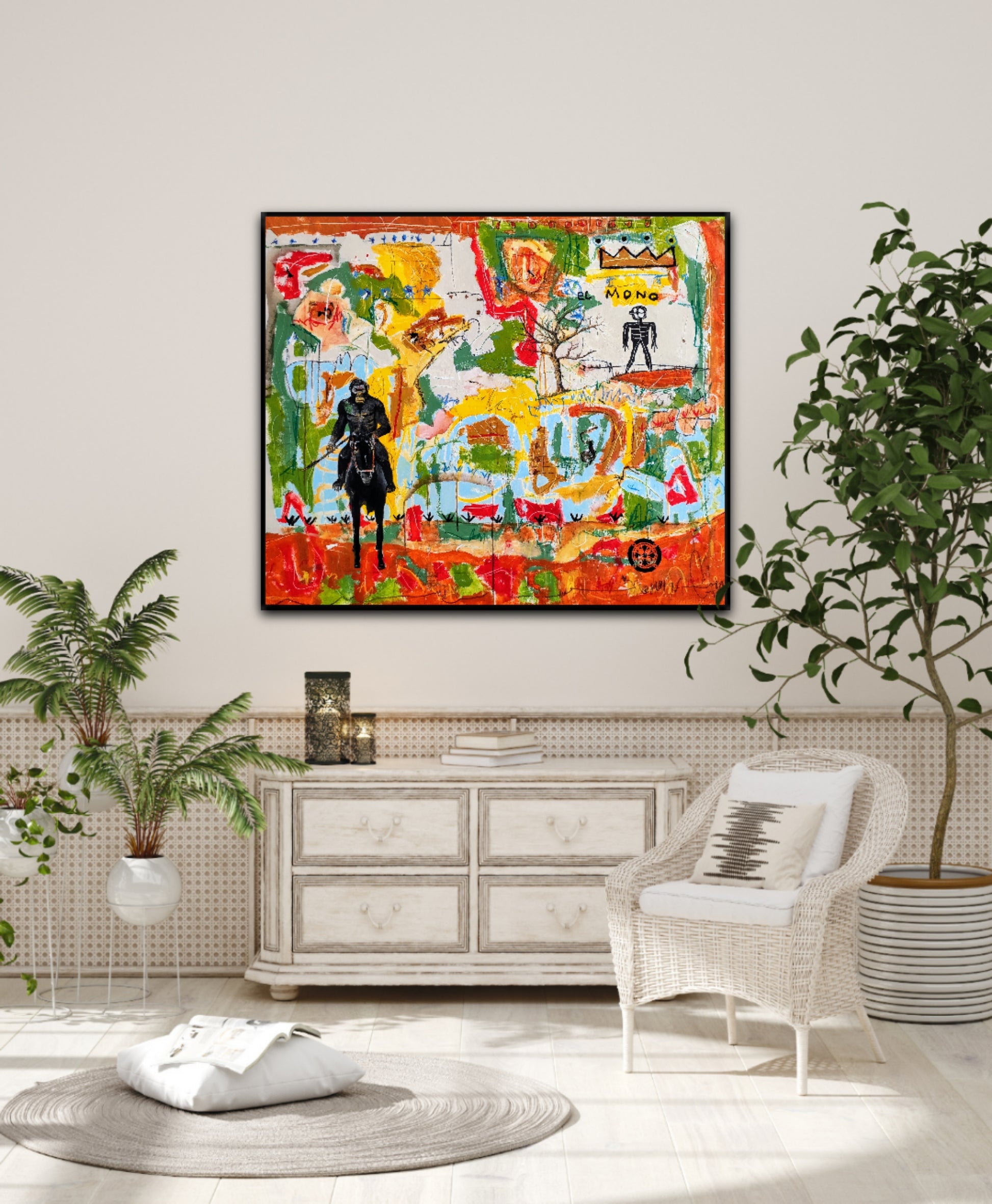 Cuadro trabajado desde la improvisación libre. Action painting con música de Dominique Fils-Aimé.