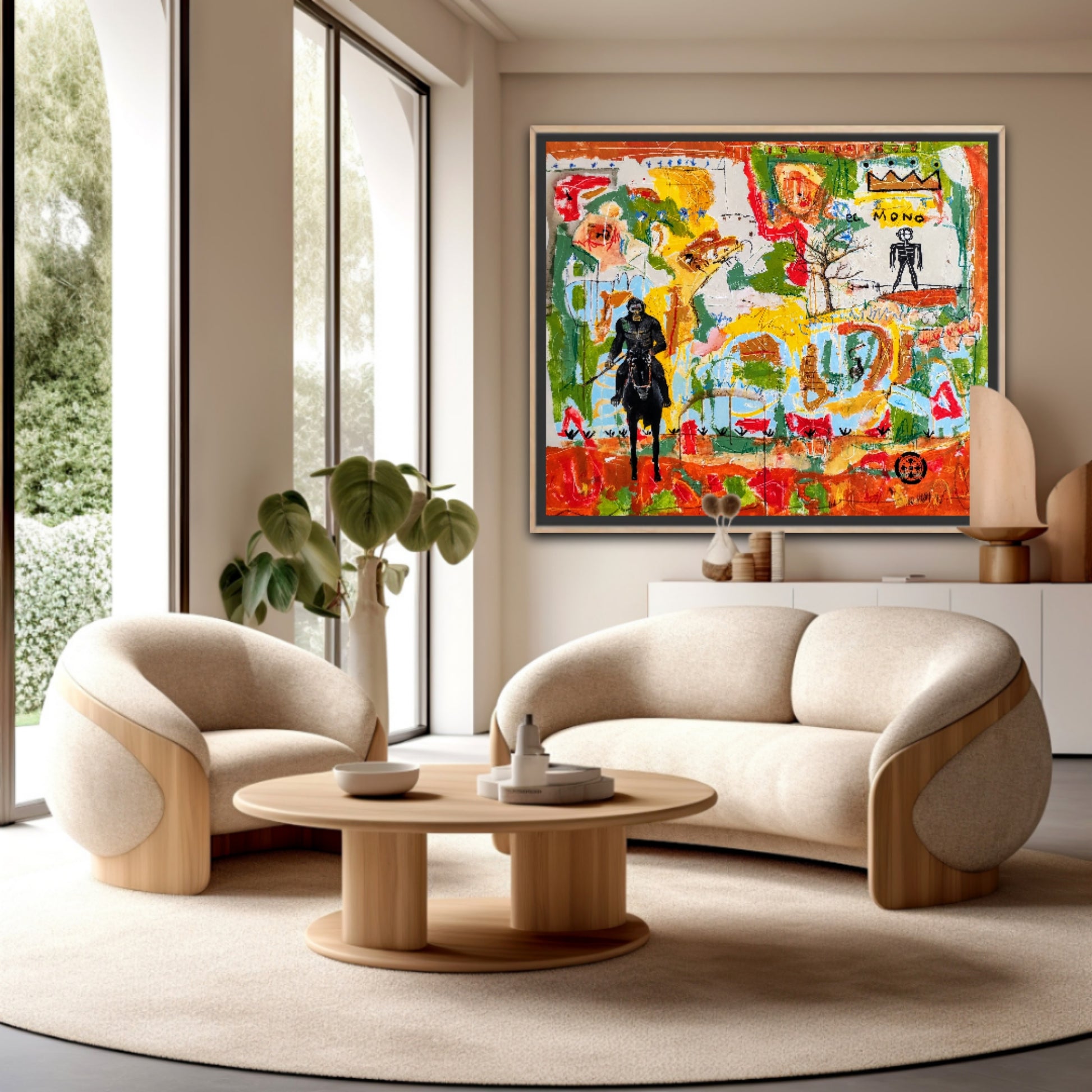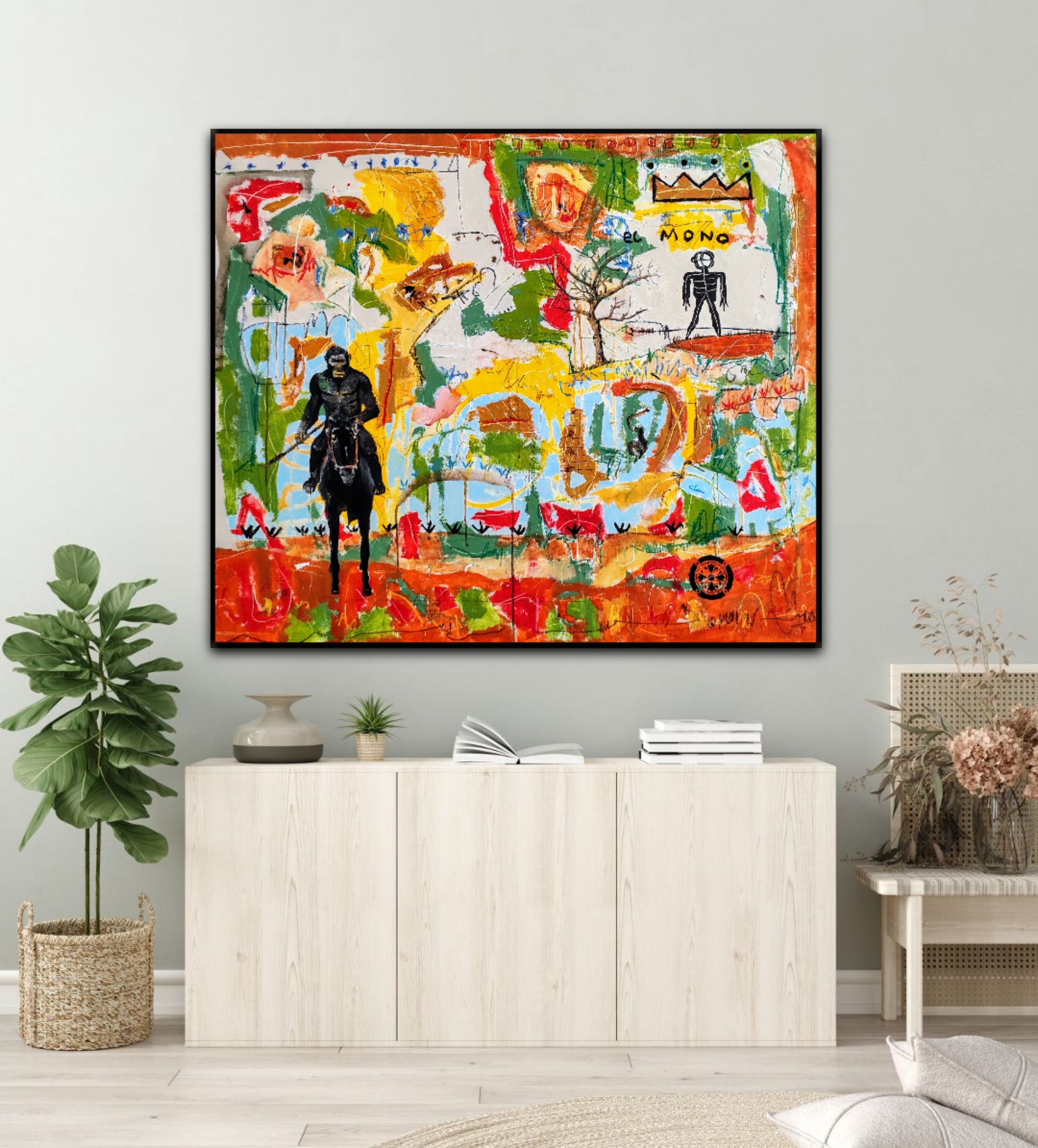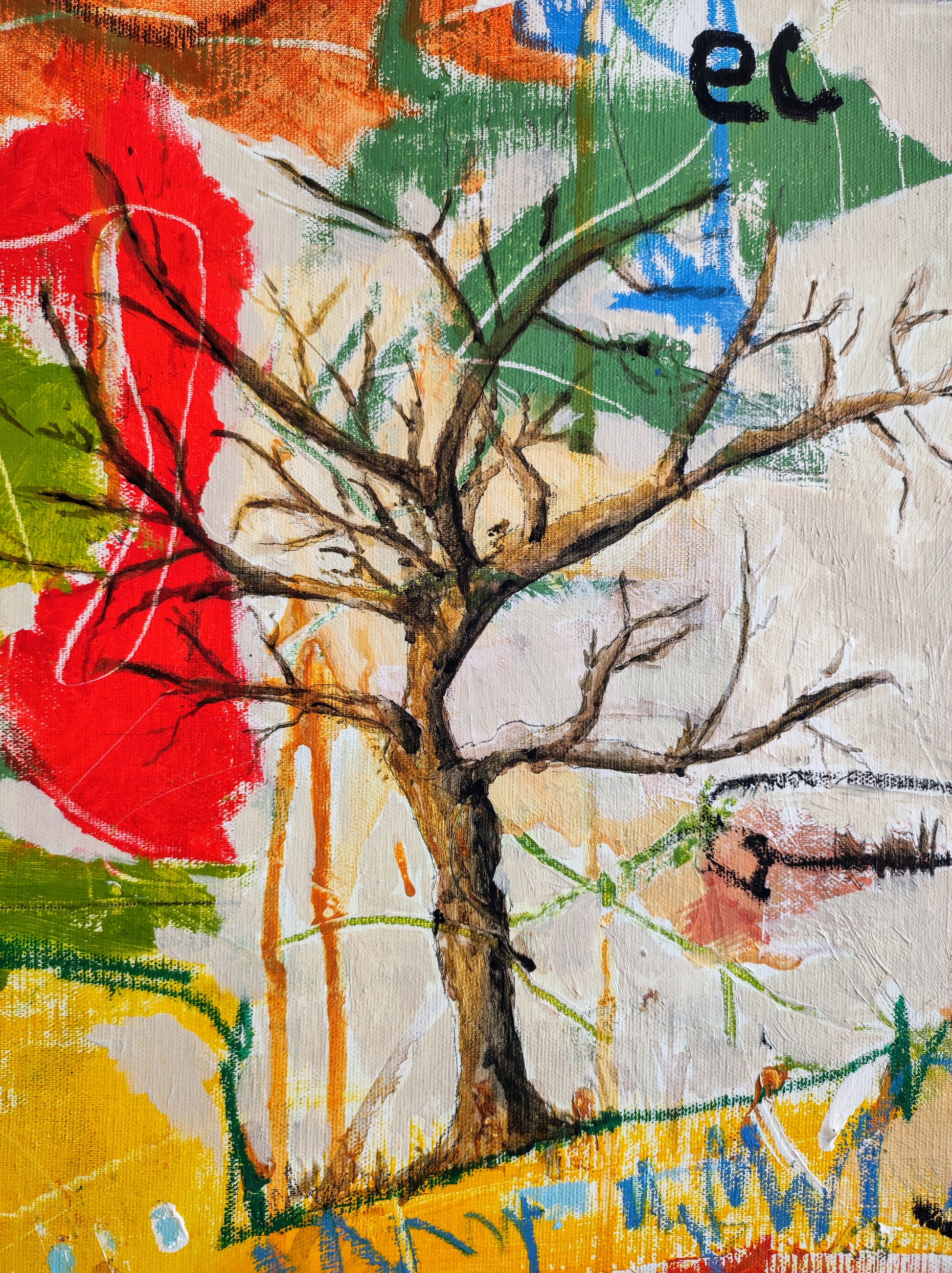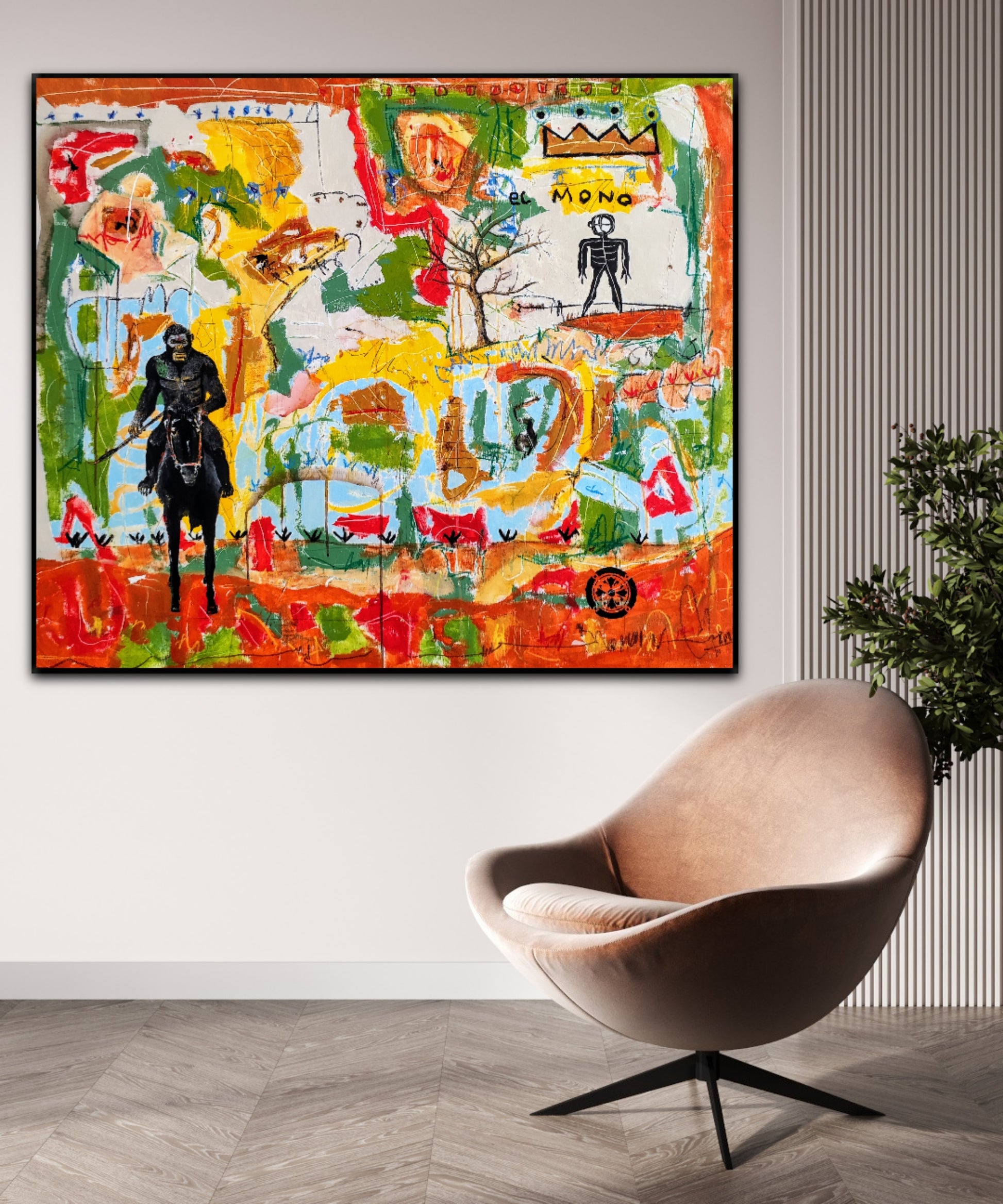 Cuadro trabajado desde la improvisación libre. Action painting con música de Dominique Fils-Aimé.