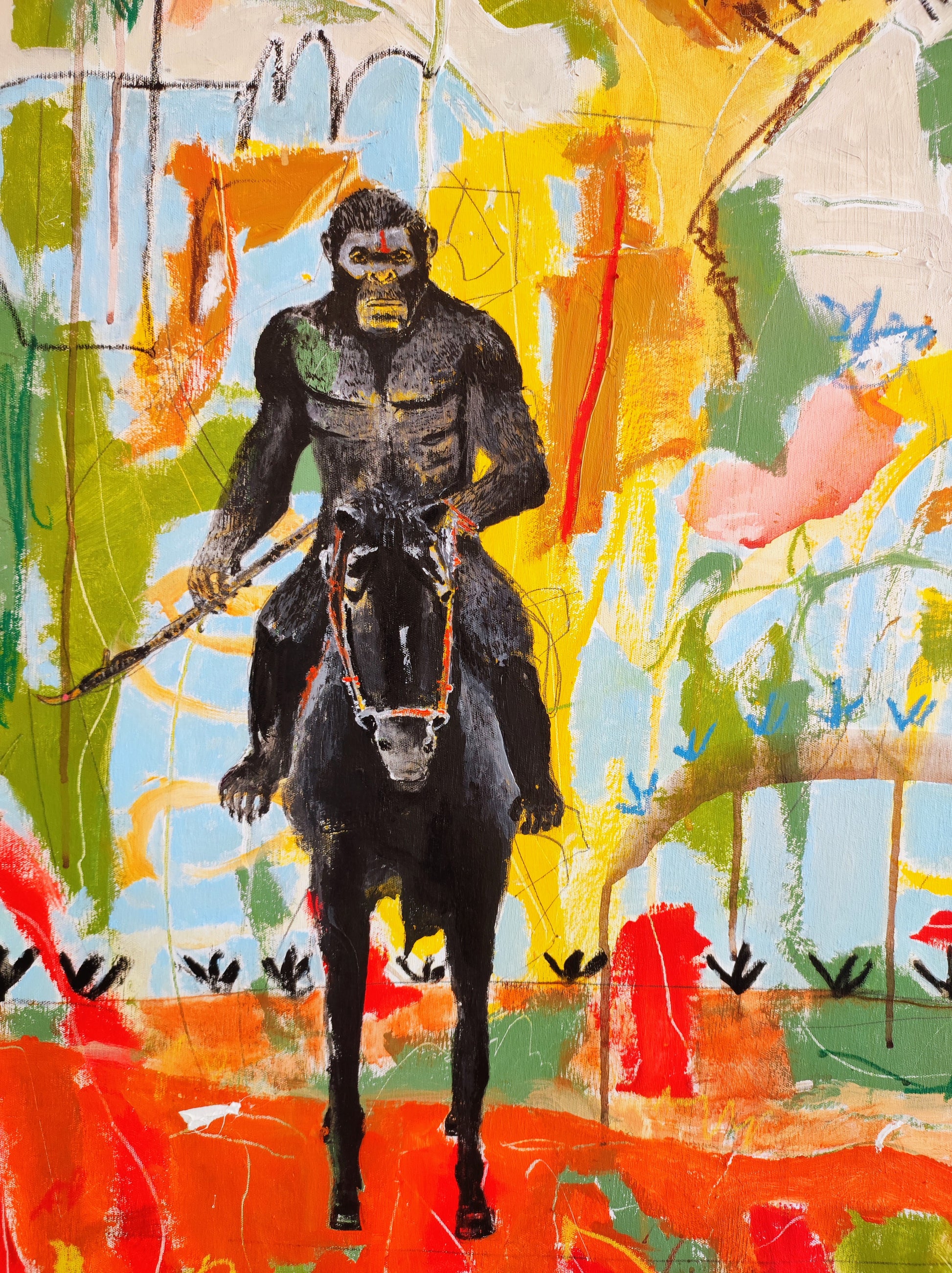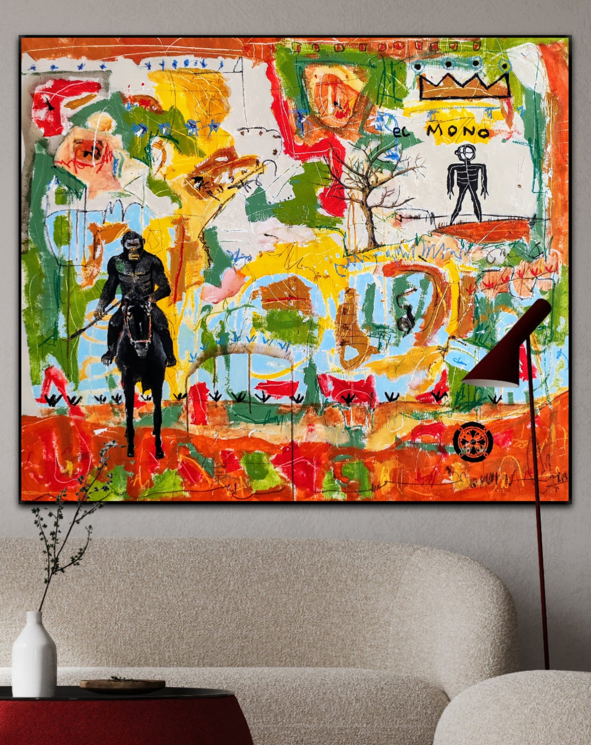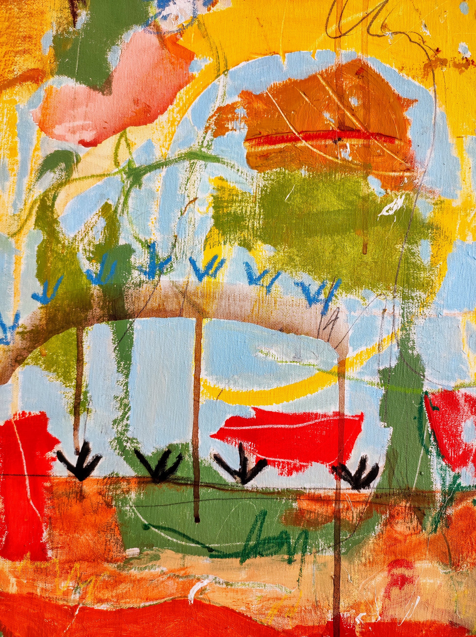 Pintura gestual, intuitiva, que deja que las cosas pasen y se apoya sobre lo que aparece. Aprovechando el accidente y aceptando las consecuencias.