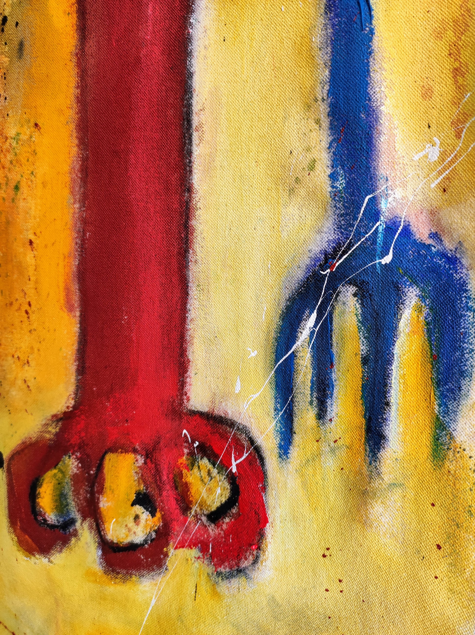 Obra inspirada en una pintura rupestre macroesquemática encontrada en el Barranc de L'infern (Vall de L'Aguar - Alicante). Action painting con música de John Frusciante.