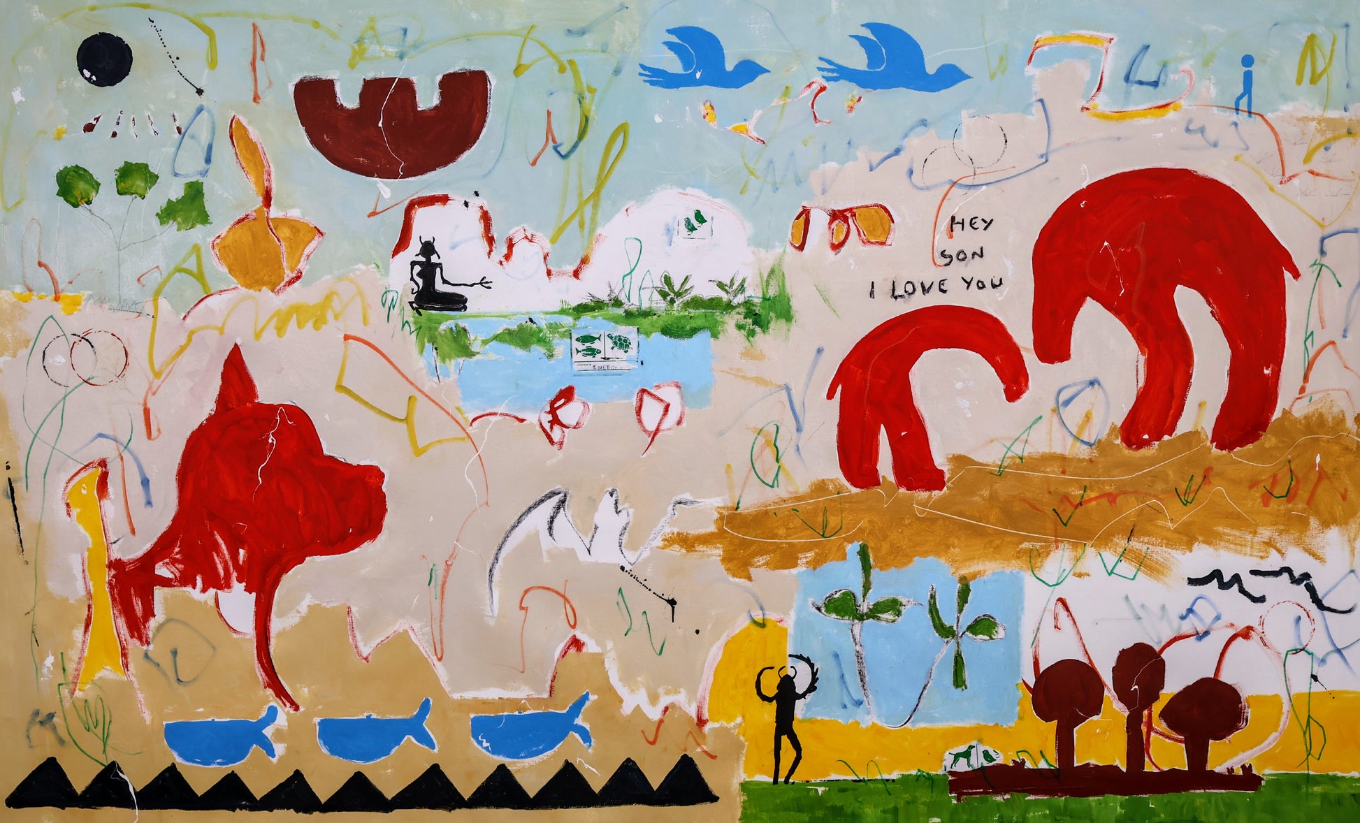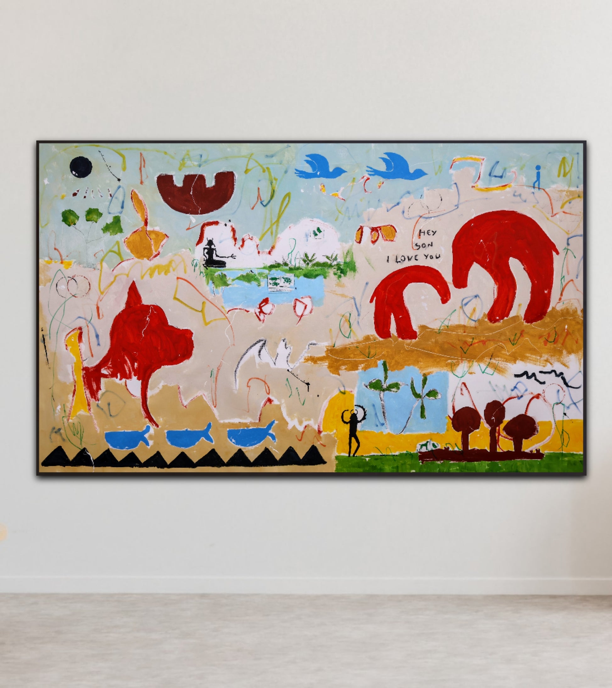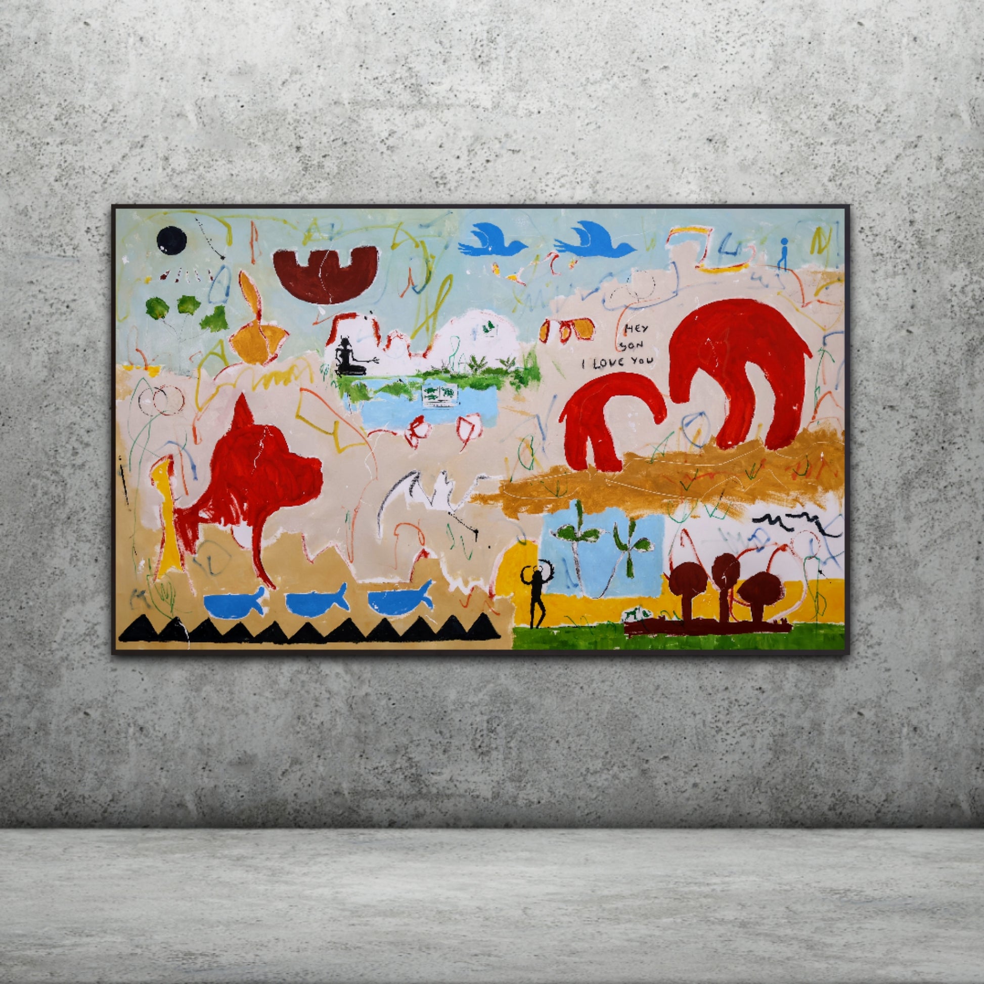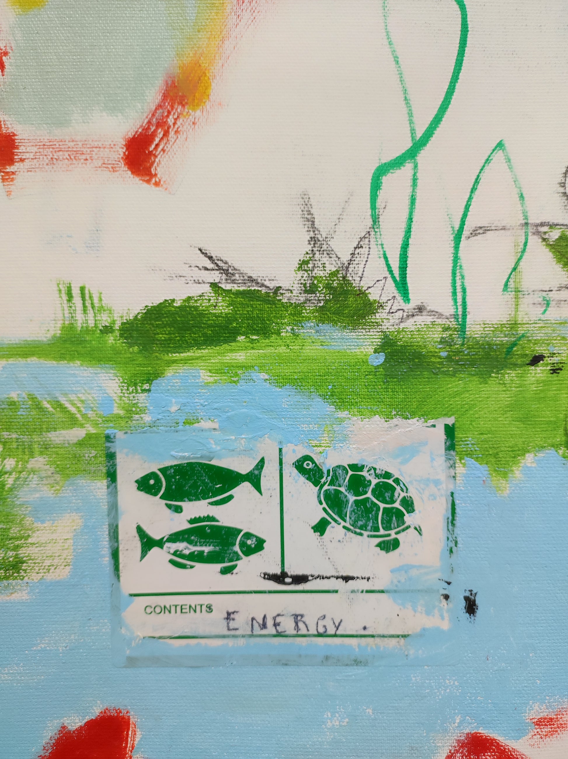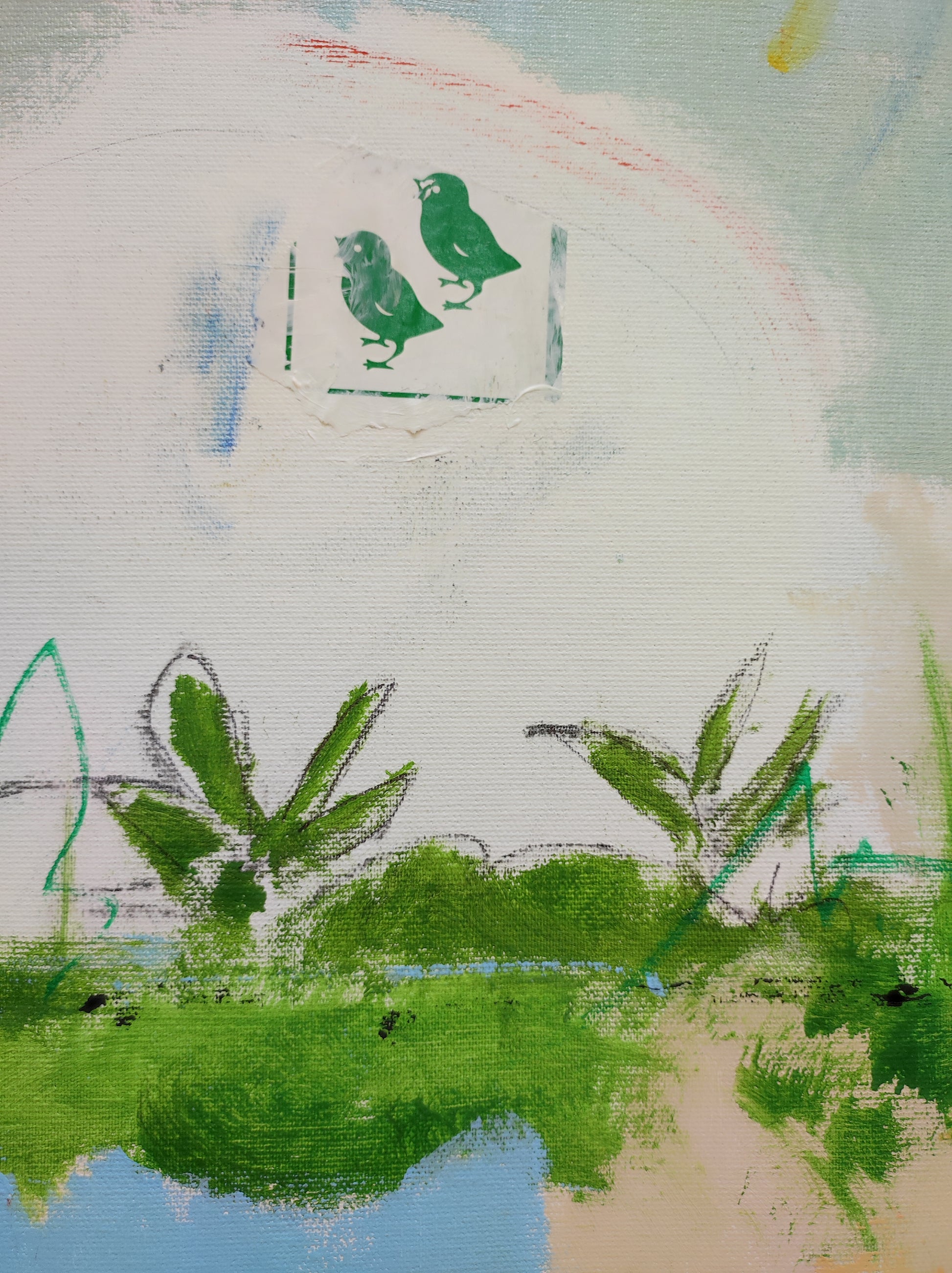 Técnica: acrílico, pigmentos, lápiz, gesso y adhesivos.