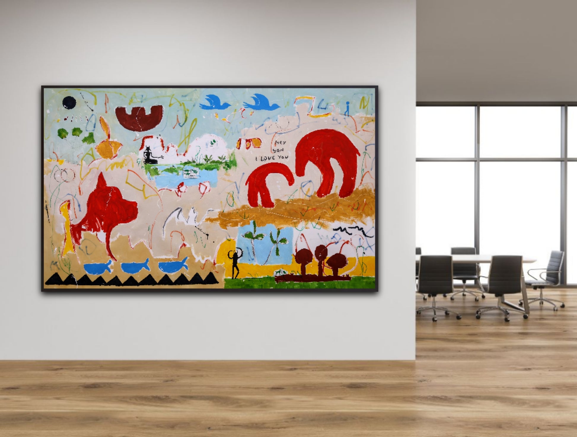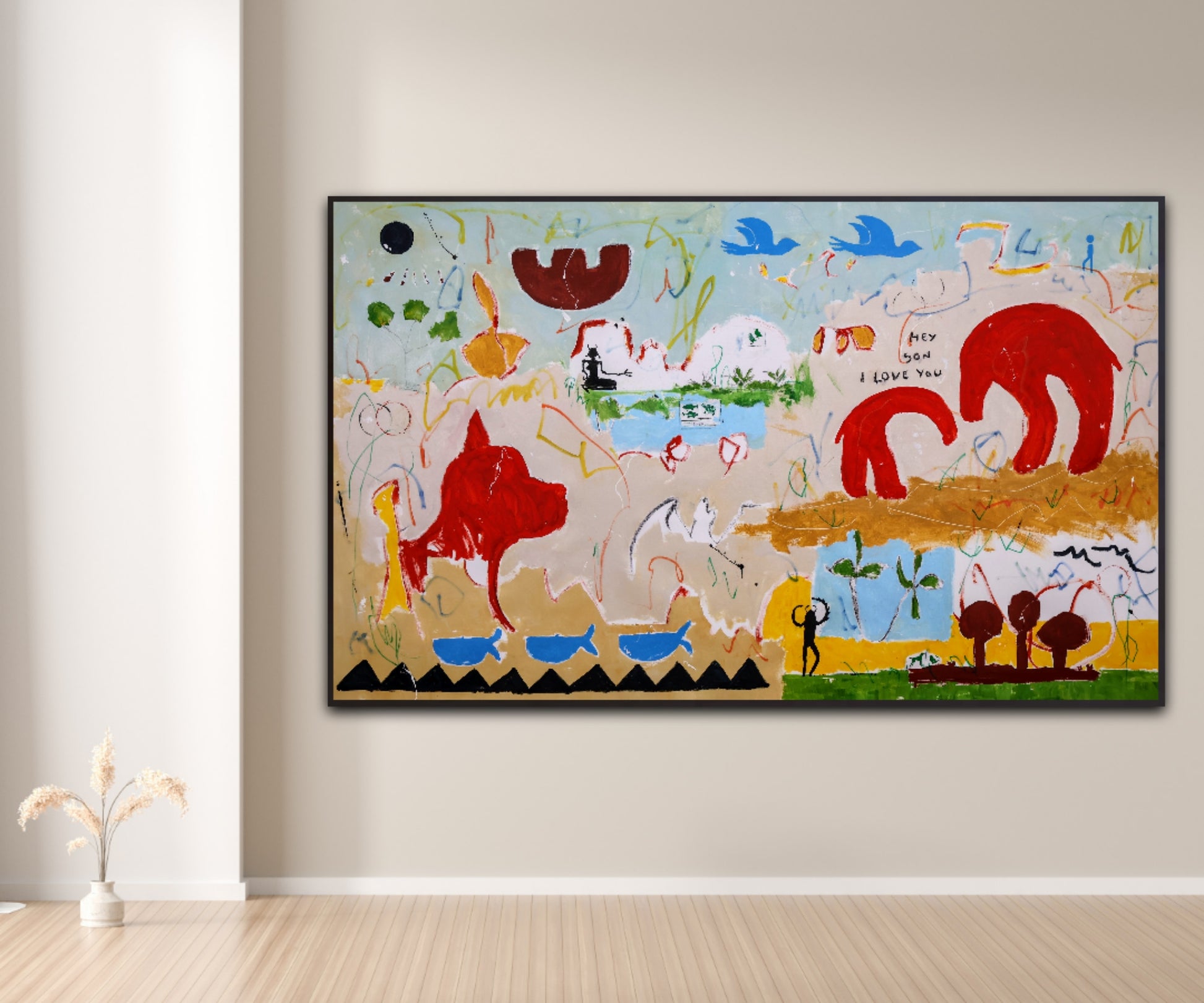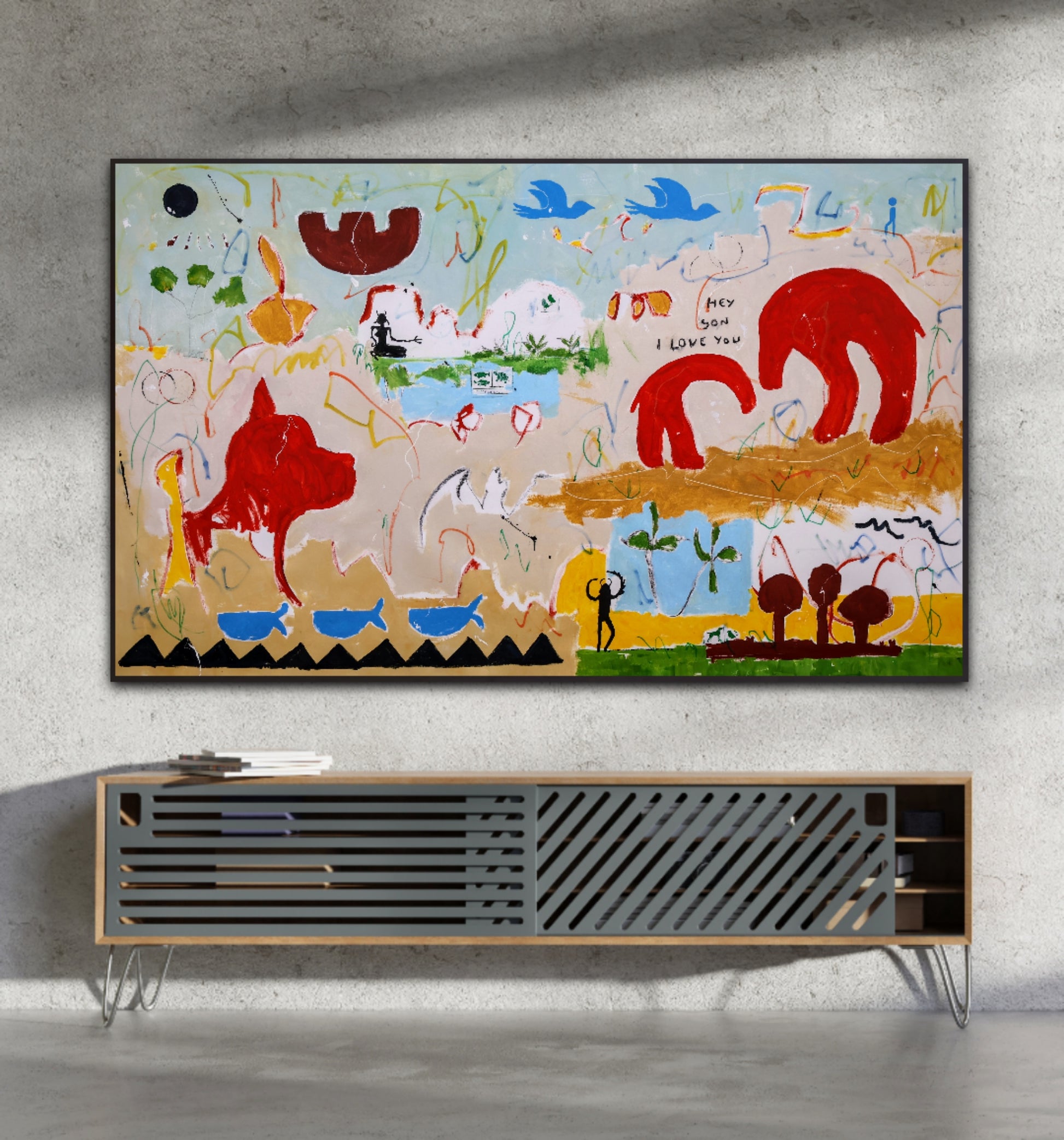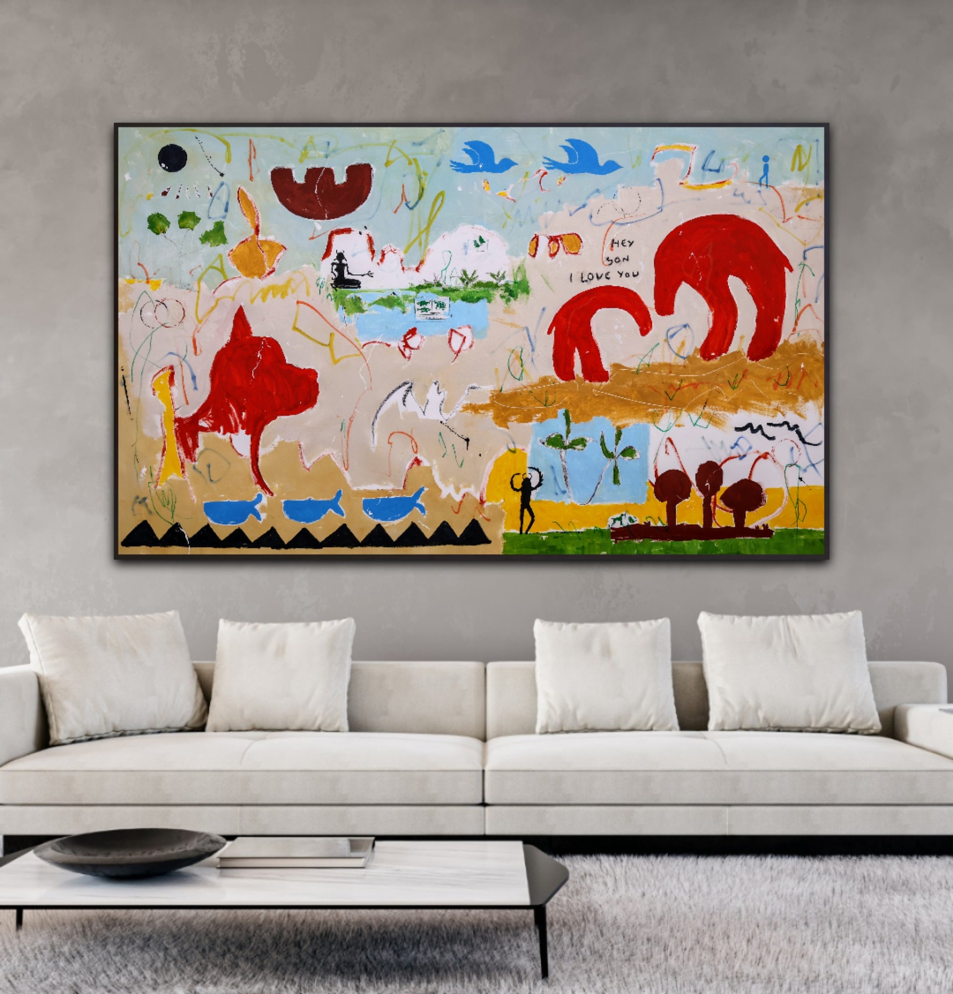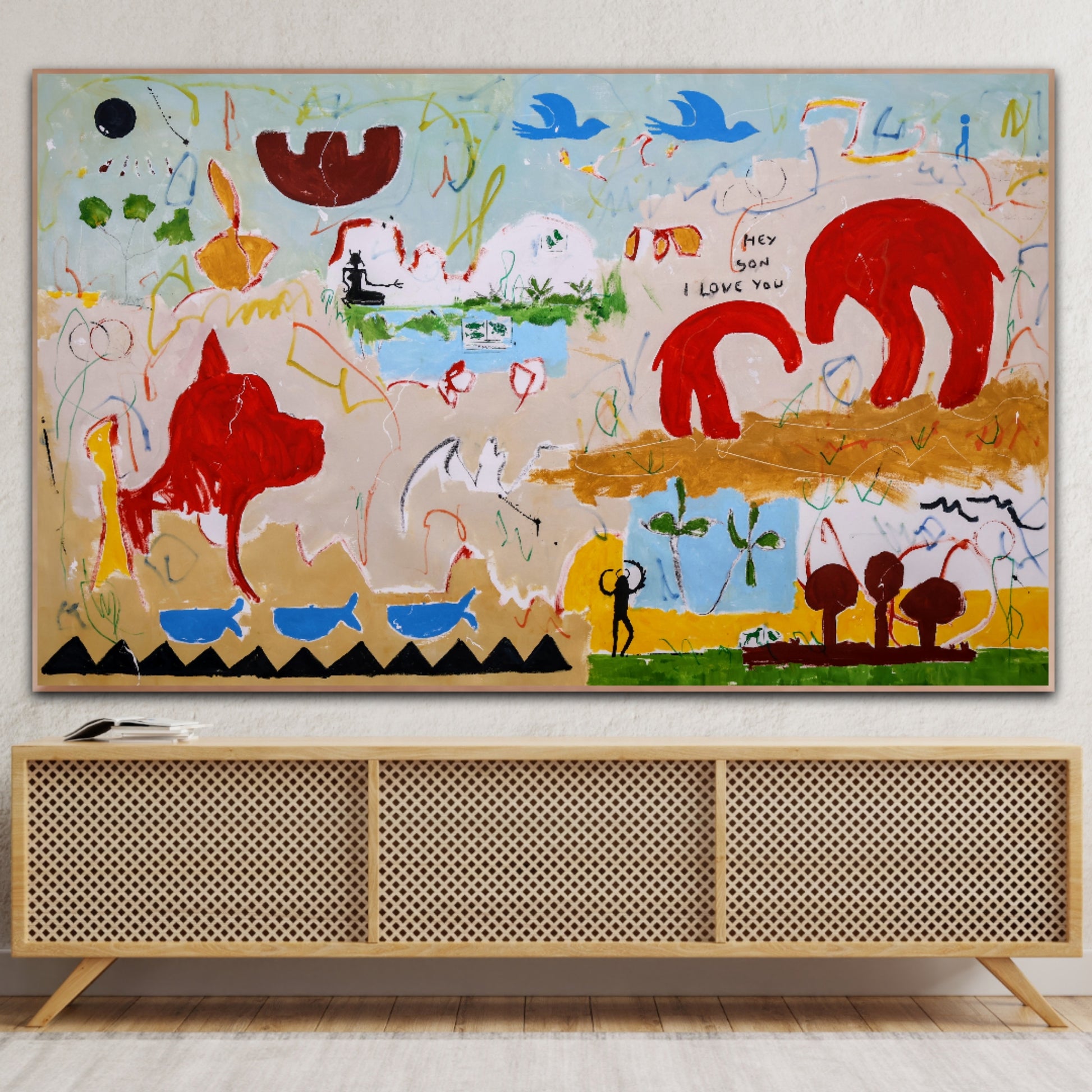 Técnica: acrílico, pigmentos, lápiz, gesso y adhesivos.