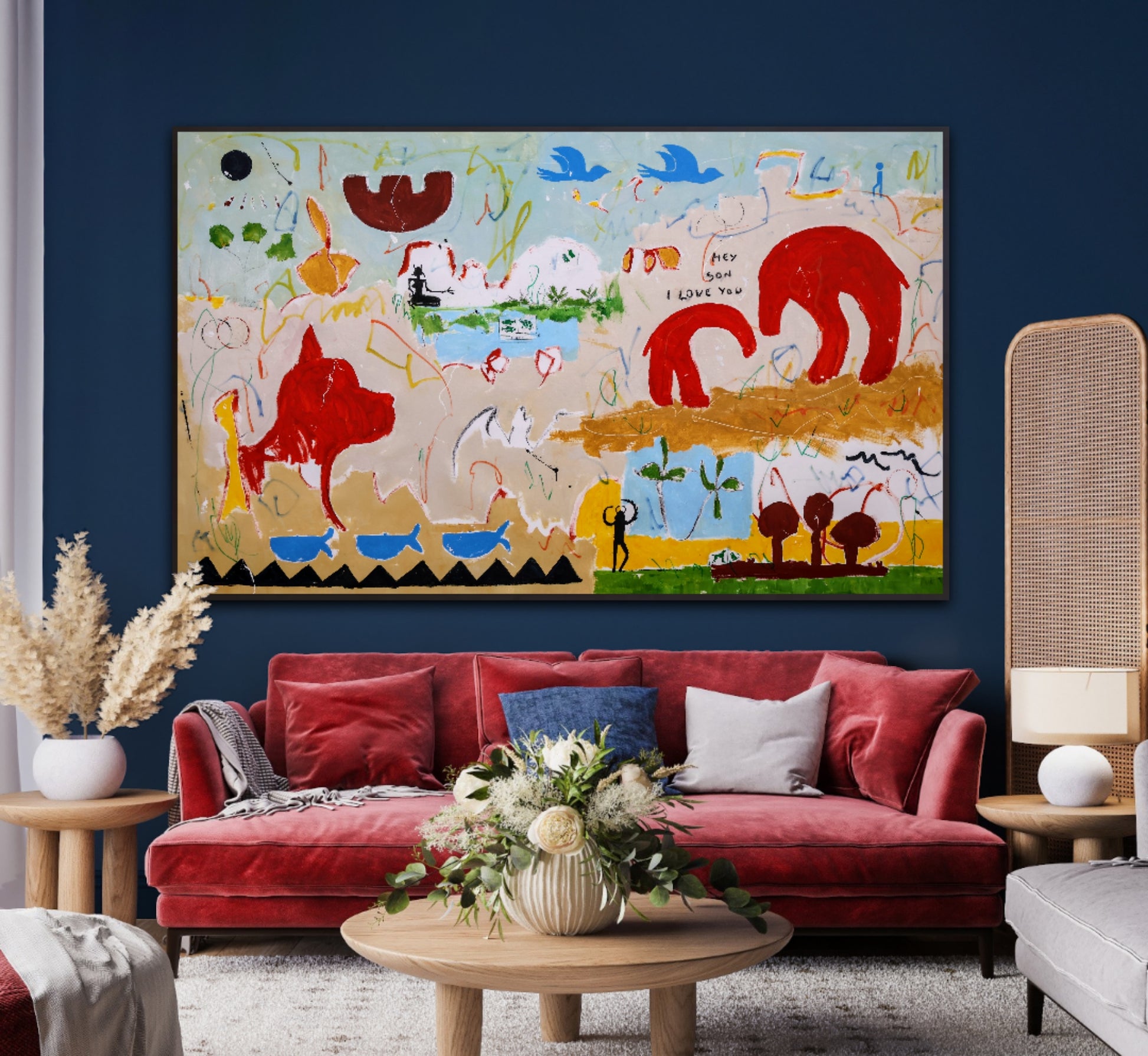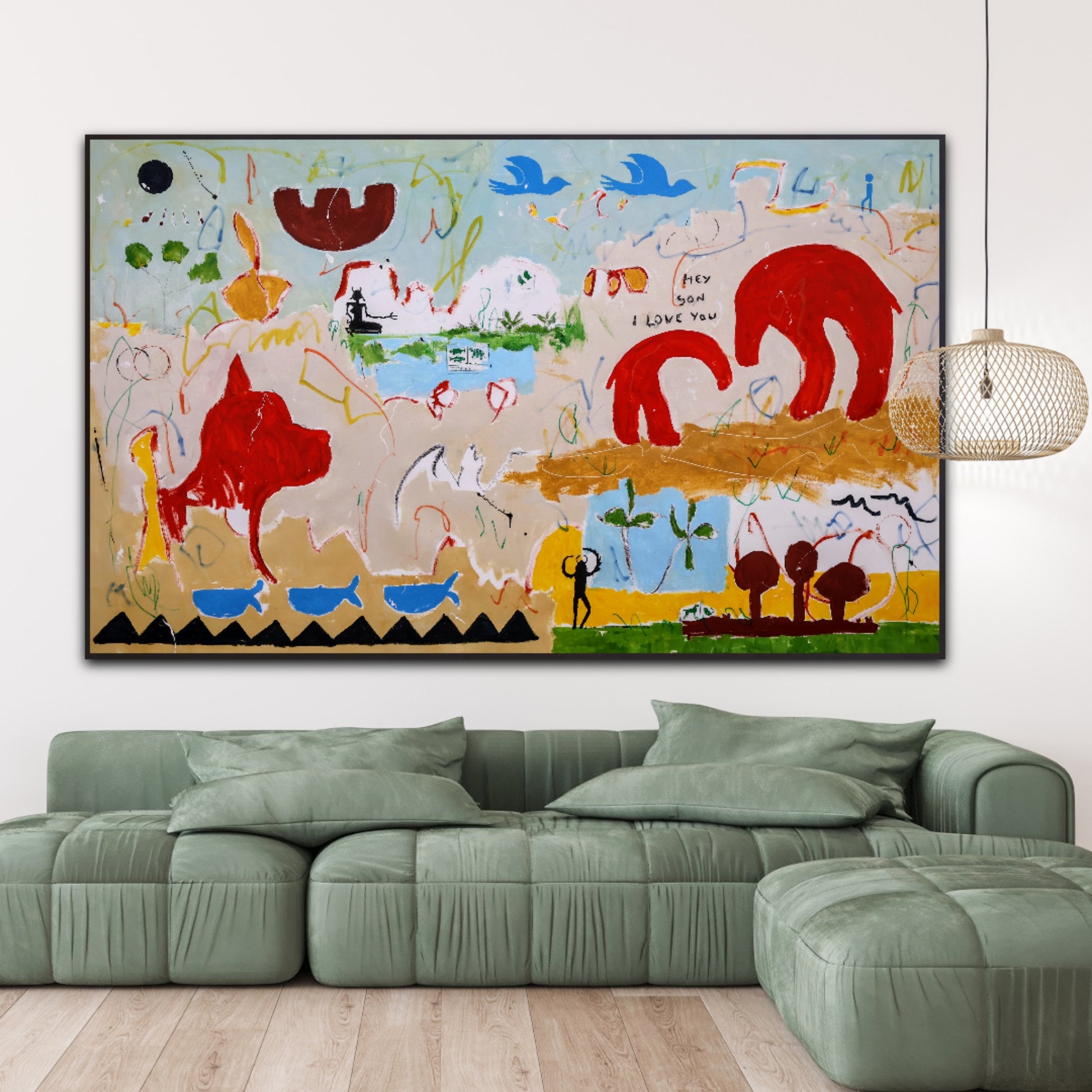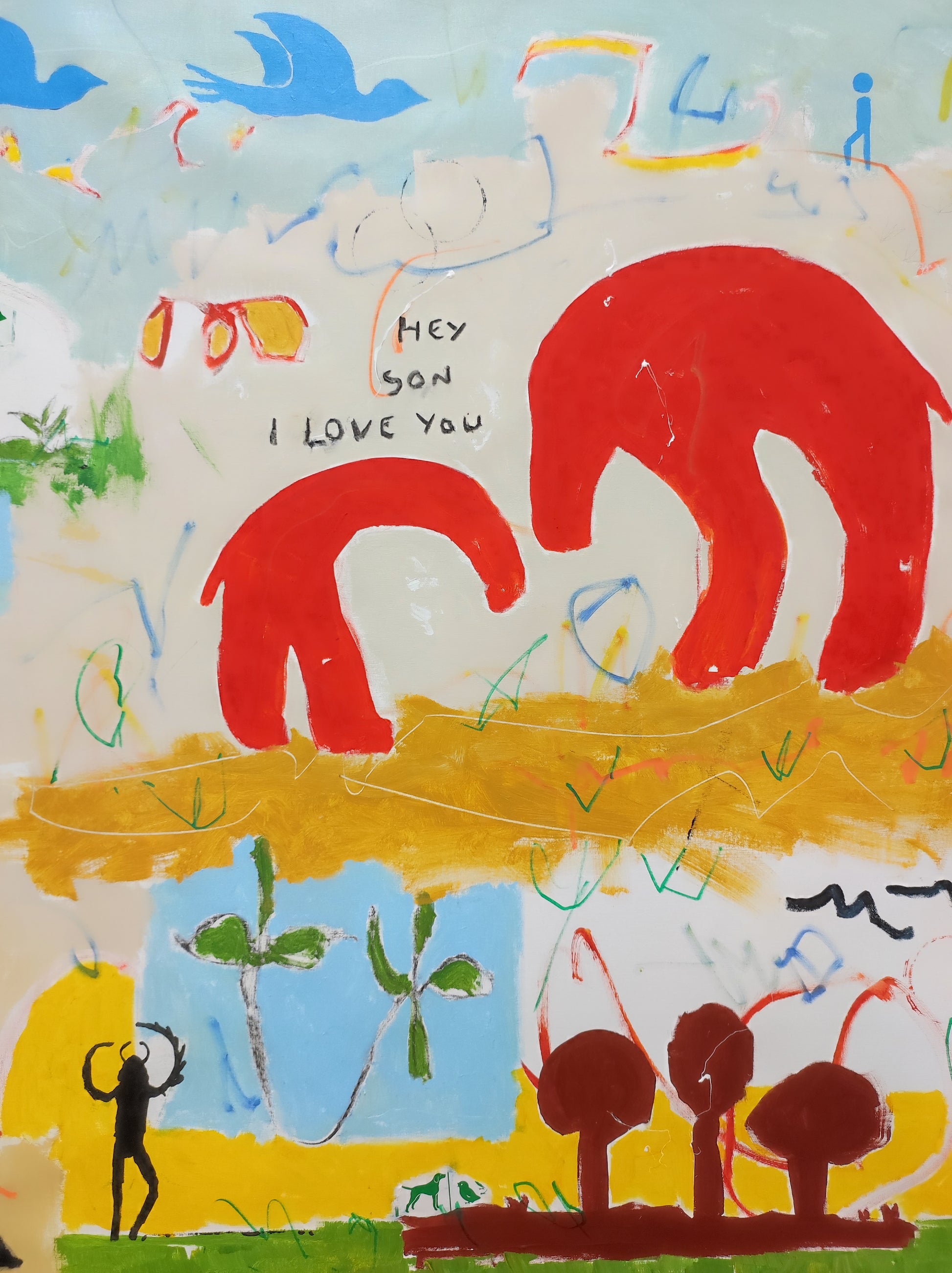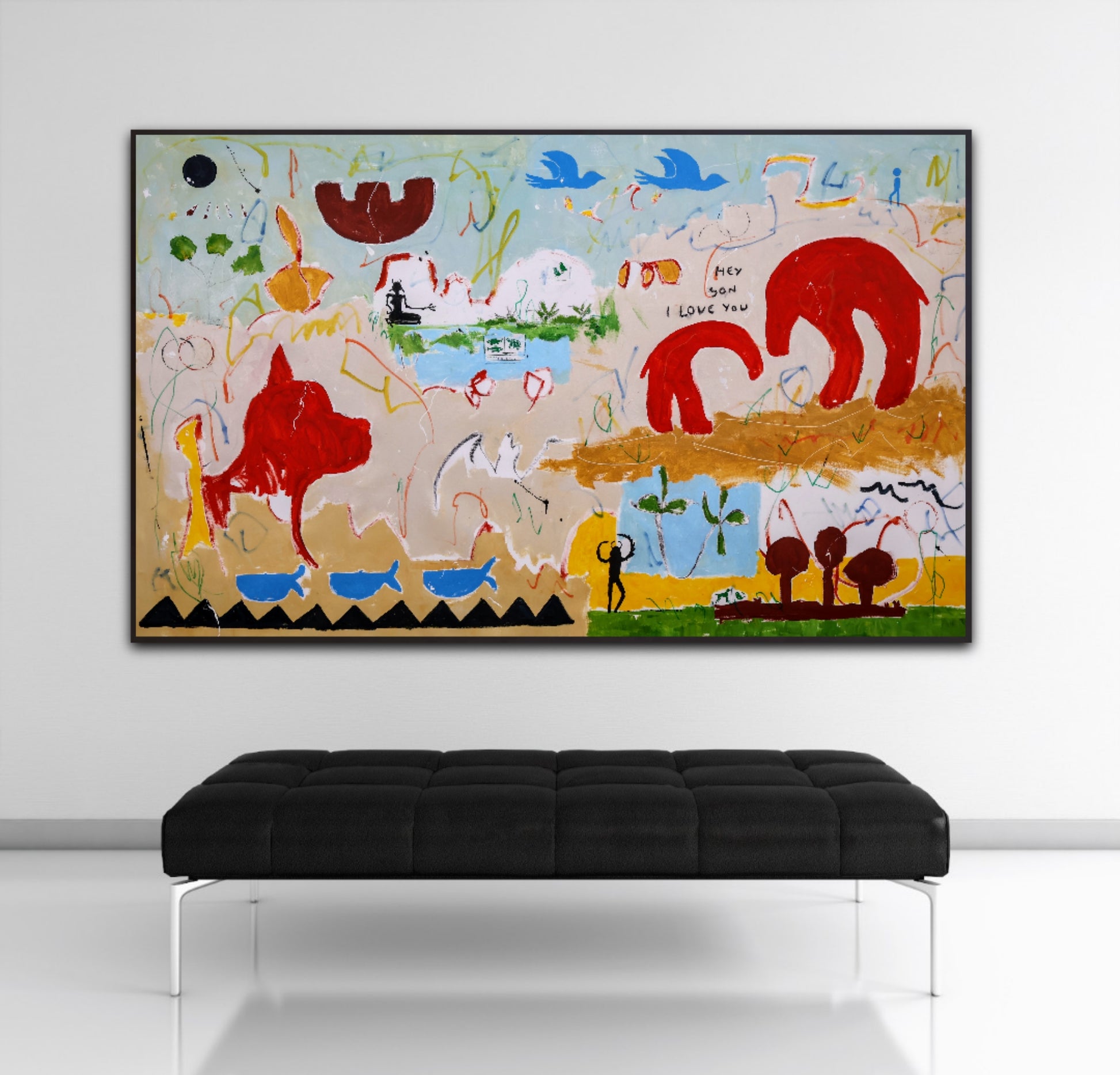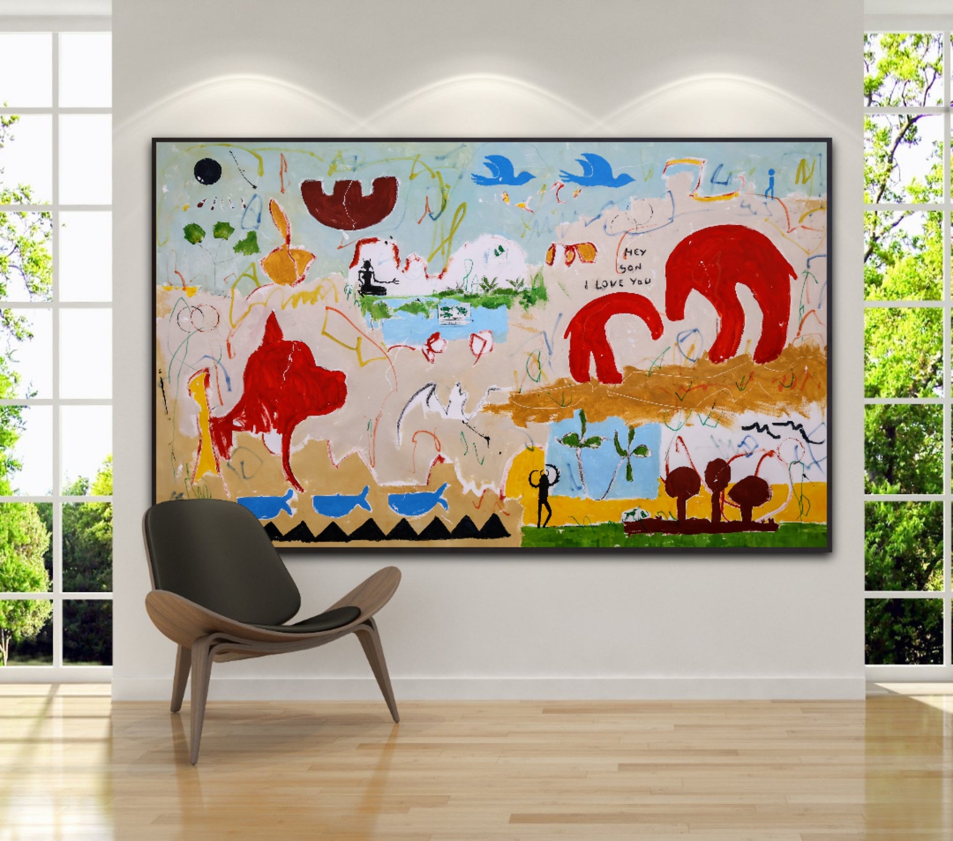 Pintura gestual, intuitiva, que deja que las cosas pasen y se apoya sobre lo que aparece. Aprovechando el accidente y aceptando las consecuencias.