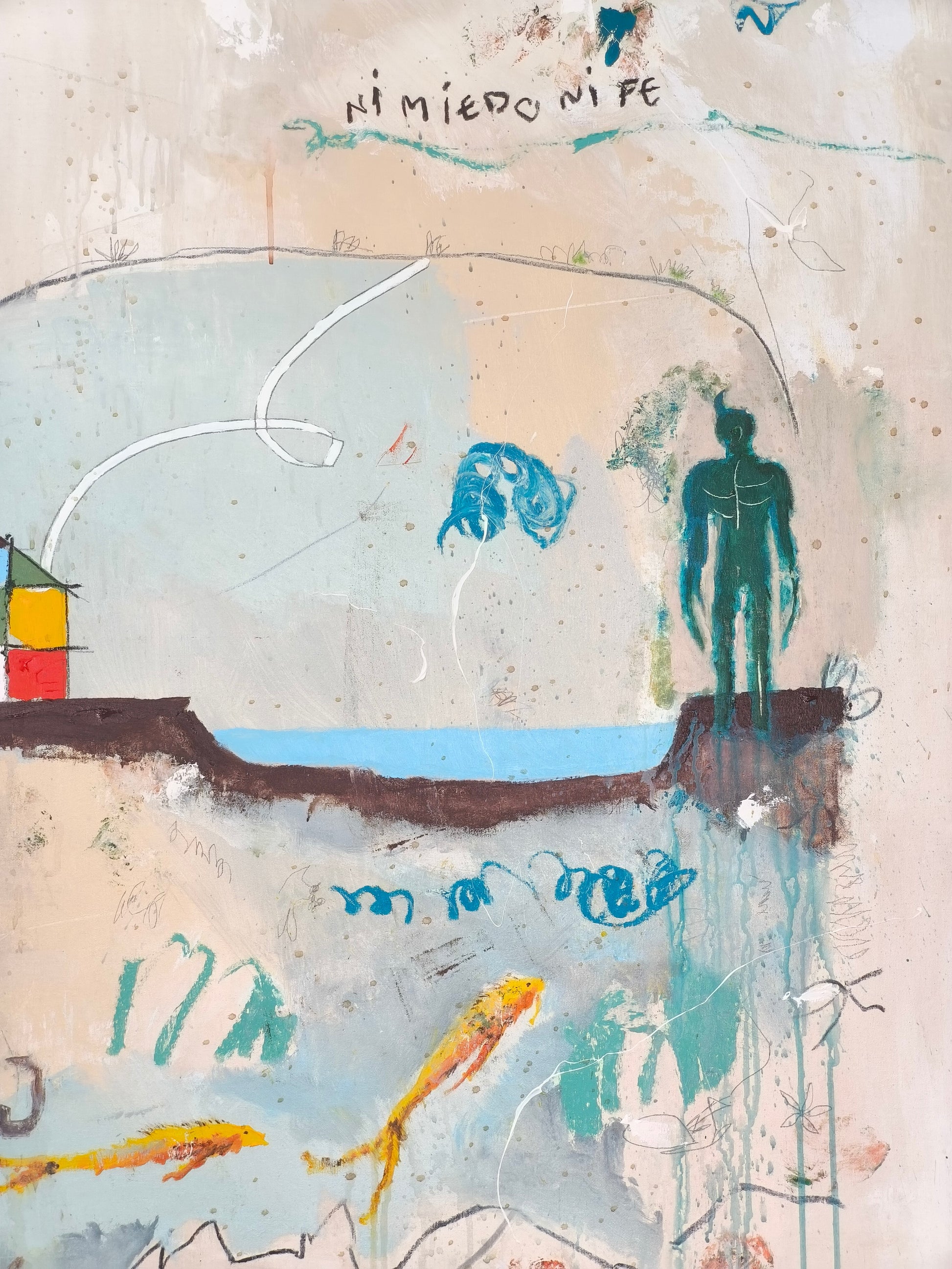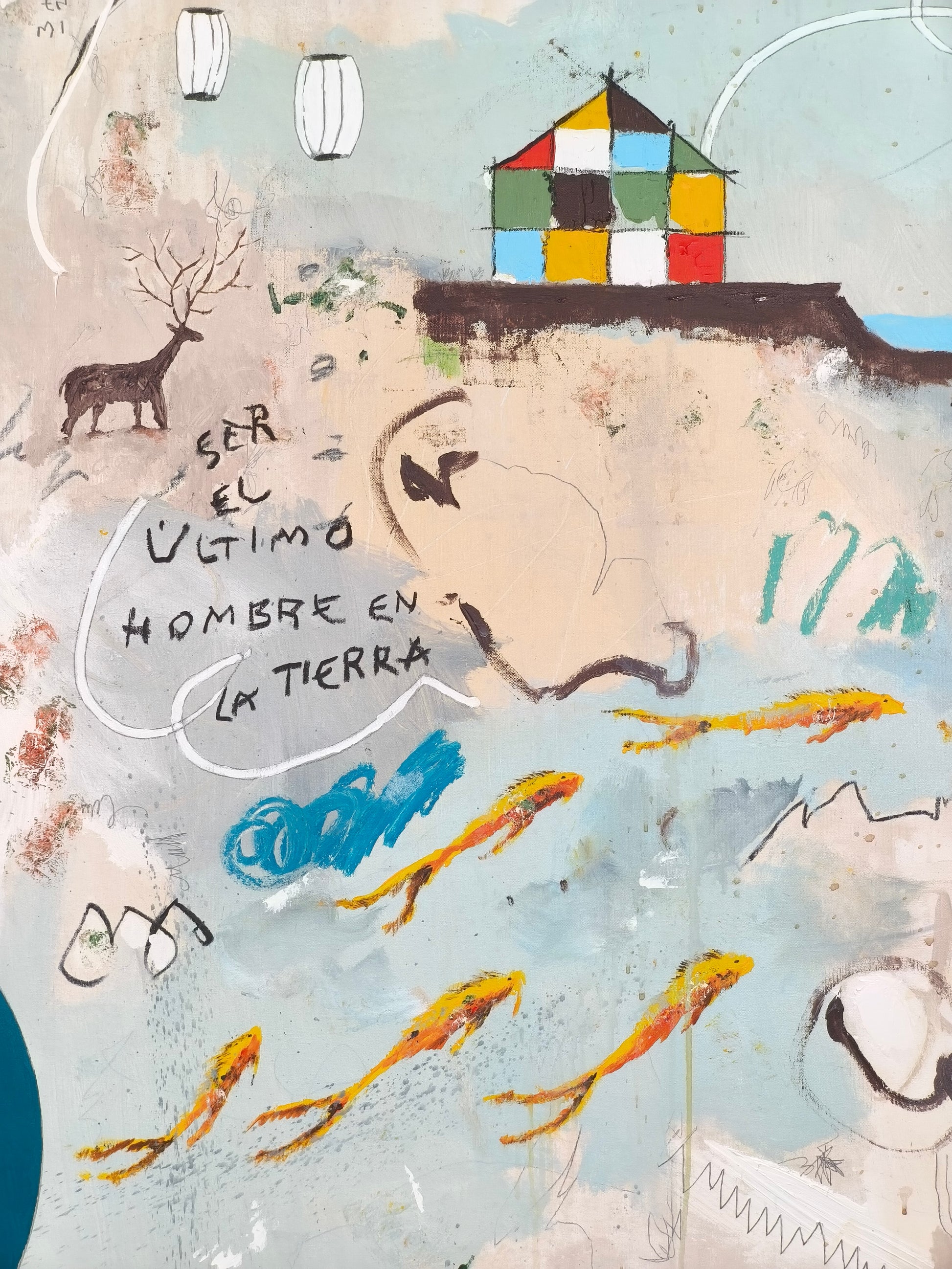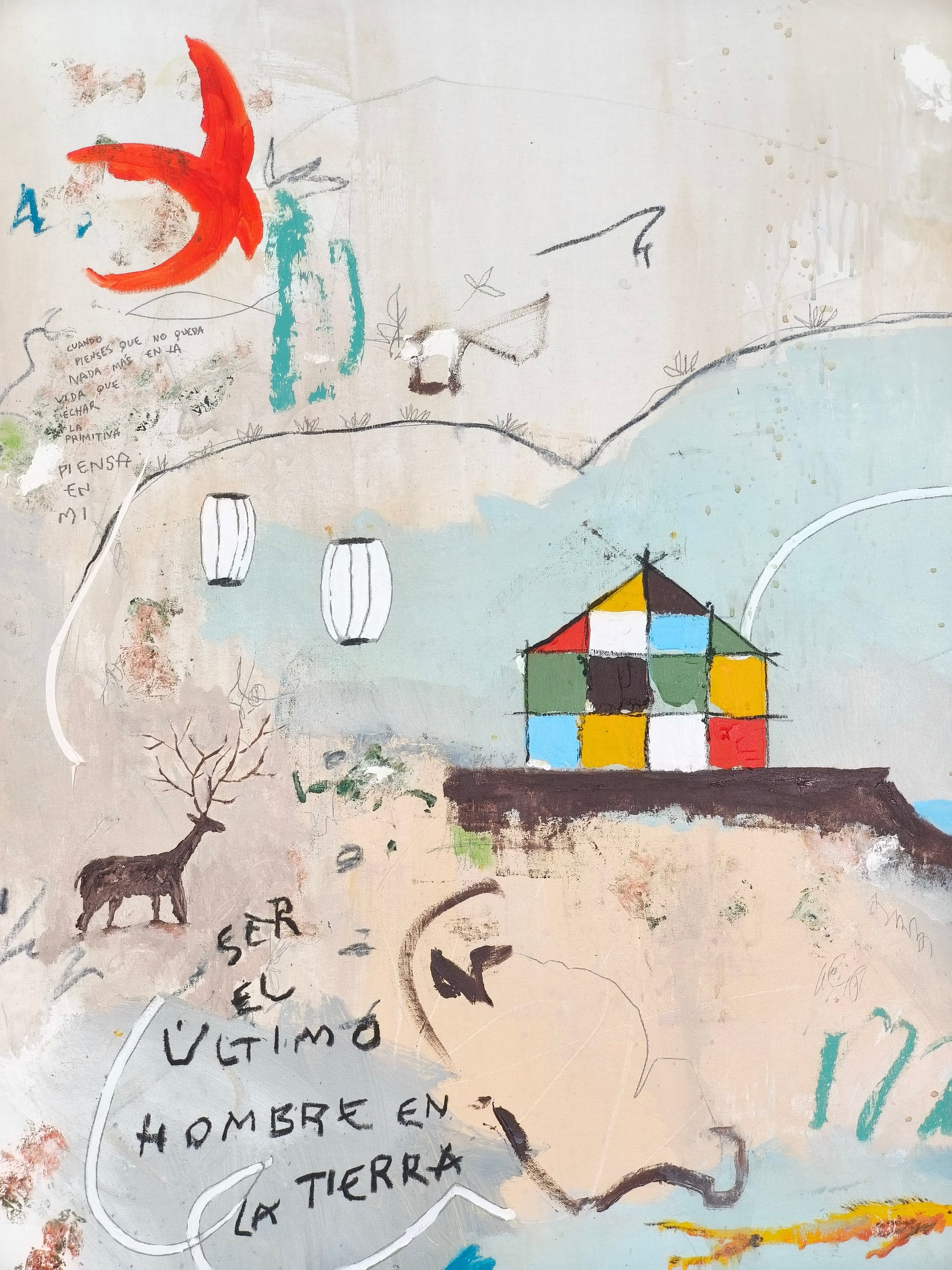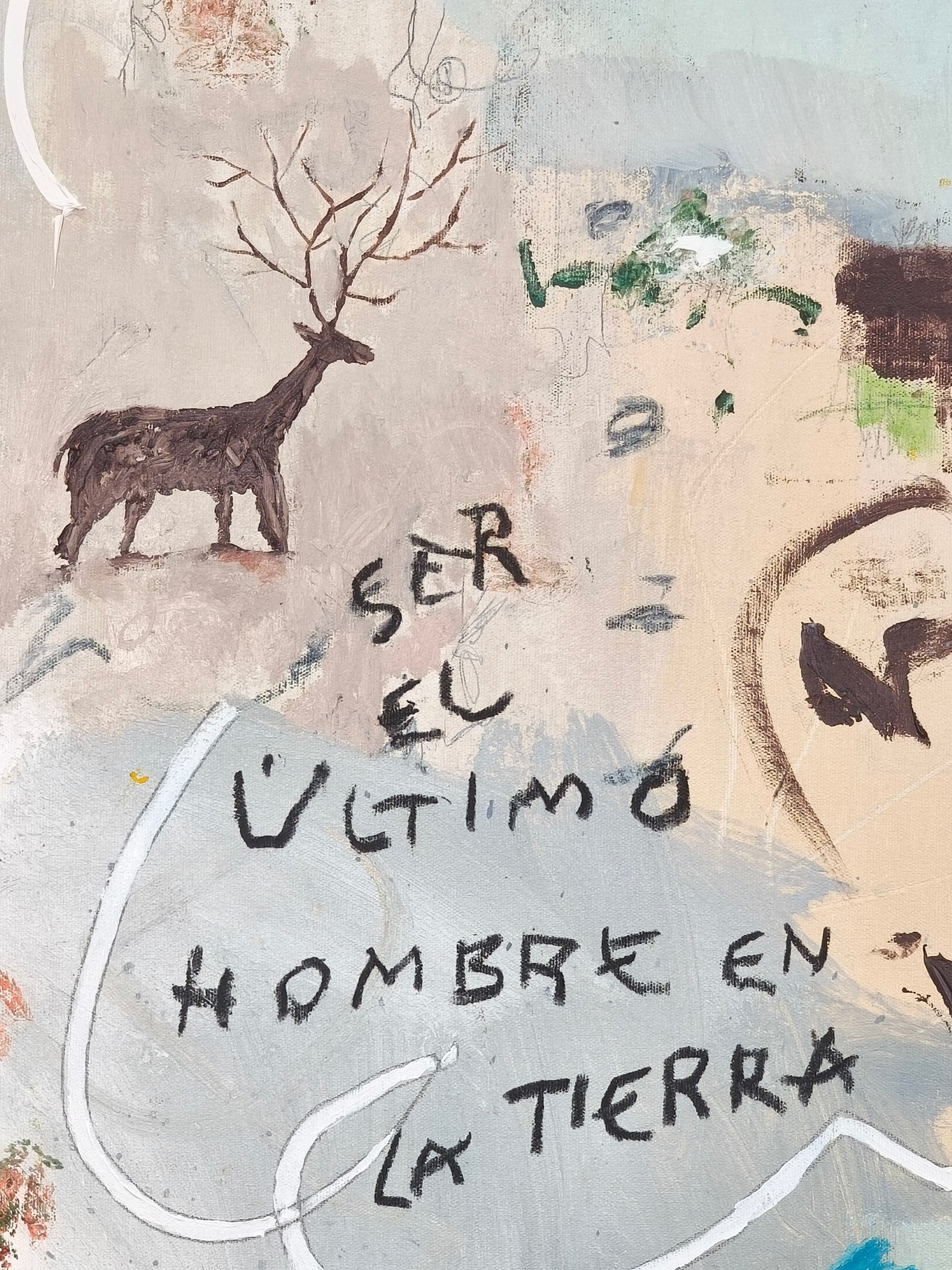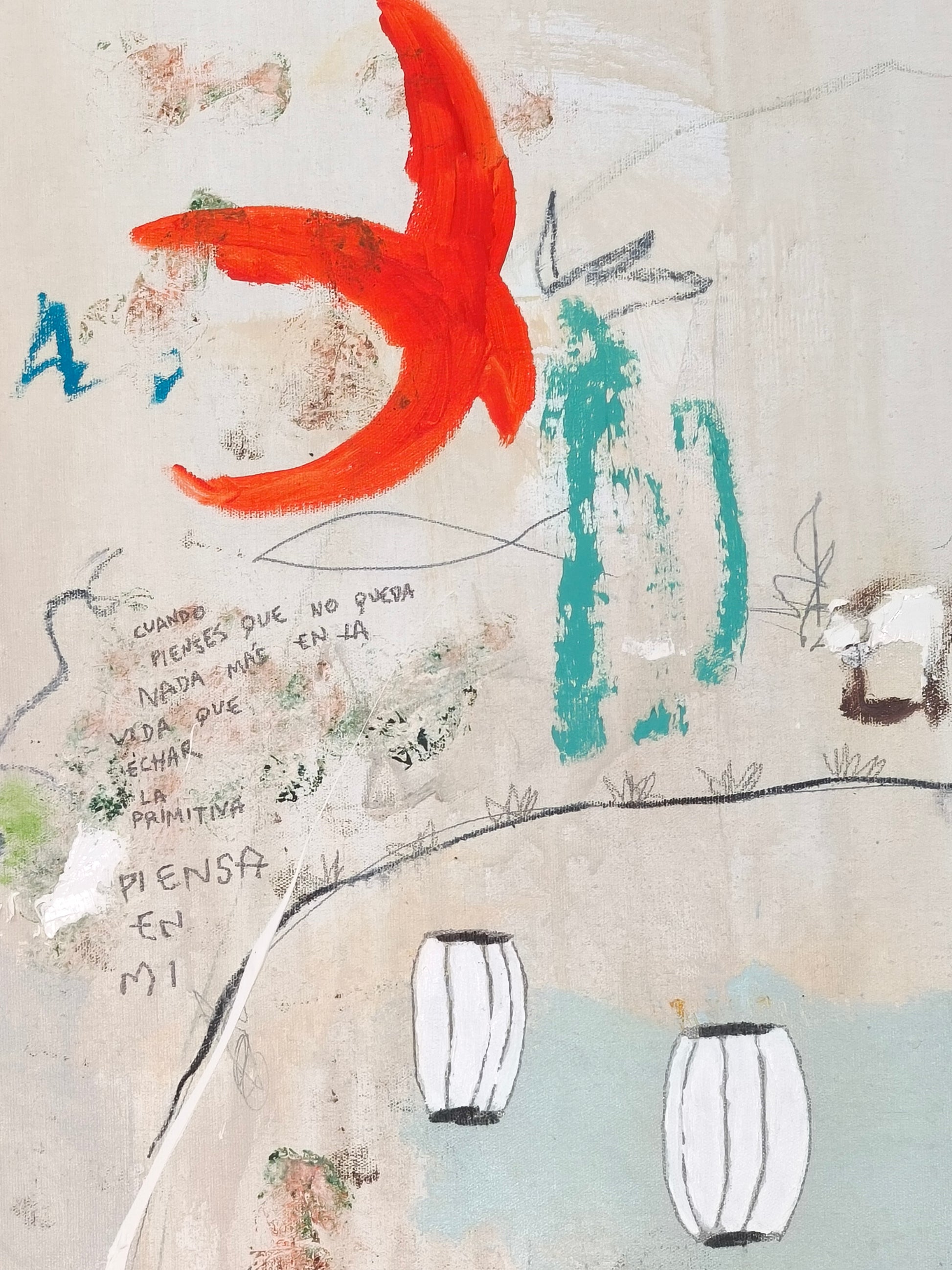 Técnica: acrílico, lápiz, carboncillo, gesso, ceras.