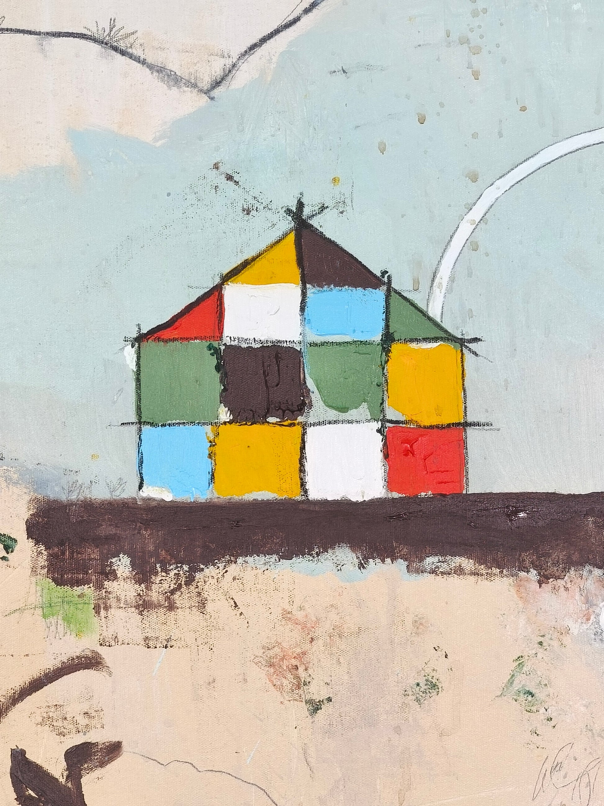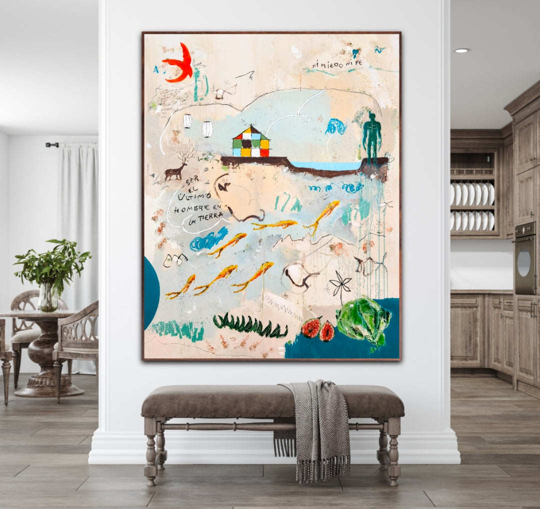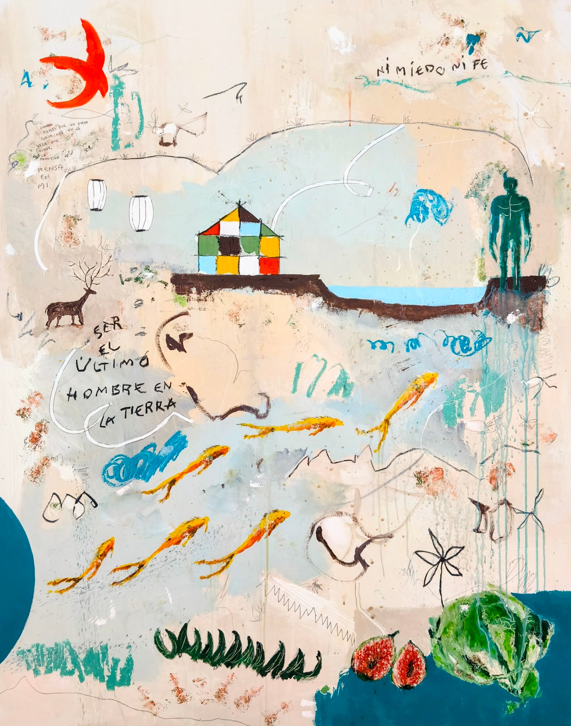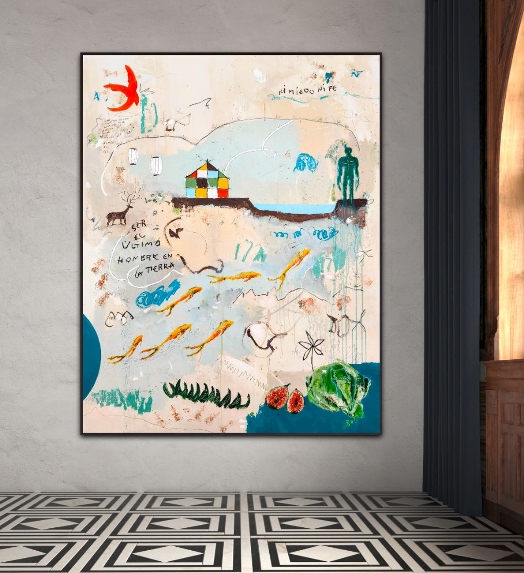 Técnica: acrílico, lápiz, carboncillo, gesso, ceras.