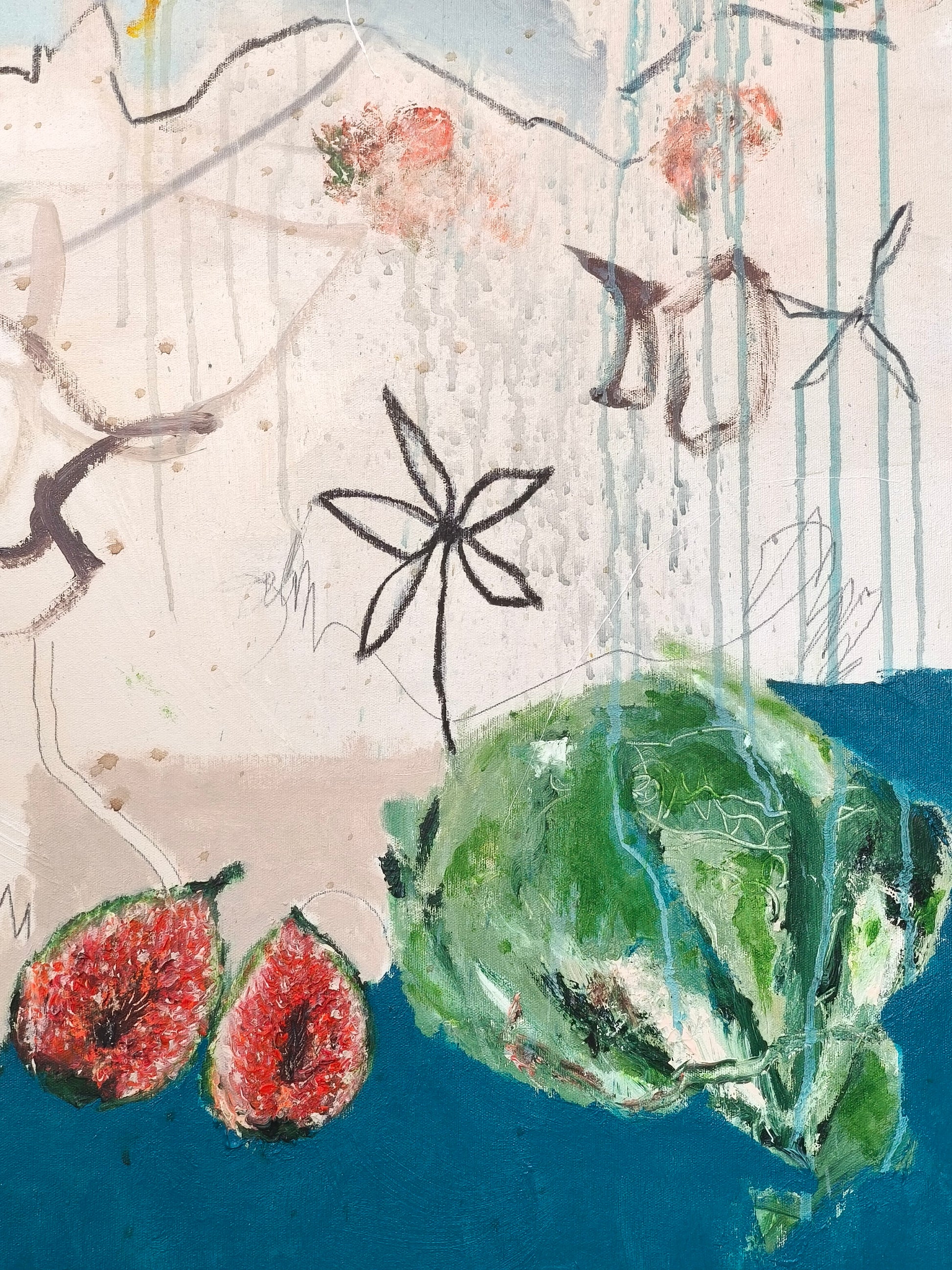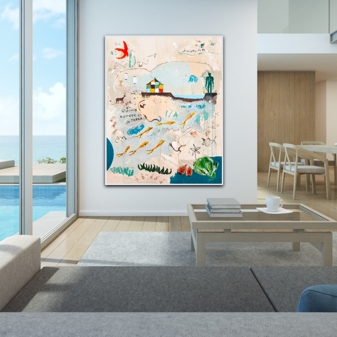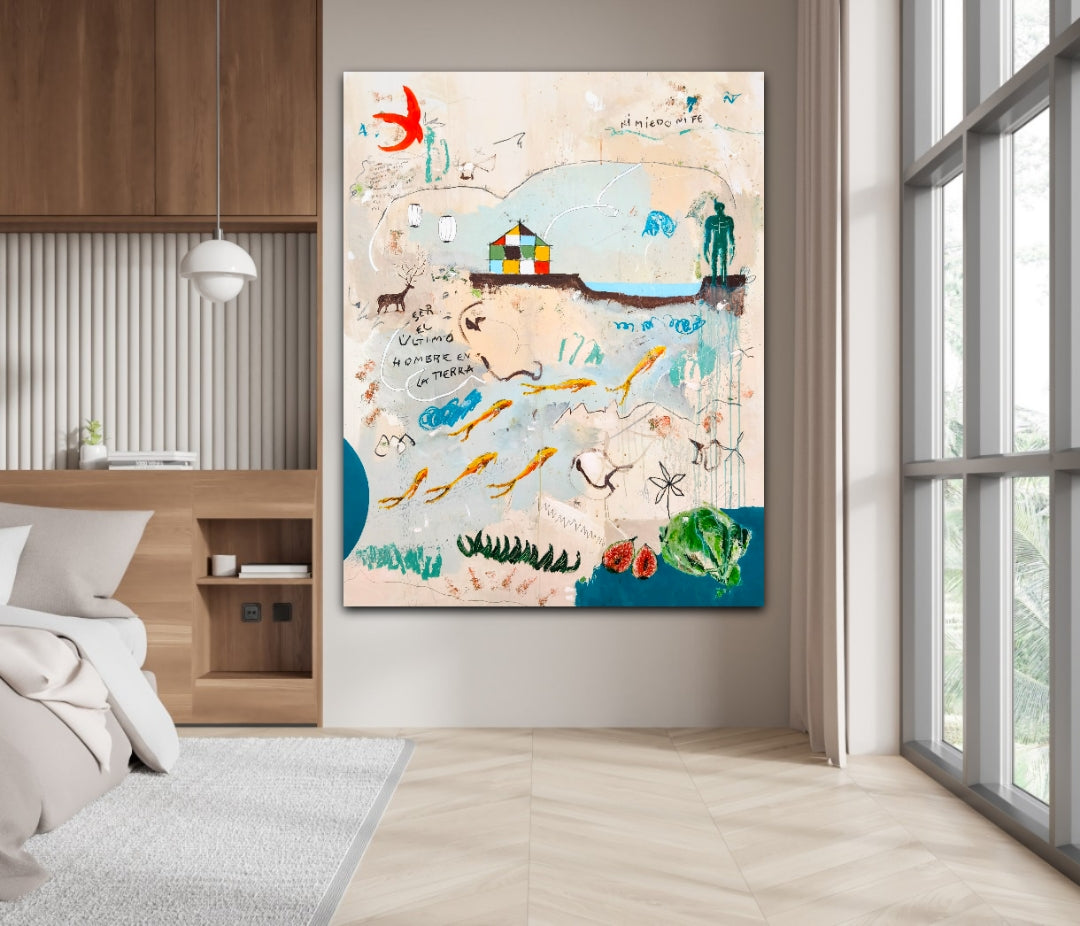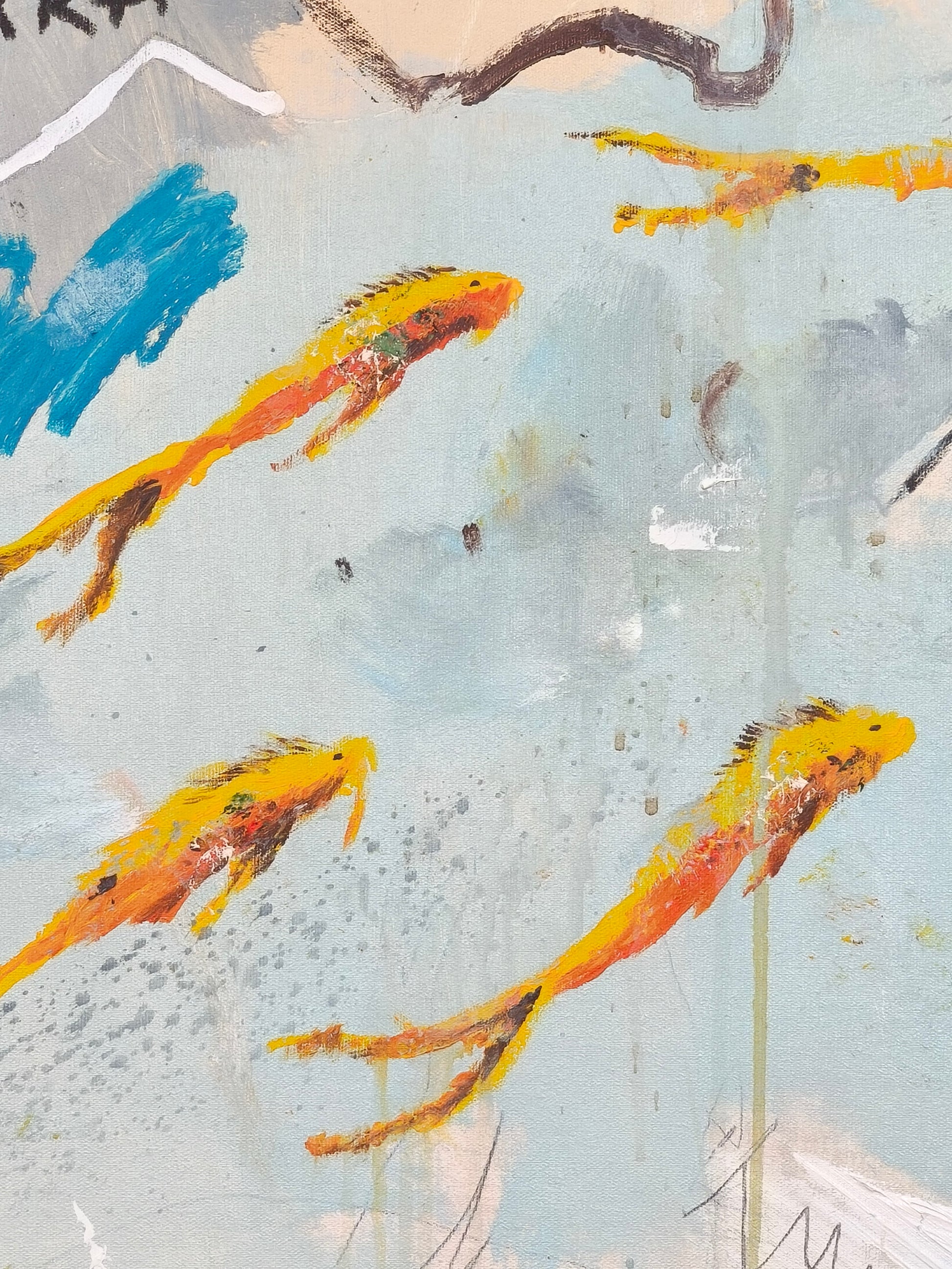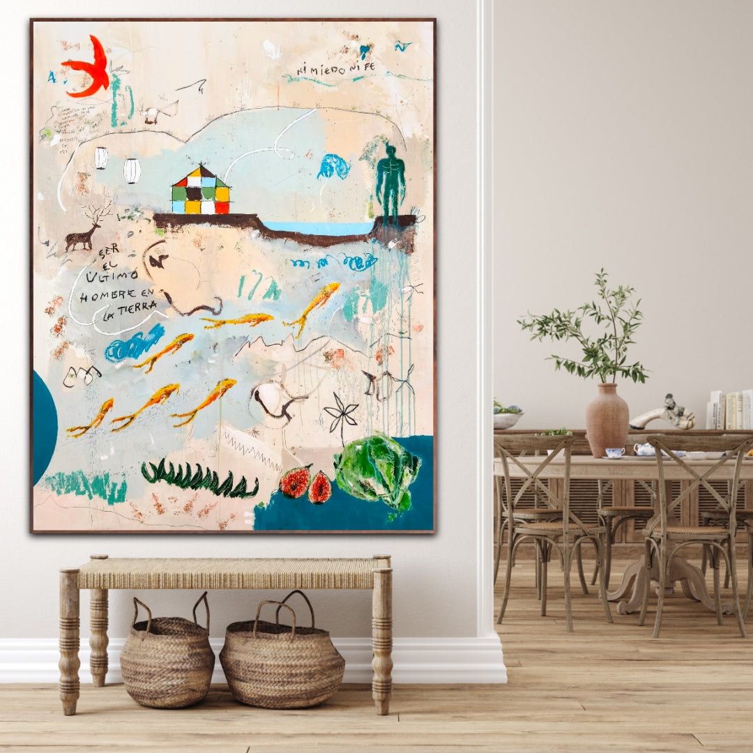 Técnica: acrílico, lápiz, carboncillo, gesso, ceras.