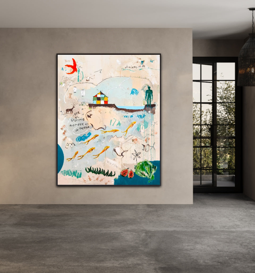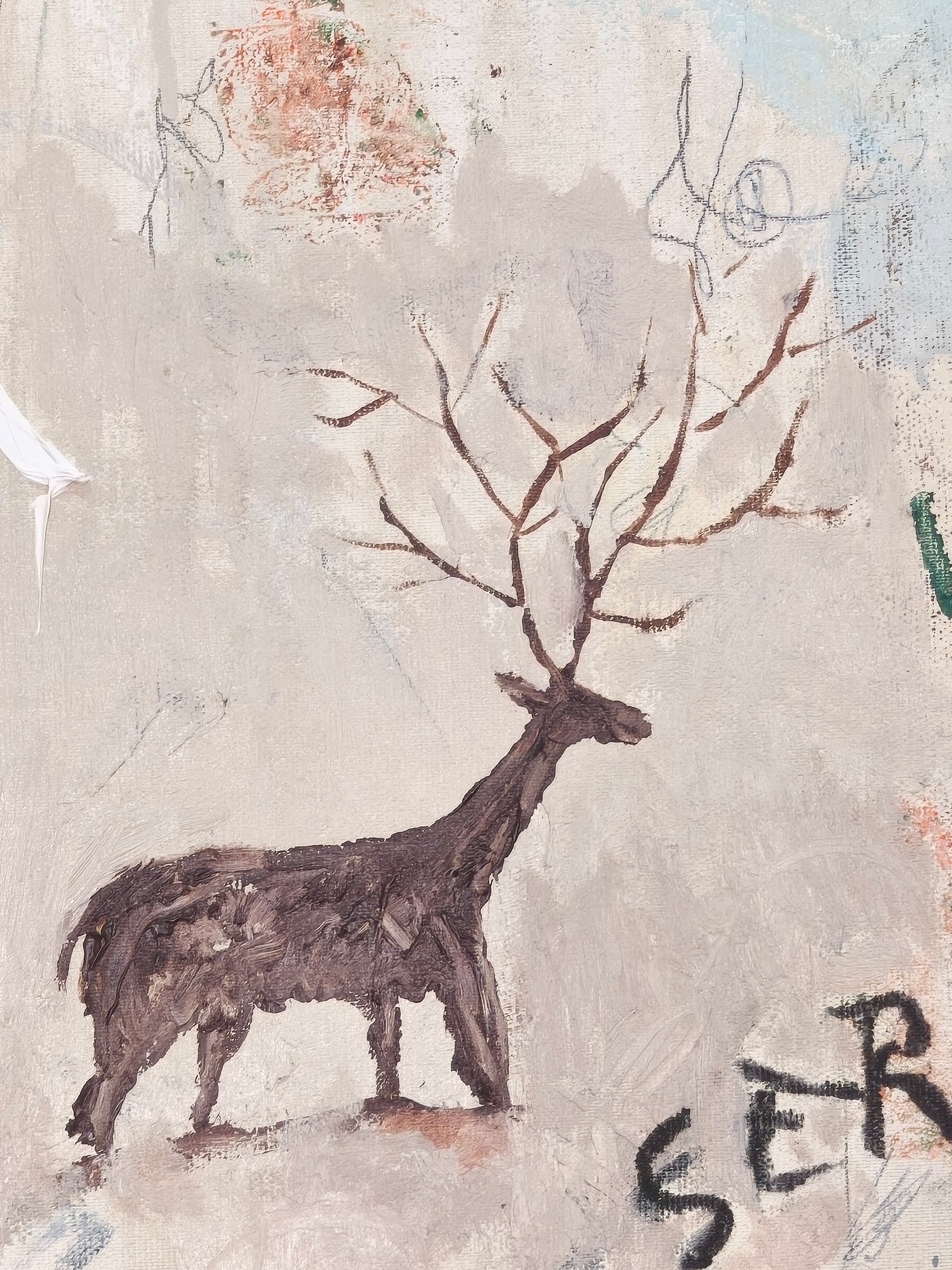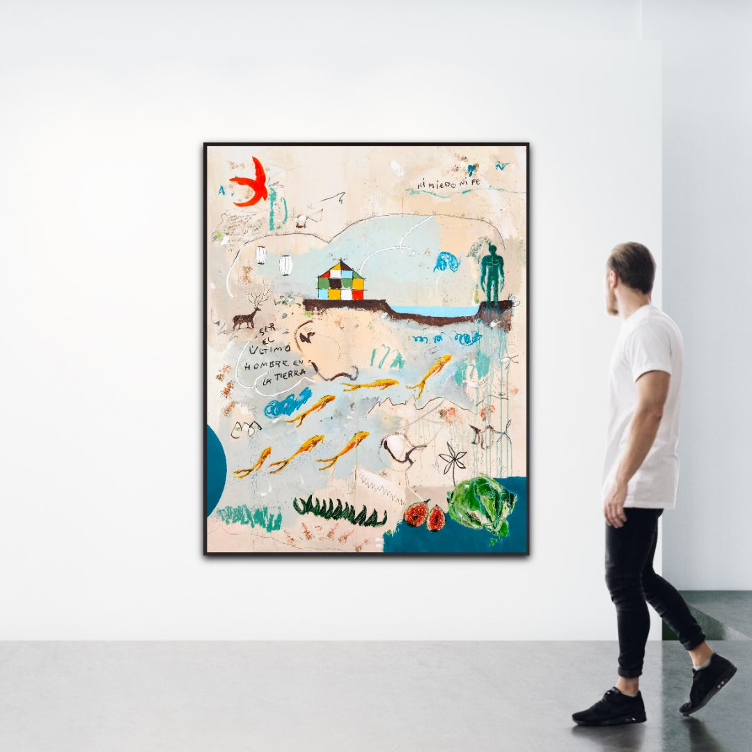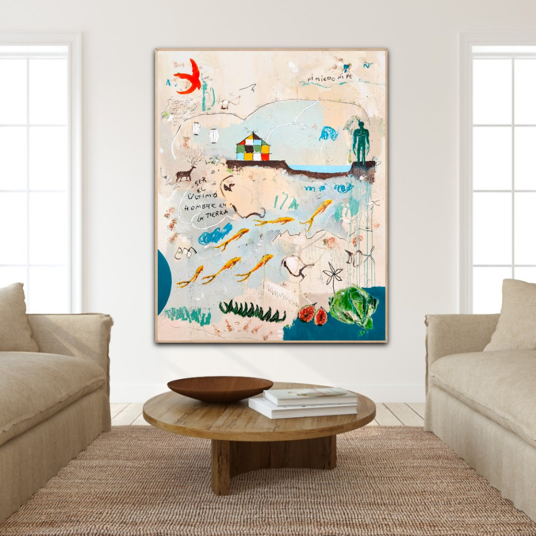 Técnica: acrílico, lápiz, carboncillo, gesso, ceras.