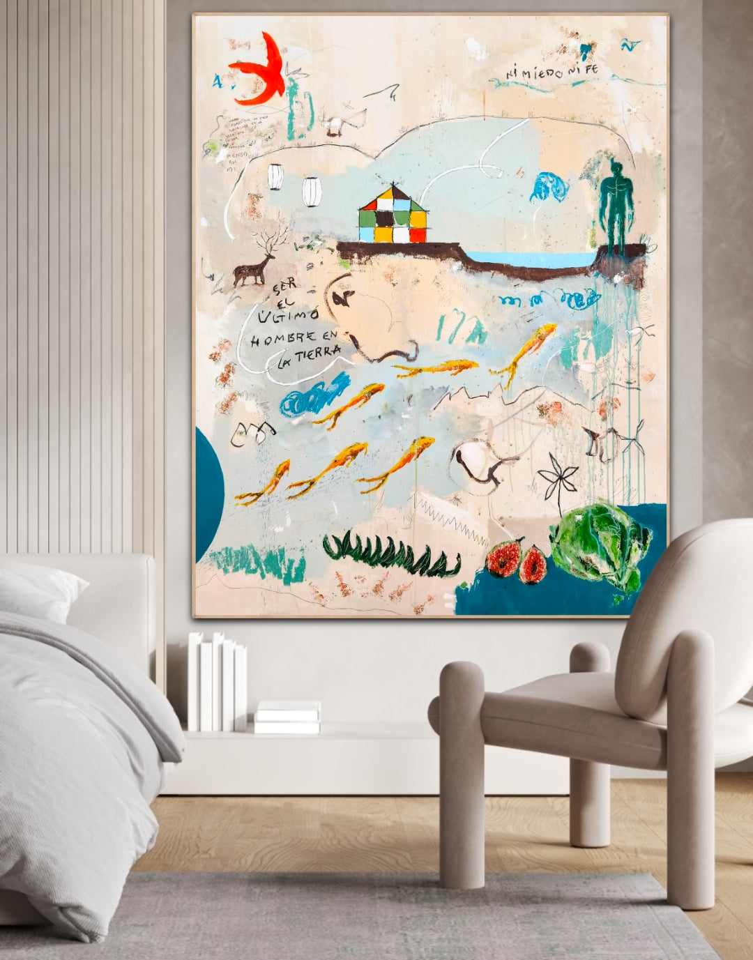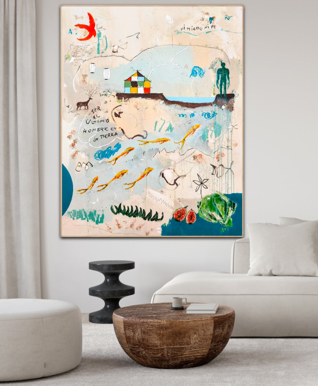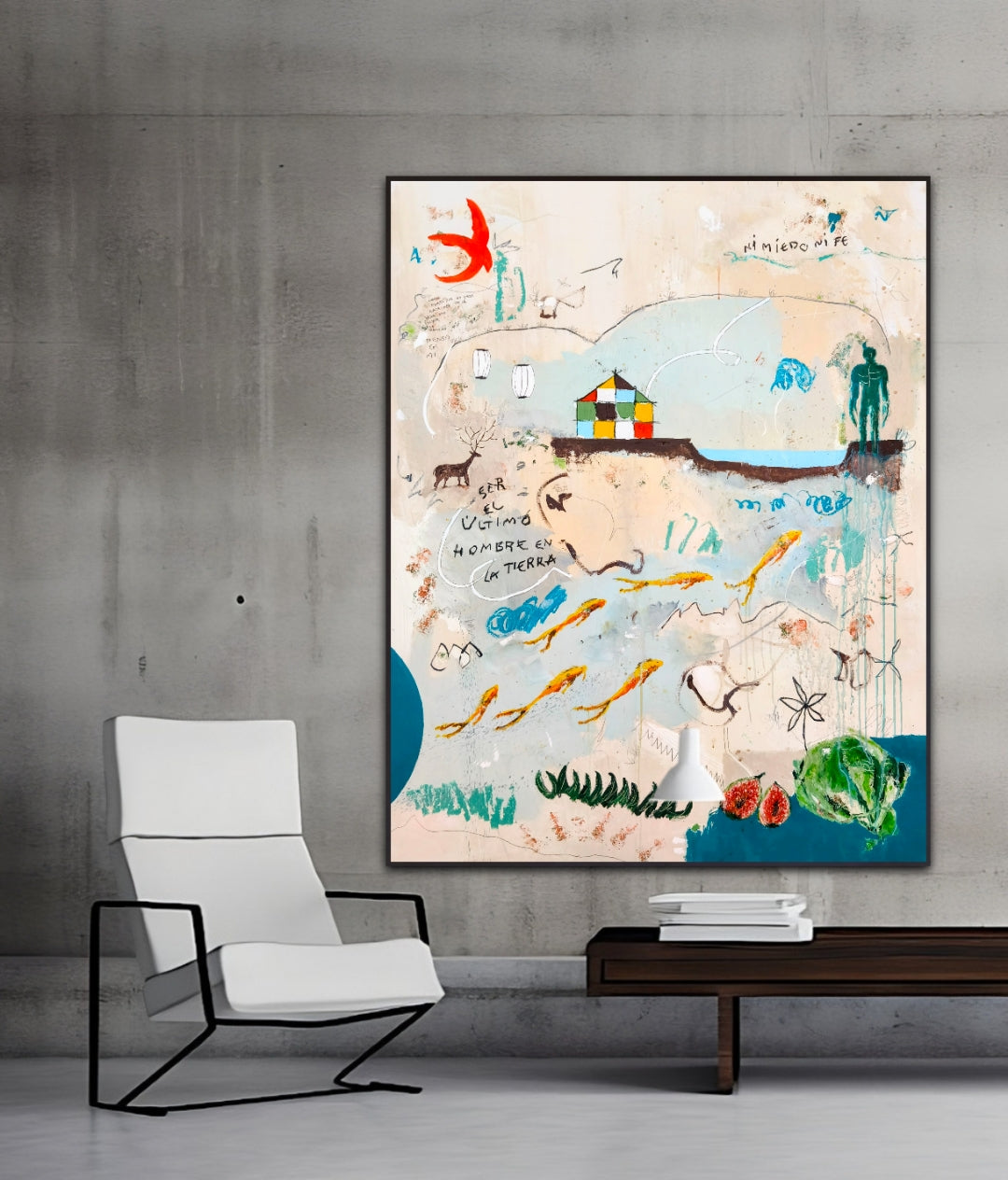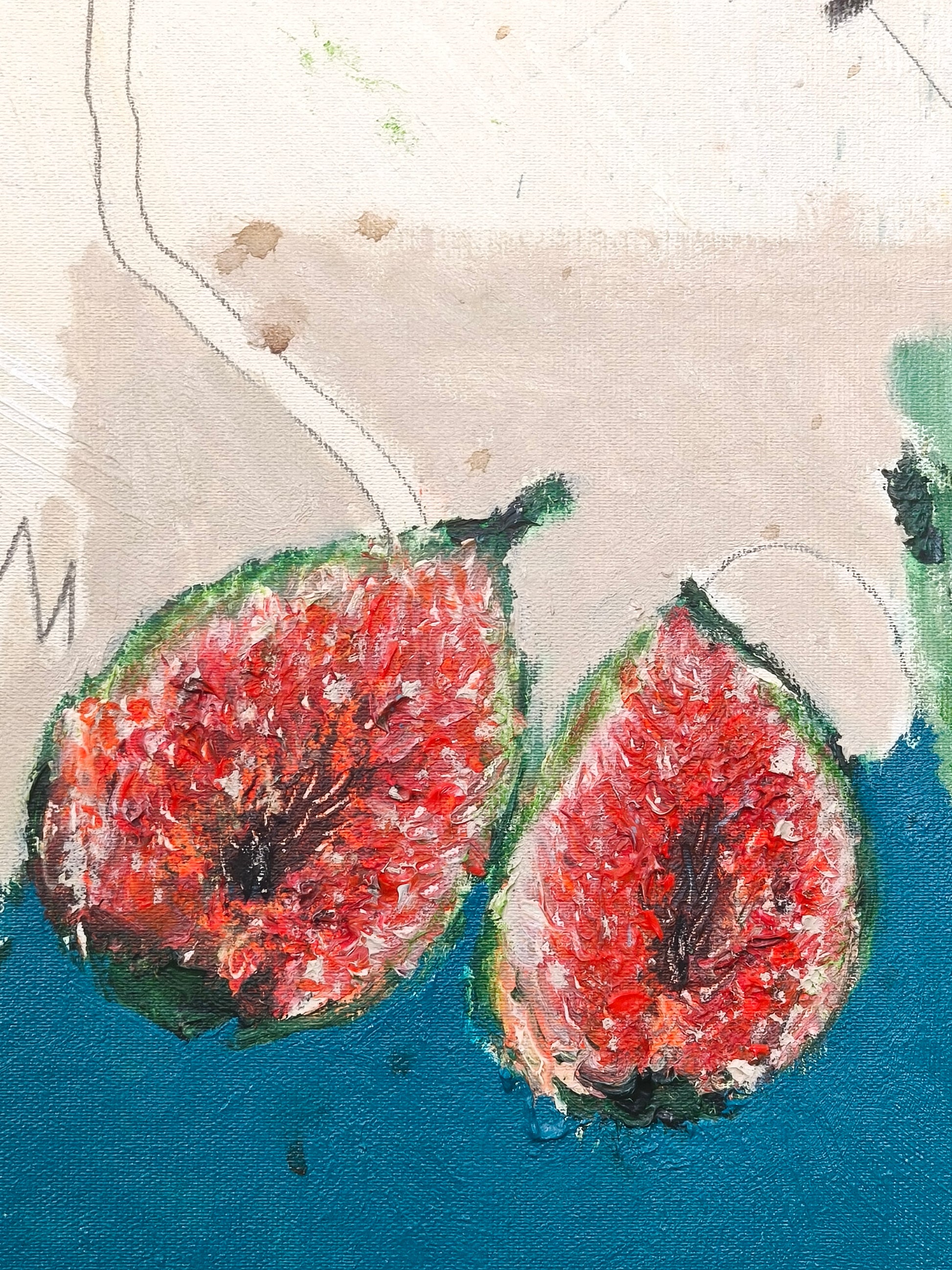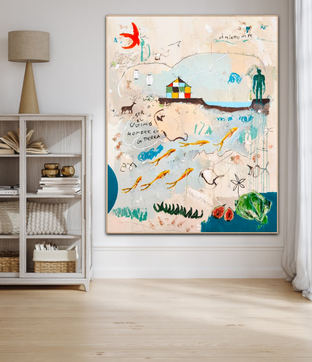 Técnica: acrílico, lápiz, carboncillo, gesso, ceras.