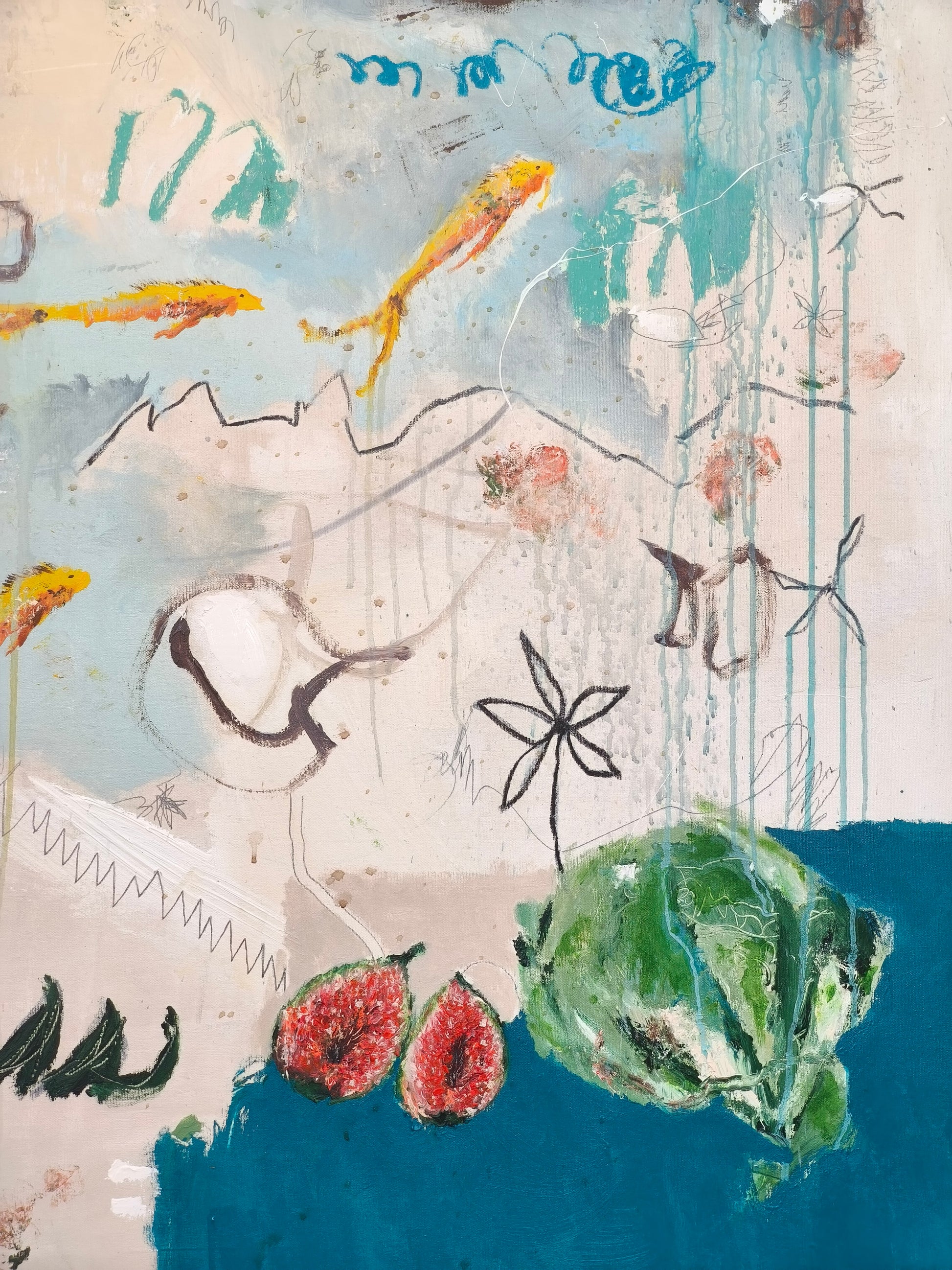 Cuadro trabajado desde la improvisación libre con música de Nick Drake.