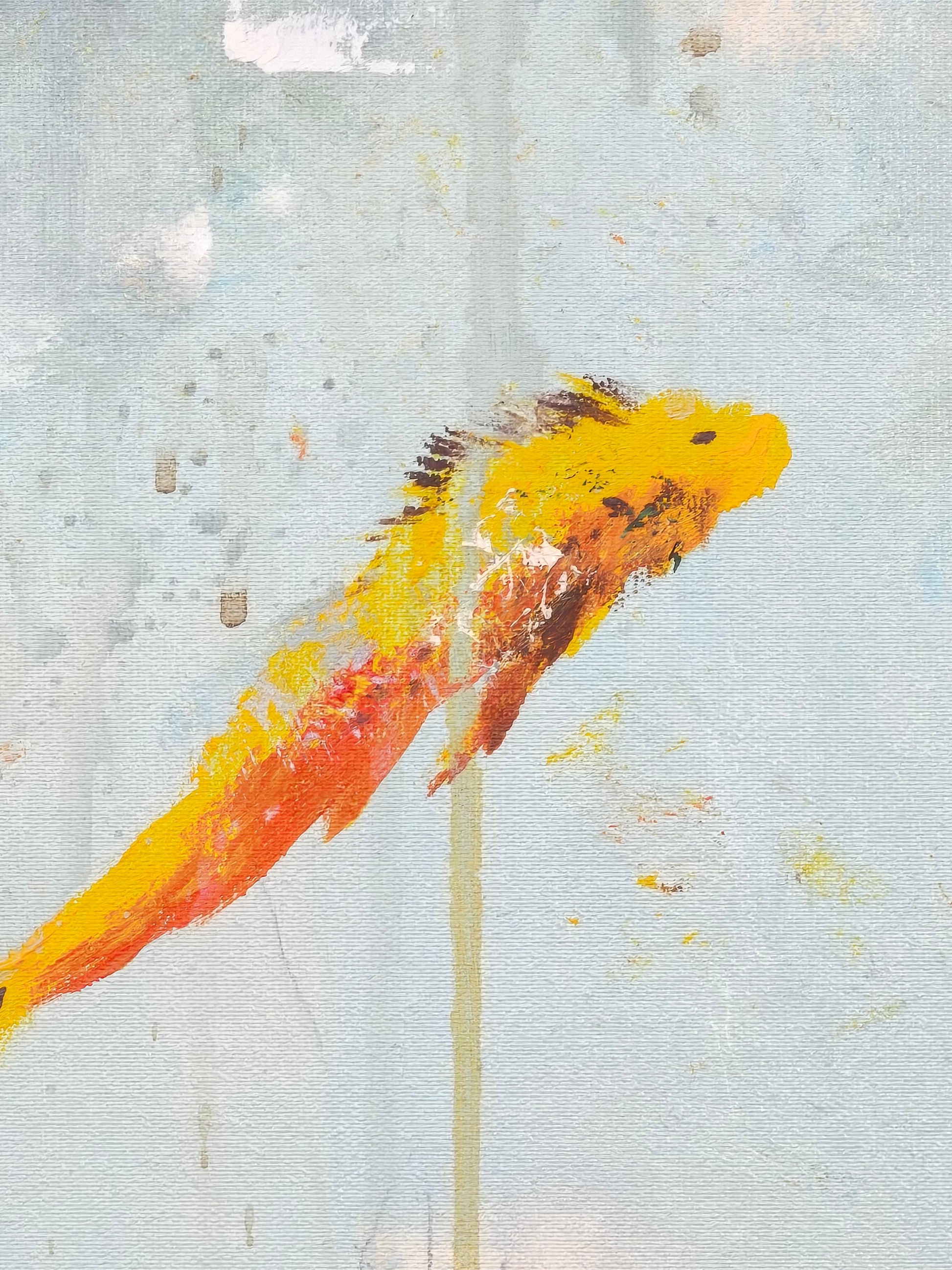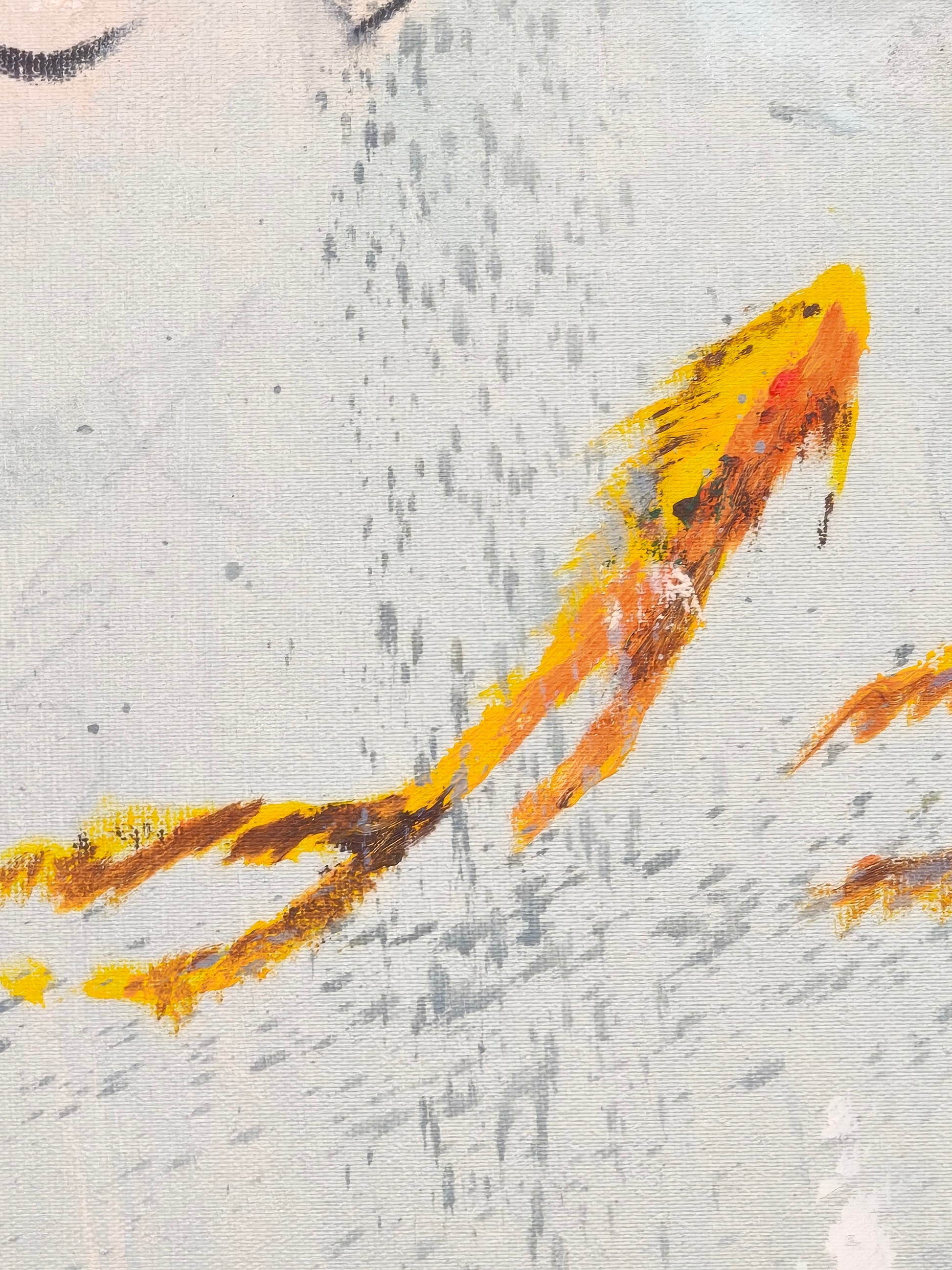 Pintura gestual, intuitiva, que deja que las cosas pasen y se apoya sobre lo que aparece. Aprovechando el accidente y aceptando las consecuencias.