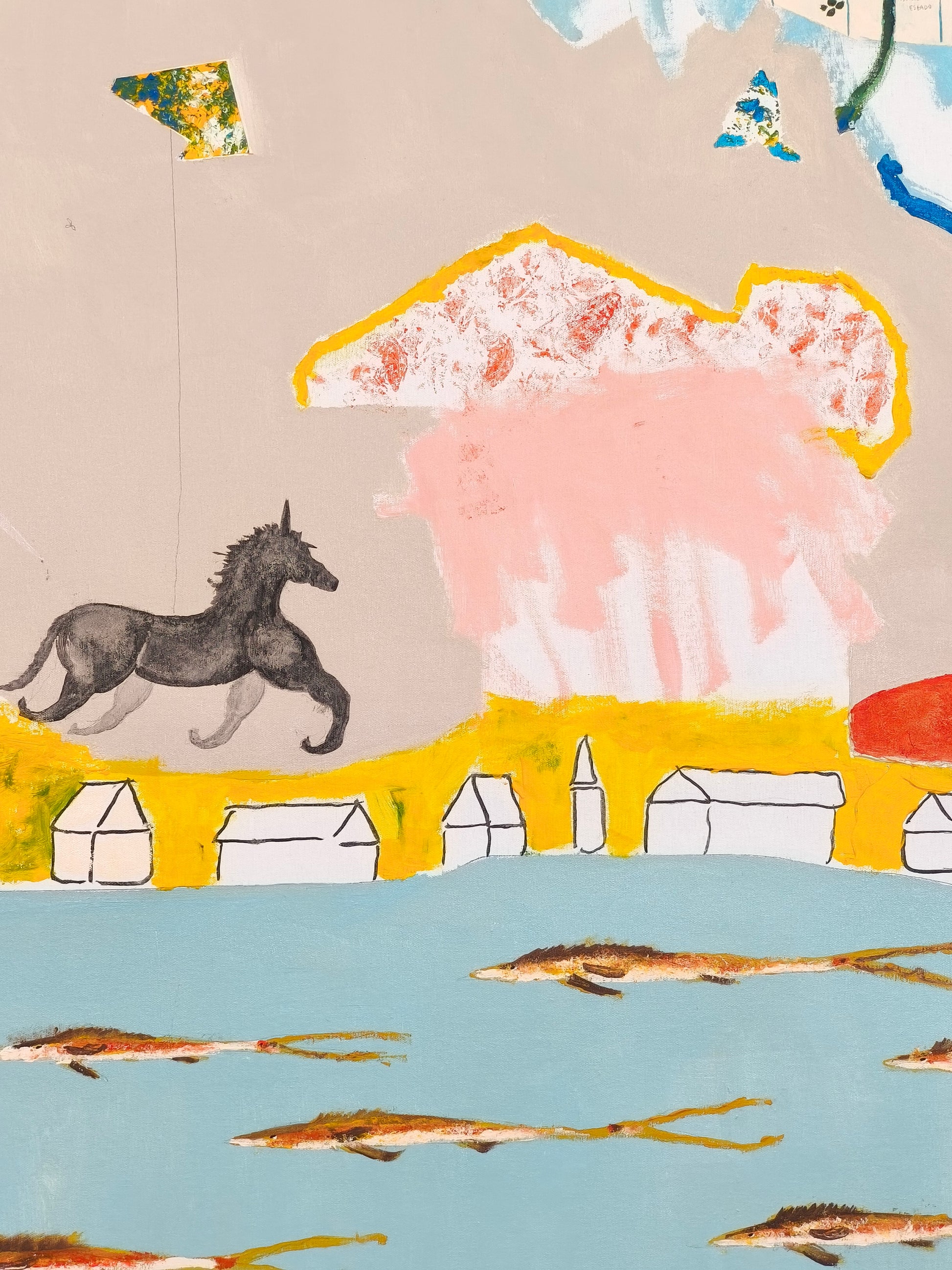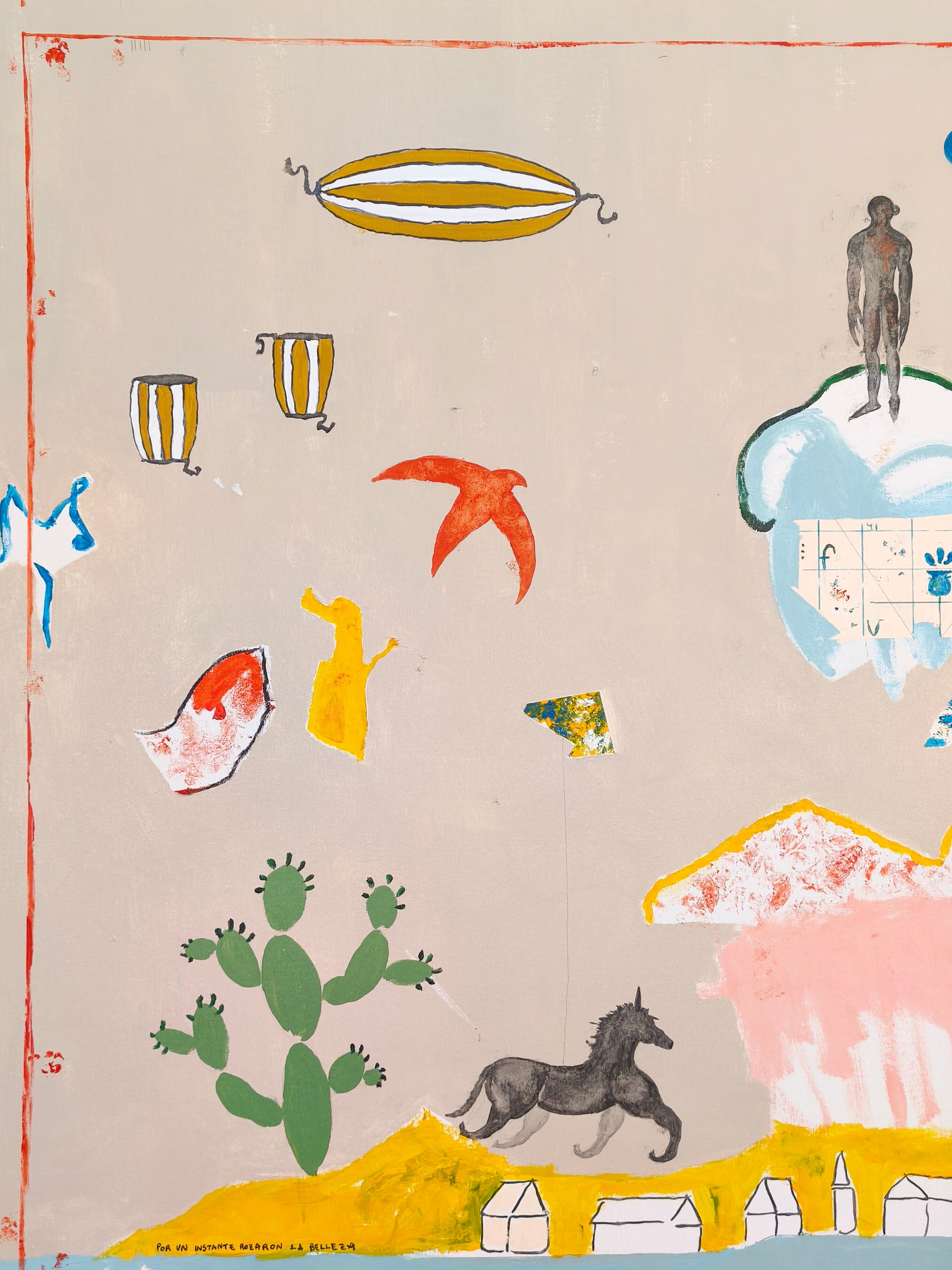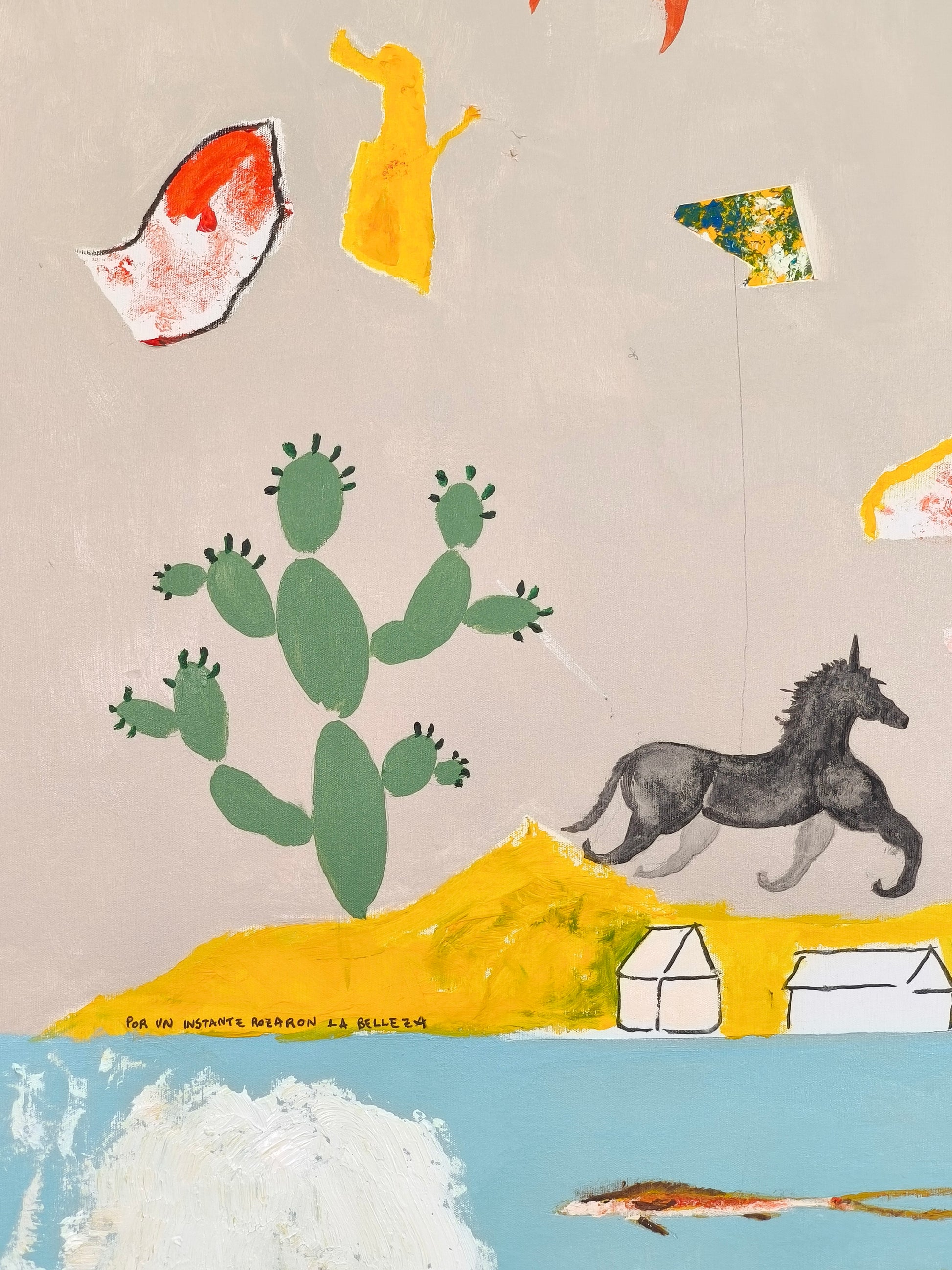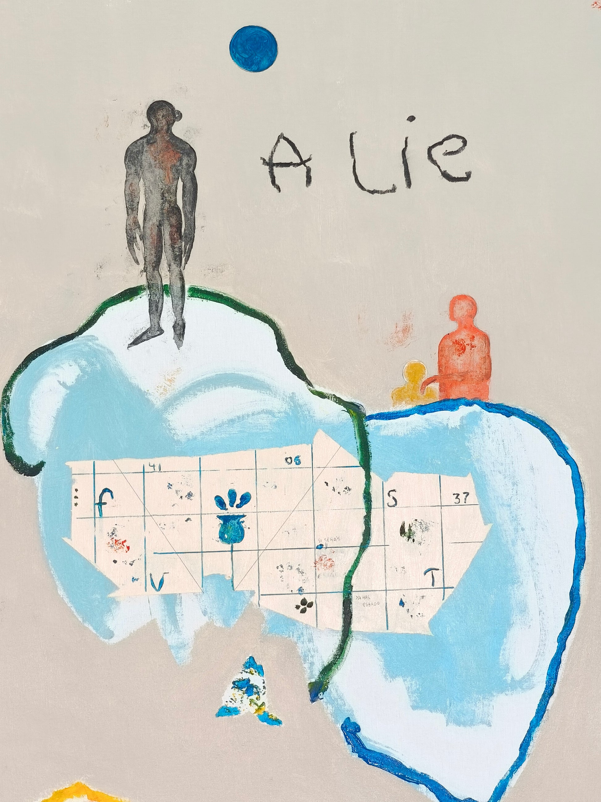 Técnica: acrílico, lápiz, carboncillo, gesso, ceras.