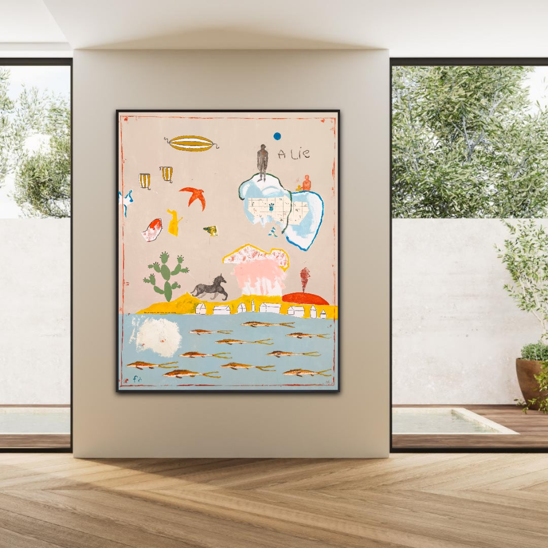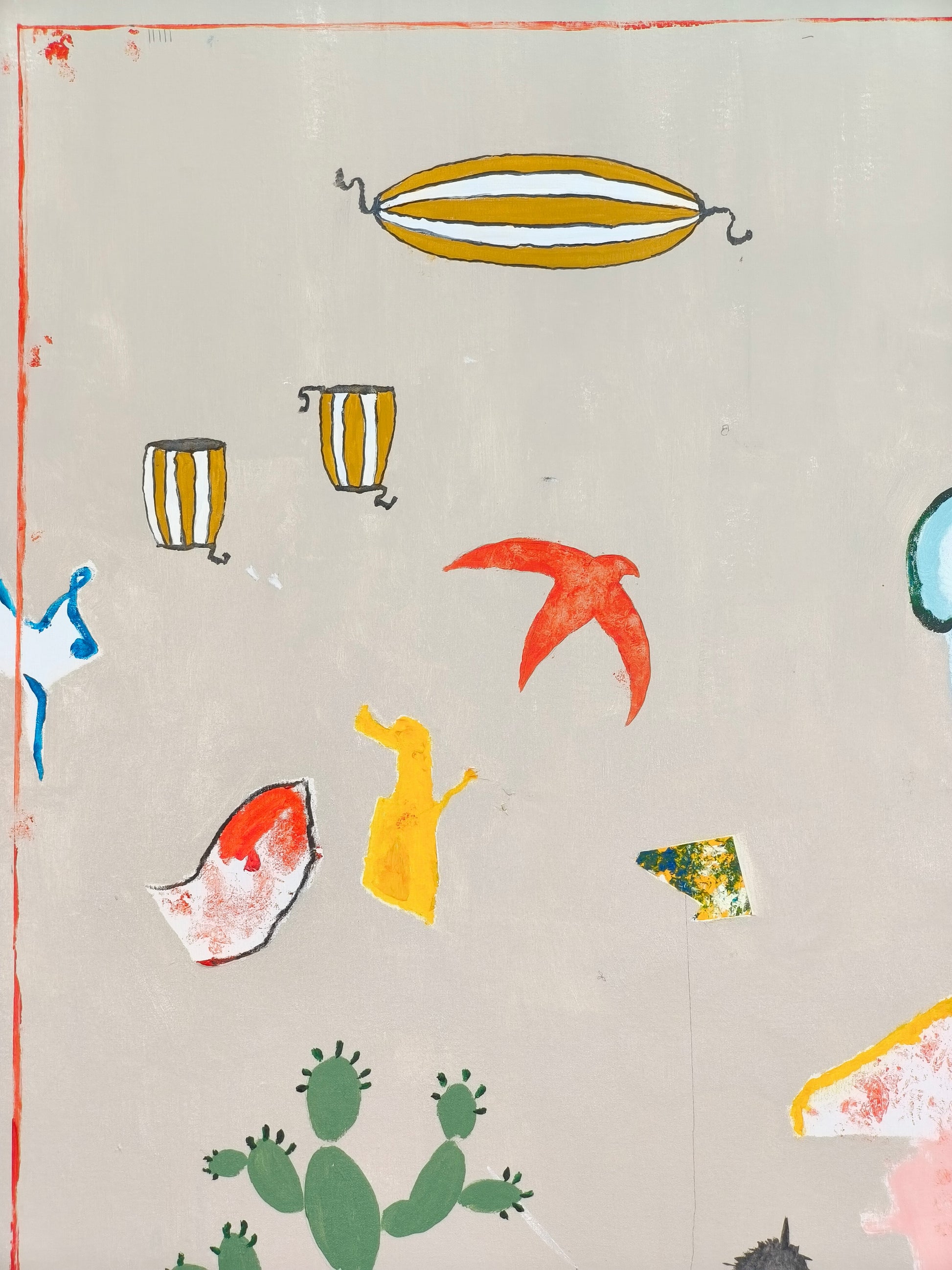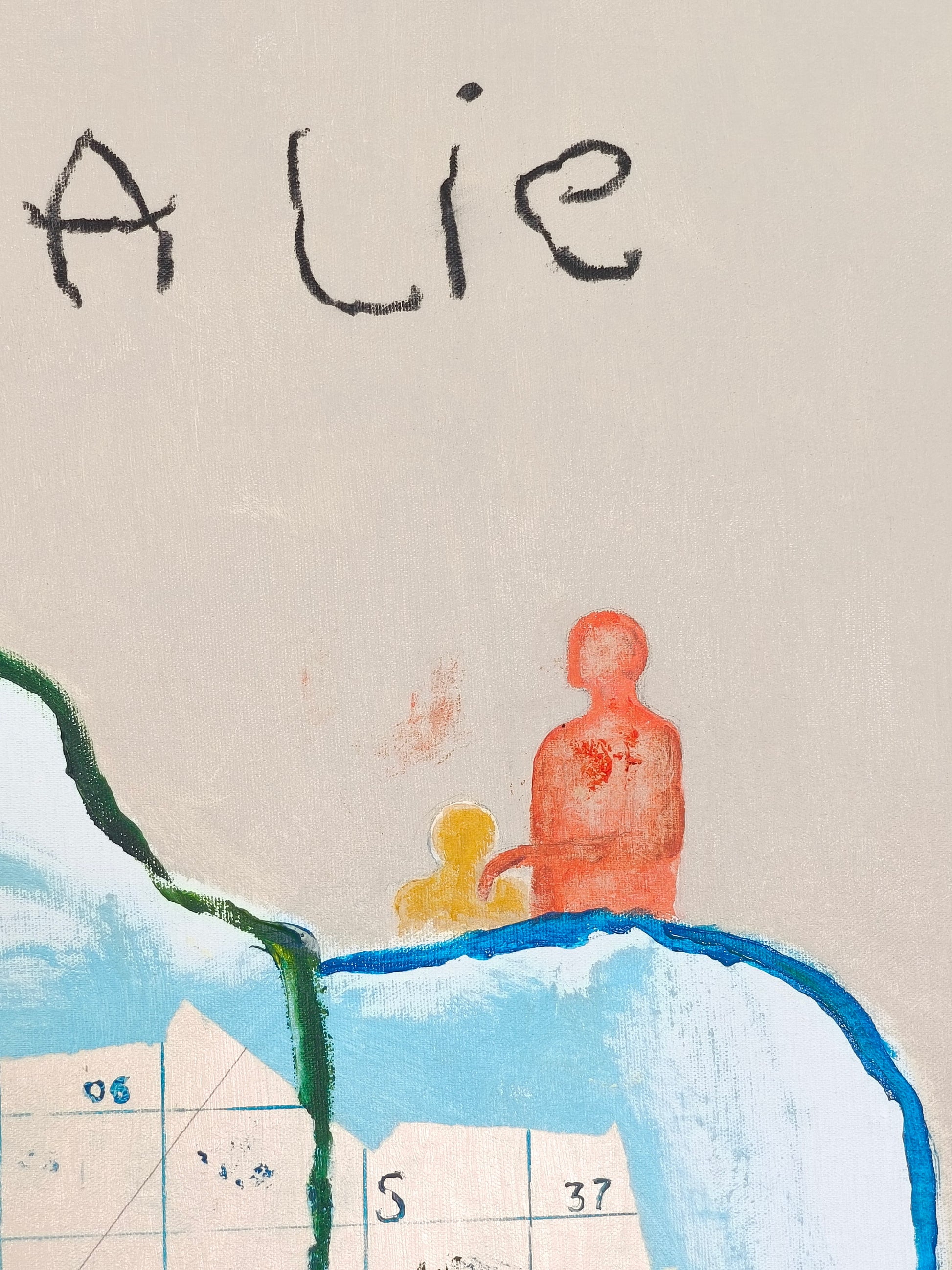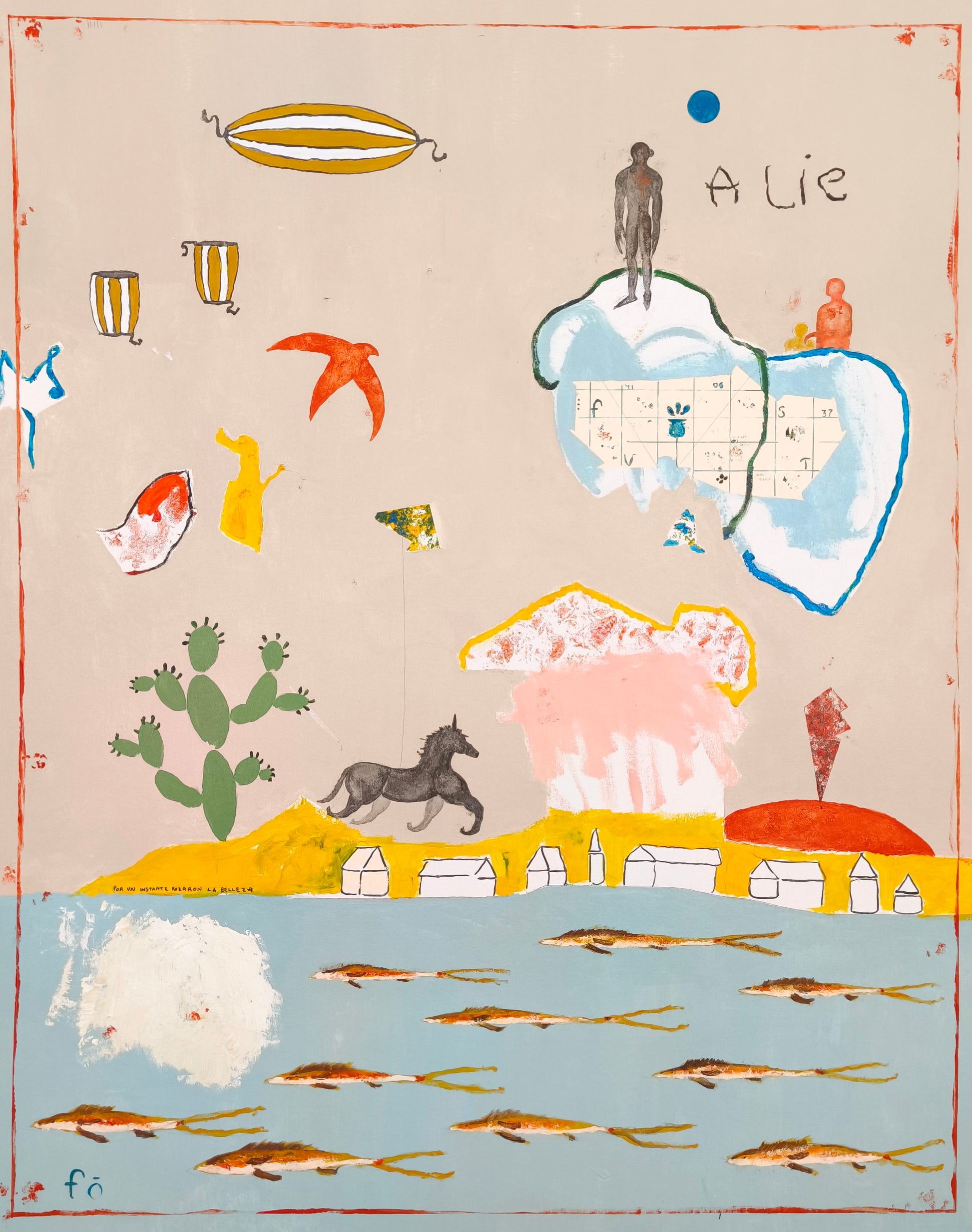Técnica: acrílico, lápiz, carboncillo, gesso, ceras.