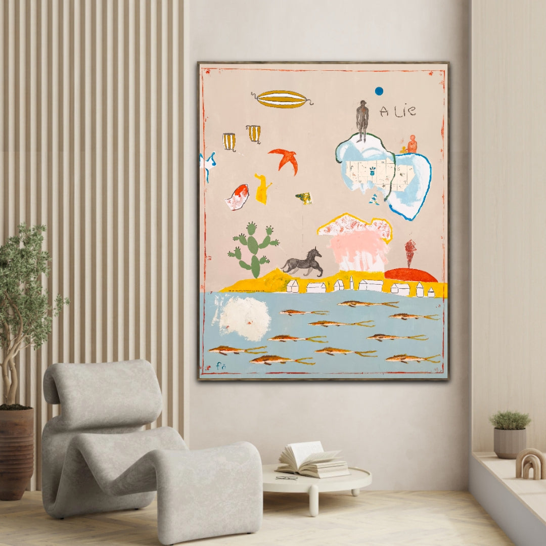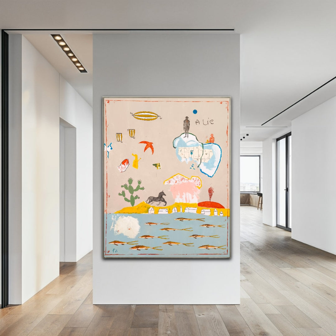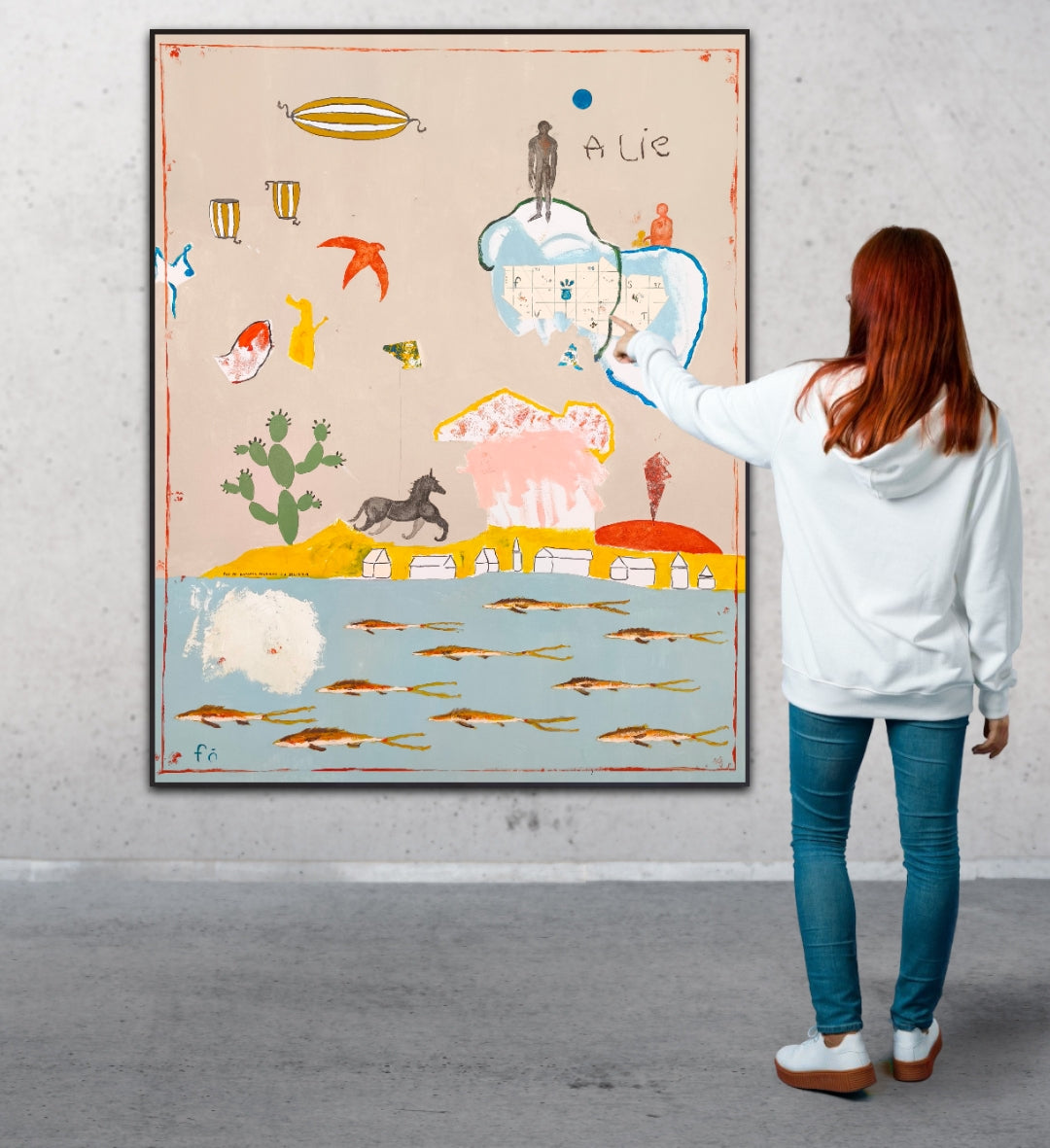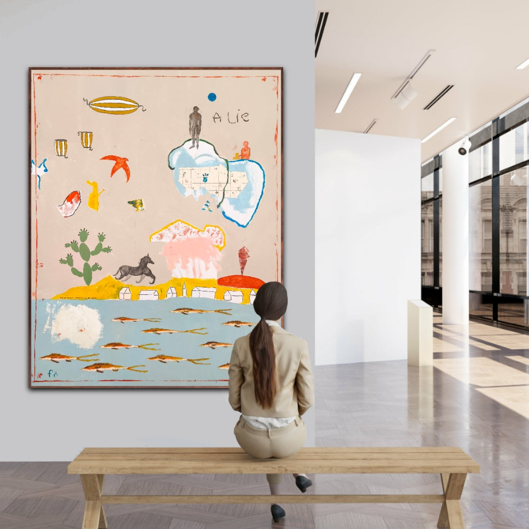 Técnica: acrílico, lápiz, carboncillo, gesso, ceras.