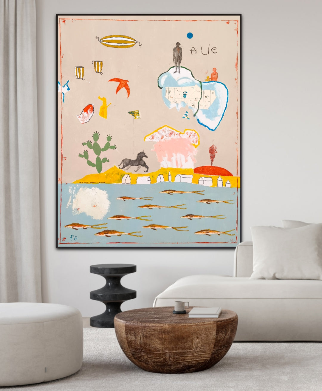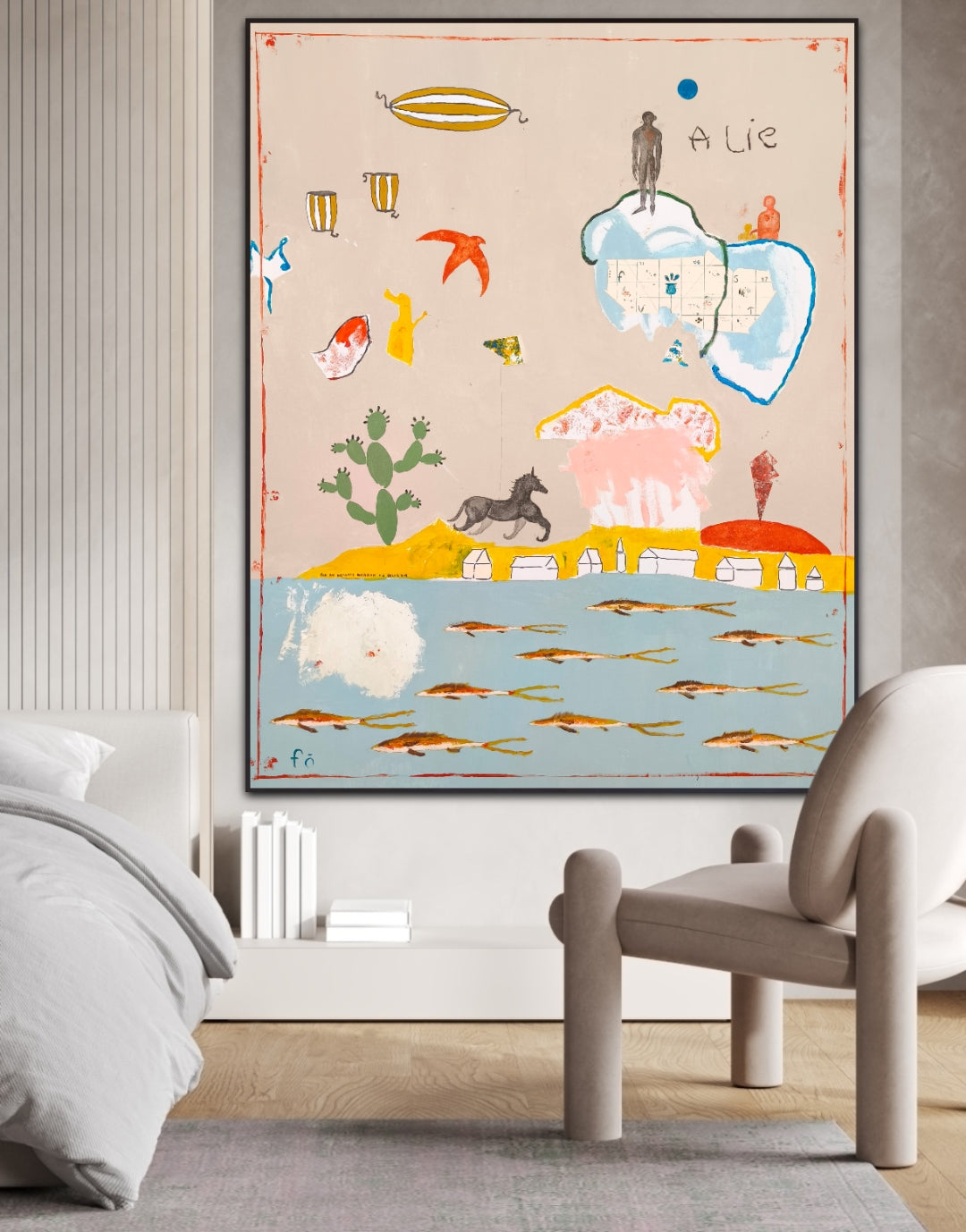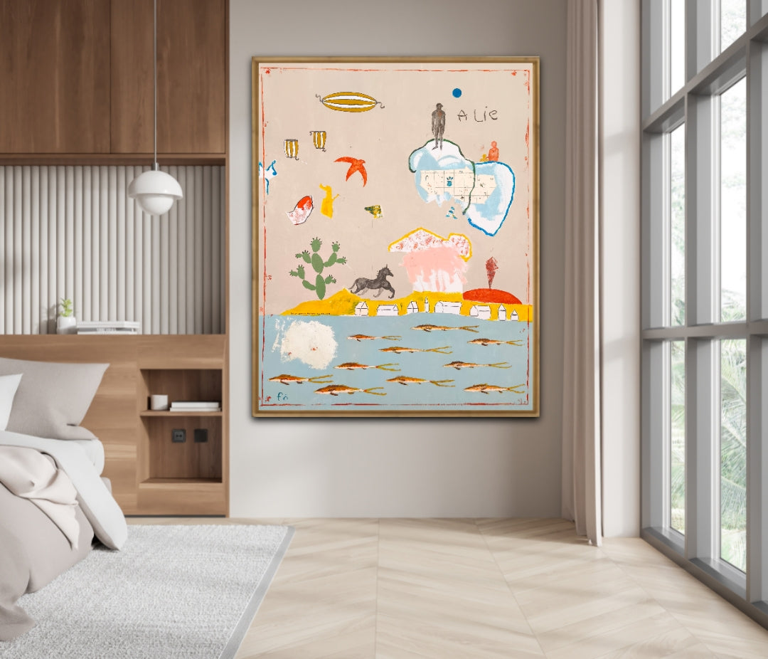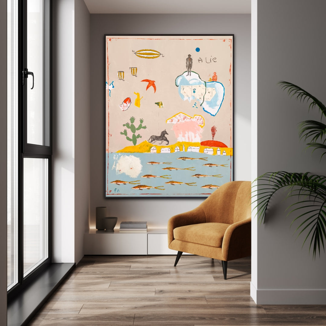 Técnica: acrílico, lápiz, carboncillo, gesso, ceras.