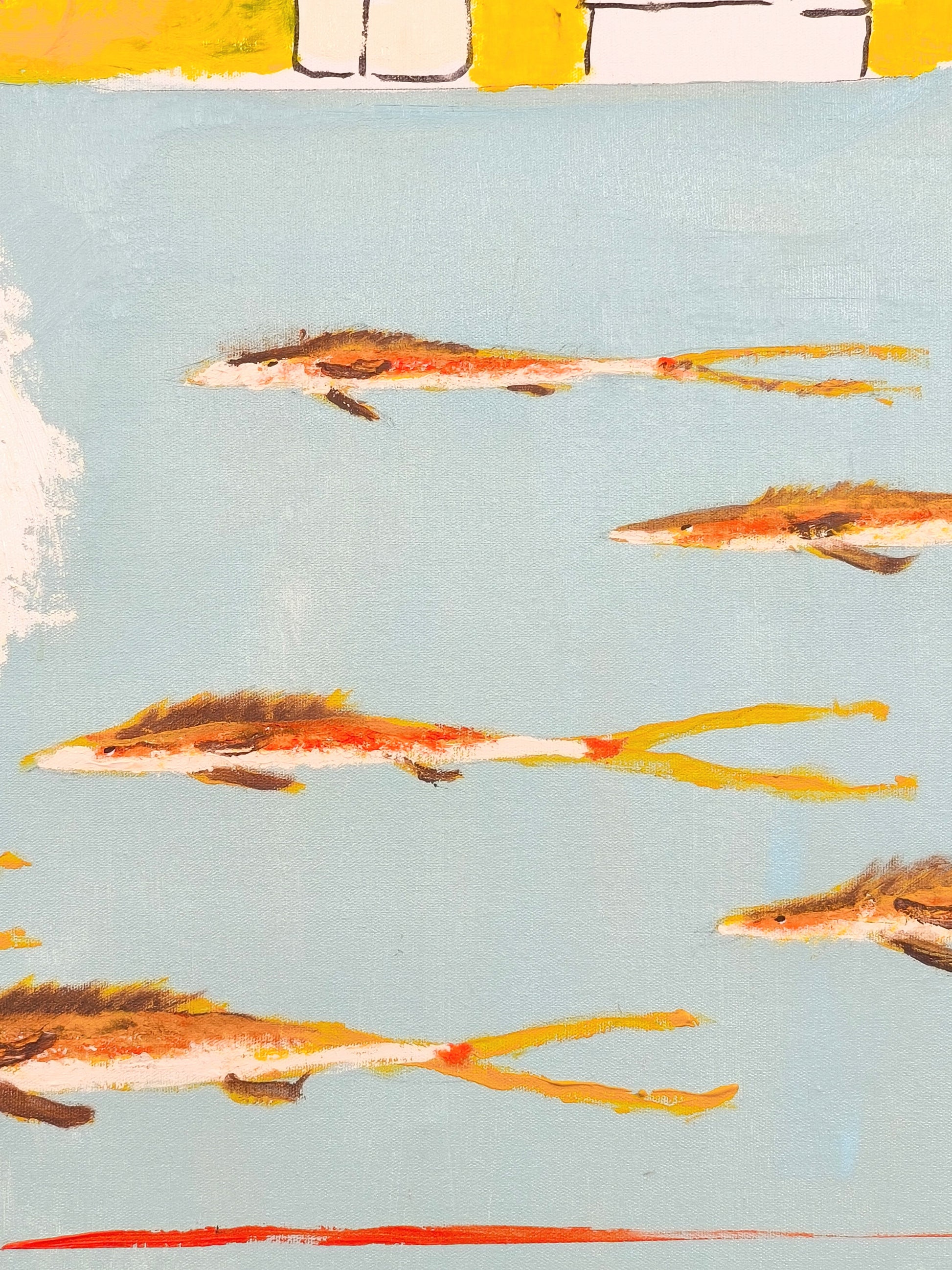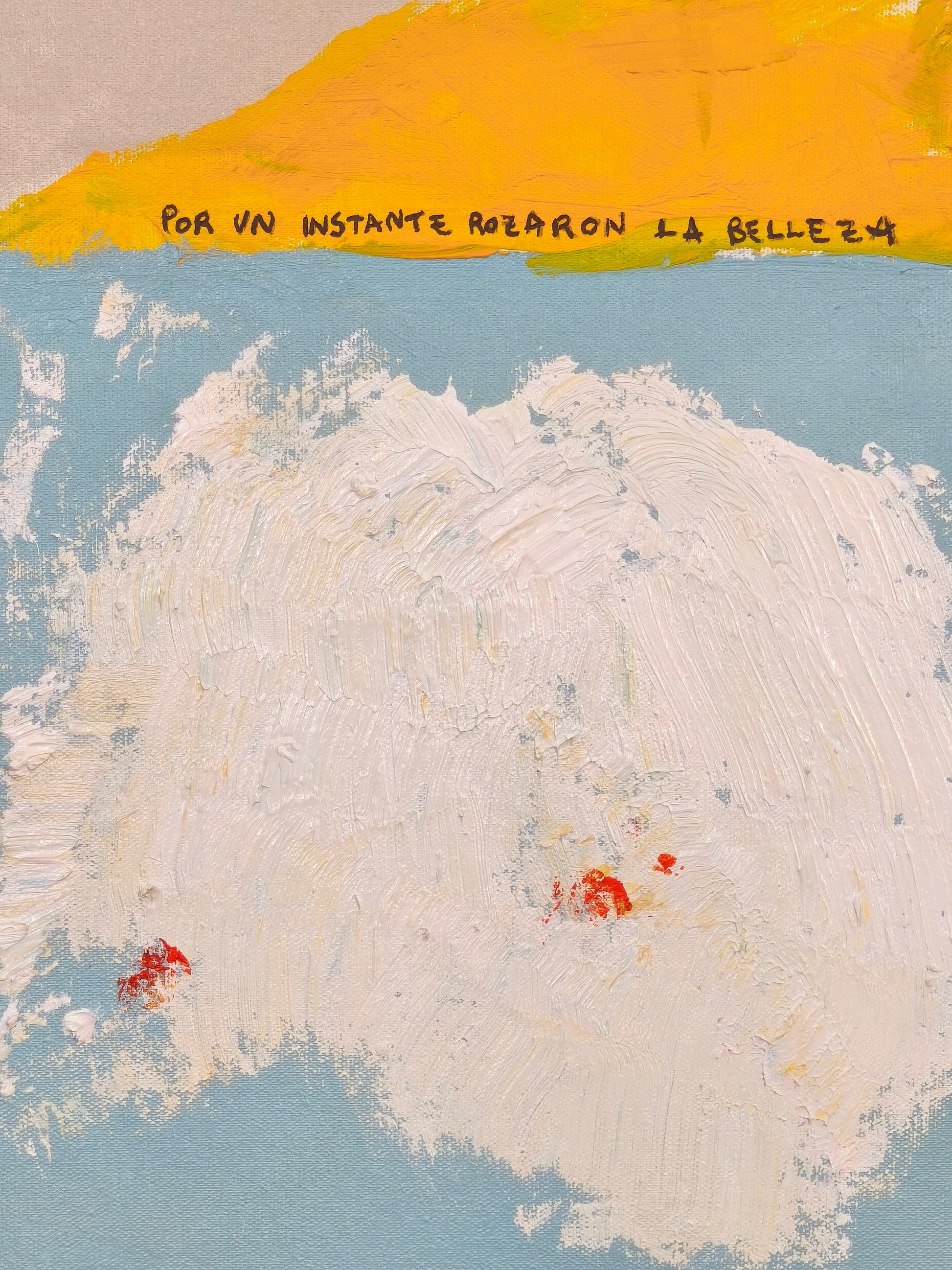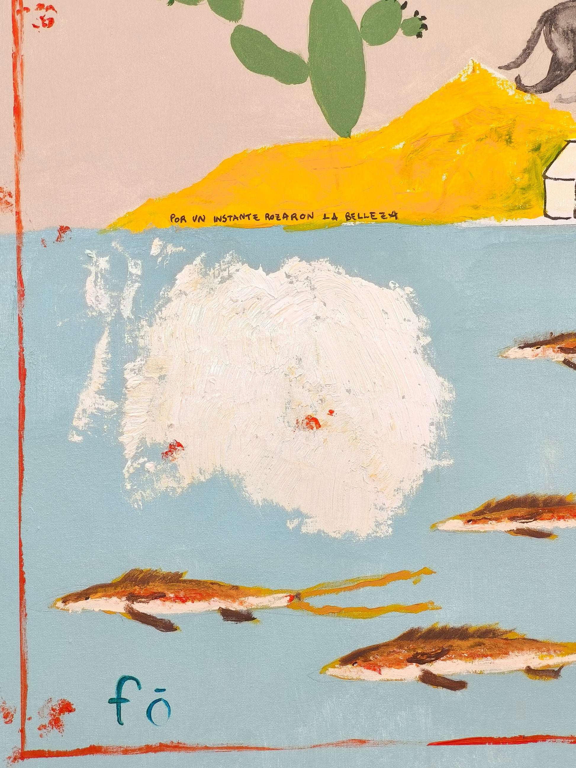 Pintura gestual, intuitiva, que deja que las cosas pasen y se apoya sobre lo que aparece. Aprovechando el accidente y aceptando las consecuencias.