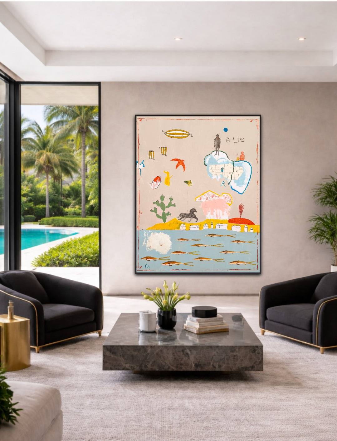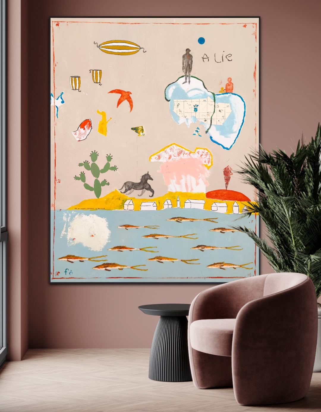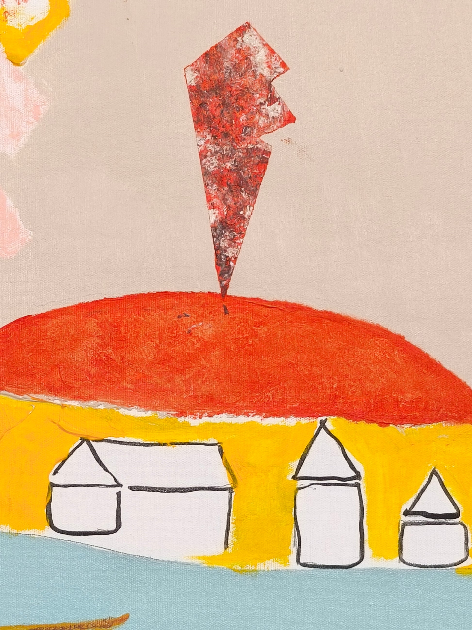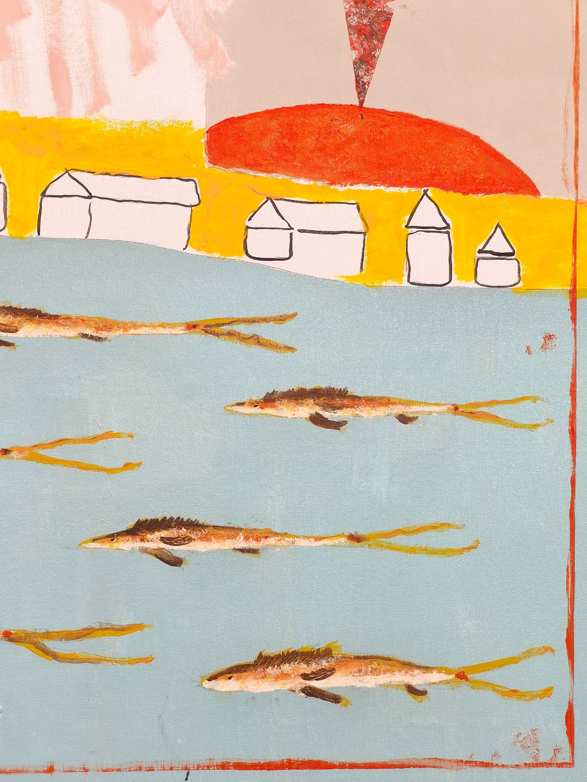 Pintura gestual, intuitiva, que deja que las cosas pasen y se apoya sobre lo que aparece. Aprovechando el accidente y aceptando las consecuencias.