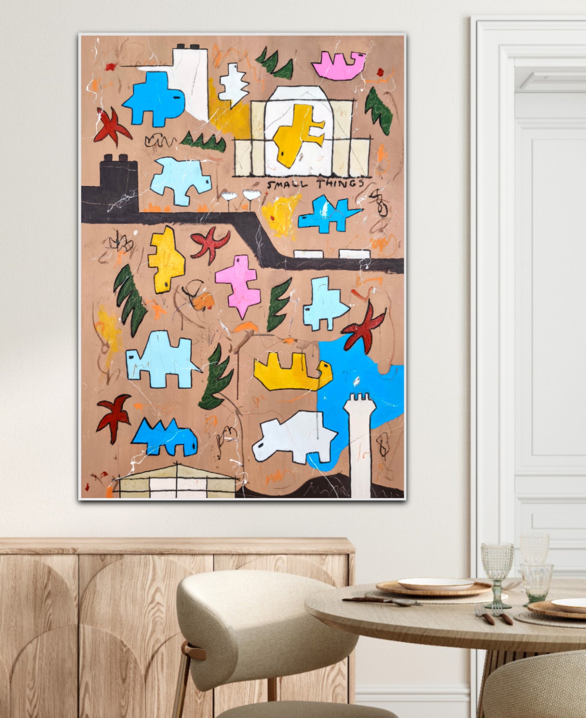 Pintura gestual, intuitiva, que deja que las cosas pasen. Aprovechando el accidente y aceptando las consecuencias.
