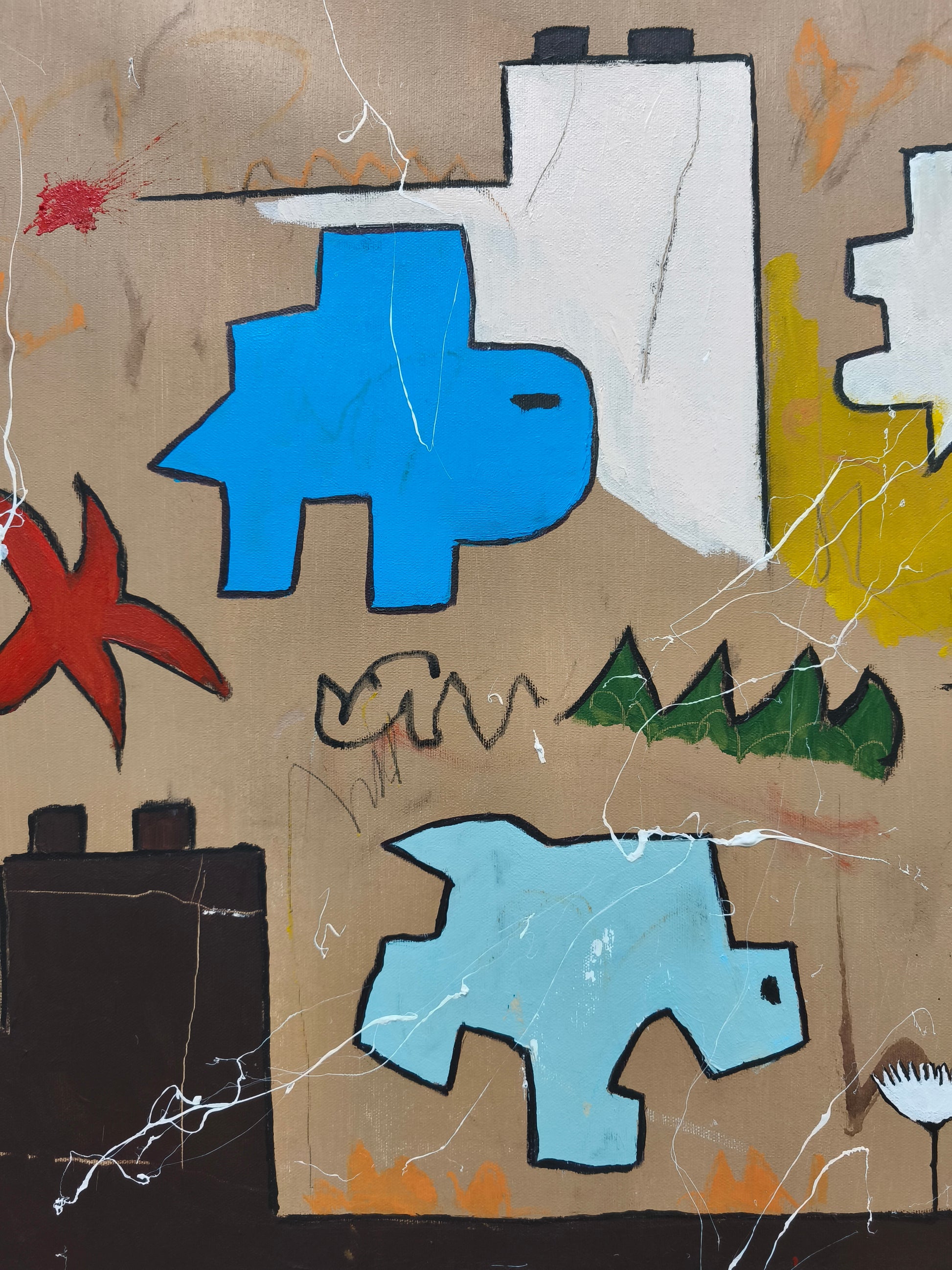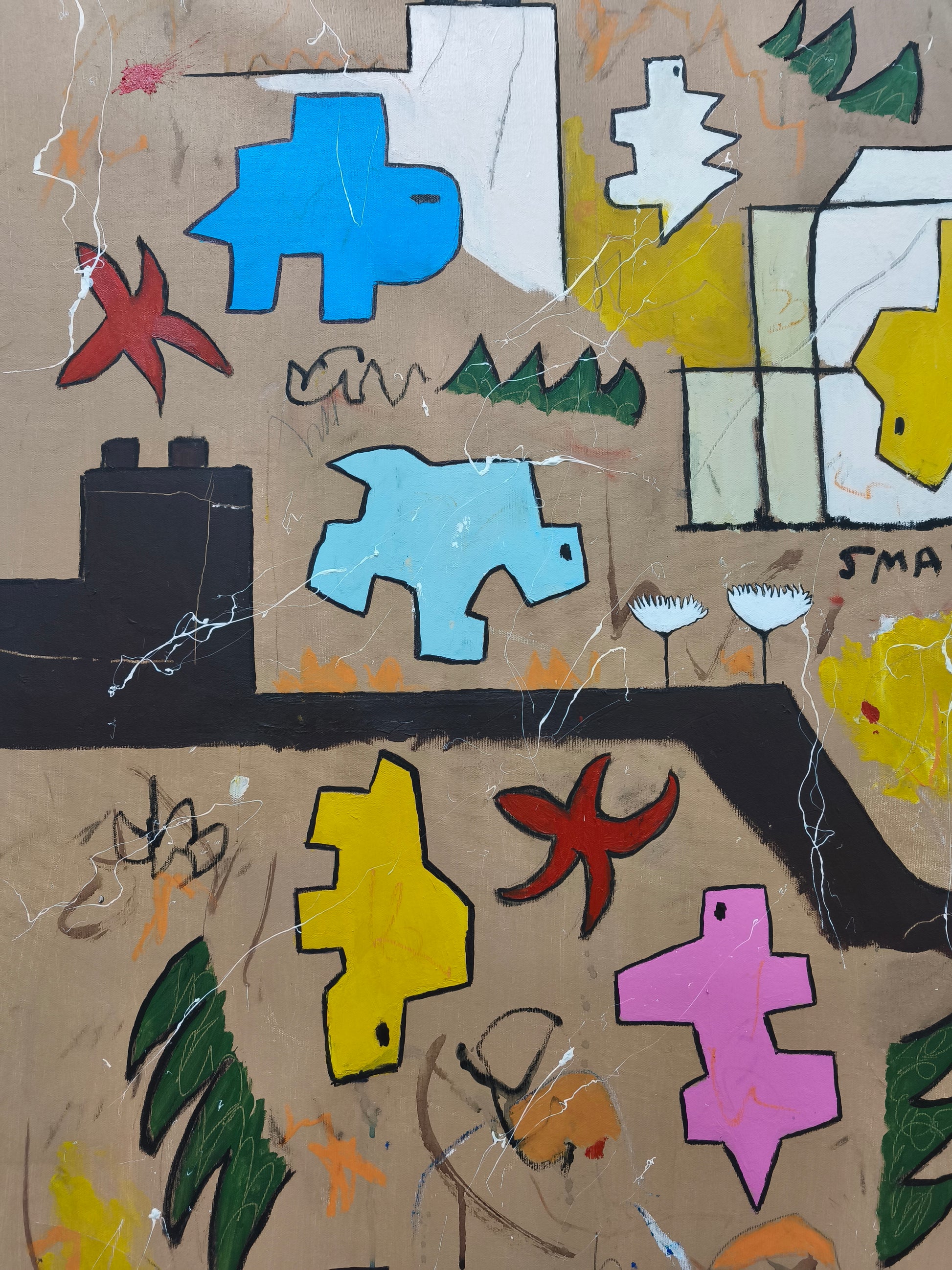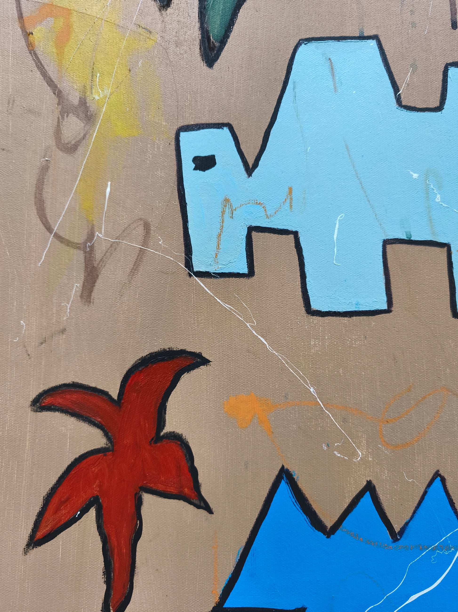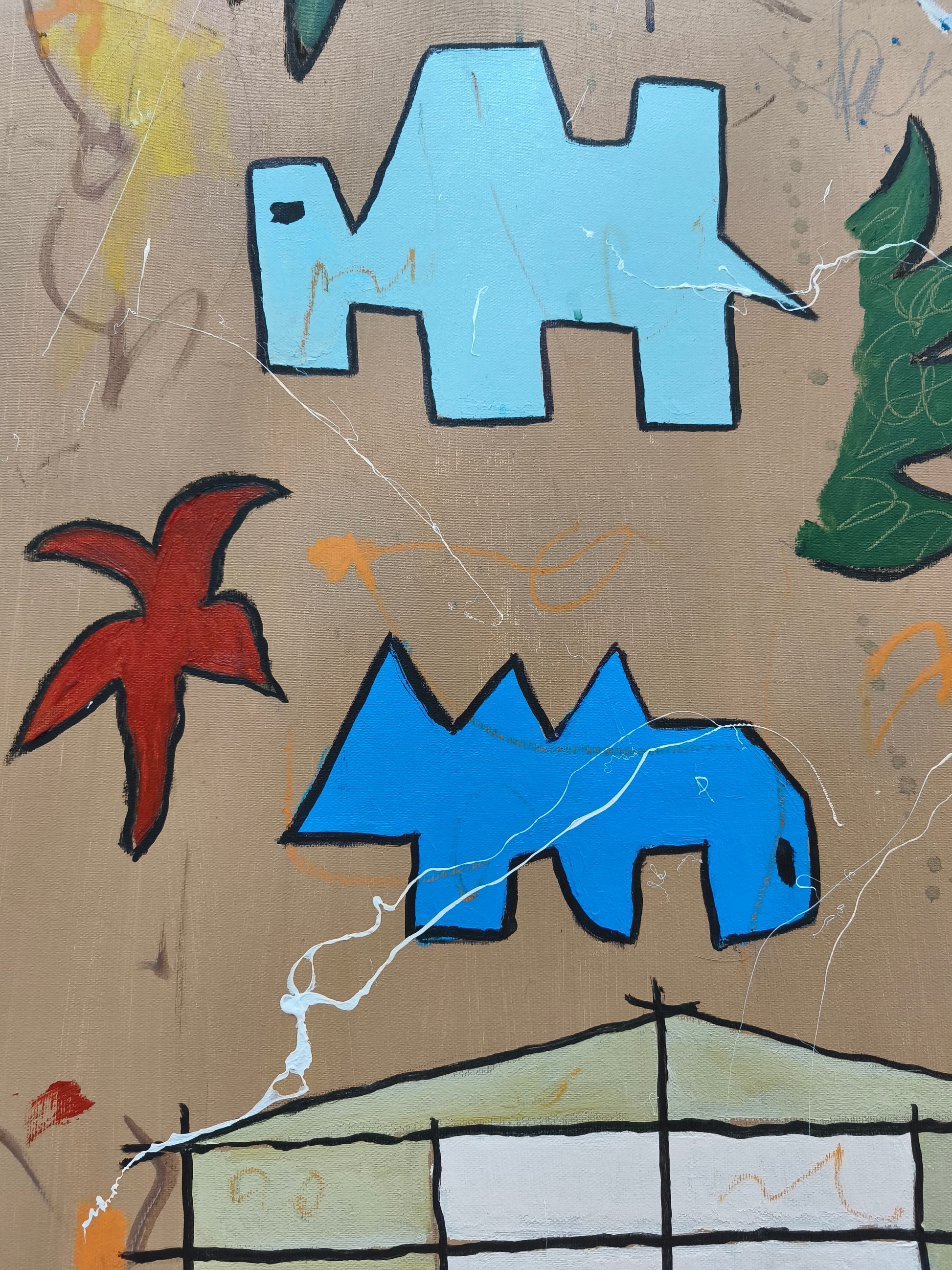 Técnica: acrílico, pigmentos, oil stick, lápiz, tinta china y carboncillo.